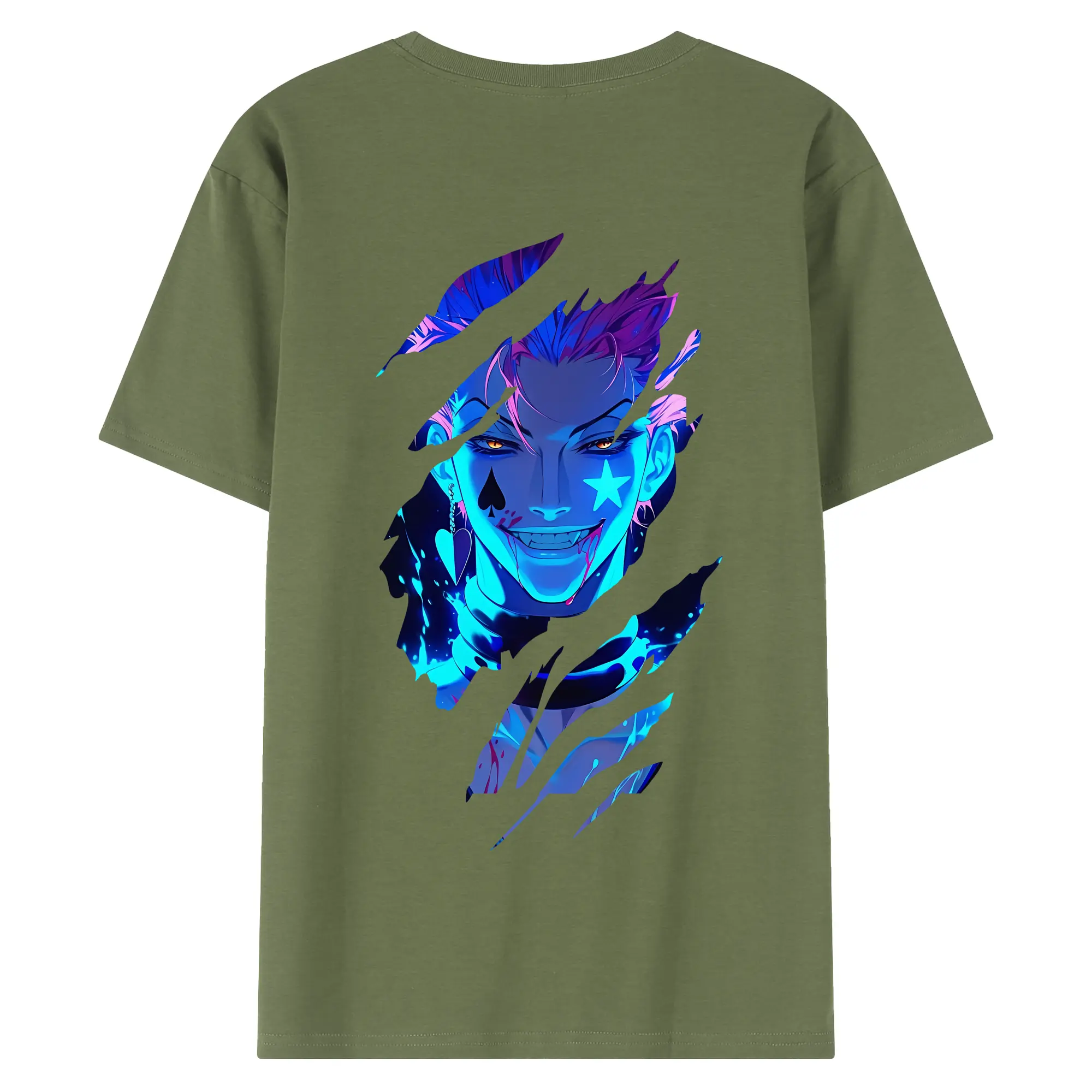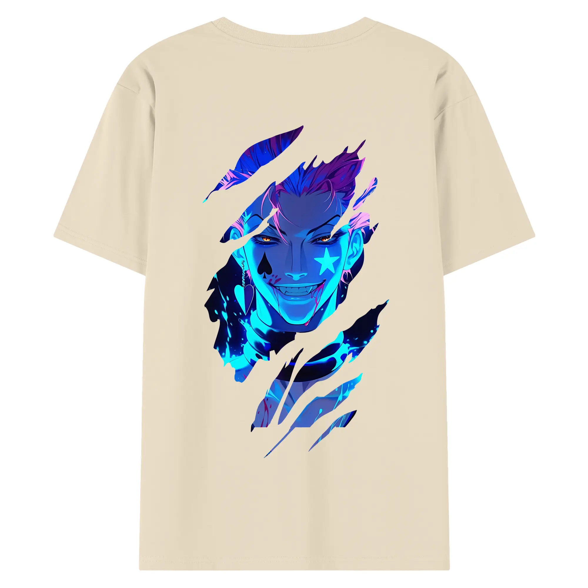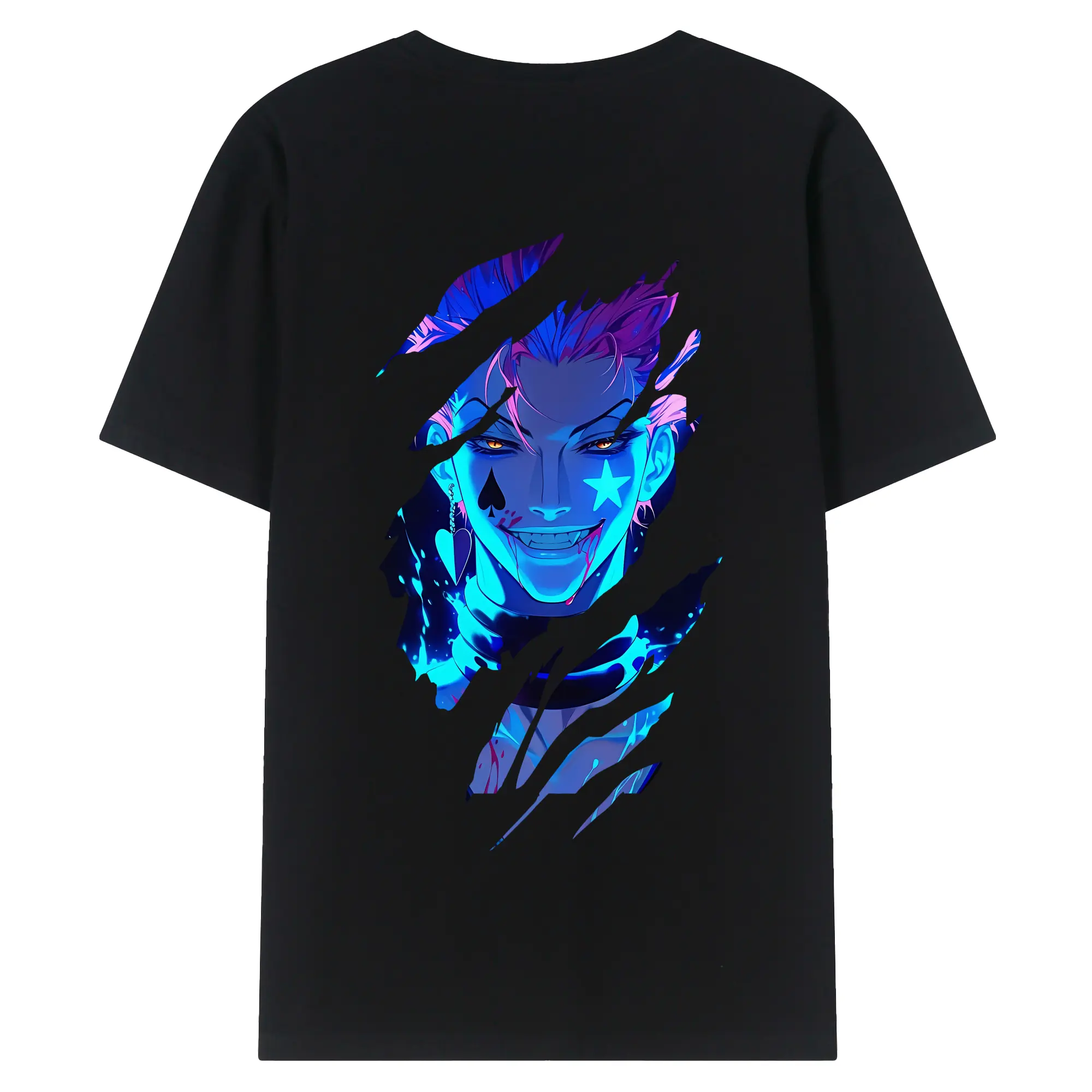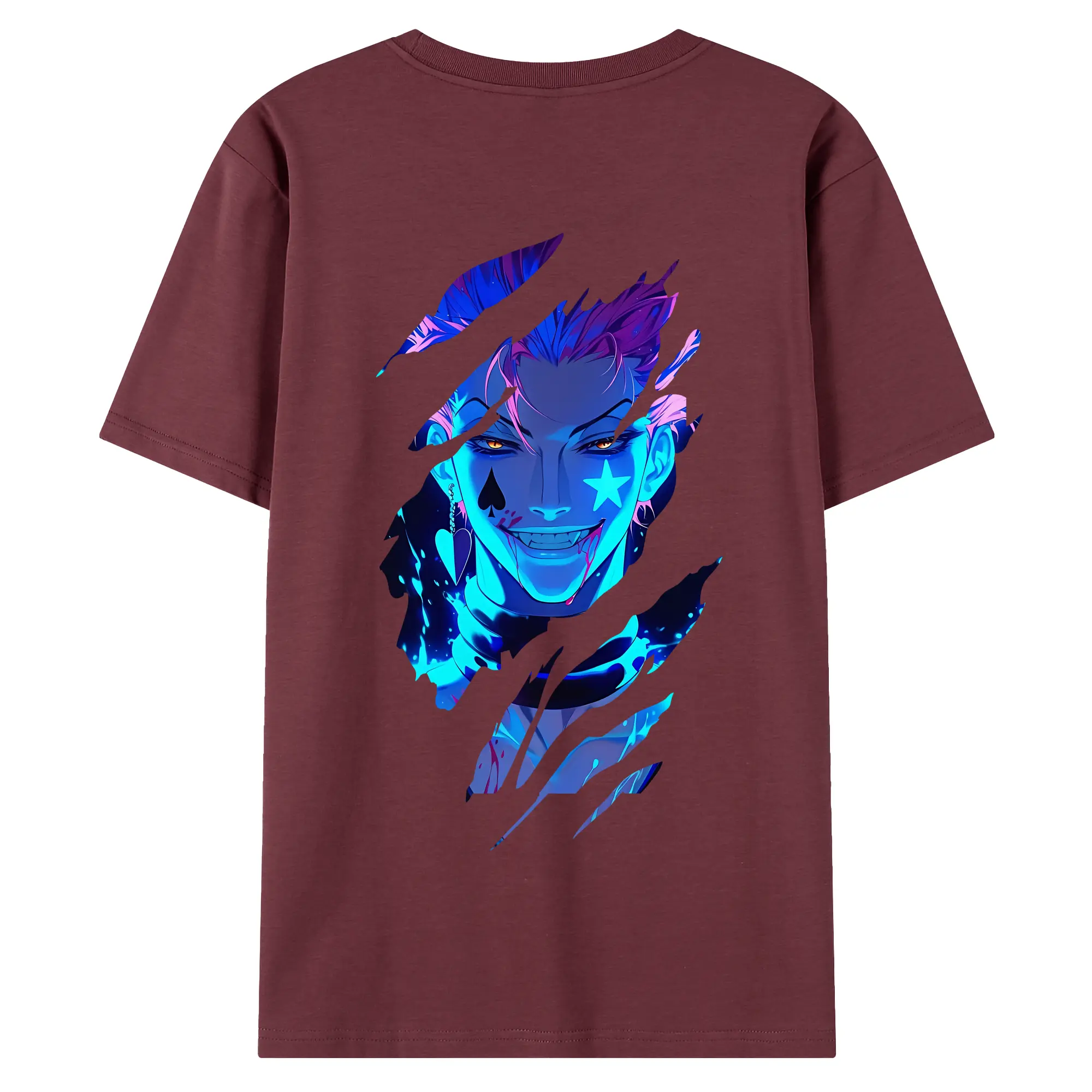 ハンター×ハンター グッズ ヒソカ=モロウ - 綿100% ヴィンテージ風 半袖Tシャツ ・ 背面プリント ・ 柔らか肌触り ・ 通気性 快適 ・ スポーツ カジュアル 外出用