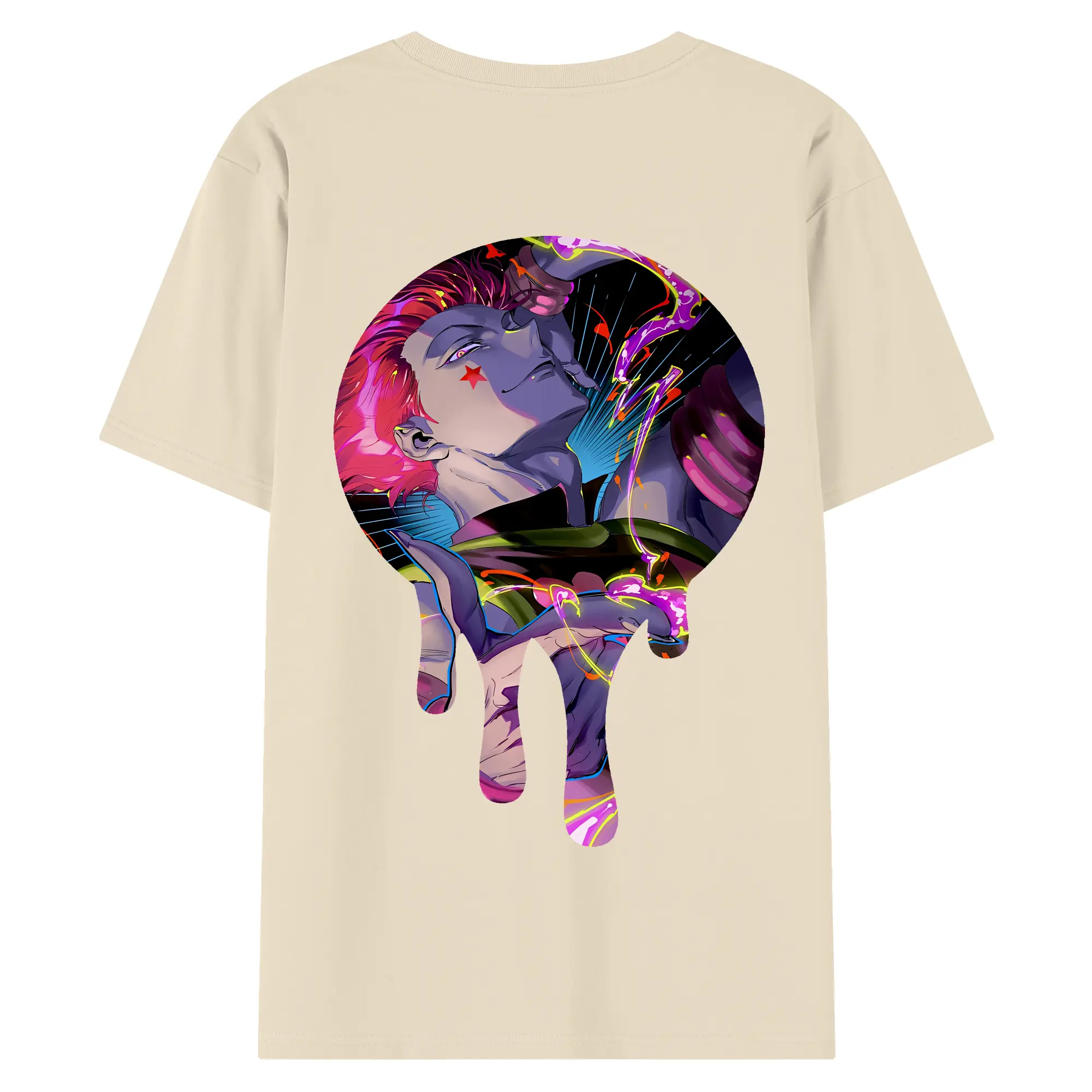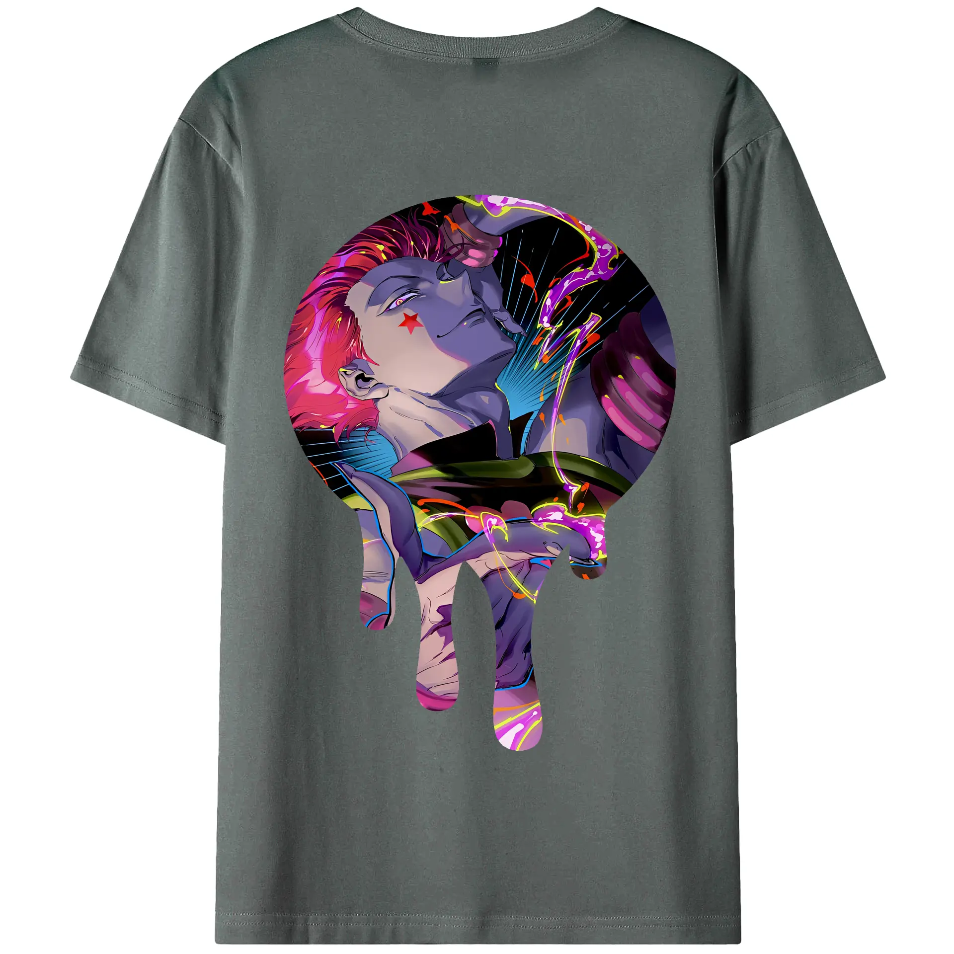 ハンター×ハンター グッズ ヒソカ=モロウ - 綿100% ヴィンテージ風 半袖Tシャツ ・ 背面プリント ・ 柔らか肌触り ・ 通気性 快適 ・ スポーツ カジュアル 外出用