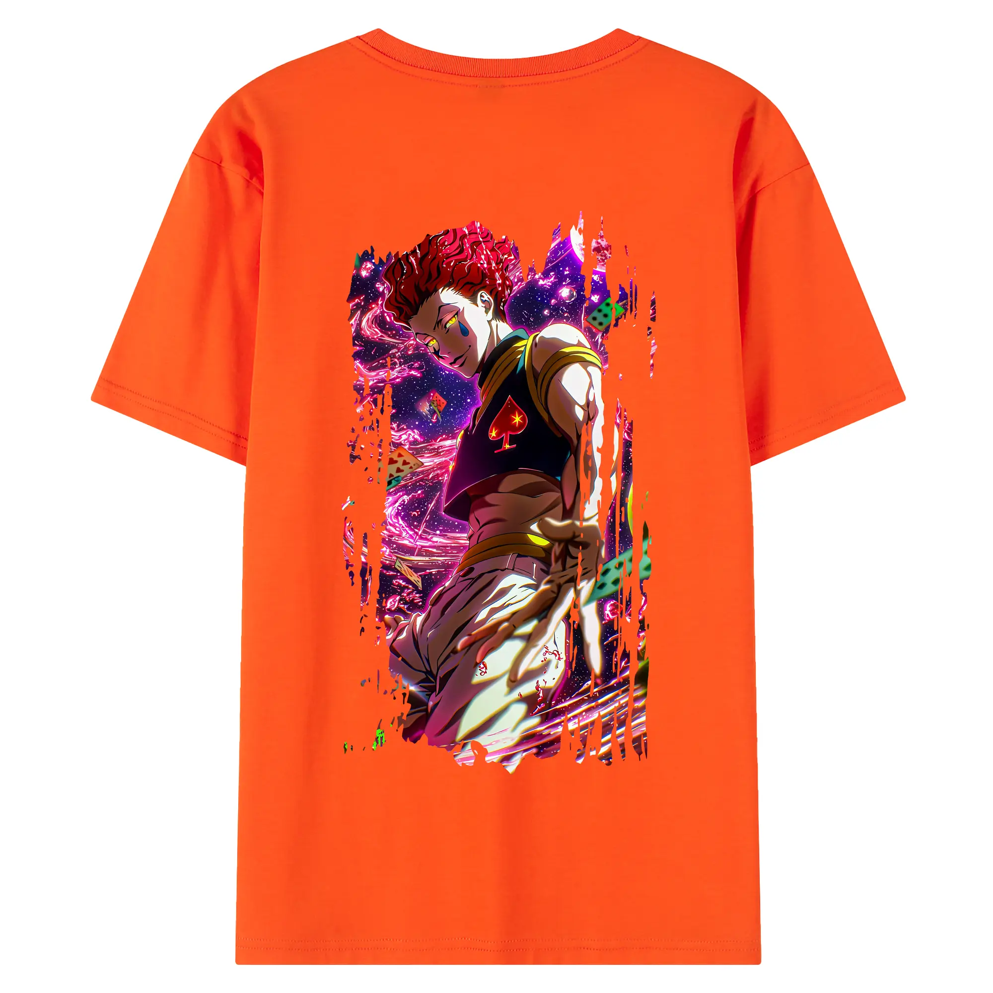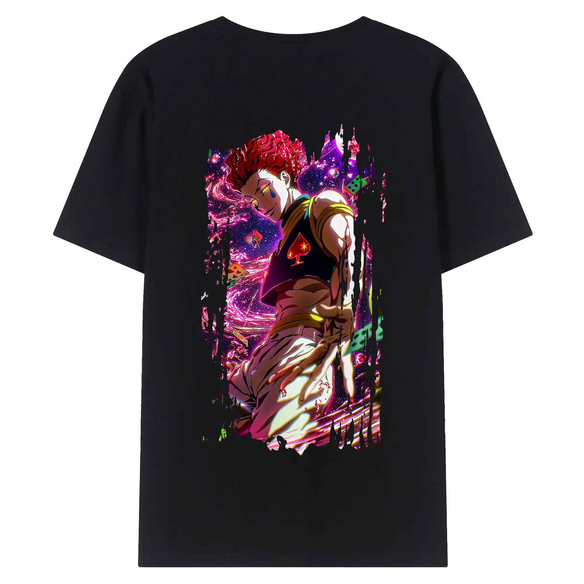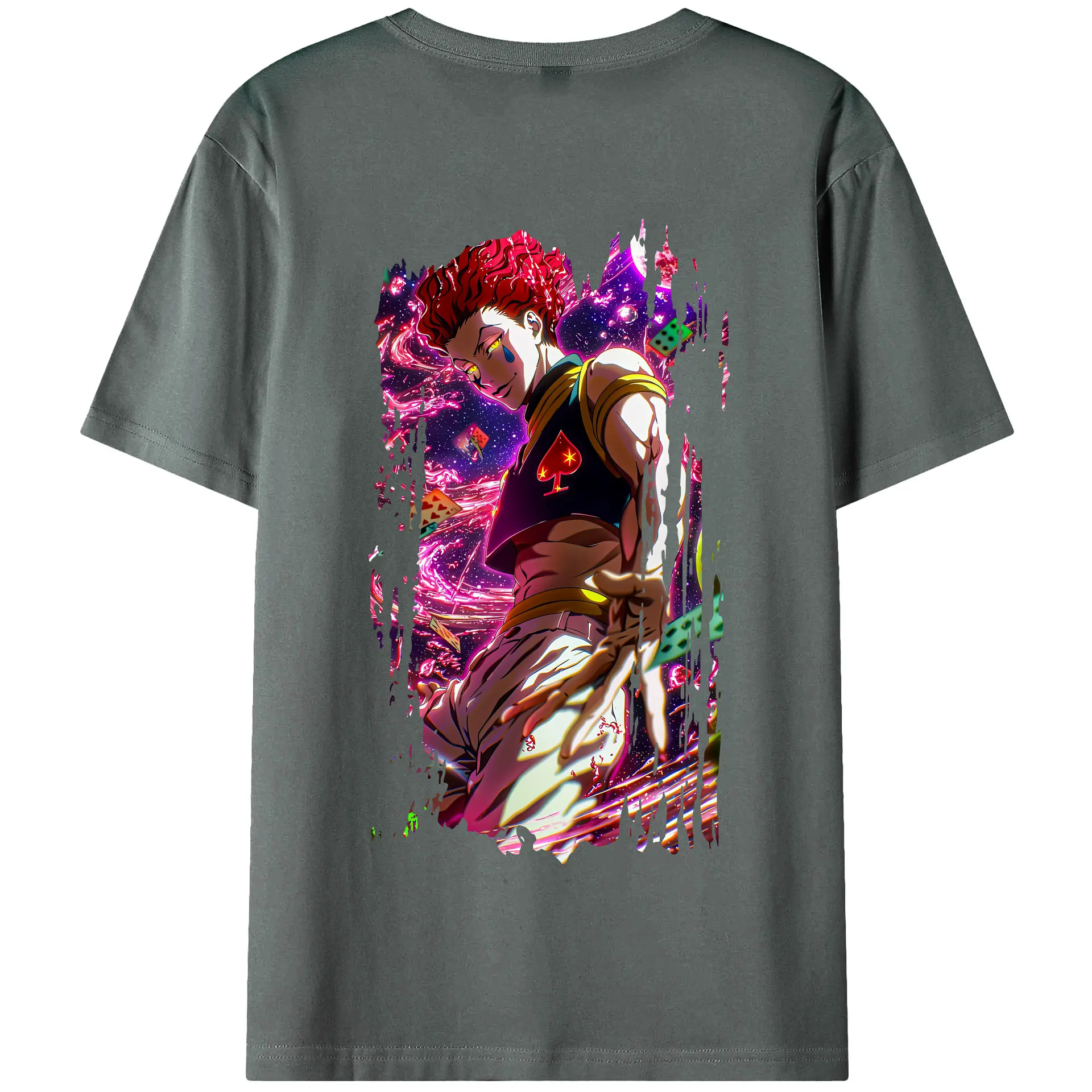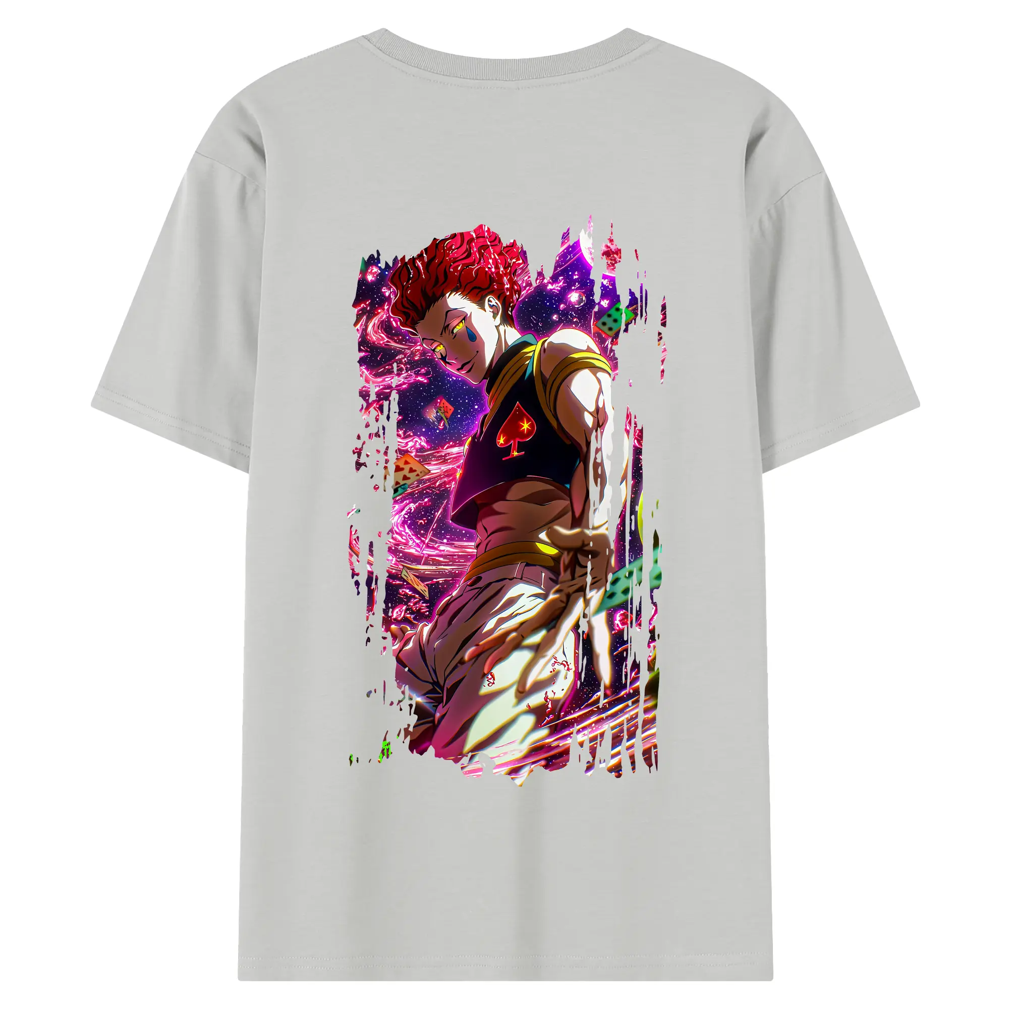 ハンター×ハンター グッズ ヒソカ=モロウ - 綿100% ヴィンテージ風 半袖Tシャツ ・ 背面プリント ・ 柔らか肌触り ・ 通気性 快適 ・ スポーツ カジュアル 外出用