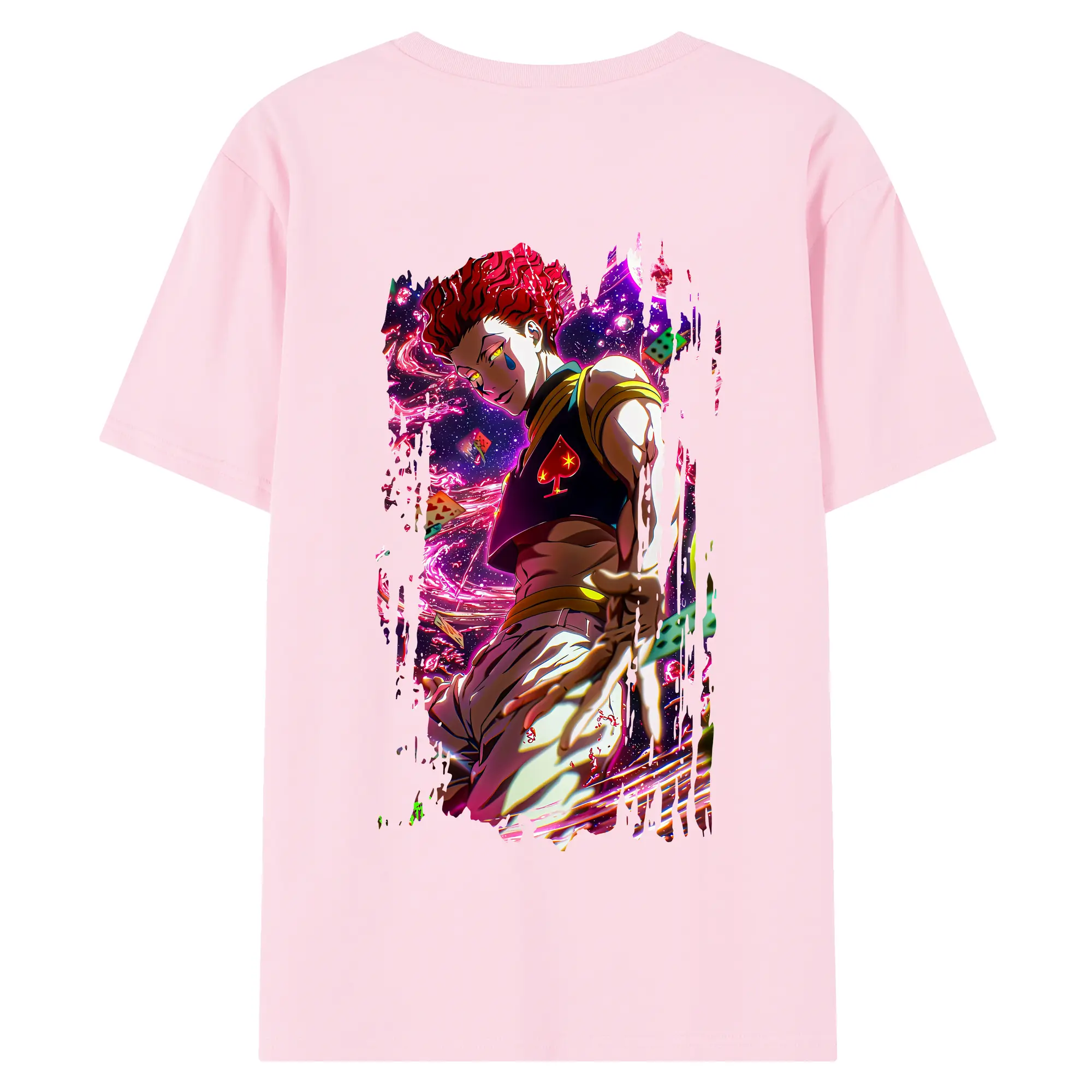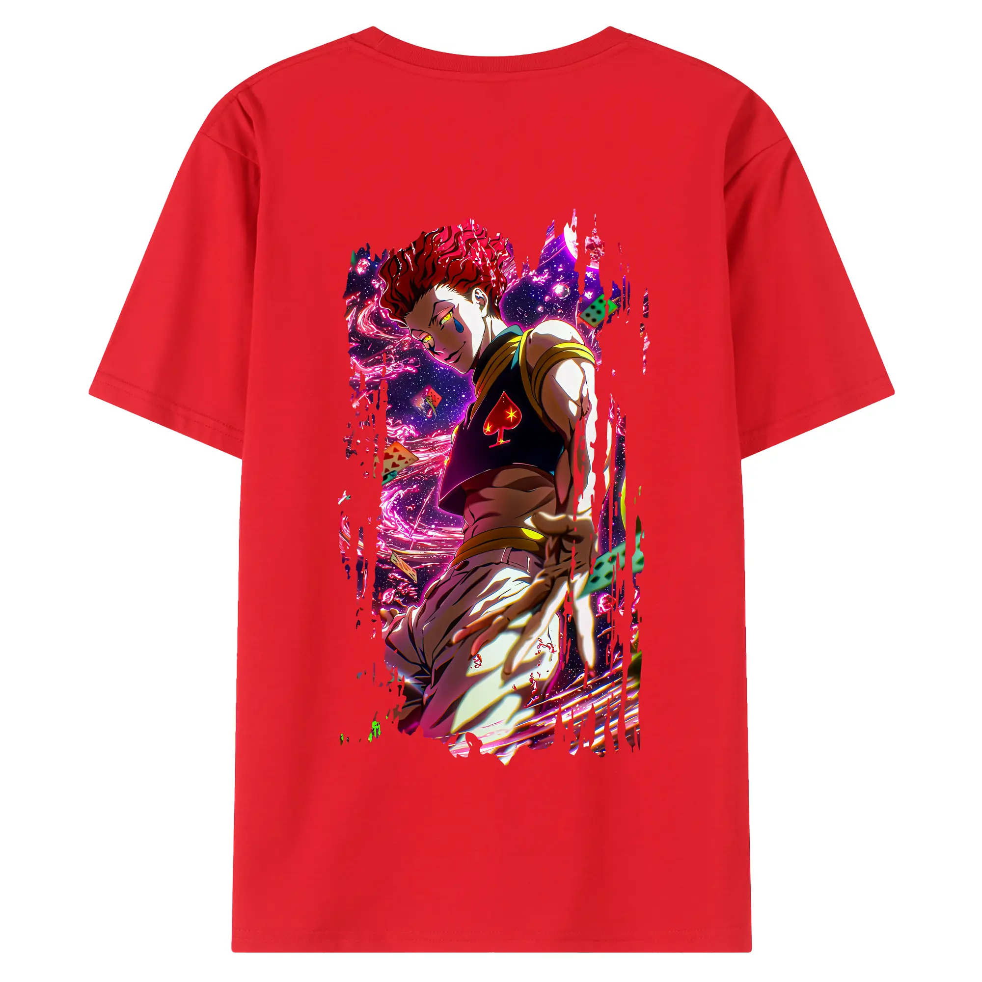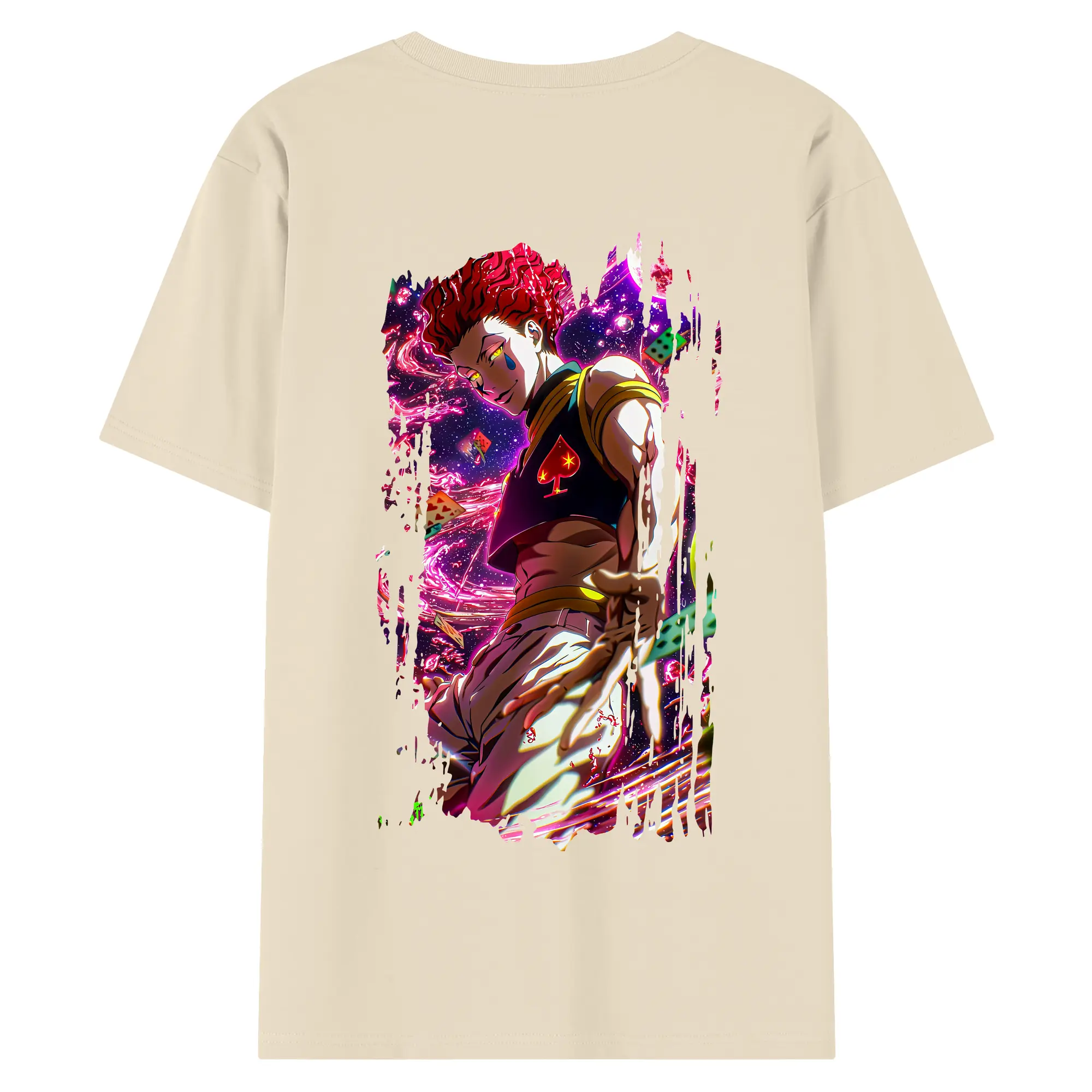 ハンター×ハンター グッズ ヒソカ=モロウ - 綿100% ヴィンテージ風 半袖Tシャツ ・ 背面プリント ・ 柔らか肌触り ・ 通気性 快適 ・ スポーツ カジュアル 外出用
