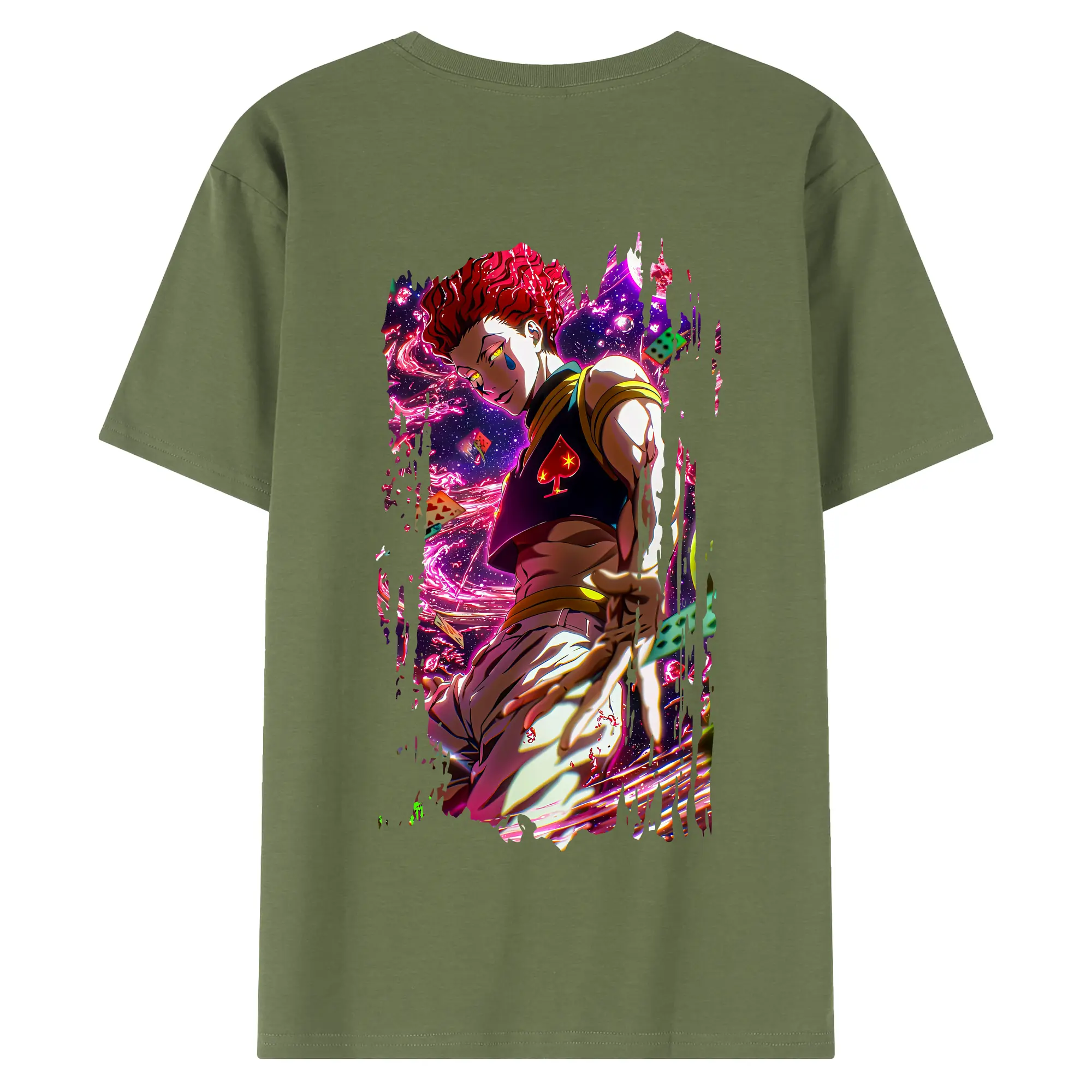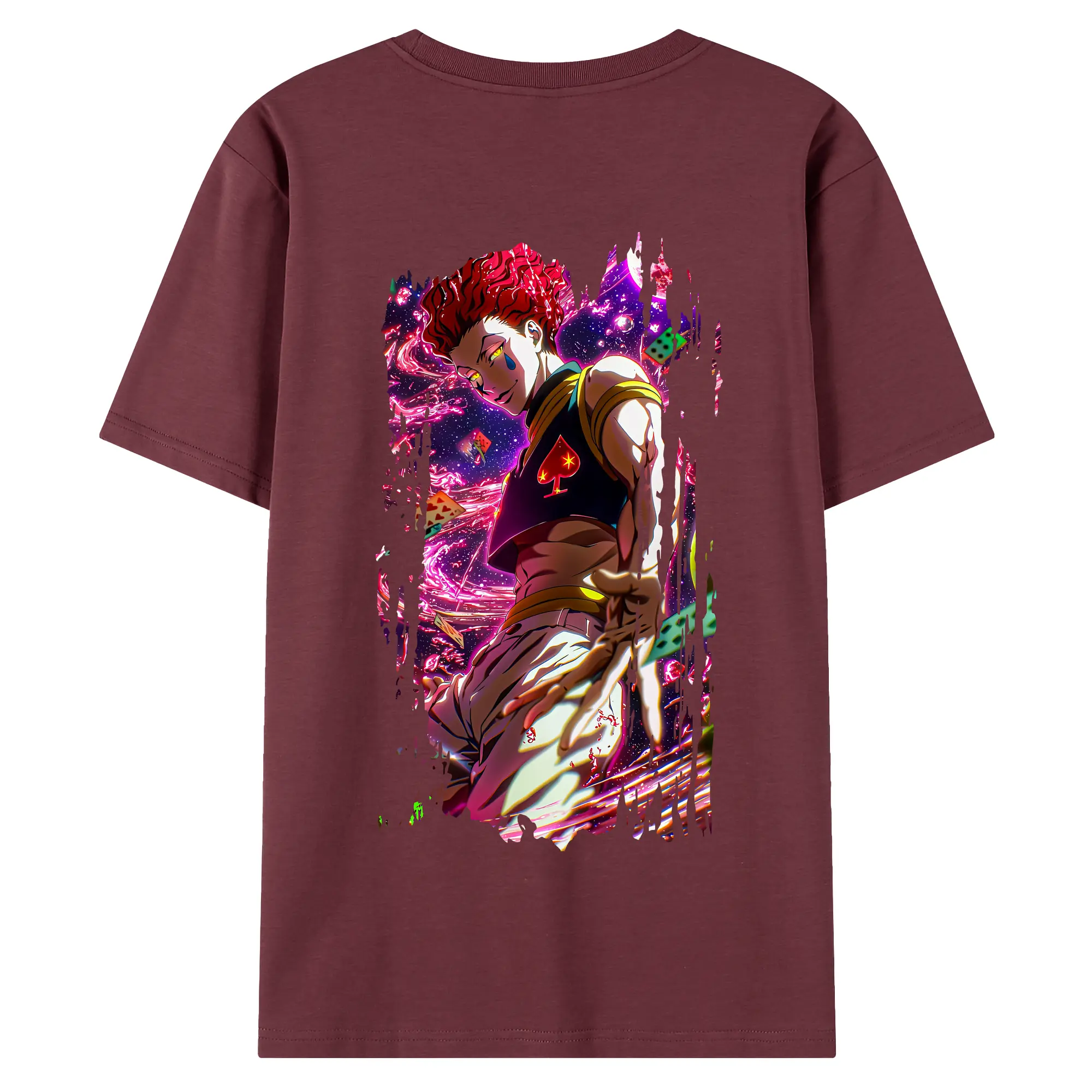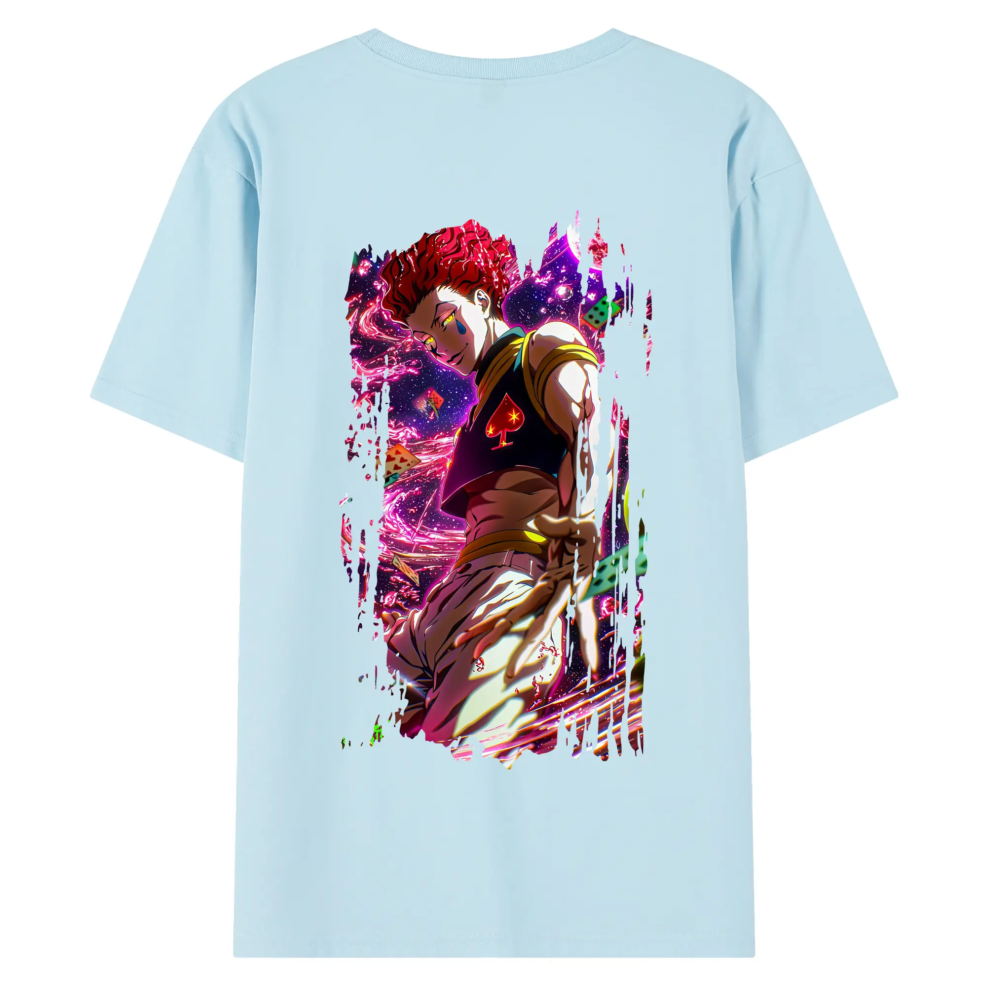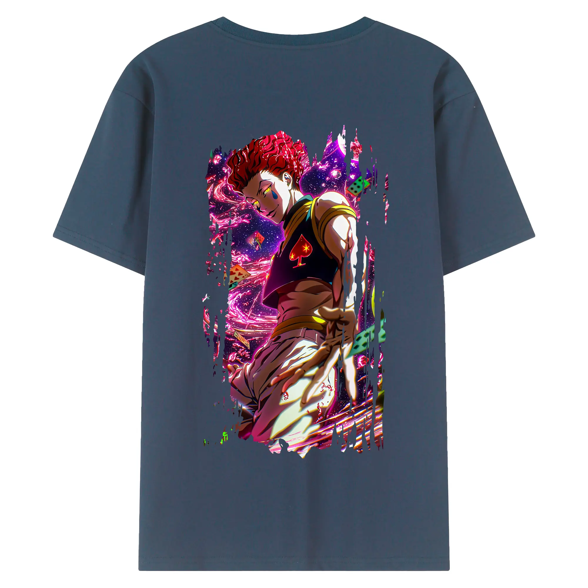 ハンター×ハンター グッズ ヒソカ=モロウ - 綿100% ヴィンテージ風 半袖Tシャツ ・ 背面プリント ・ 柔らか肌触り ・ 通気性 快適 ・ スポーツ カジュアル 外出用