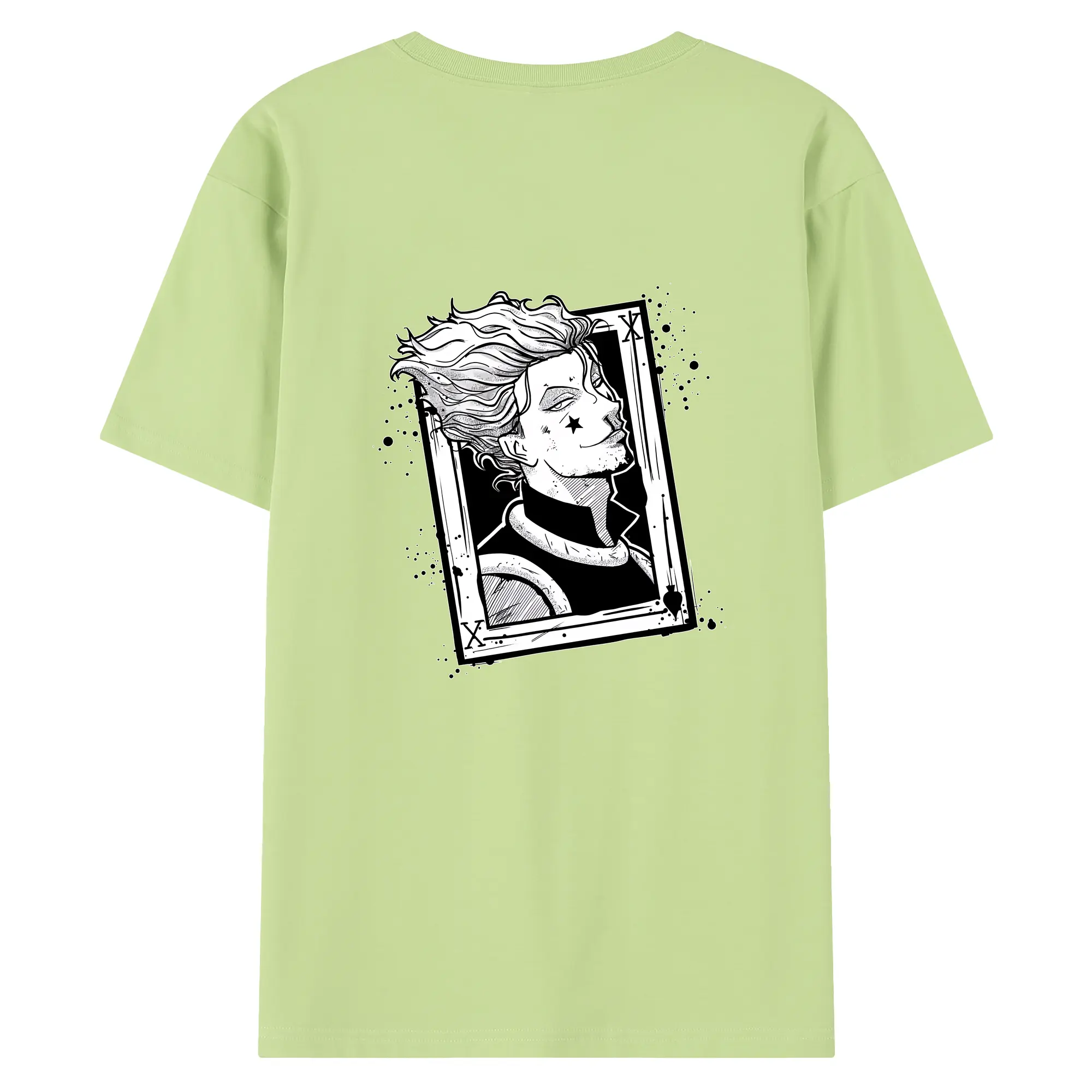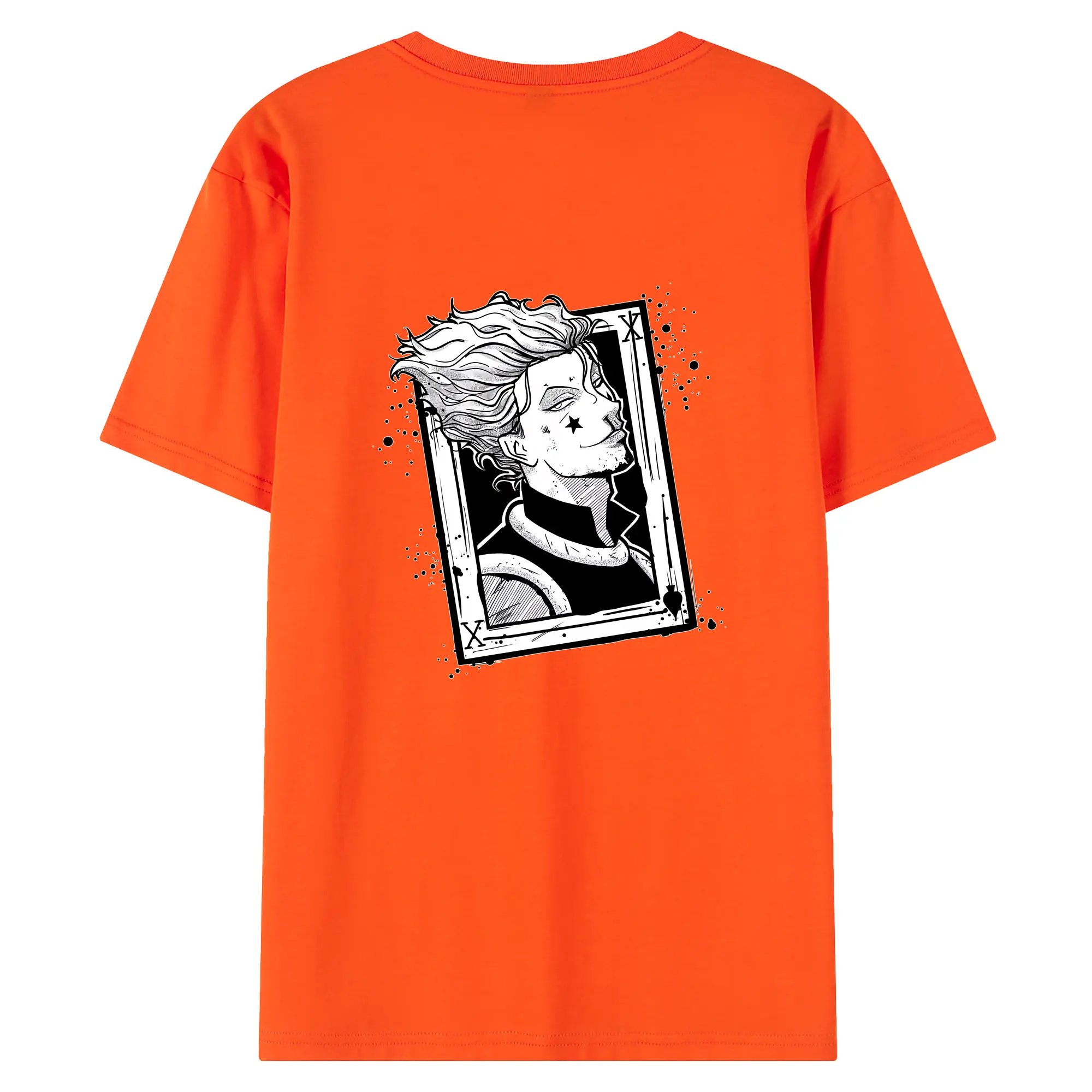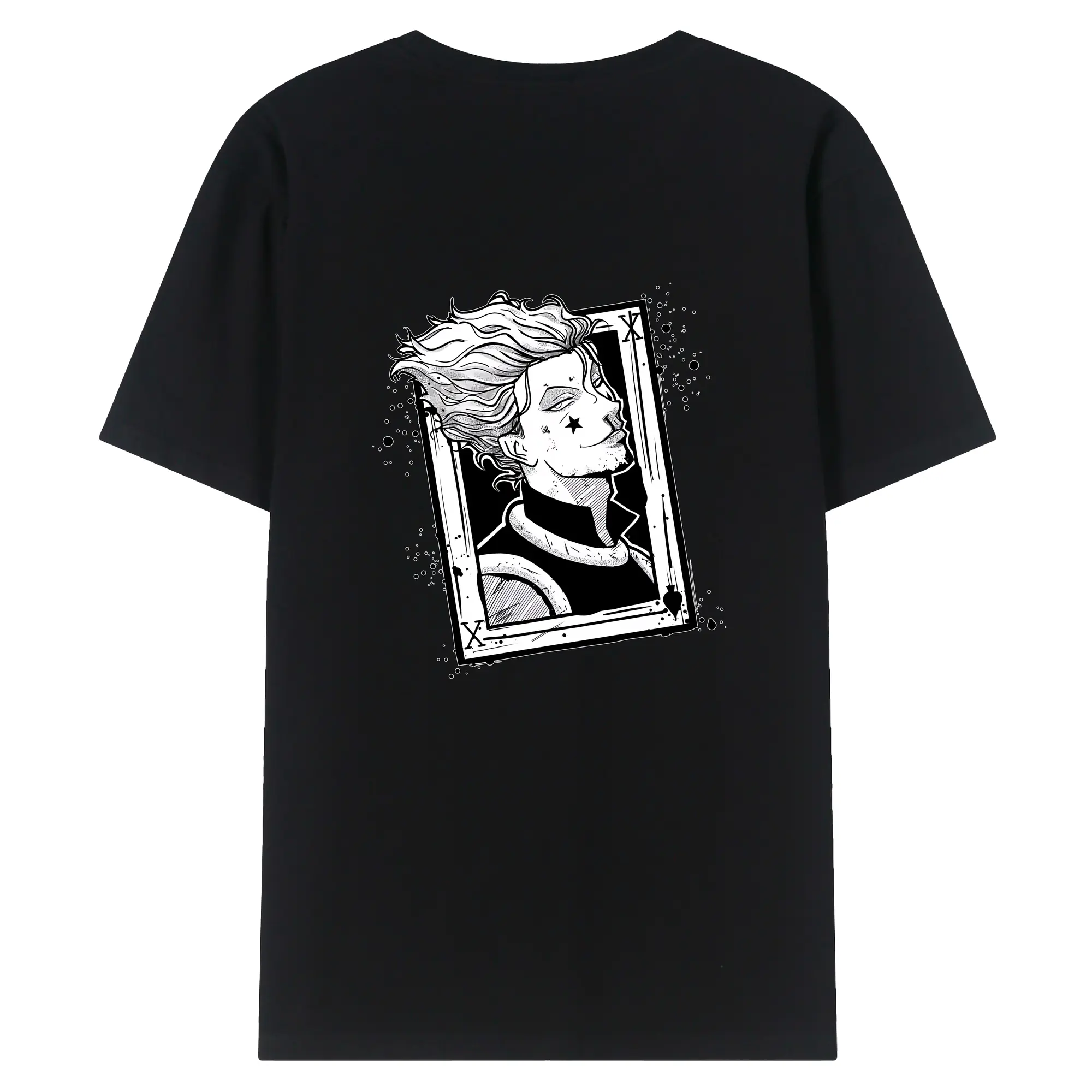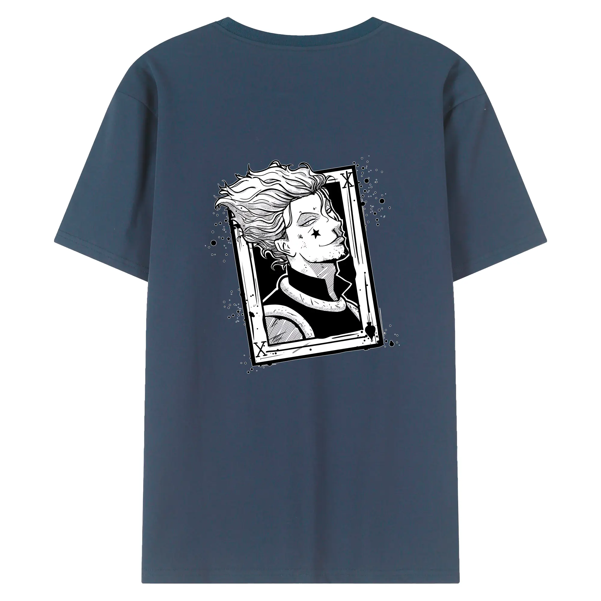 ハンター×ハンター グッズ ヒソカ=モロウ - 綿100% ヴィンテージ風 半袖Tシャツ ・ 背面プリント ・ 柔らか肌触り ・ 通気性 快適 ・ スポーツ カジュアル 外出用