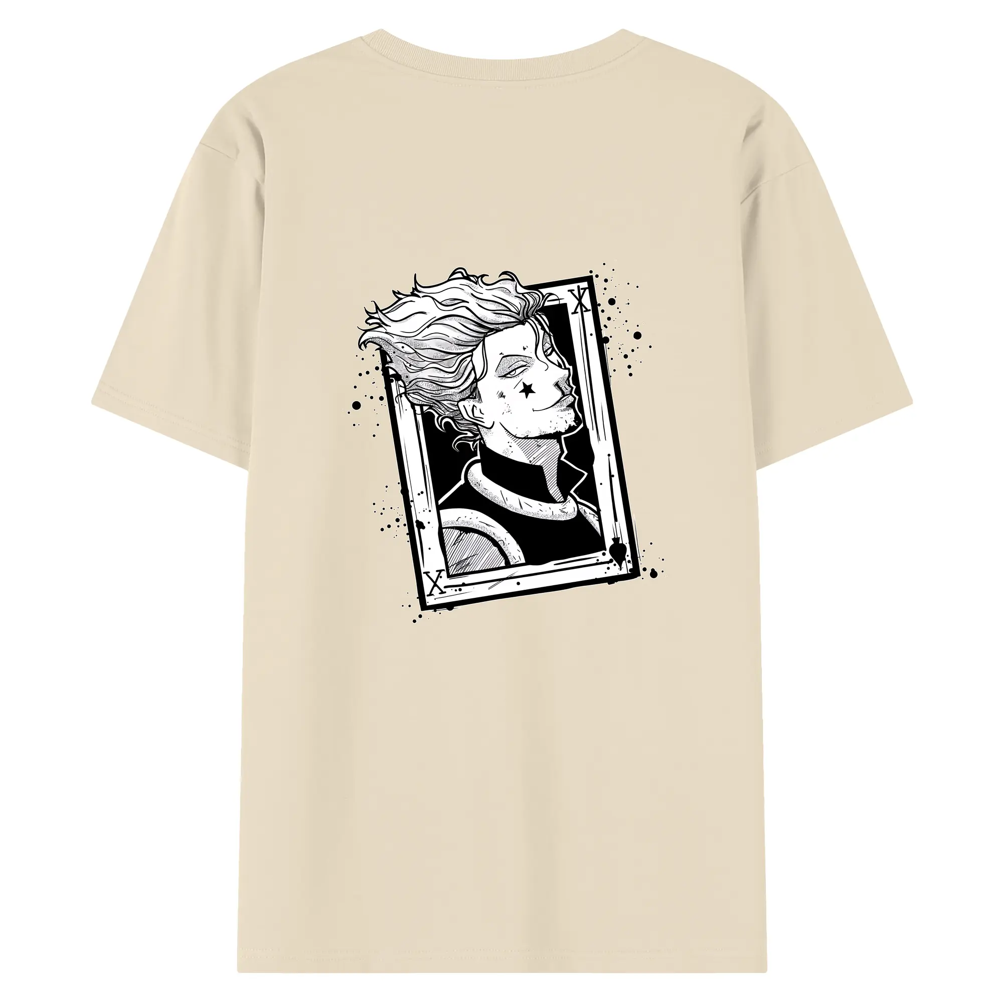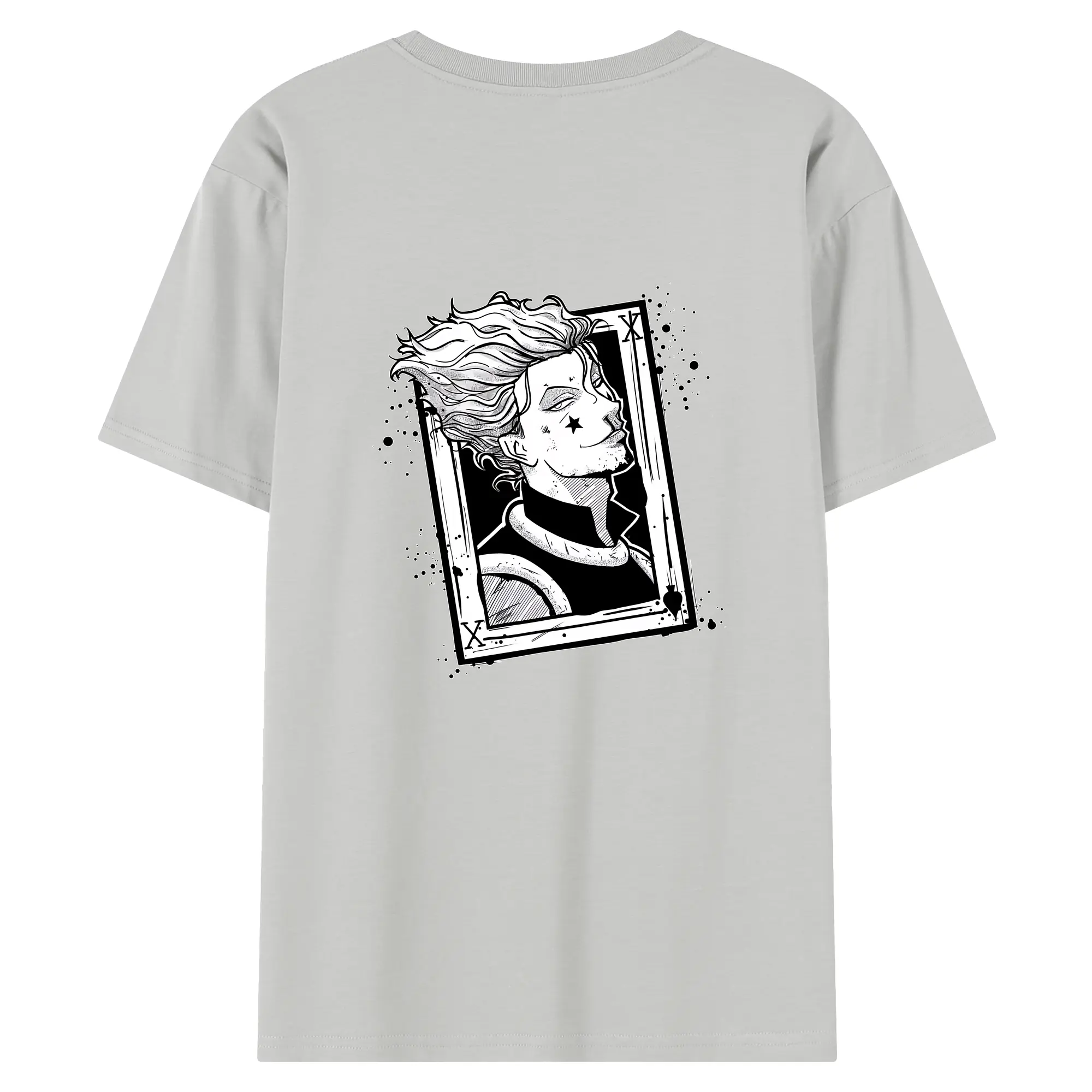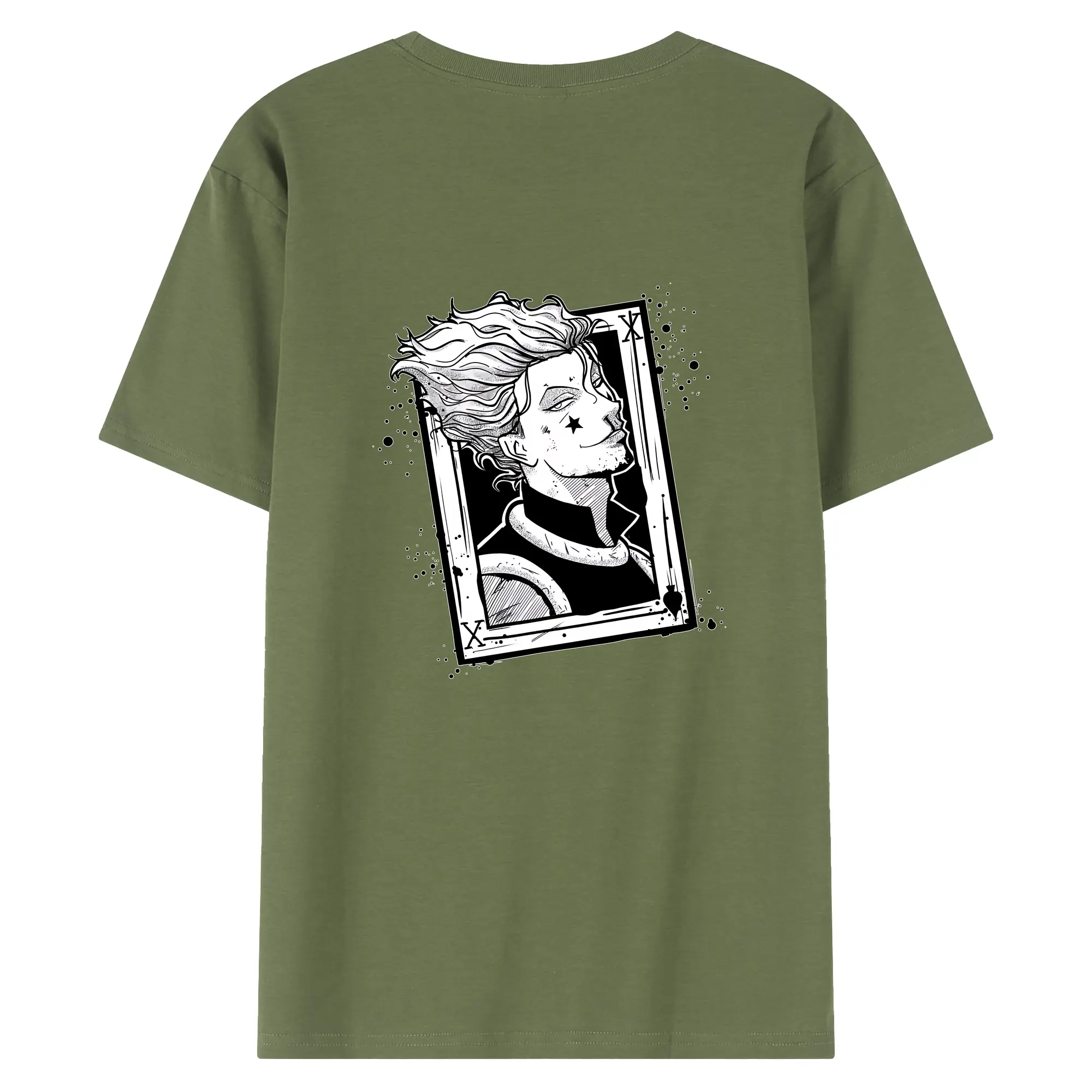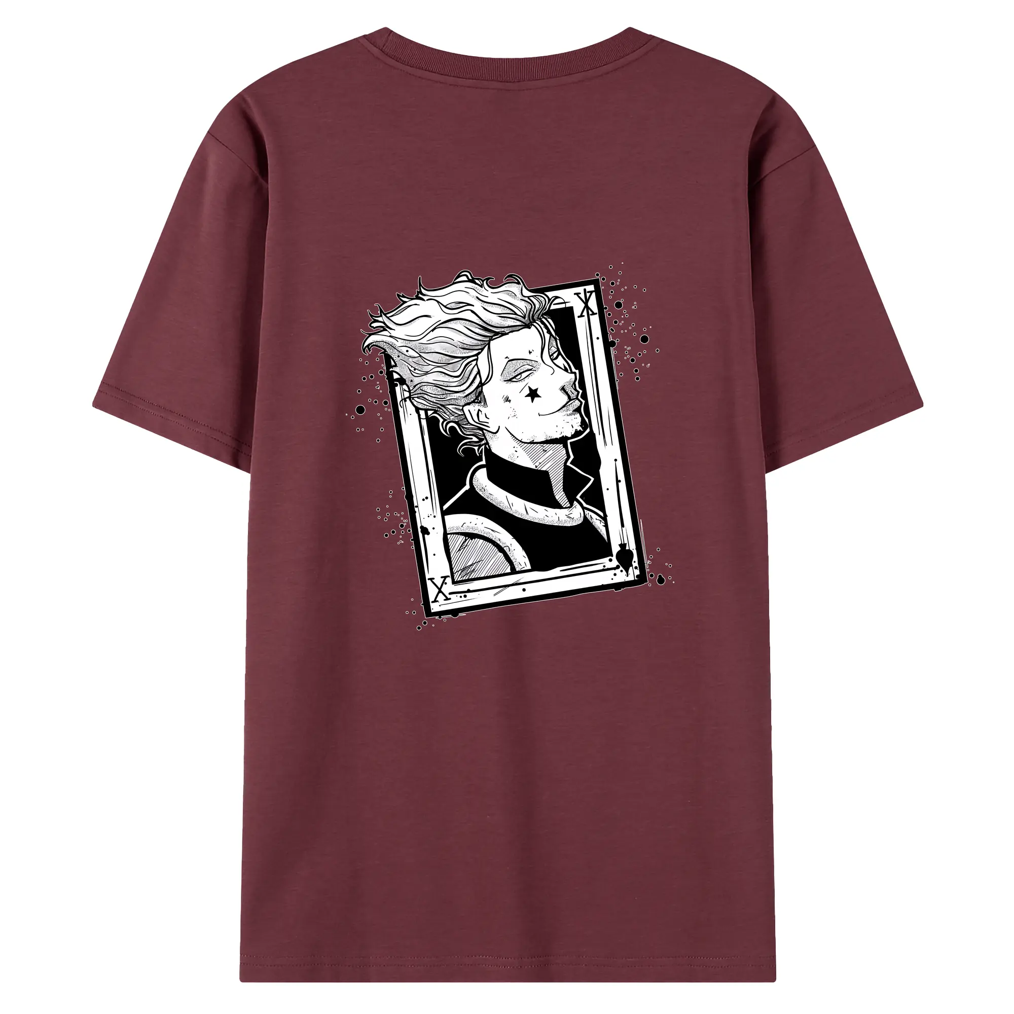 ハンター×ハンター グッズ ヒソカ=モロウ - 綿100% ヴィンテージ風 半袖Tシャツ ・ 背面プリント ・ 柔らか肌触り ・ 通気性 快適 ・ スポーツ カジュアル 外出用