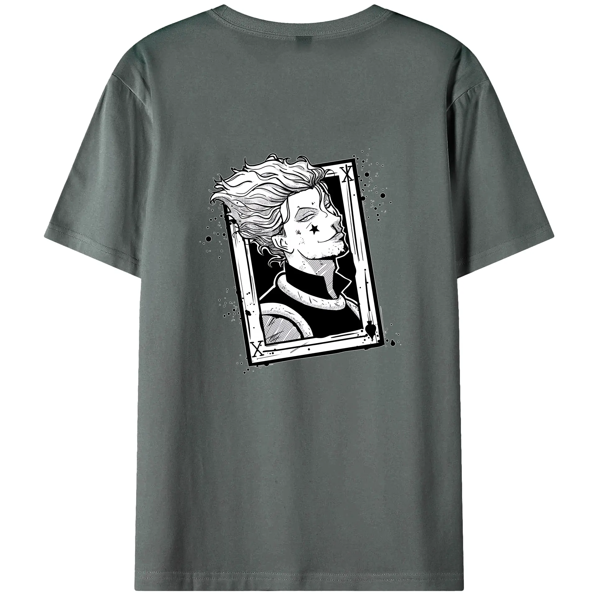 ハンター×ハンター グッズ ヒソカ=モロウ - 綿100% 半袖Tシャツ ・ フロントプリント ・ 快適 通気性 ・ 日常使い 散歩 スポーツ用