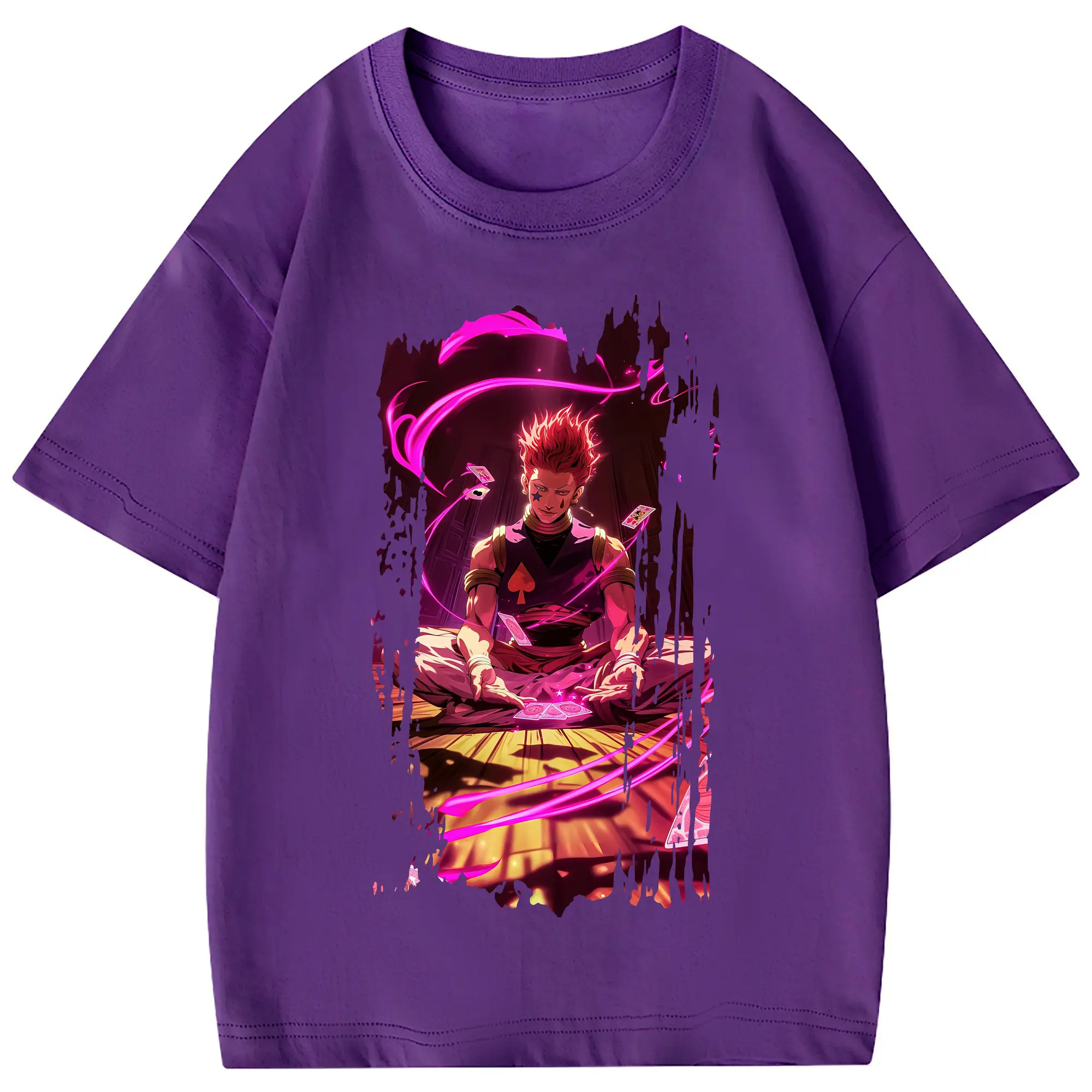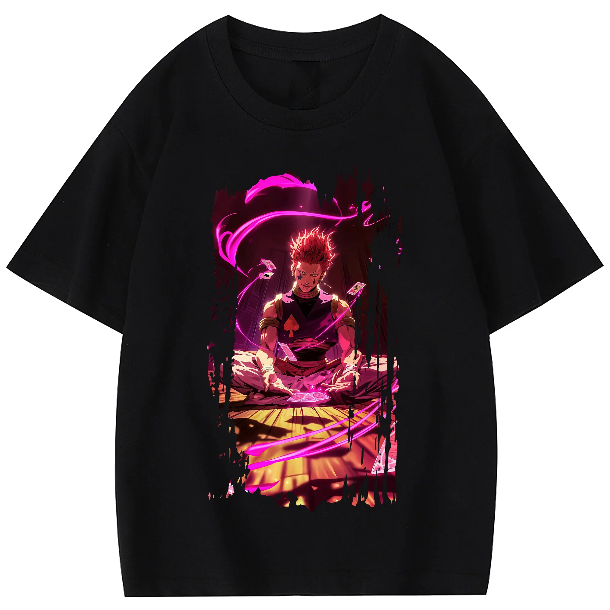ハンター×ハンター グッズ ヒソカ=モロウ - 綿100% 半袖Tシャツ ・ フロントプリント ・ 快適 通気性 ・ 日常使い 散歩 スポーツ用