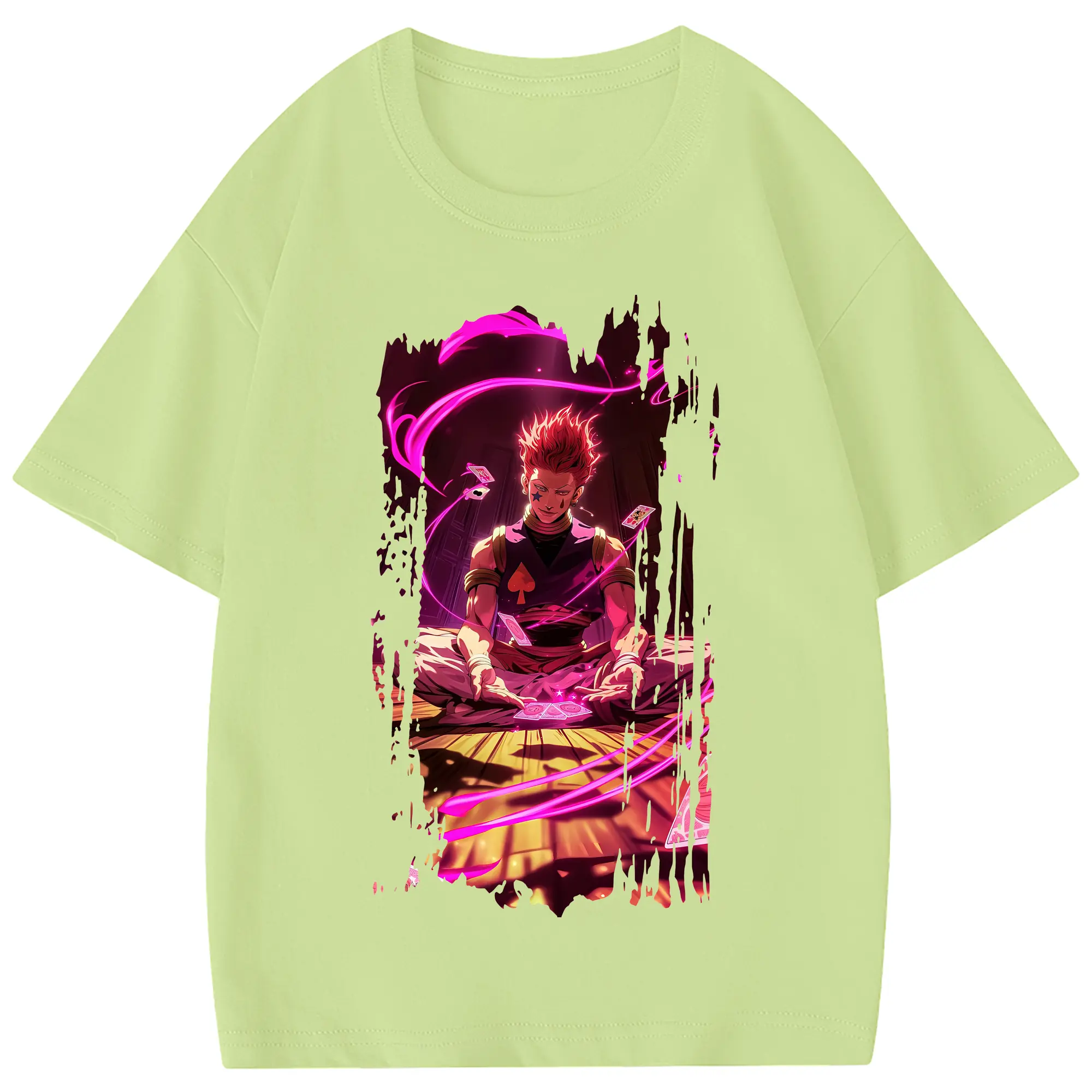 ハンター×ハンター グッズ ヒソカ=モロウ - 綿100% ヴィンテージ風 半袖Tシャツ ・ フロントプリント ・ 柔らか肌触り ・ 通気性 快適 ・ スポーツ カジュアル 外出用