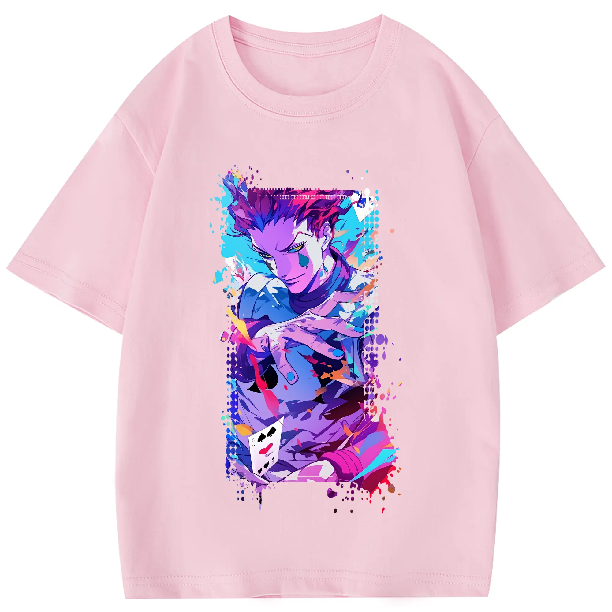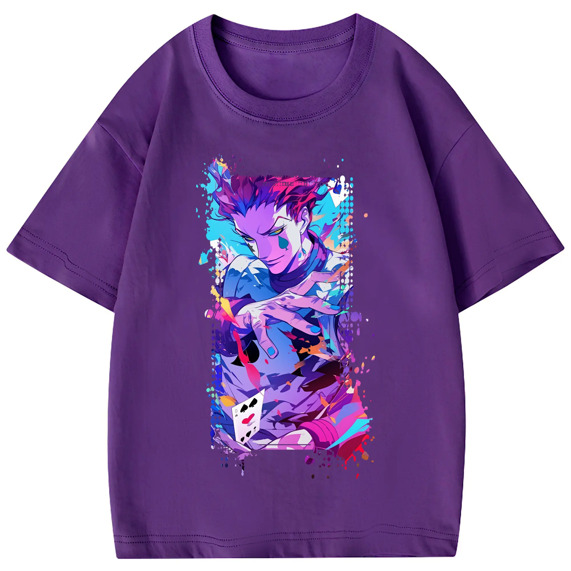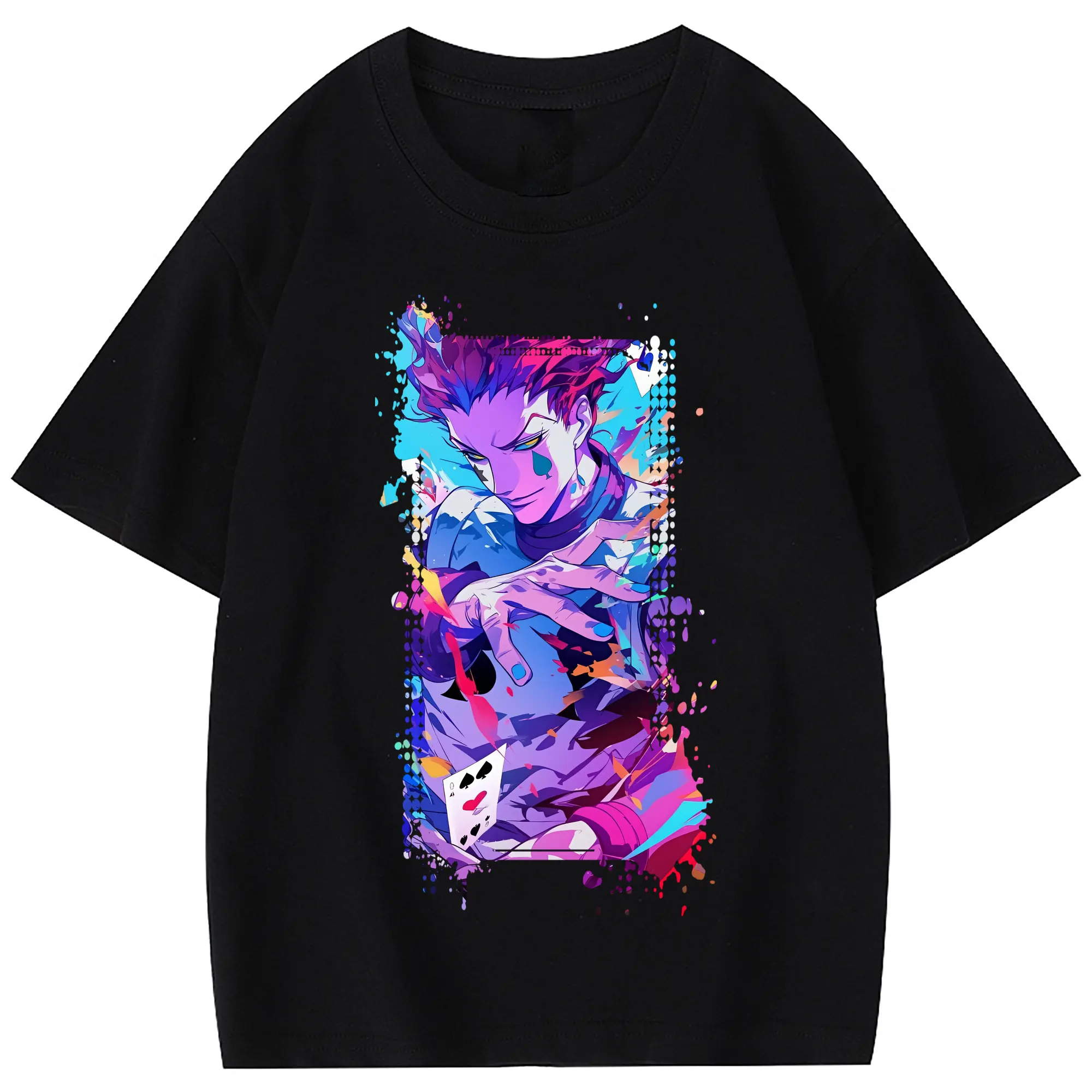 ハンター×ハンター グッズ ヒソカ=モロウ - 綿100% 半袖Tシャツ ・ フロントプリント ・ 快適 通気性 ・ 日常使い 散歩 スポーツ用