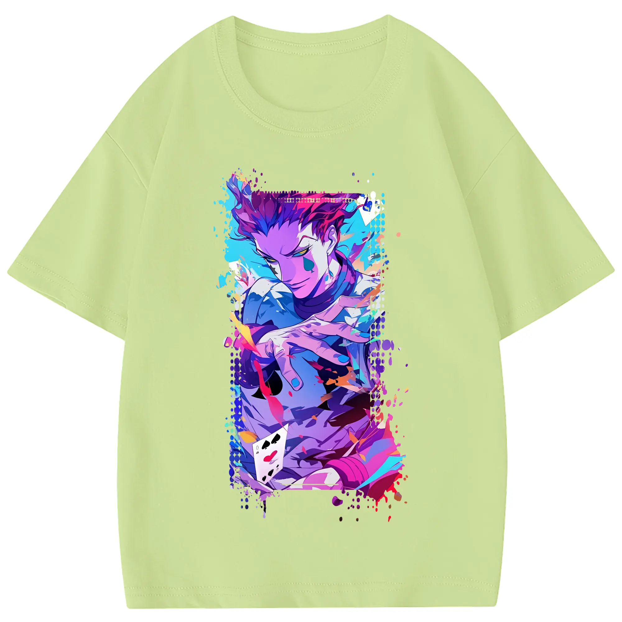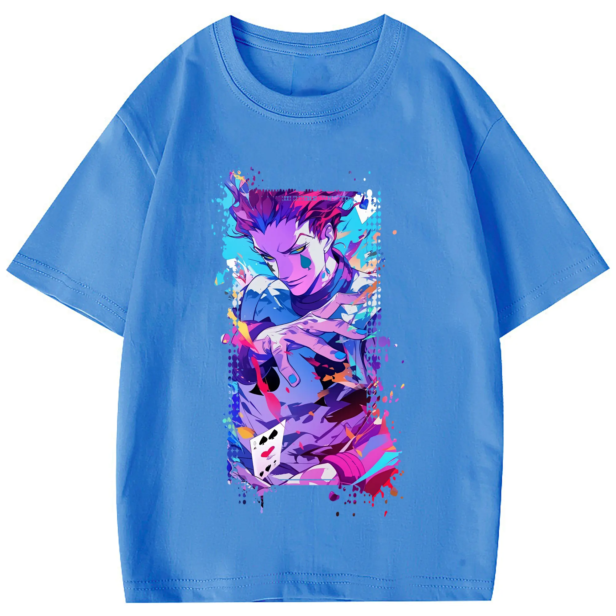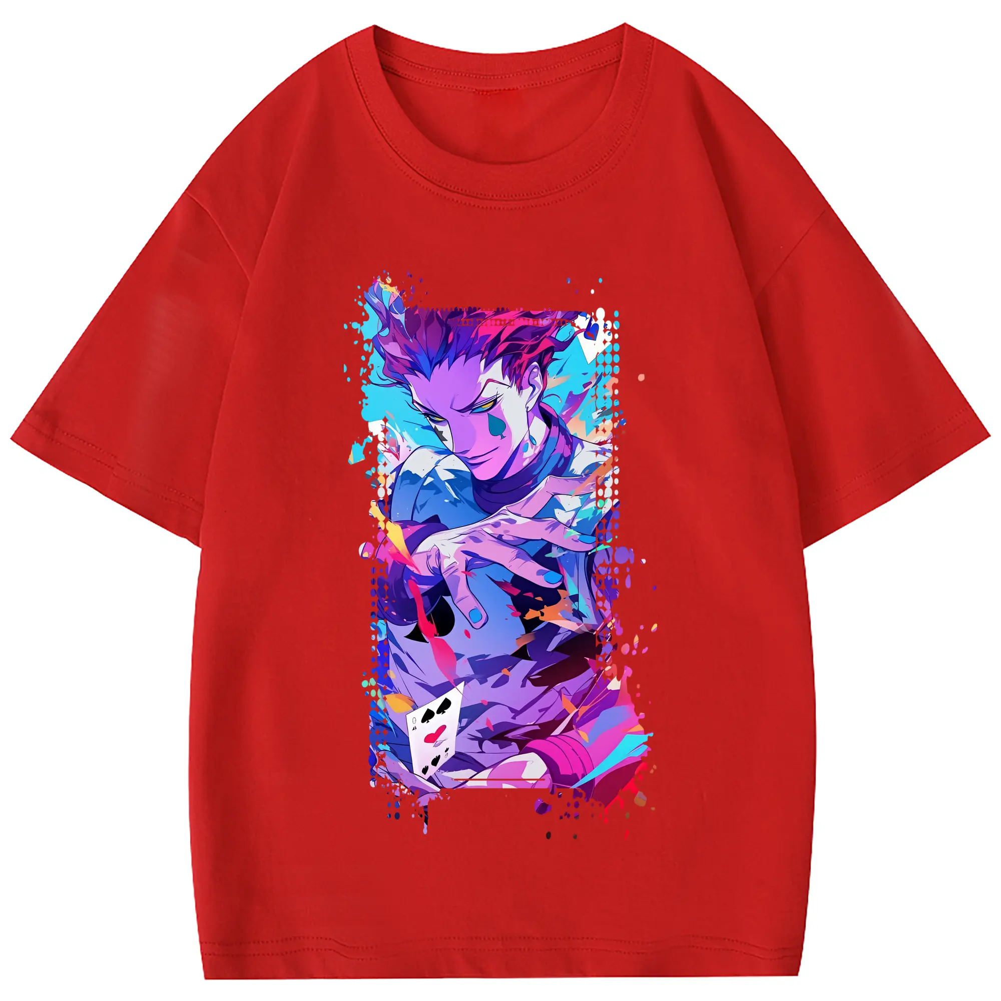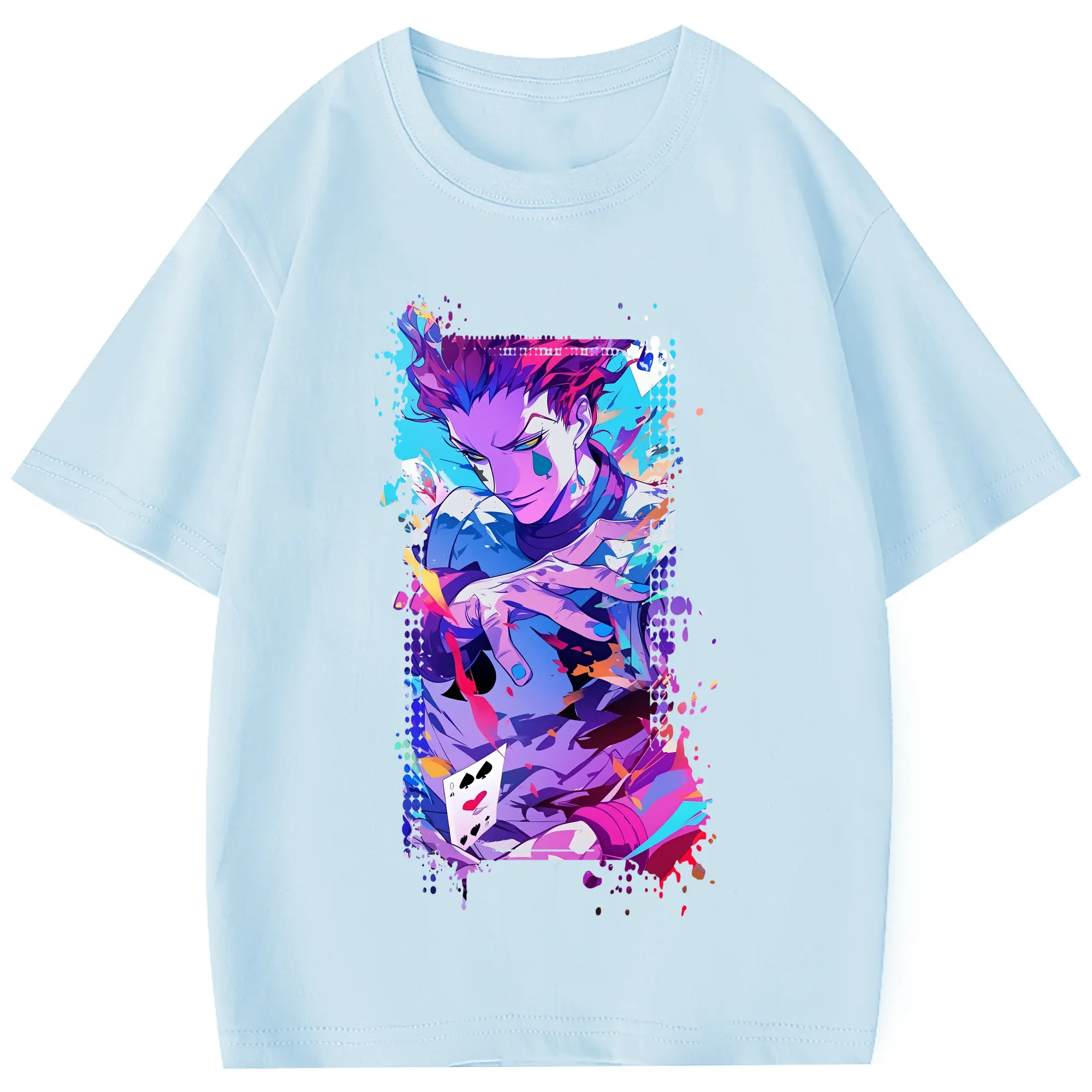 ハンター×ハンター グッズ ヒソカ=モロウ - 綿100% 半袖Tシャツ ・ フロントプリント ・ 快適 通気性 ・ 日常使い 散歩 スポーツ用