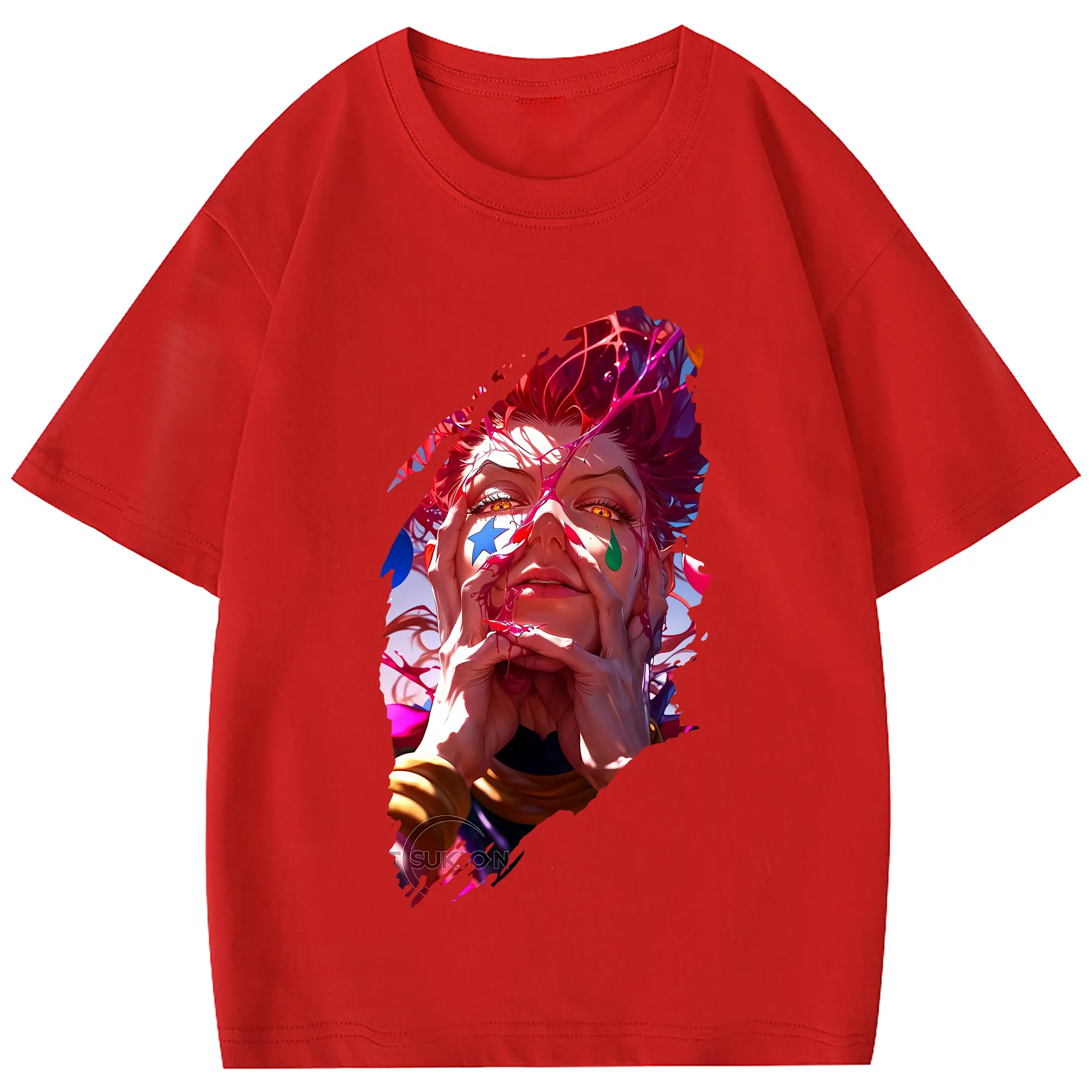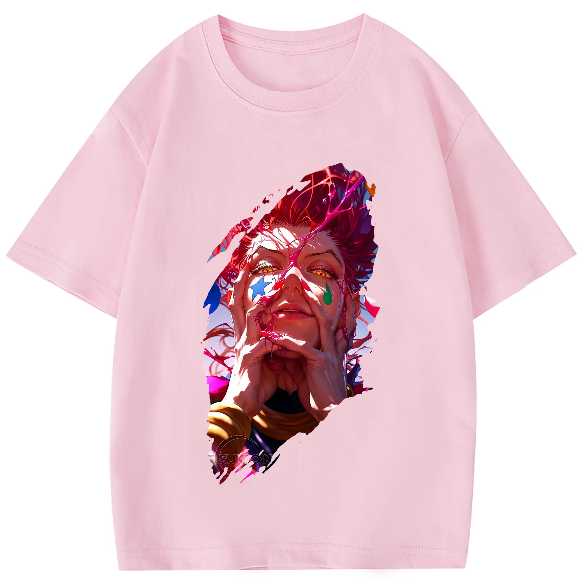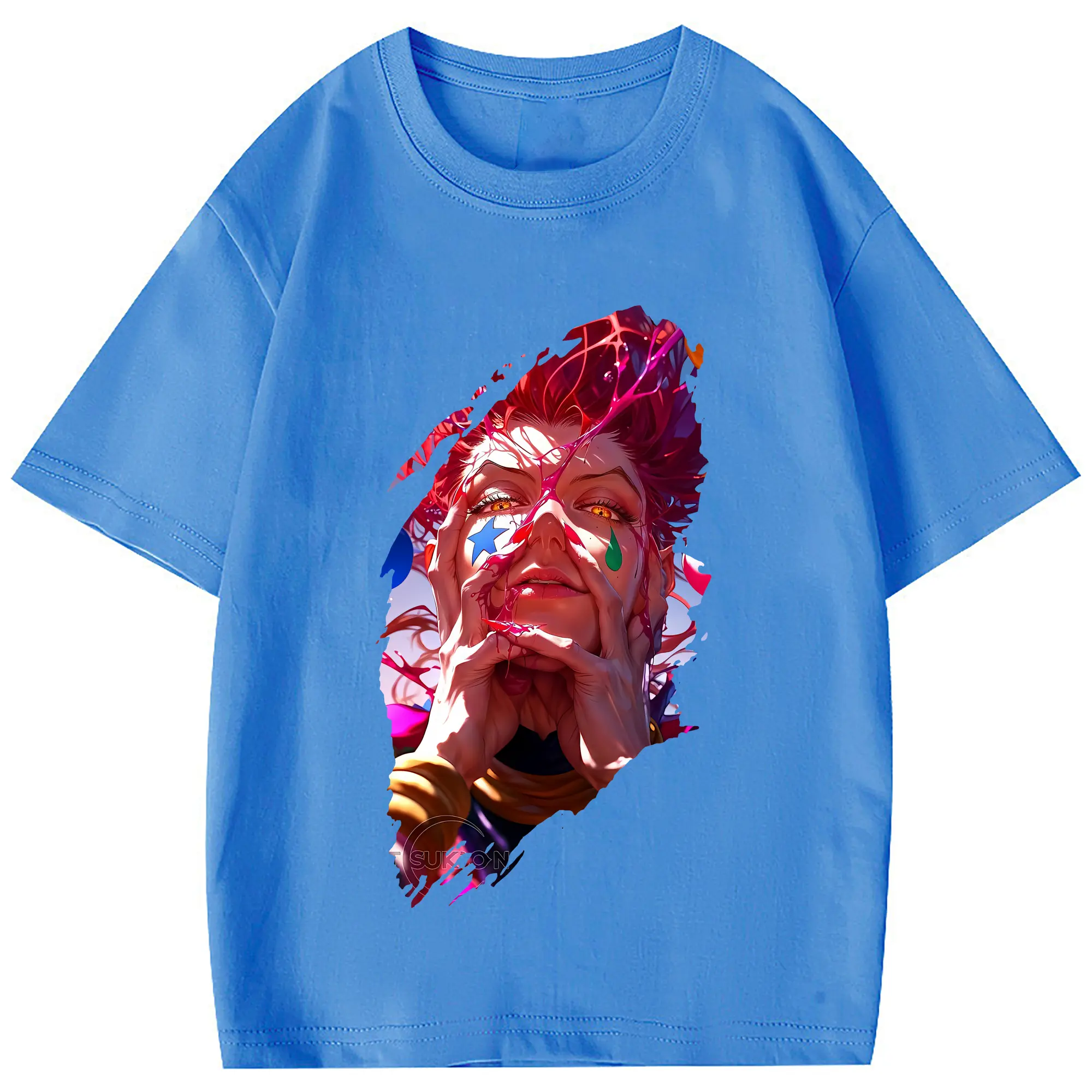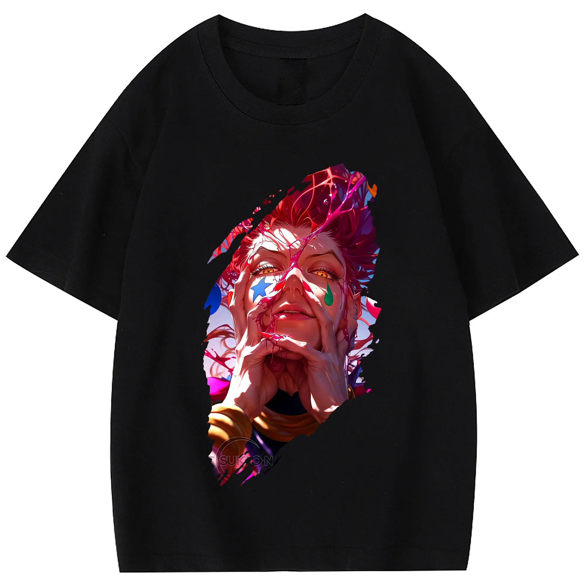 ハンター×ハンター グッズ ヒソカ=モロウ - 綿100% 半袖Tシャツ ・ フロントプリント ・ 快適 通気性 ・ 日常使い 散歩 スポーツ用