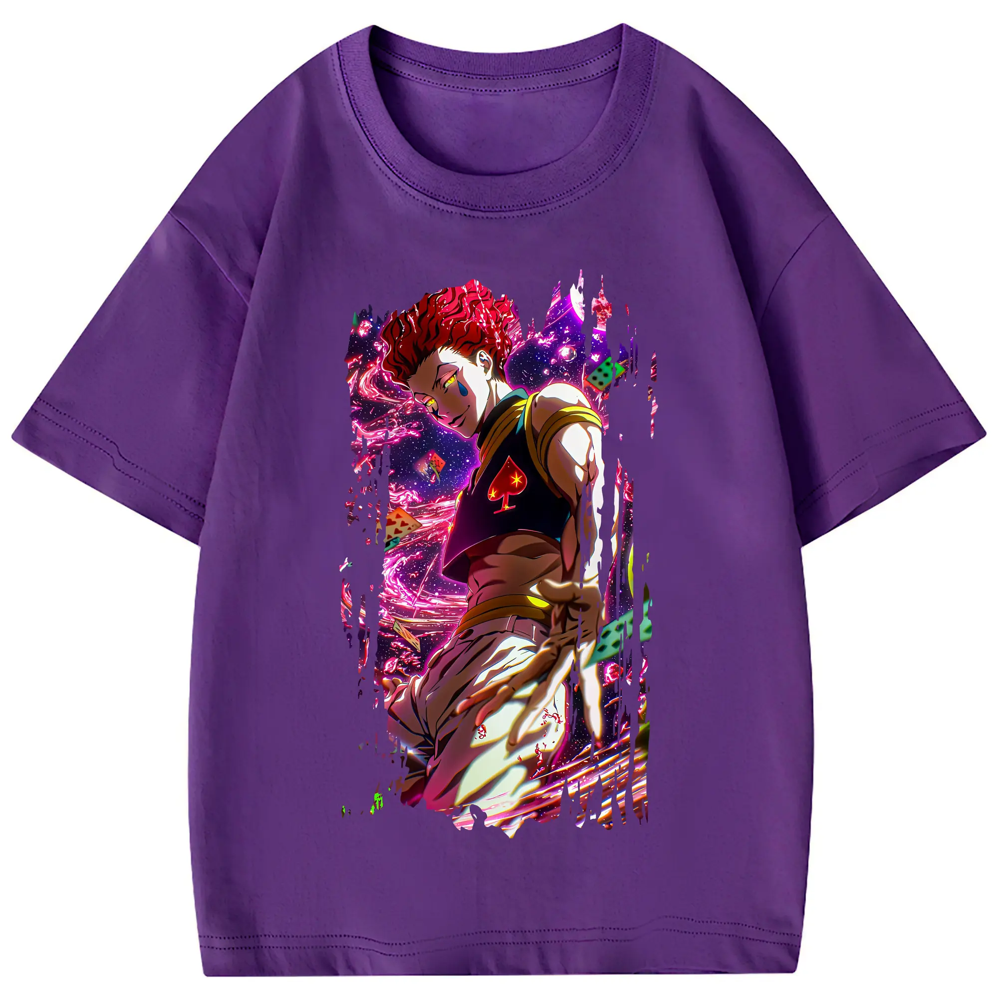 ハンター×ハンター グッズ ヒソカ=モロウ - 綿100% 半袖Tシャツ ・ フロントプリント ・ 快適 通気性 ・ 日常使い 散歩 スポーツ用