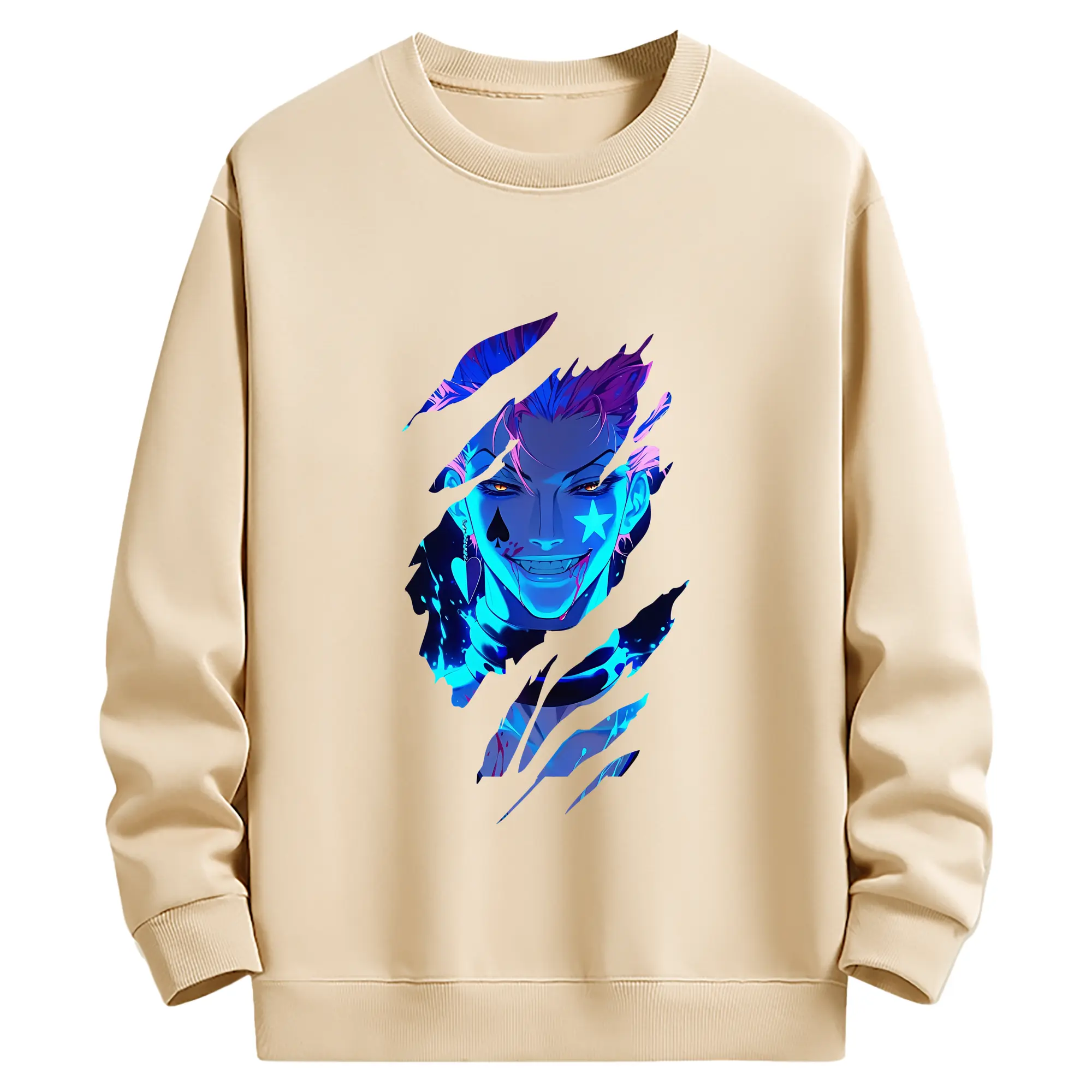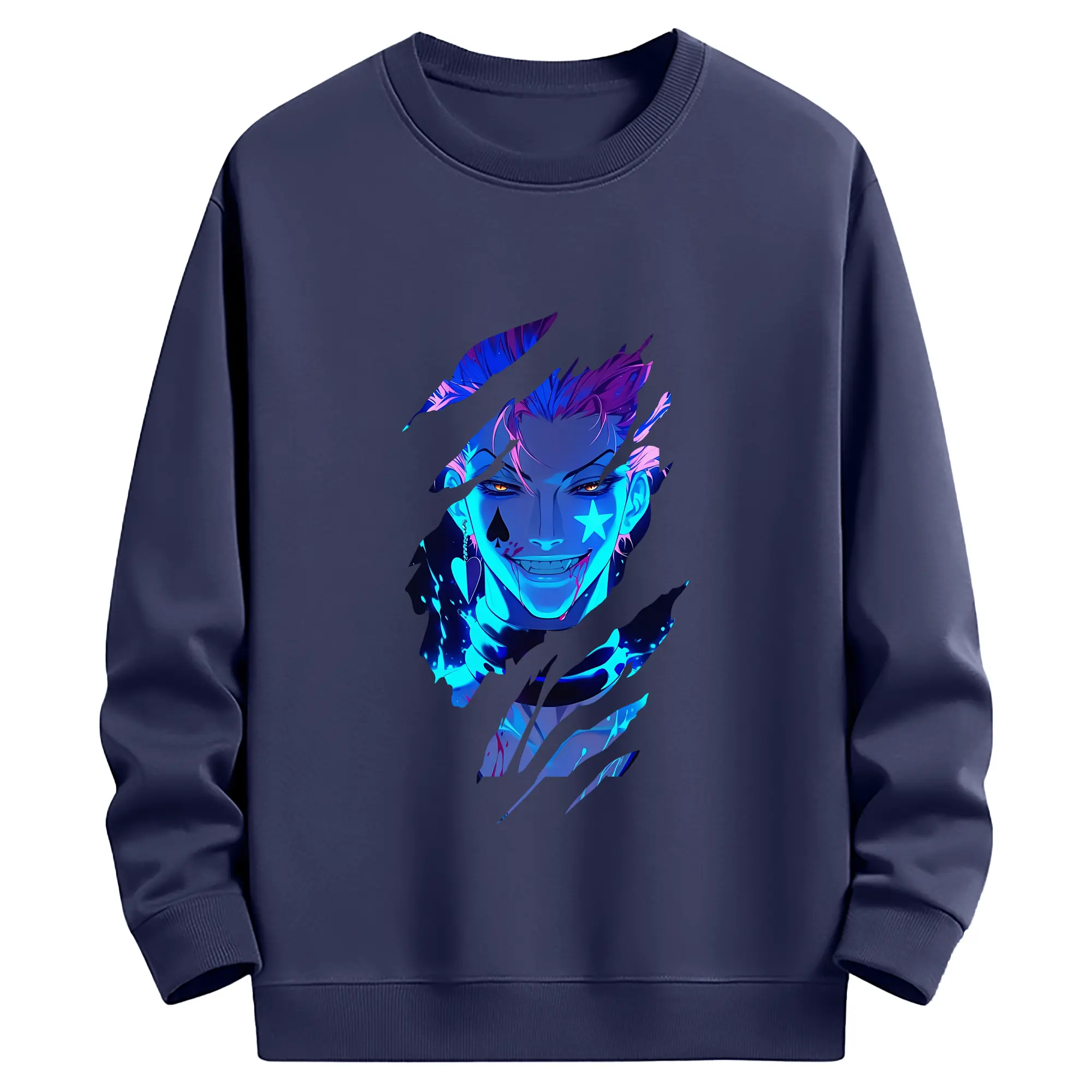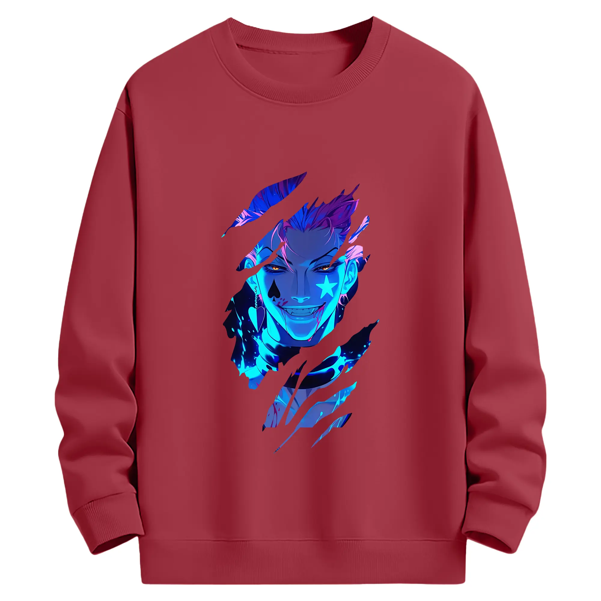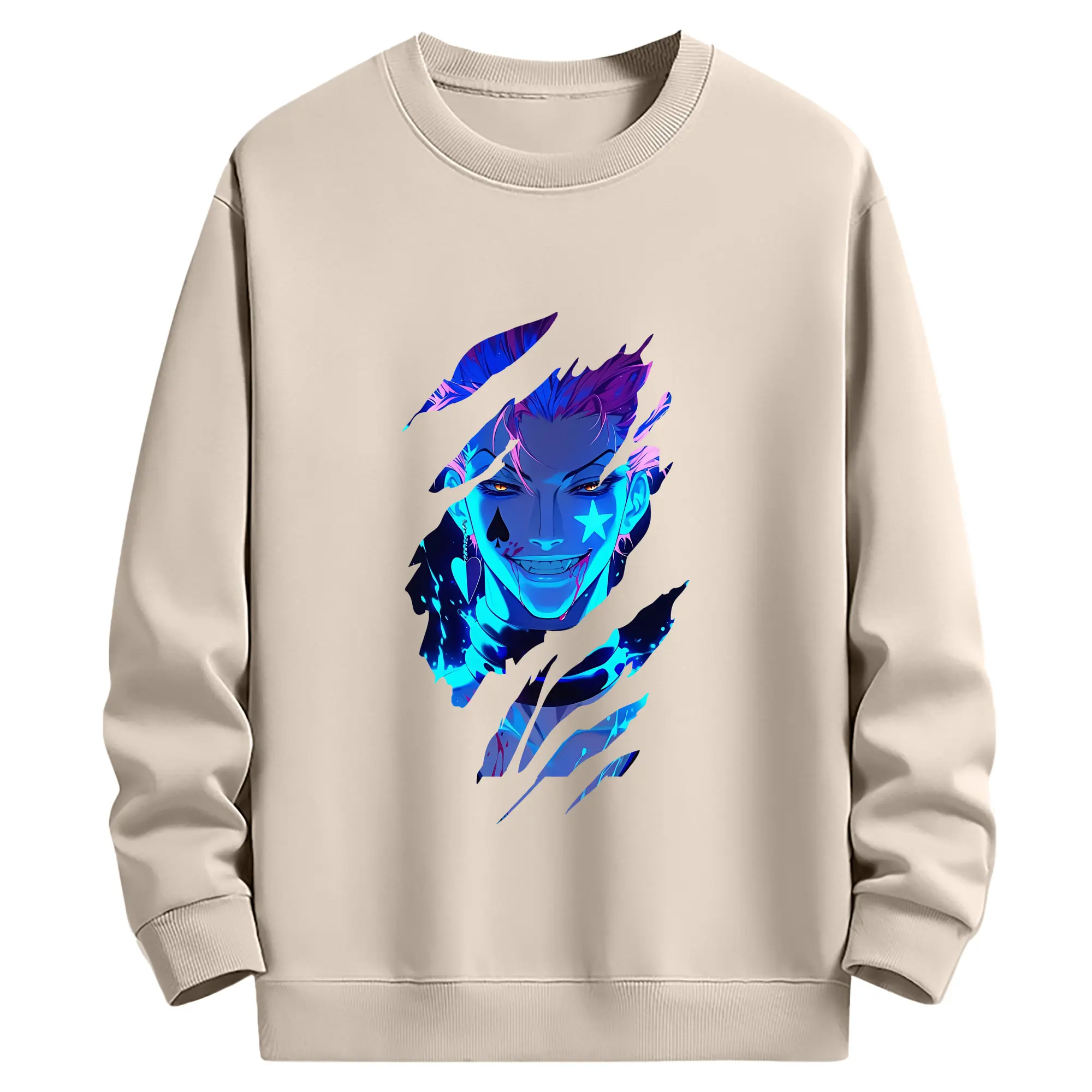 ハンター×ハンター グッズ ヒソカ=モロウ - 薄手 クルーネック スウェット 裏毛260g · ポリエステル 春秋向け カジュアル 男女兼用 · トレーナー デイリー スポーツ 散歩に最適
