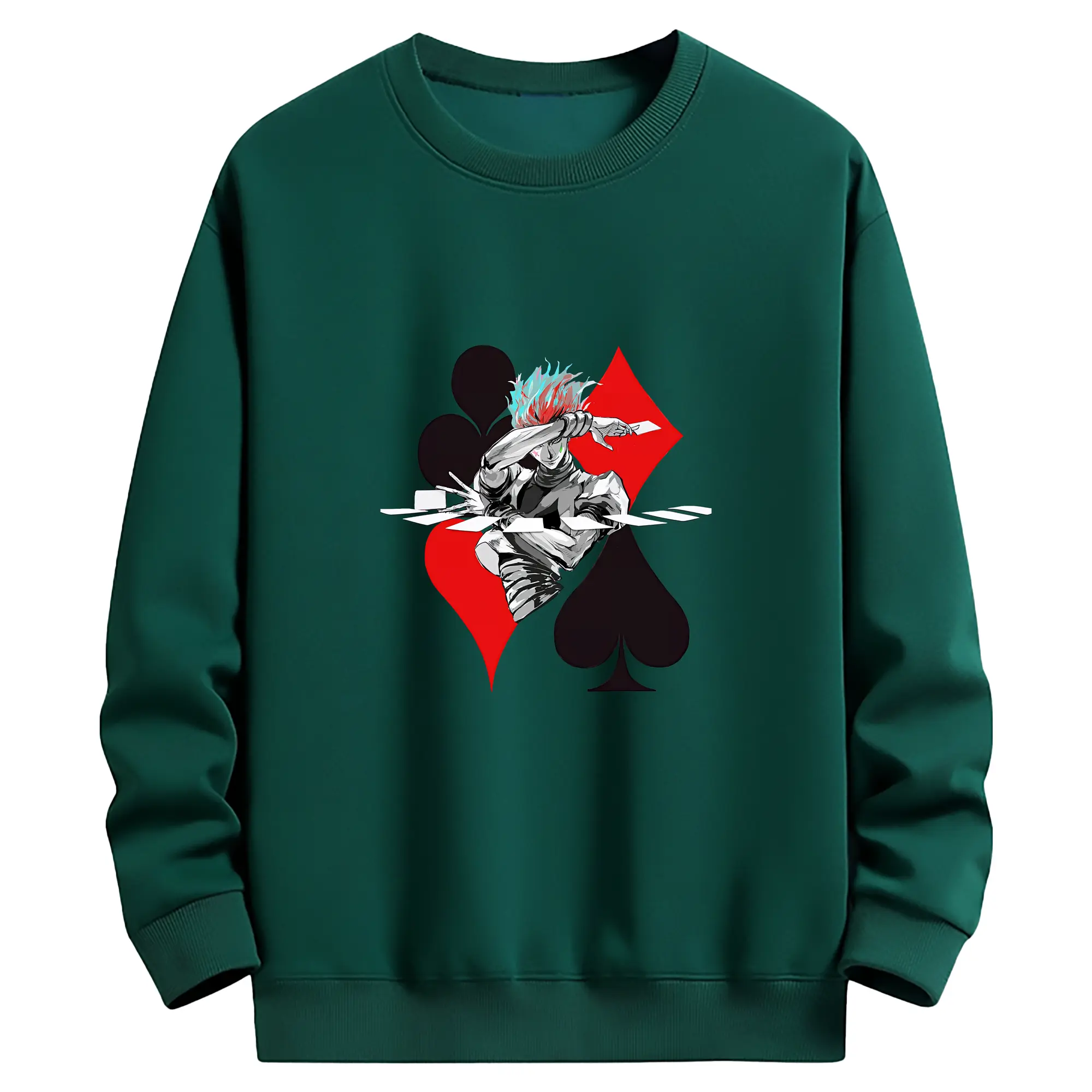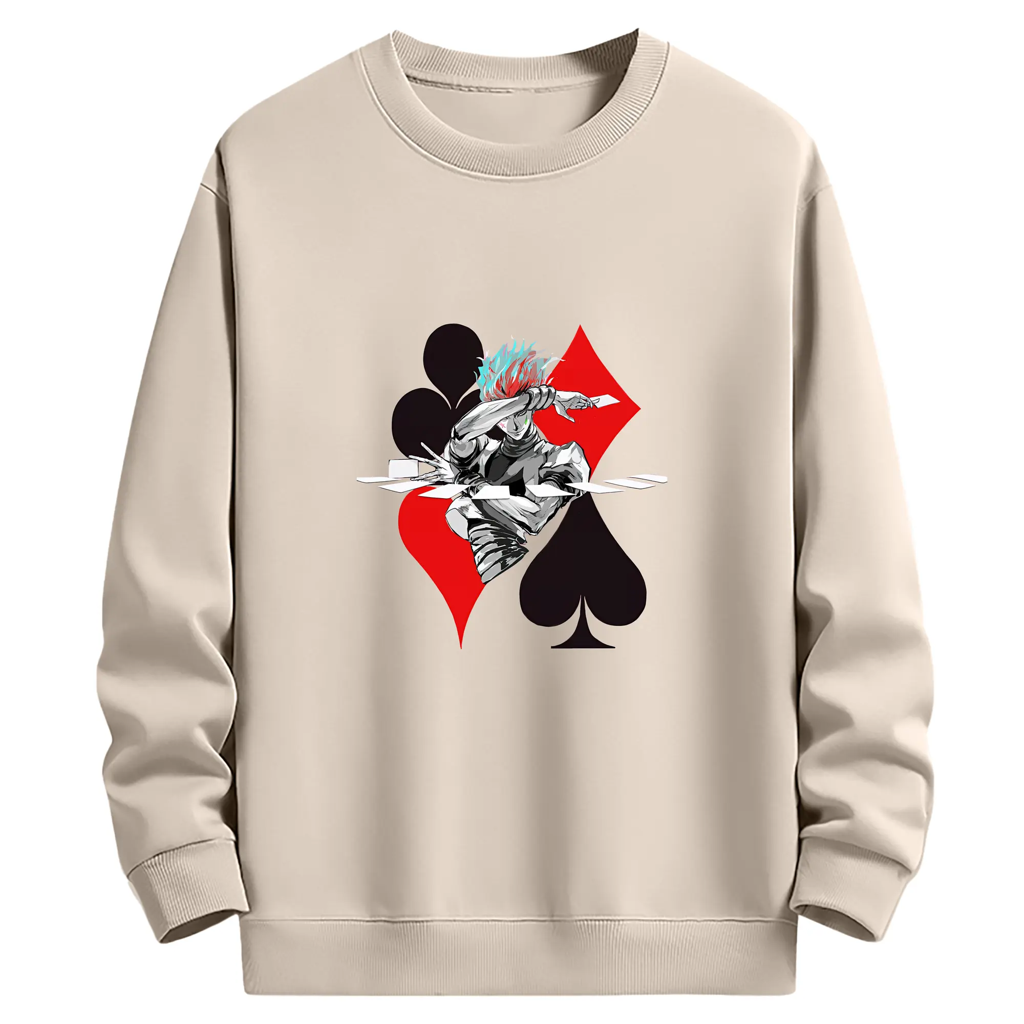 ハンター×ハンター グッズ ヒソカ=モロウ - 薄手 クルーネック スウェット 裏毛260g · ポリエステル 春秋向け カジュアル 男女兼用 · トレーナー デイリー スポーツ 散歩に最適