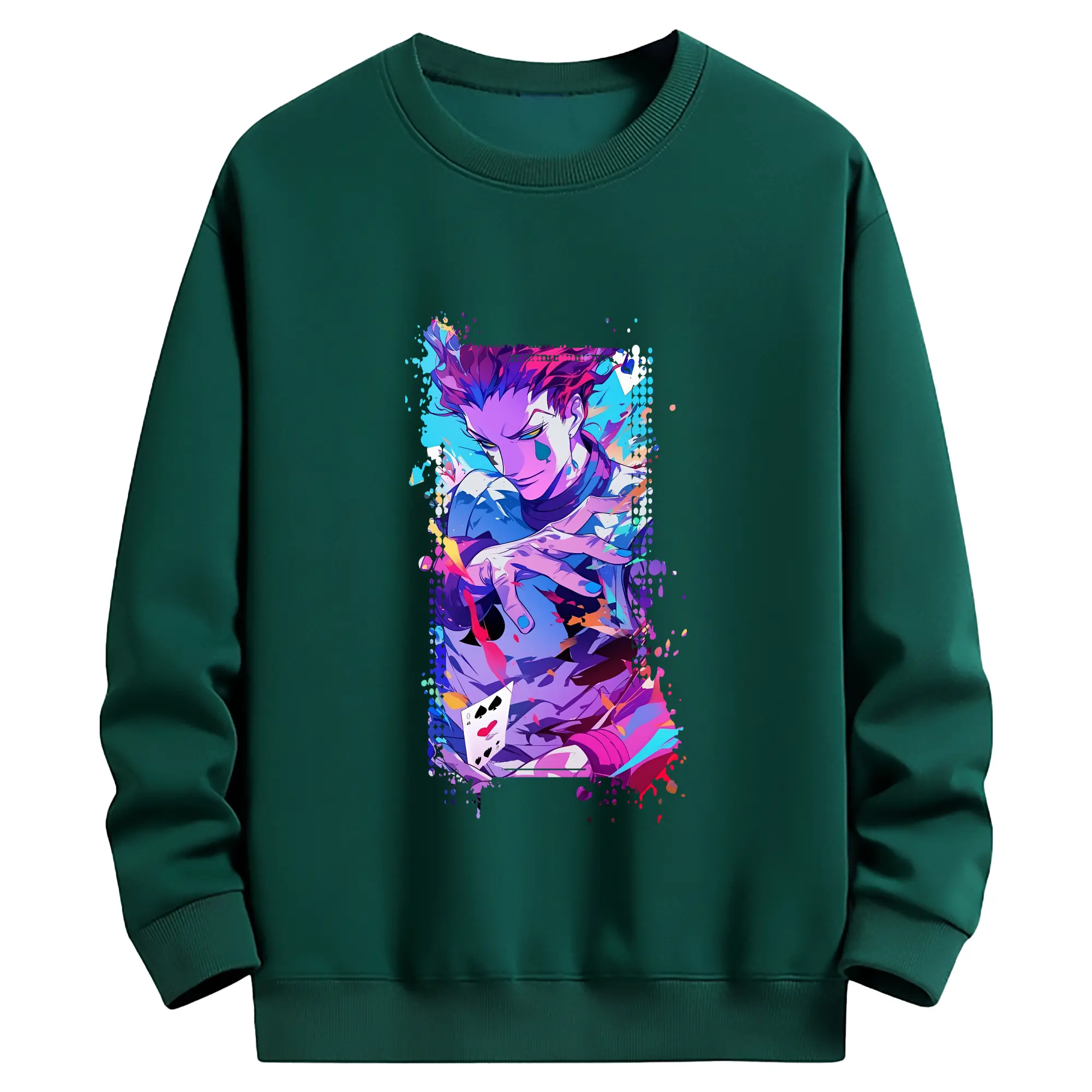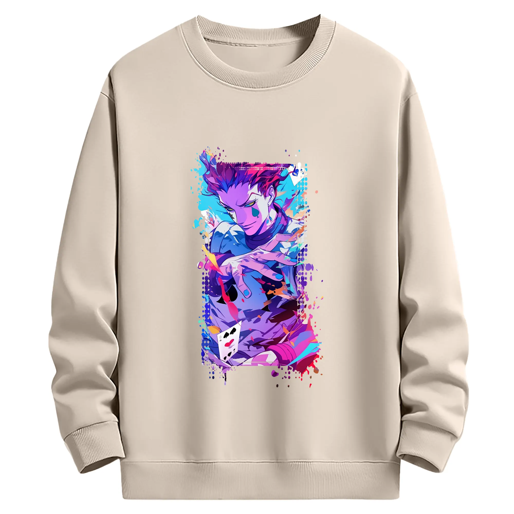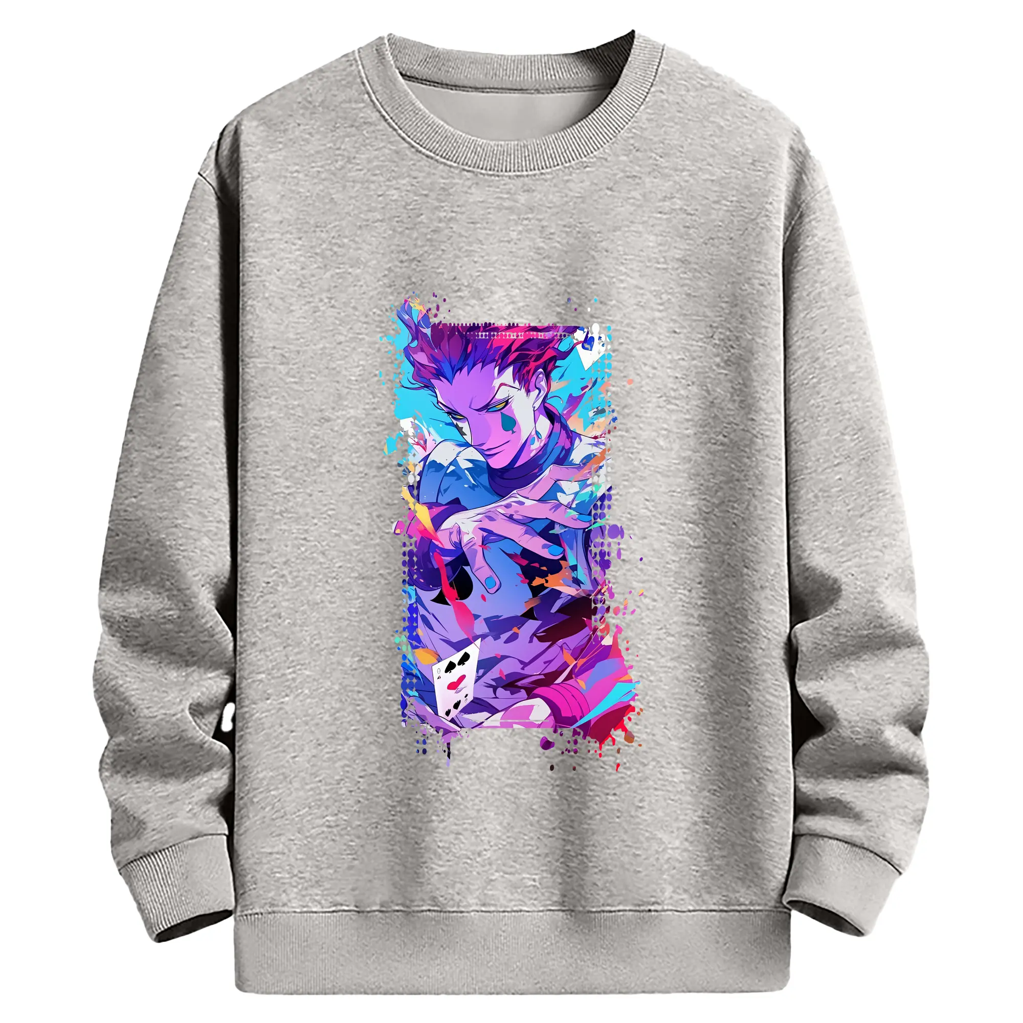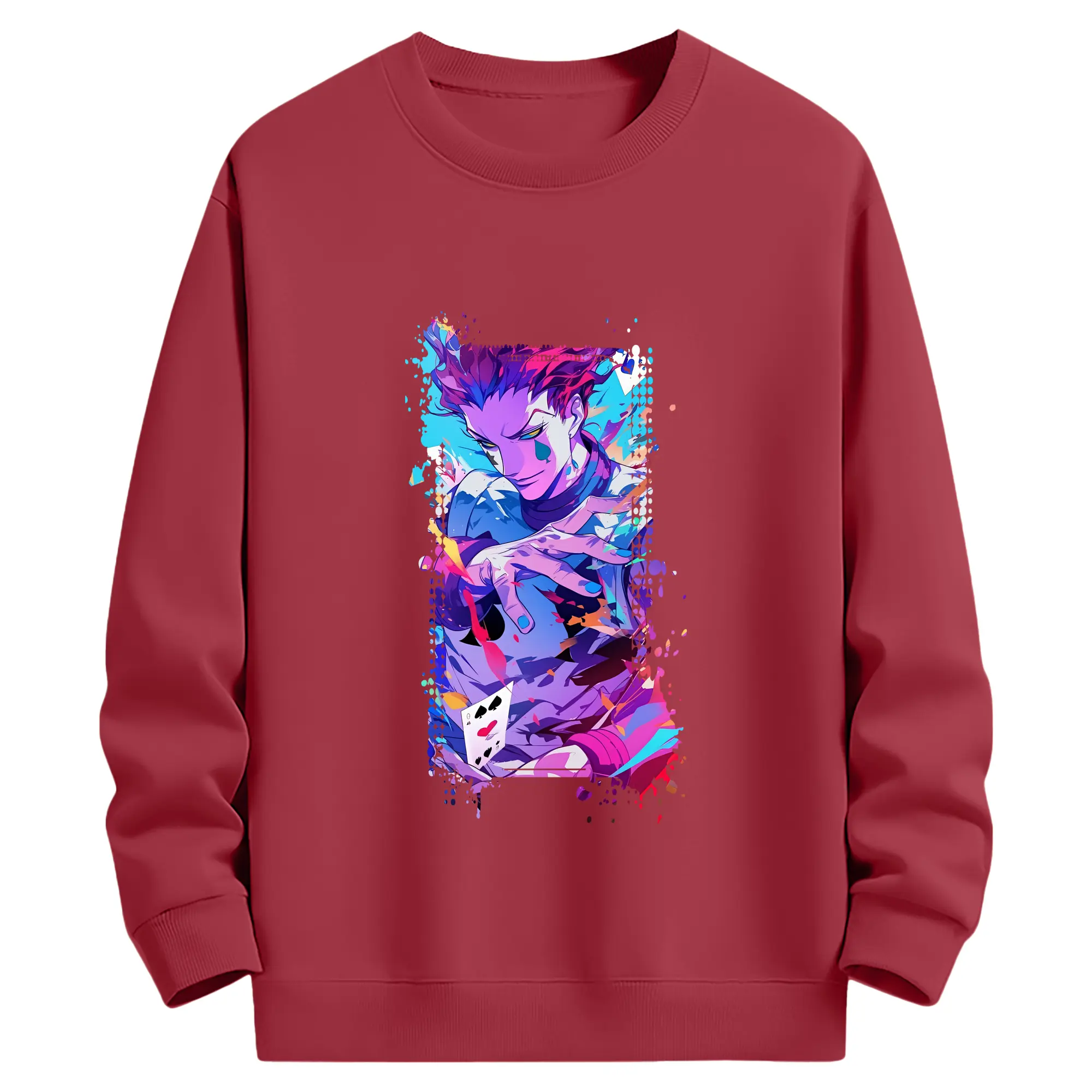 ハンター×ハンター グッズ ヒソカ=モロウ - 薄手 クルーネック スウェット 裏毛260g · ポリエステル 春秋向け カジュアル 男女兼用 · トレーナー デイリー スポーツ 散歩に最適
