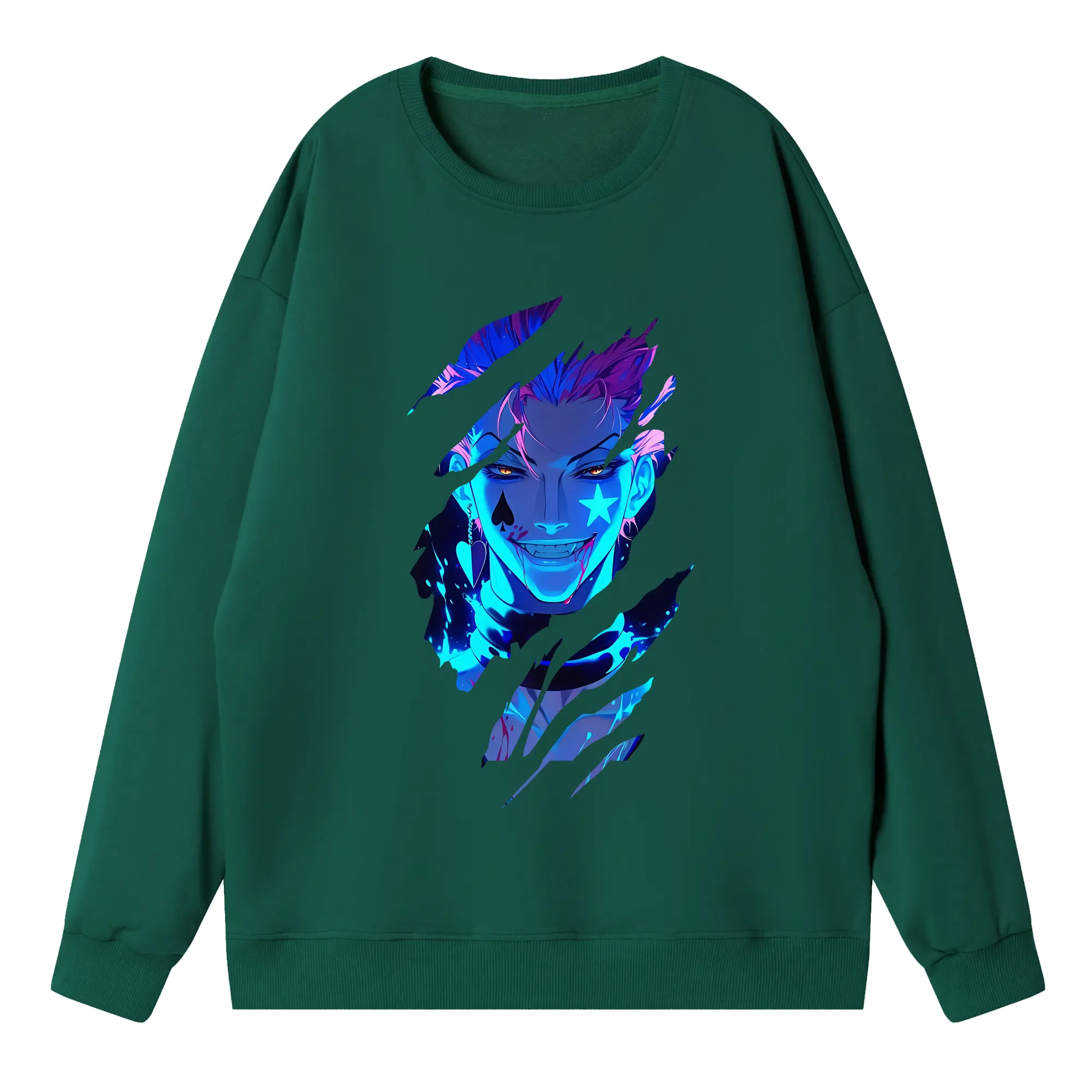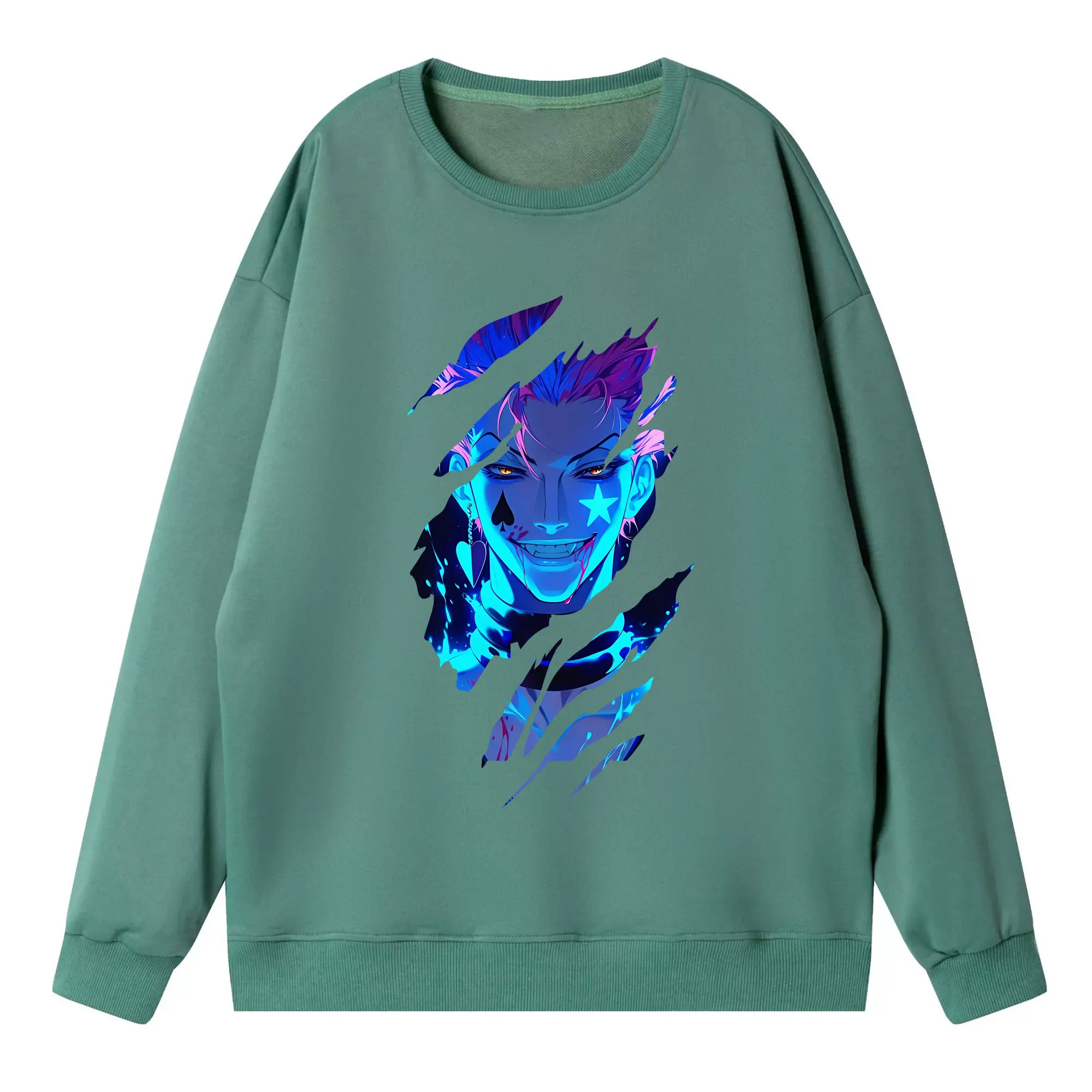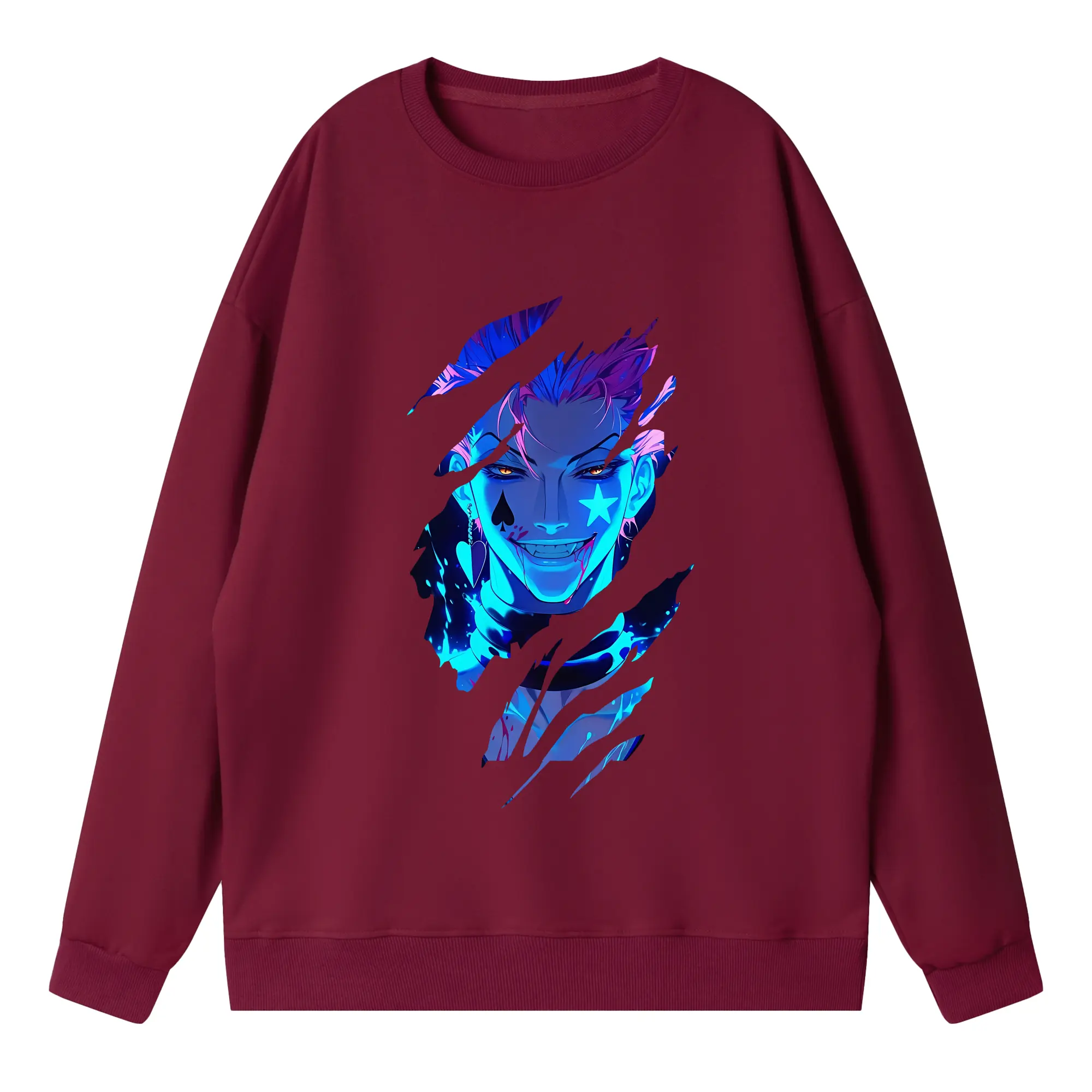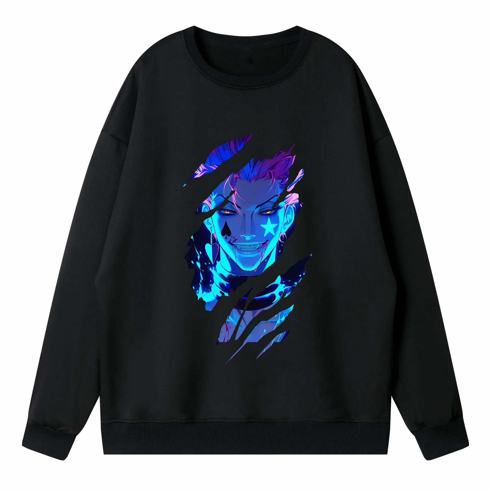 ハンター×ハンター グッズ ヒソカ=モロウ - 高品質 クルーネック スウェット ・ コットン59% ポリエステル41% ・ ユニセックス 長袖 トレーナー ・ カジュアル デイリー スポーツ 散歩用