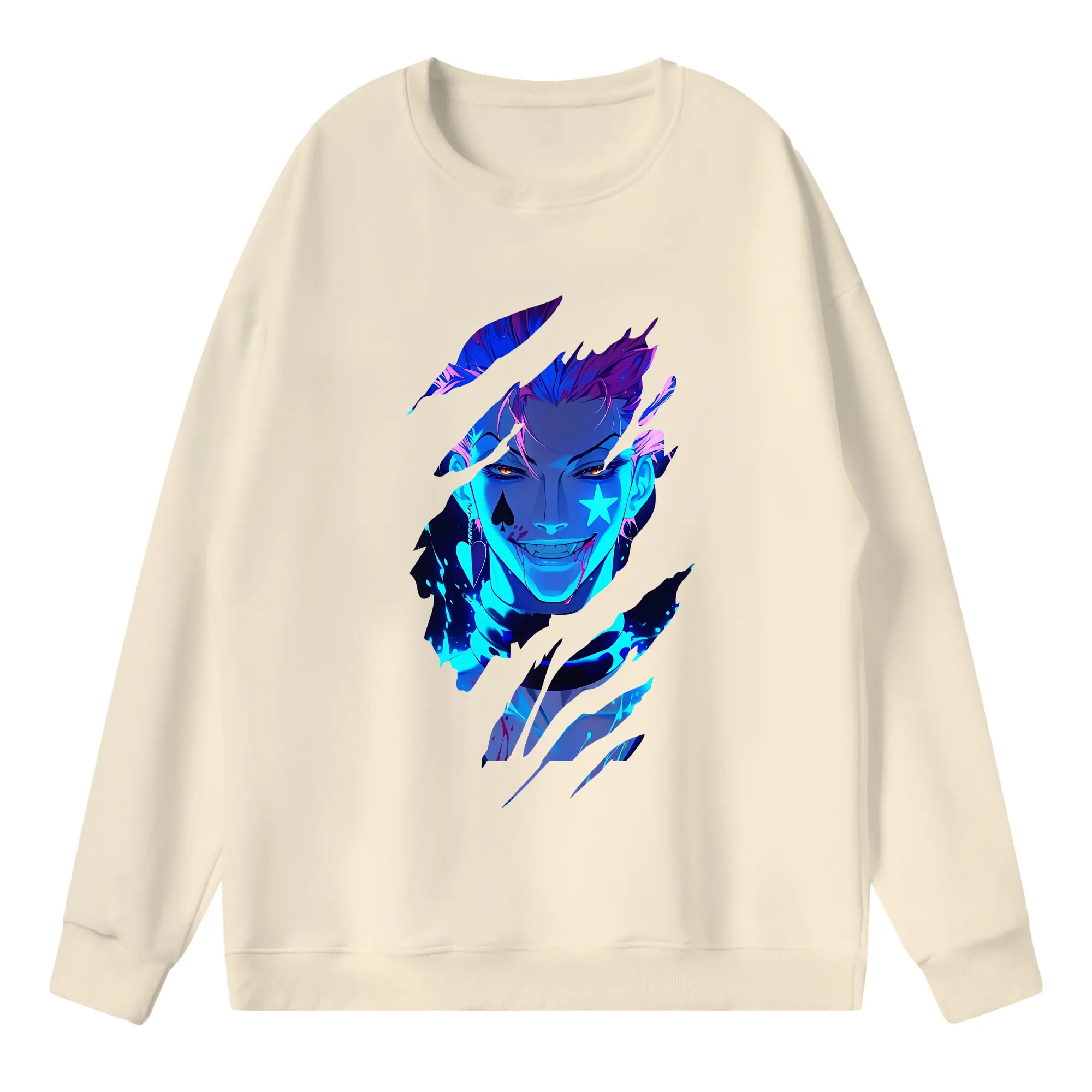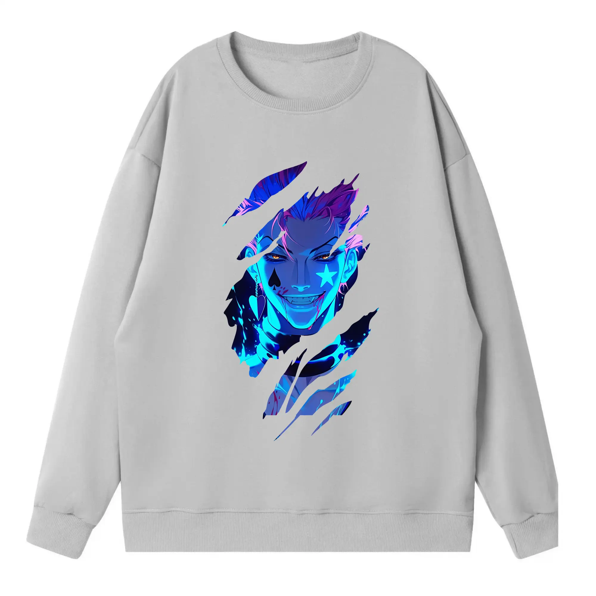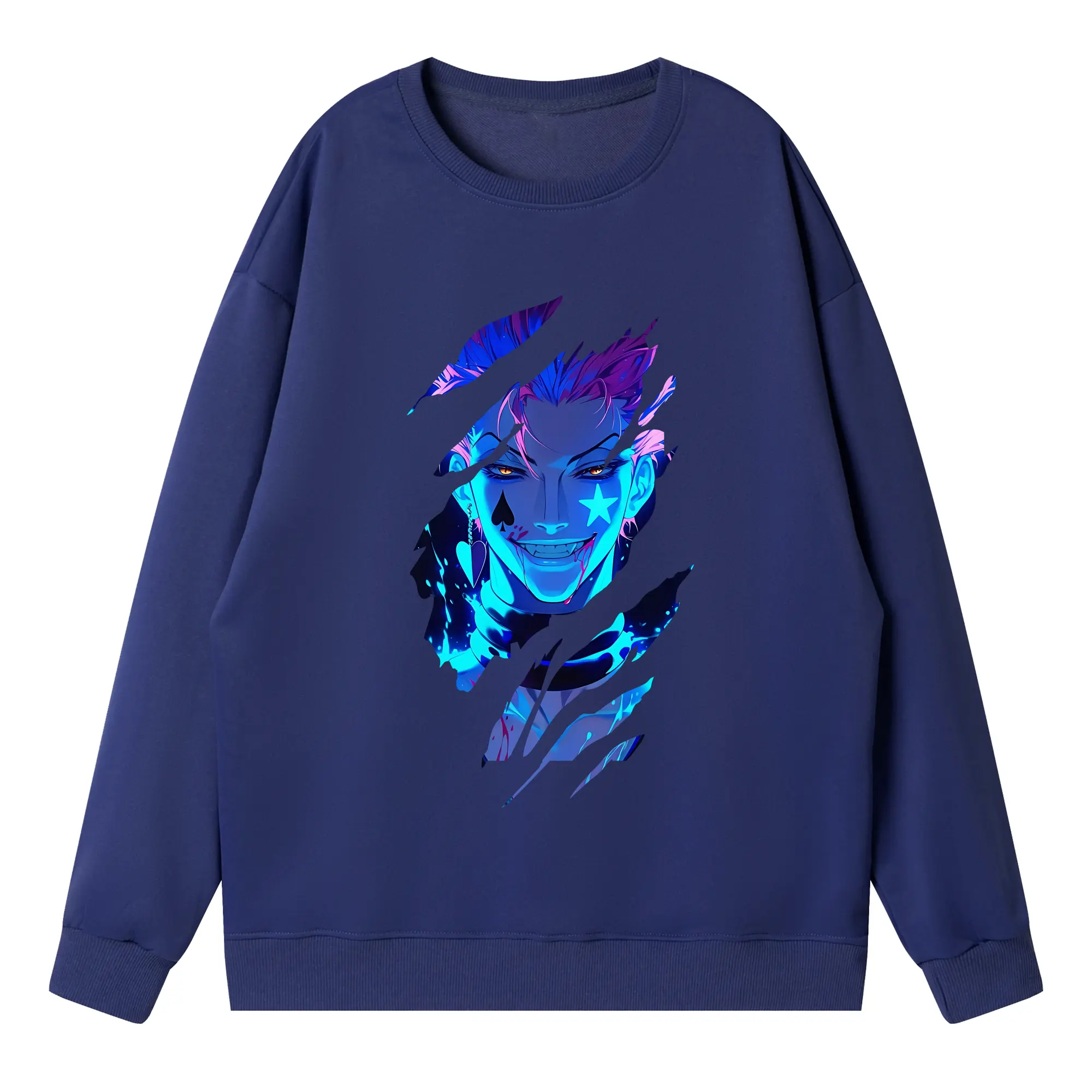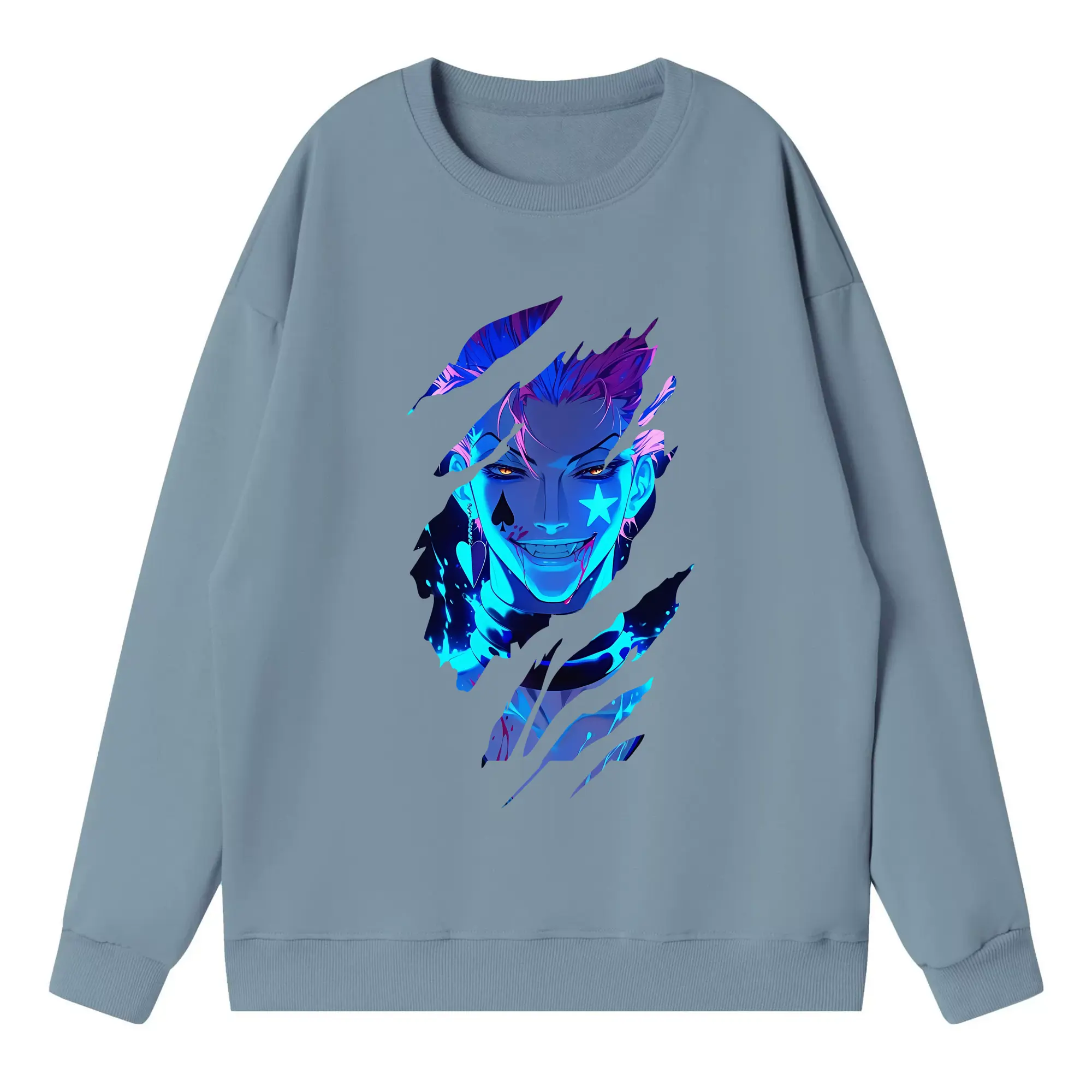 ハンター×ハンター グッズ ヒソカ=モロウ - 高品質 クルーネック スウェット ・ コットン59% ポリエステル41% ・ ユニセックス 長袖 トレーナー ・ カジュアル デイリー スポーツ 散歩用