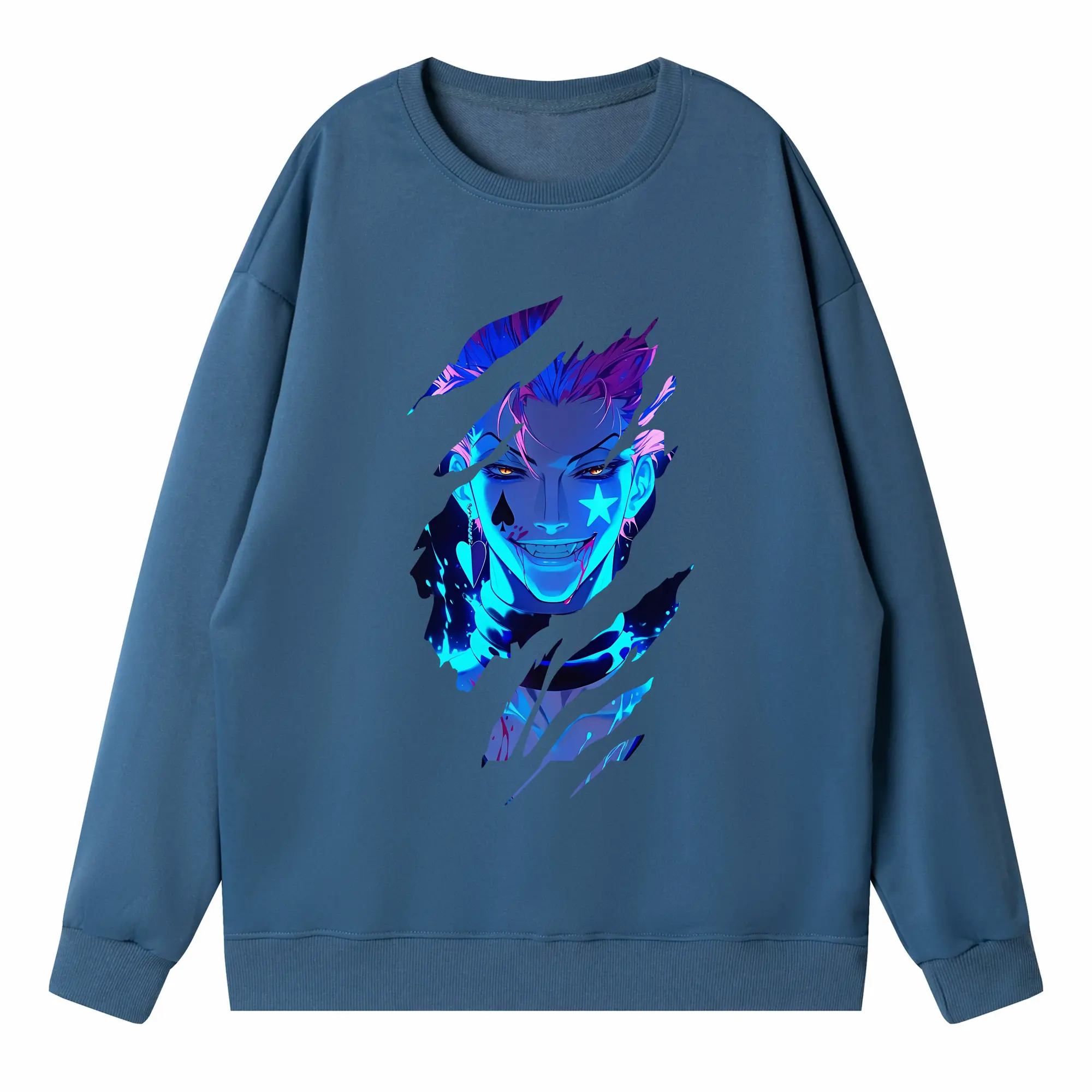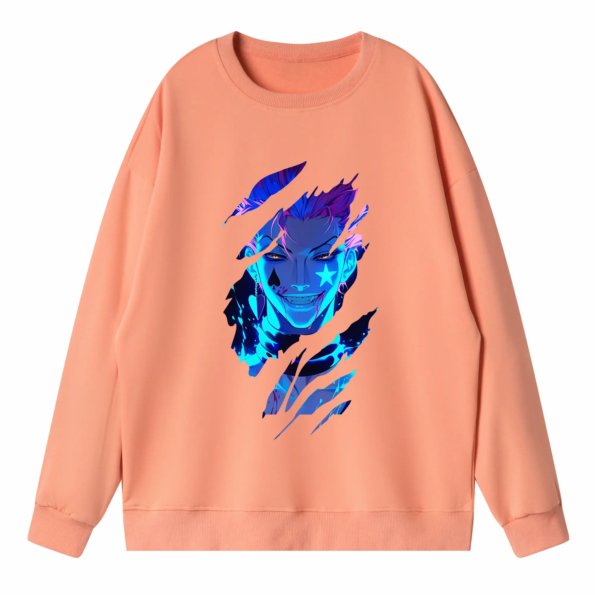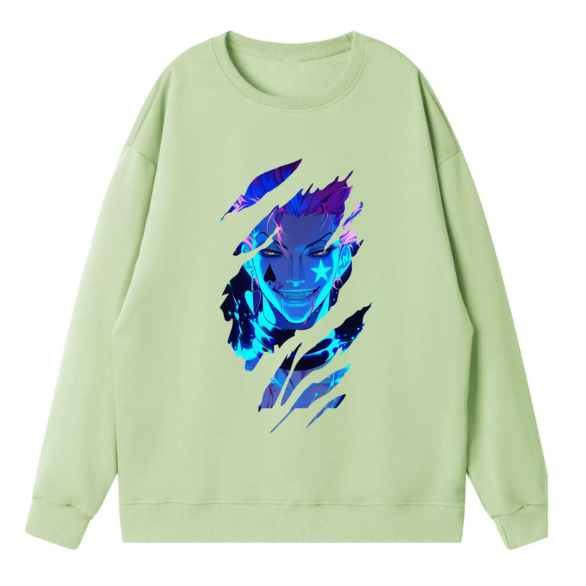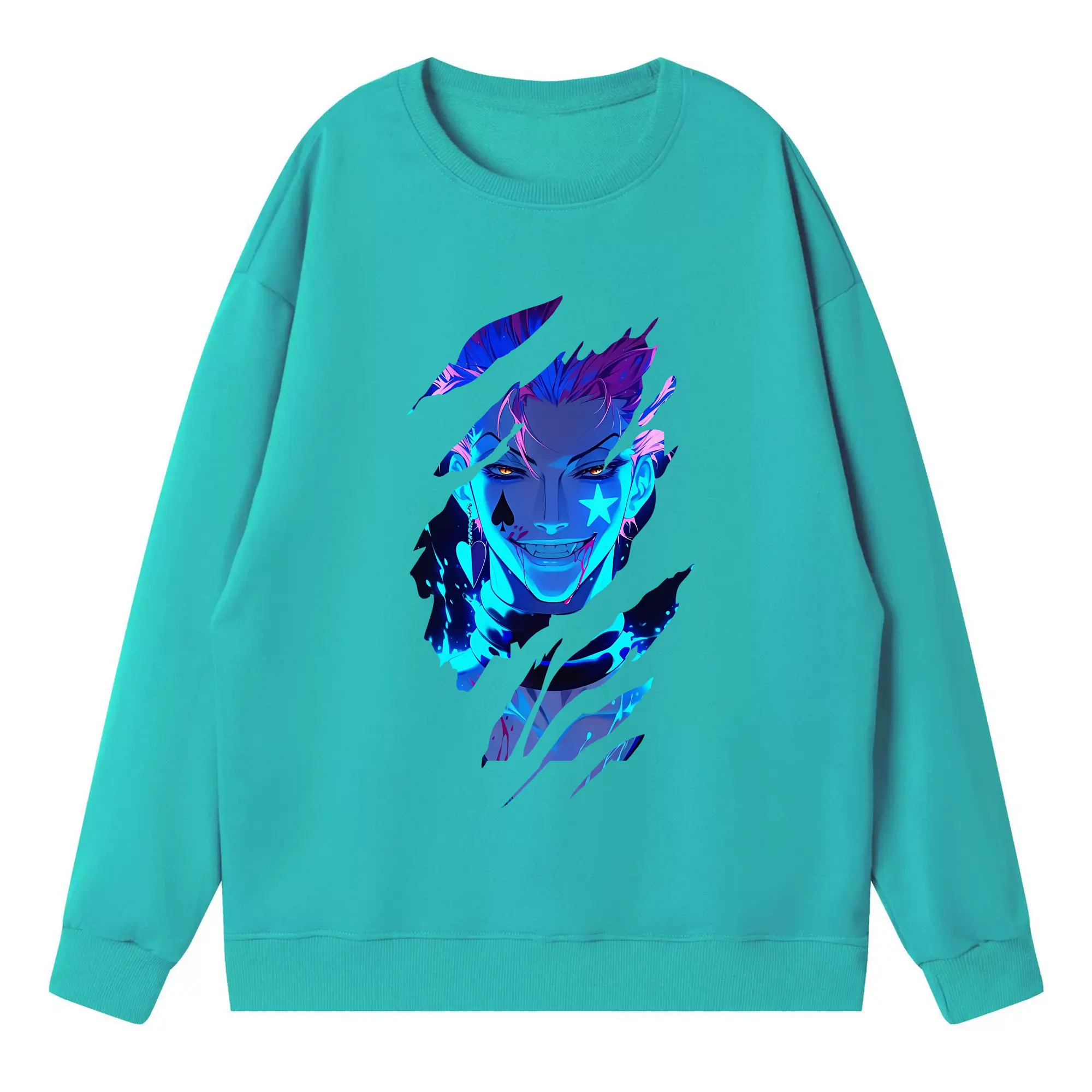 ハンター×ハンター グッズ ヒソカ=モロウ - 高品質 クルーネック スウェット ・ コットン59% ポリエステル41% ・ ユニセックス 長袖 トレーナー ・ カジュアル デイリー スポーツ 散歩用