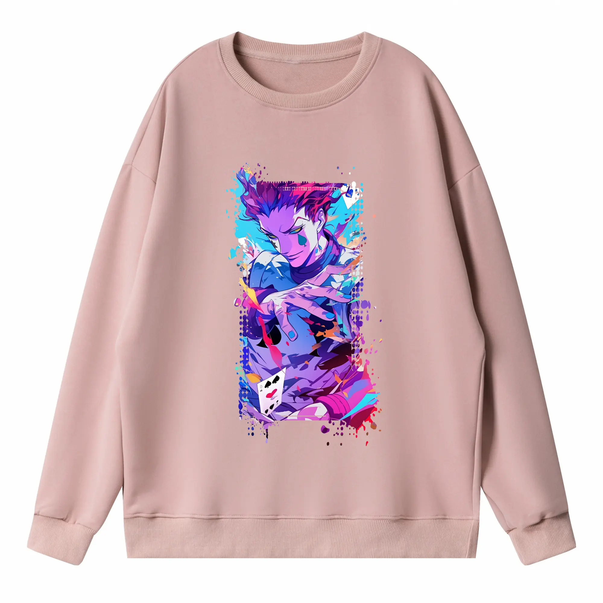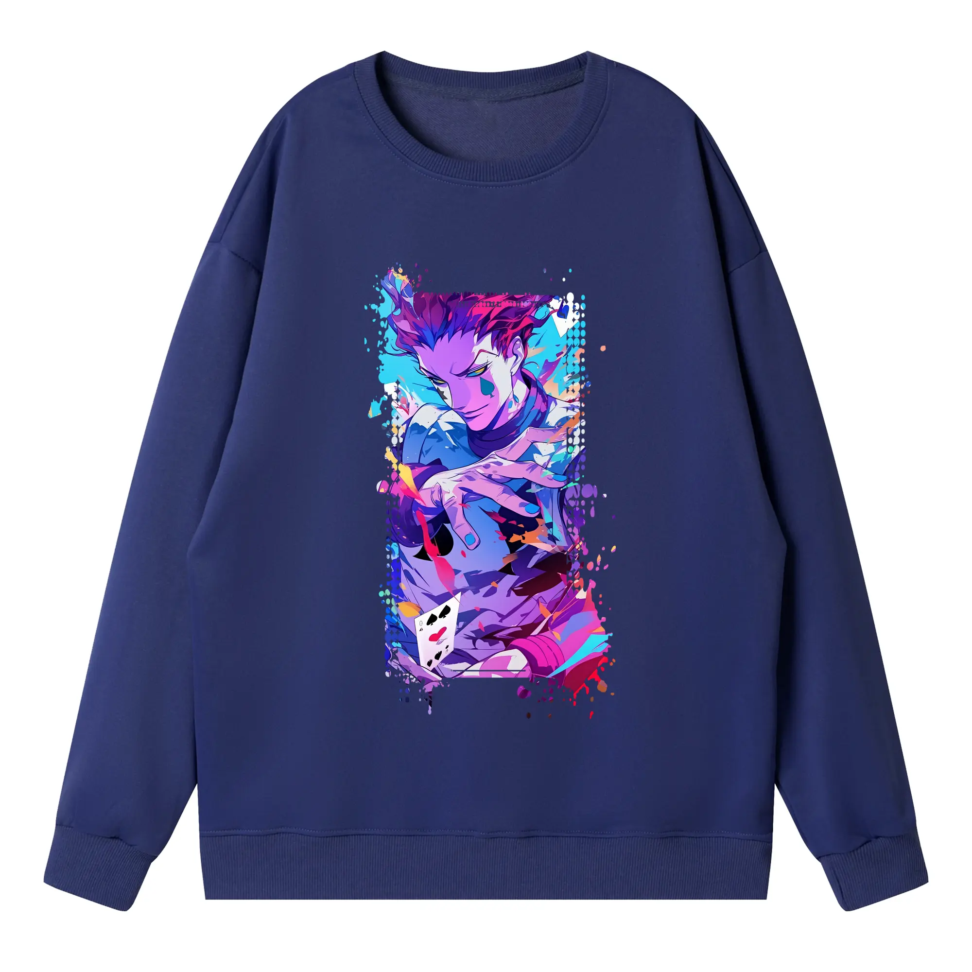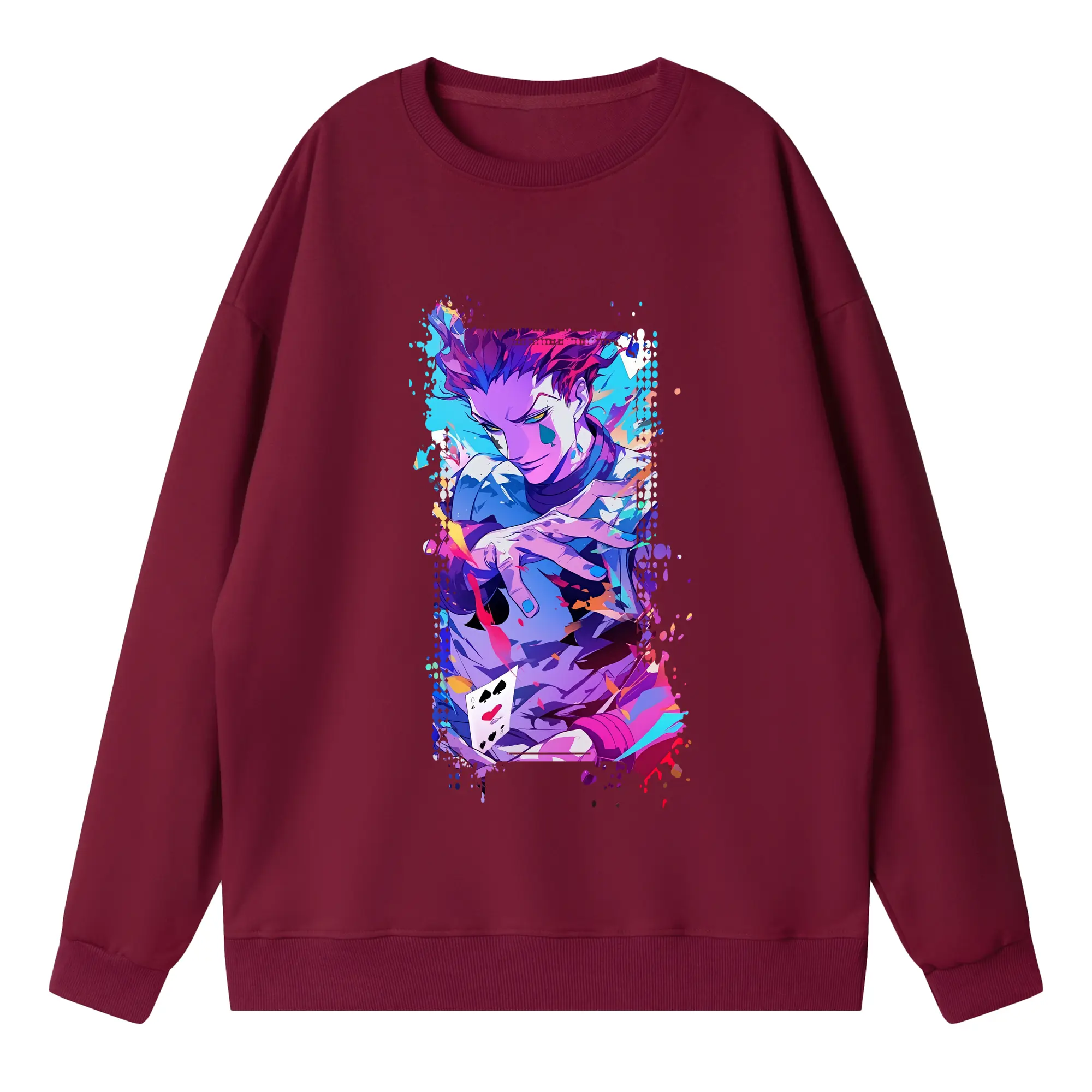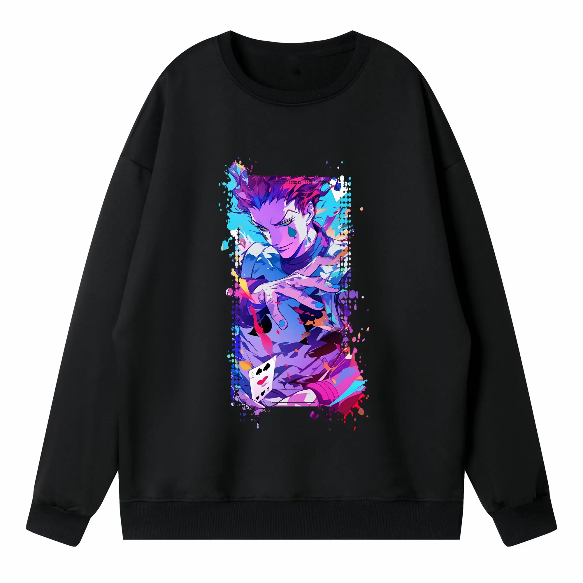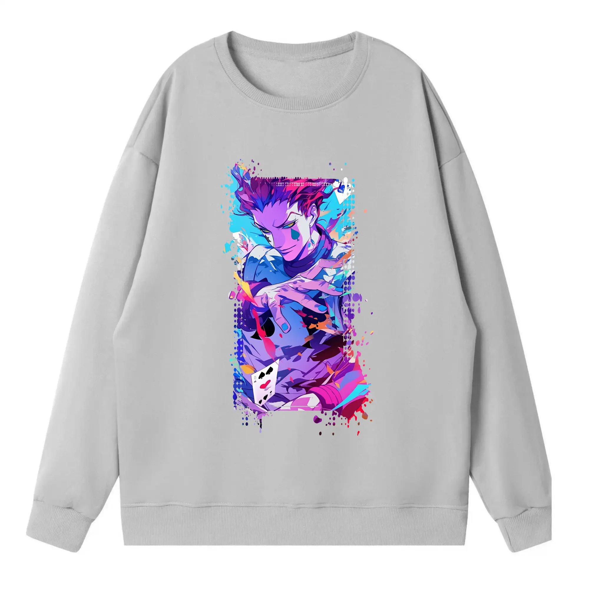 ハンター×ハンター グッズ ヒソカ=モロウ - 高品質 クルーネック スウェット ・ コットン59% ポリエステル41% ・ ユニセックス 長袖 トレーナー ・ カジュアル デイリー スポーツ 散歩用