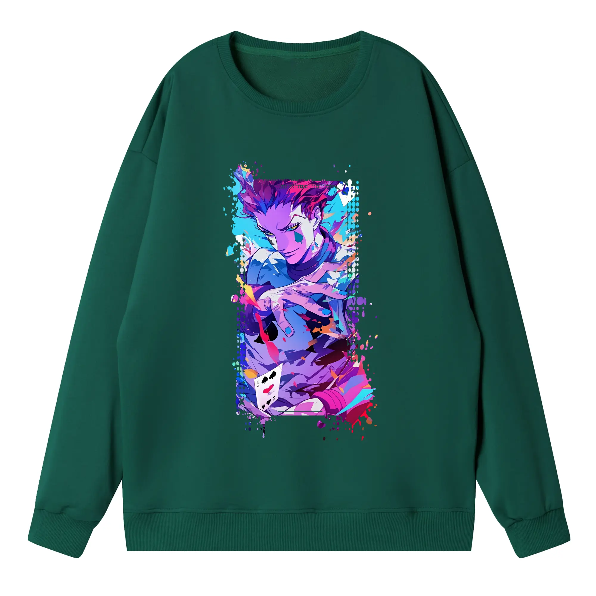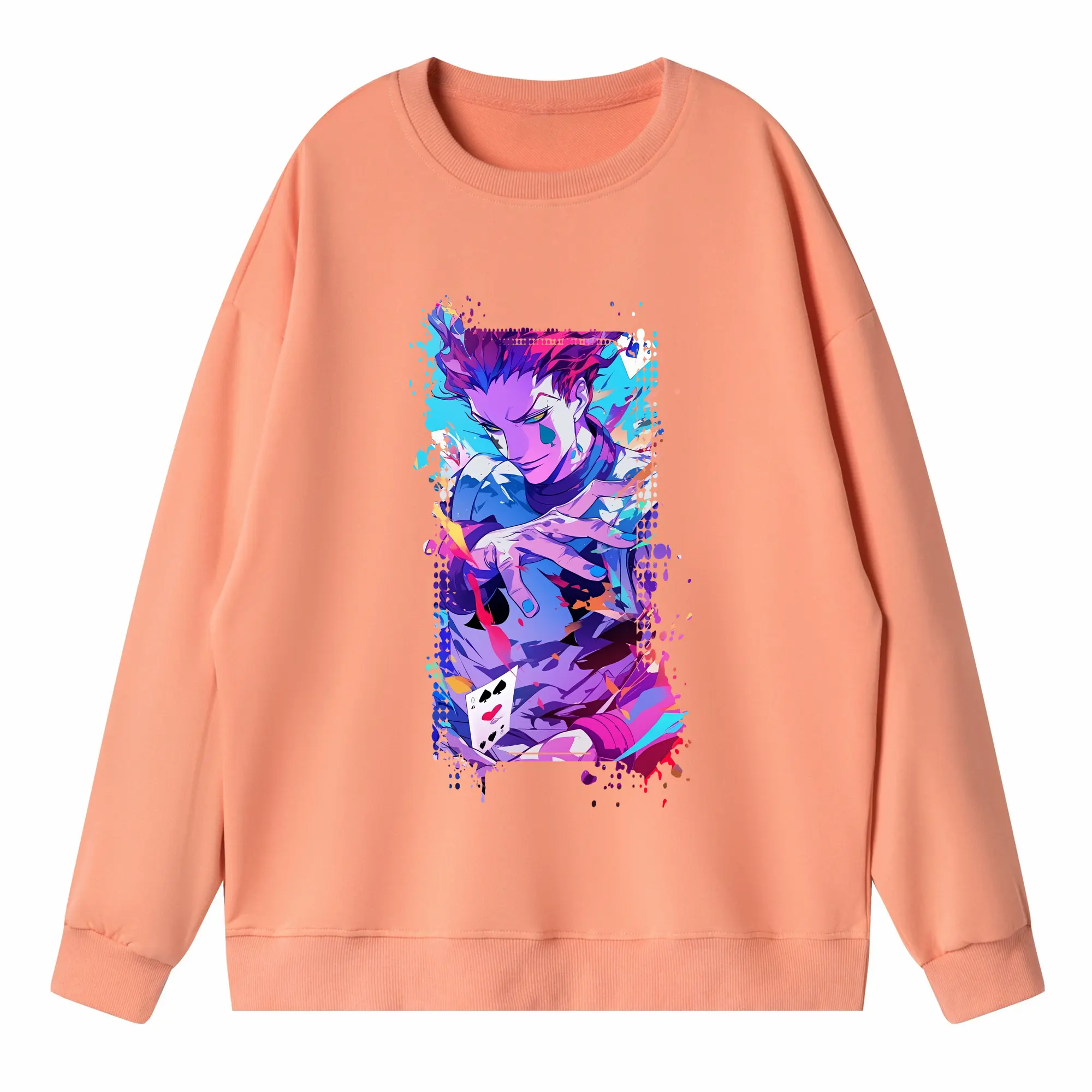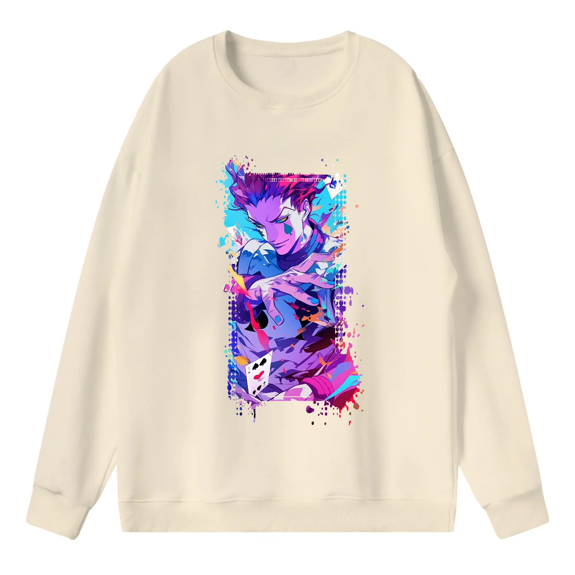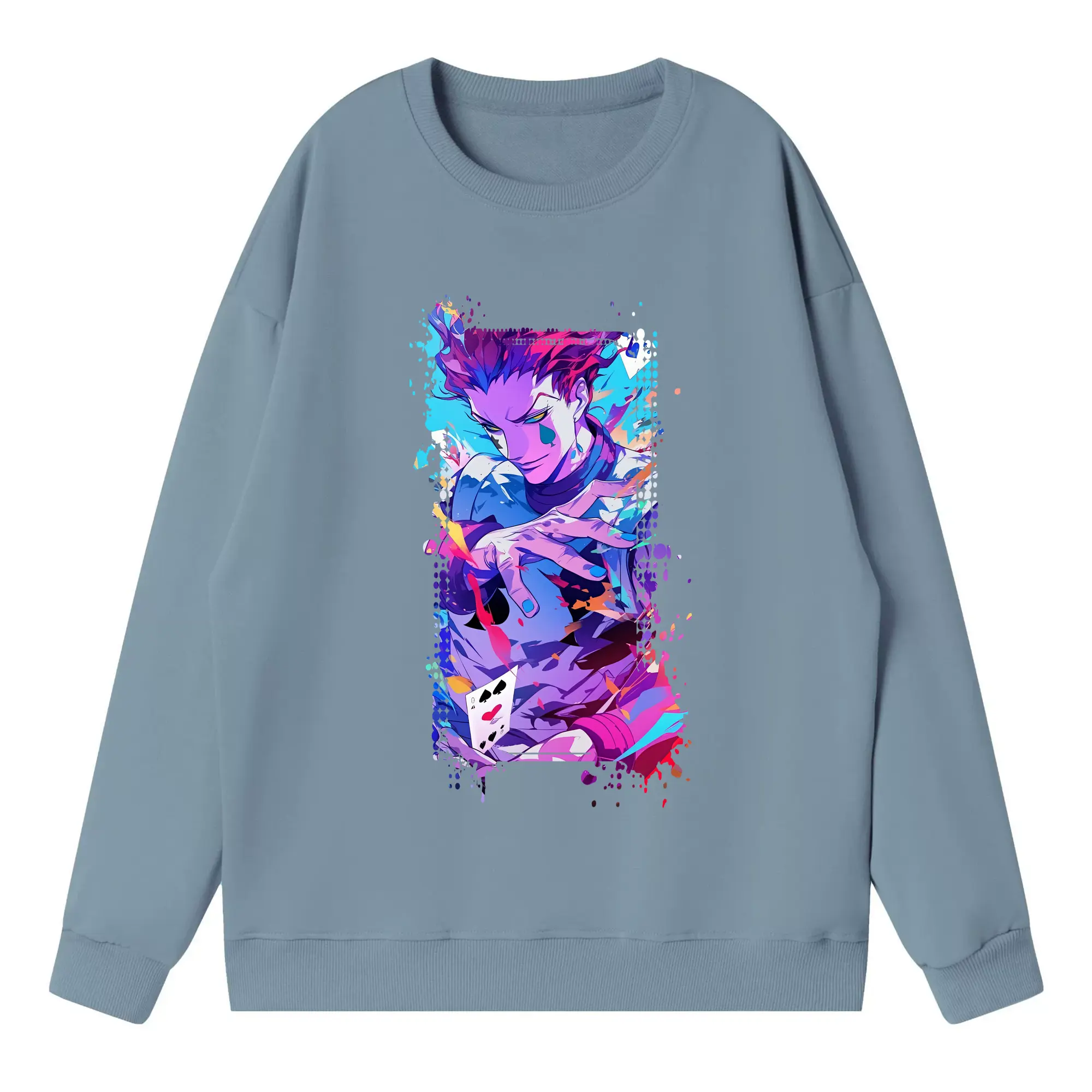 ハンター×ハンター グッズ ヒソカ=モロウ - 高品質 クルーネック スウェット ・ コットン59% ポリエステル41% ・ ユニセックス 長袖 トレーナー ・ カジュアル デイリー スポーツ 散歩用