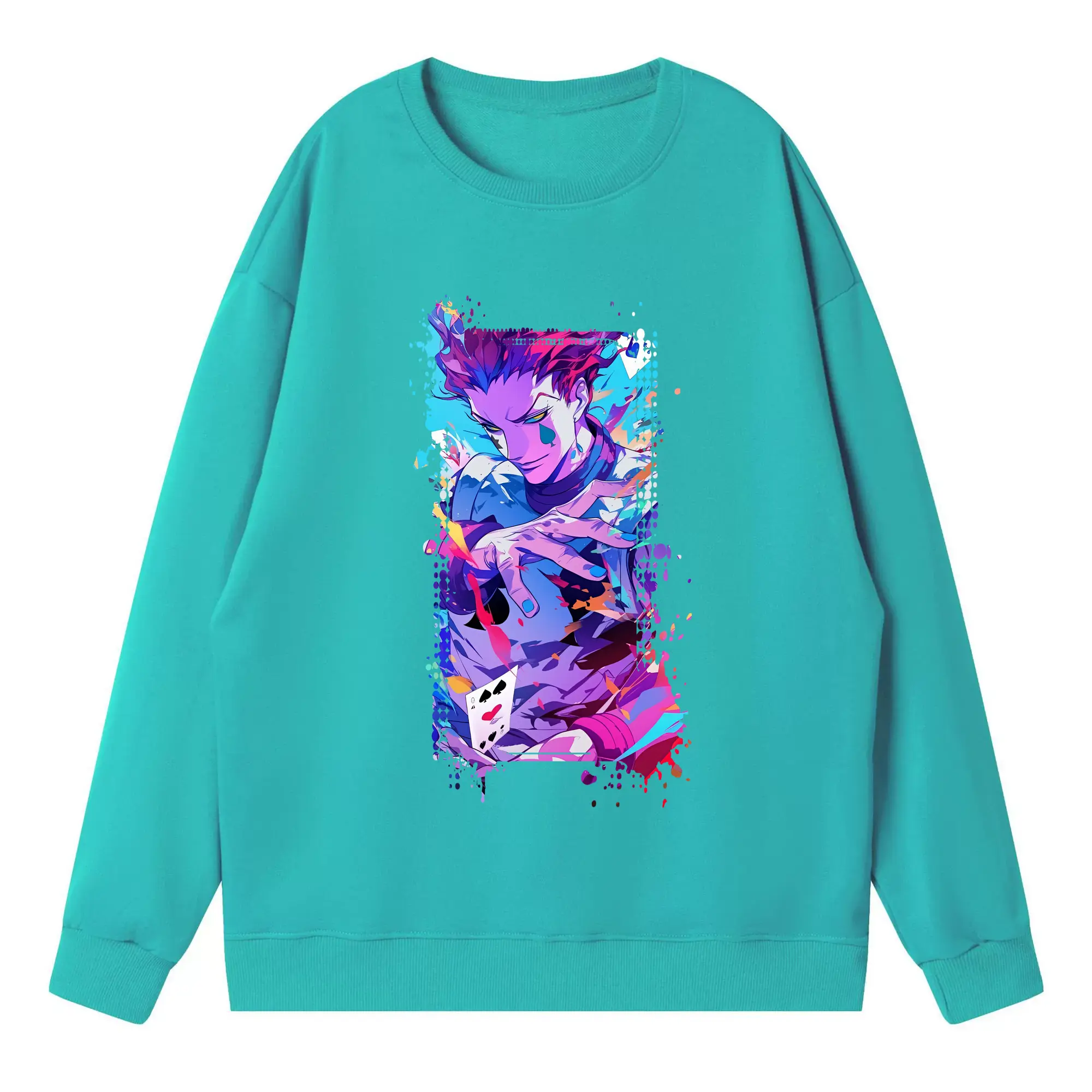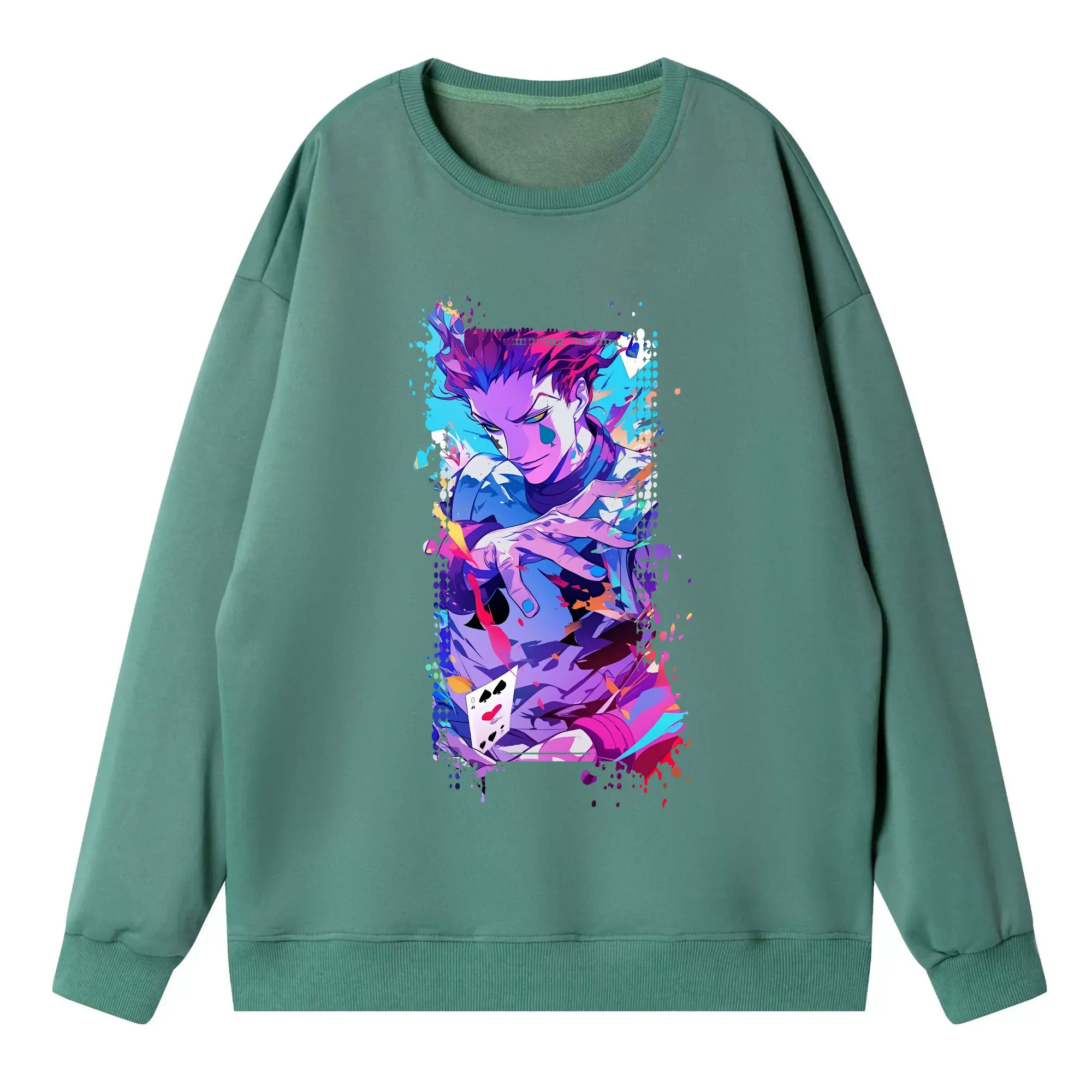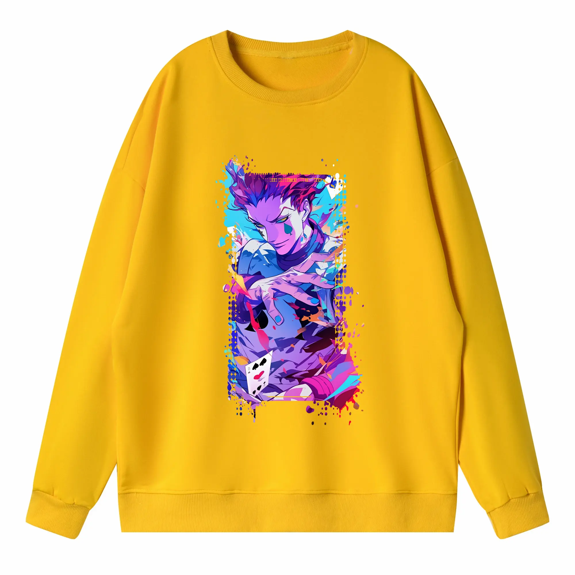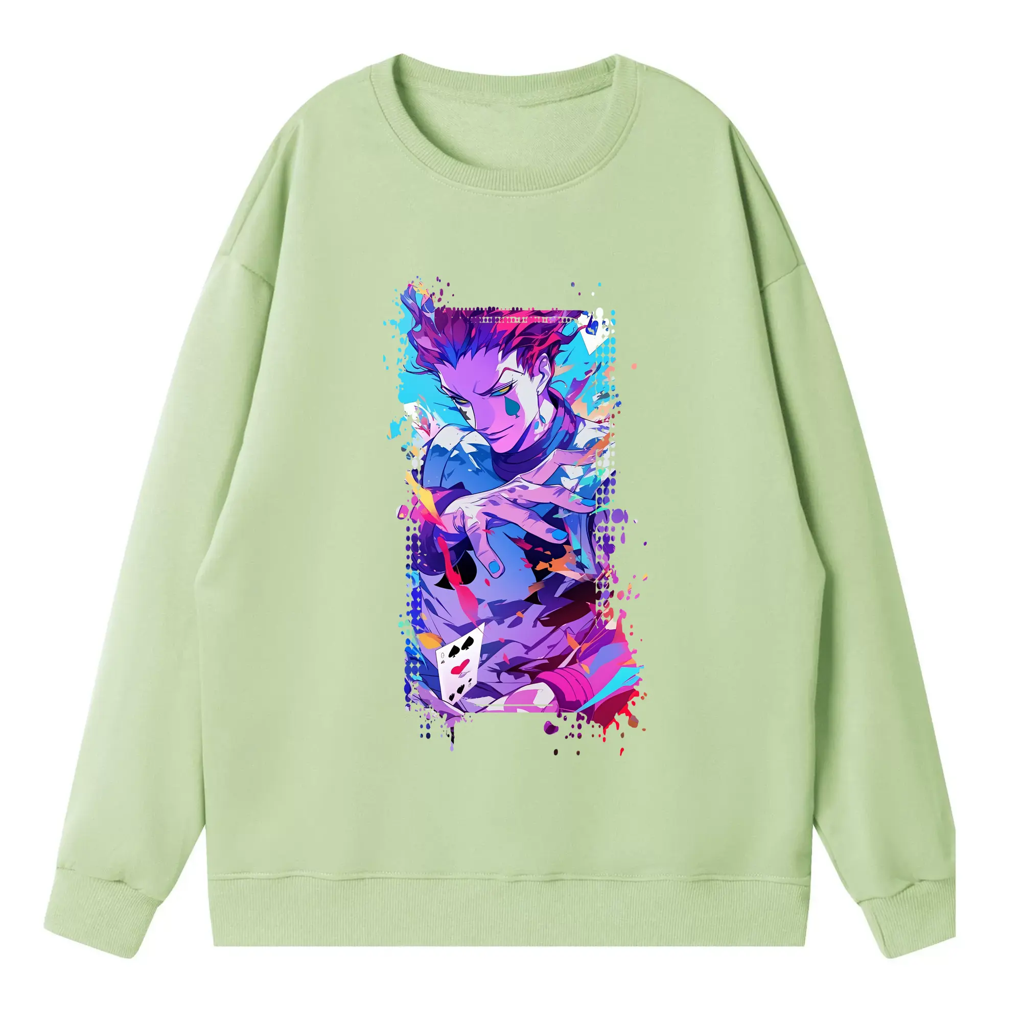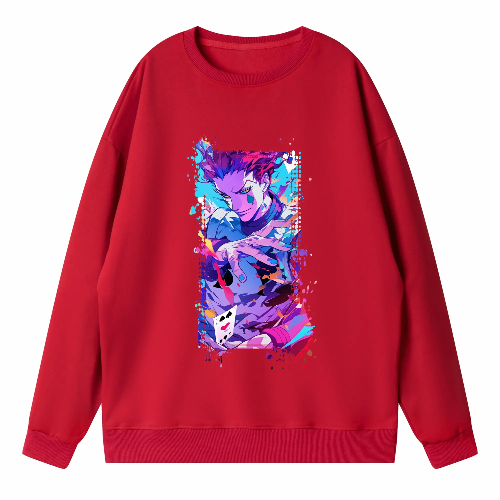ハンター×ハンター グッズ ヒソカ=モロウ - 高品質 クルーネック スウェット ・ コットン59% ポリエステル41% ・ ユニセックス 長袖 トレーナー ・ カジュアル デイリー スポーツ 散歩用
