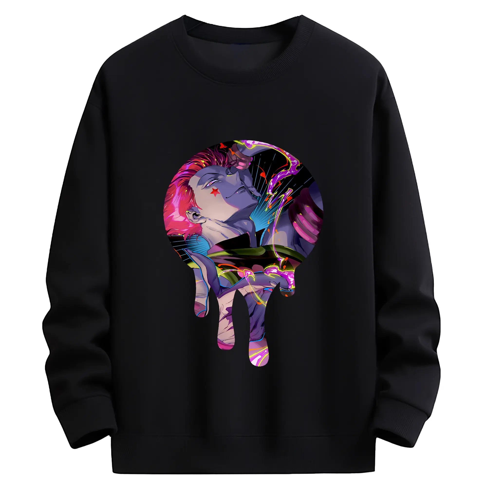ハンター×ハンター グッズ ヒソカ=モロウ - 高品質 クルーネック スウェット ・ コットン59% ポリエステル41% ・ ユニセックス 長袖 トレーナー ・ カジュアル デイリー スポーツ 散歩用