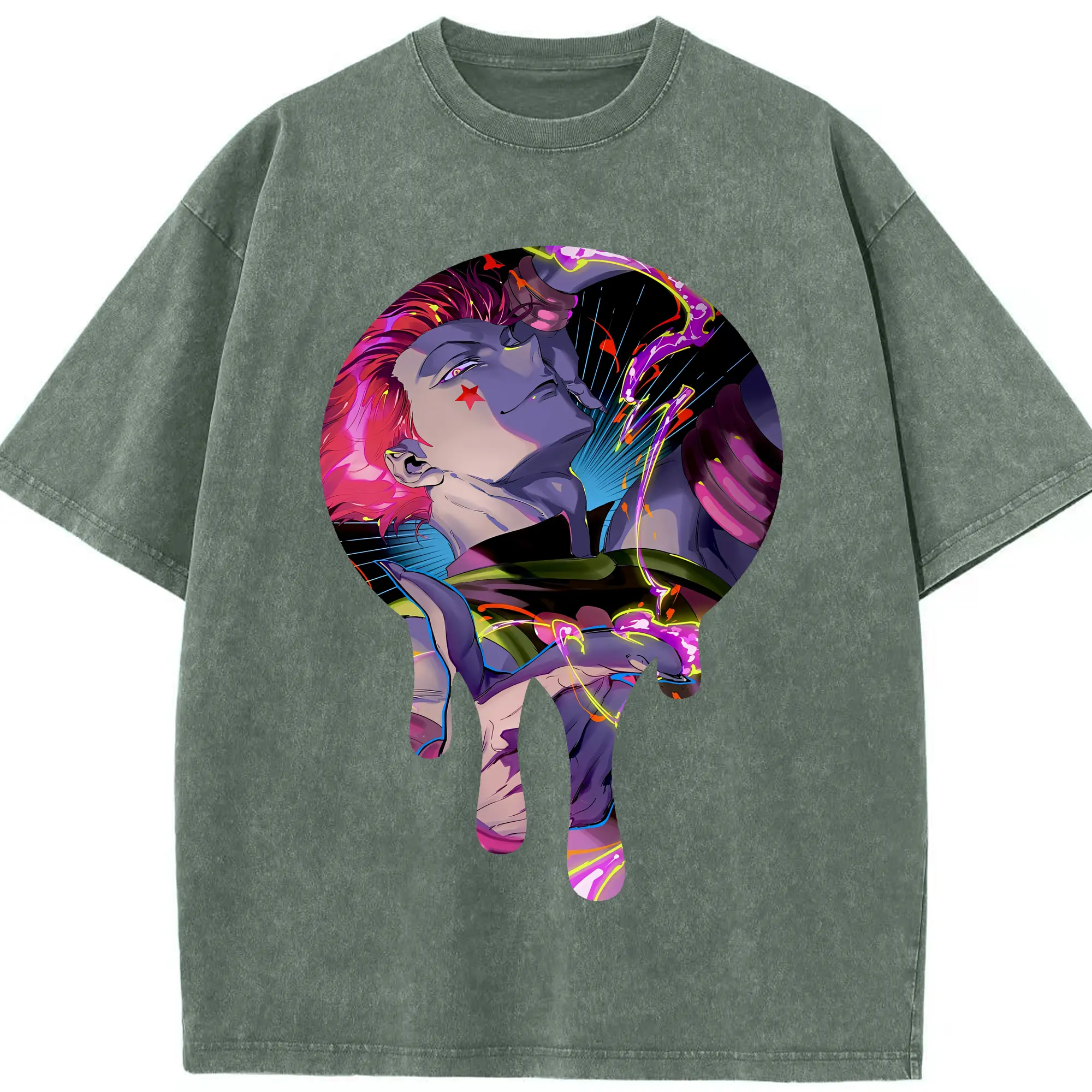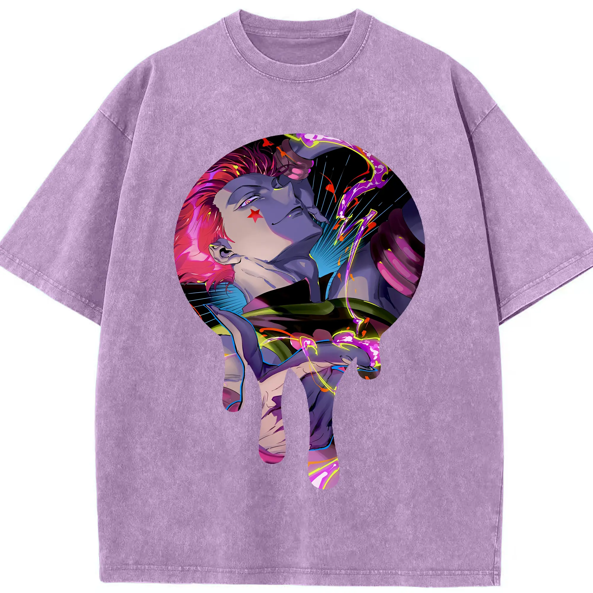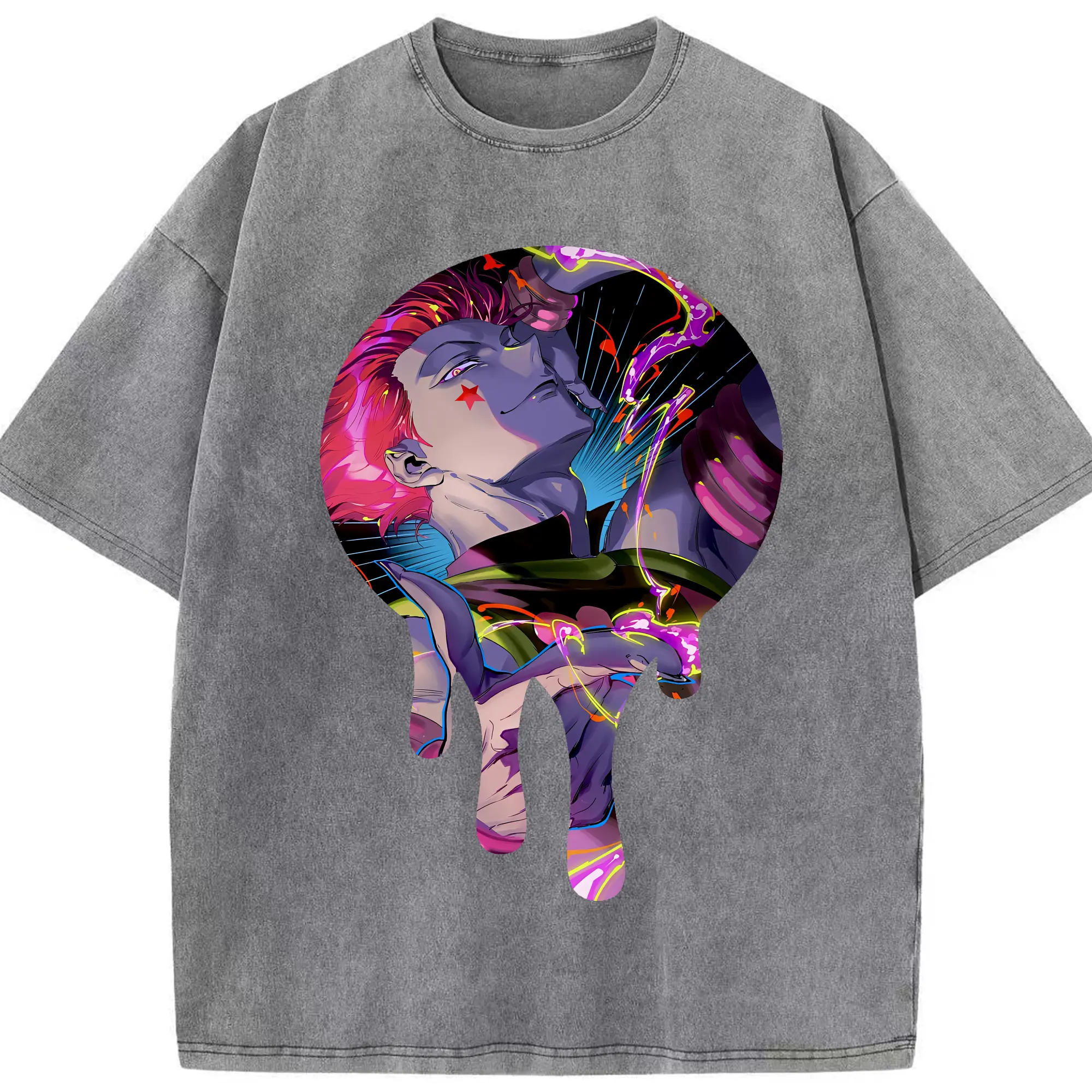 ハンター×ハンター グッズ ヒソカ=モロウ - 綿100% ヴィンテージ風 半袖Tシャツ ・ 背面プリント ・ 柔らか肌触り ・ 通気性 快適 ・ スポーツ カジュアル 外出用