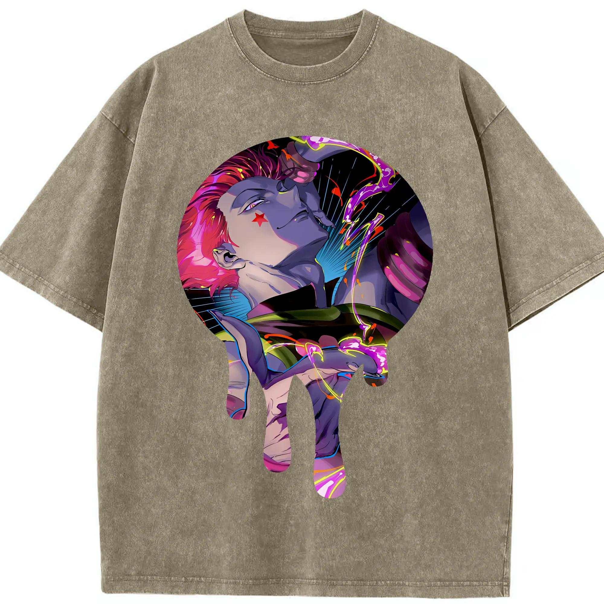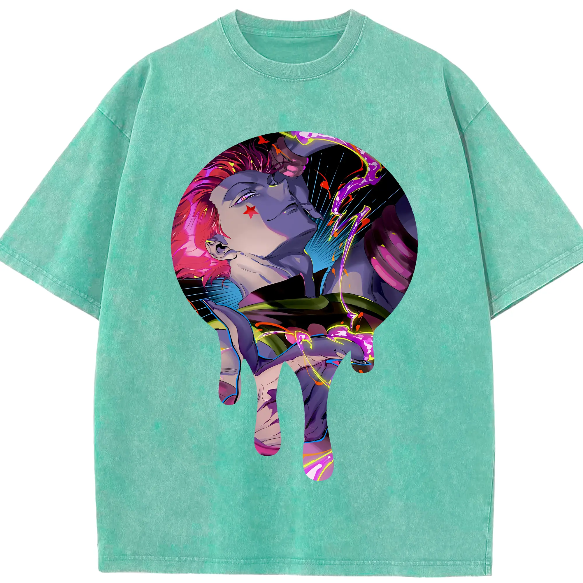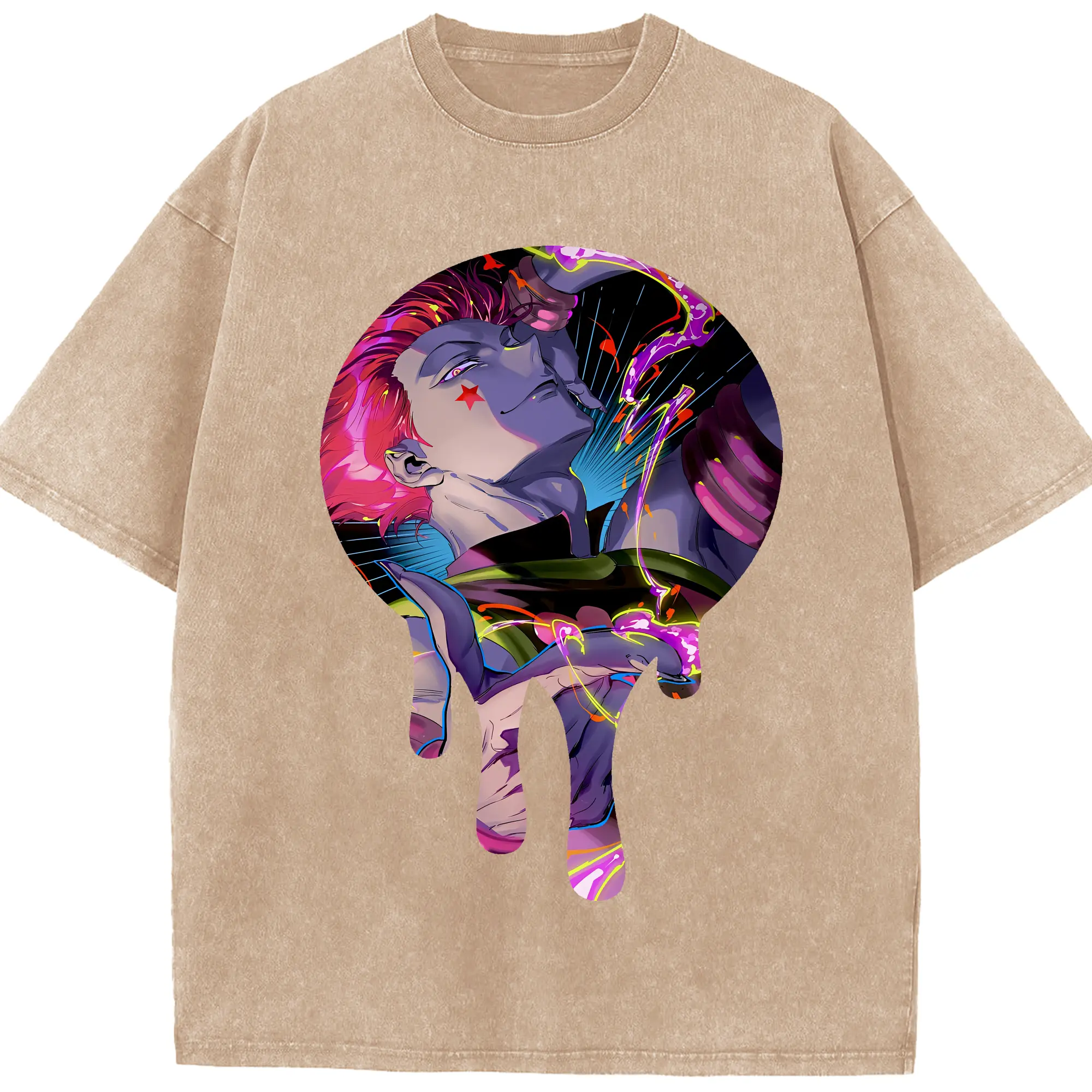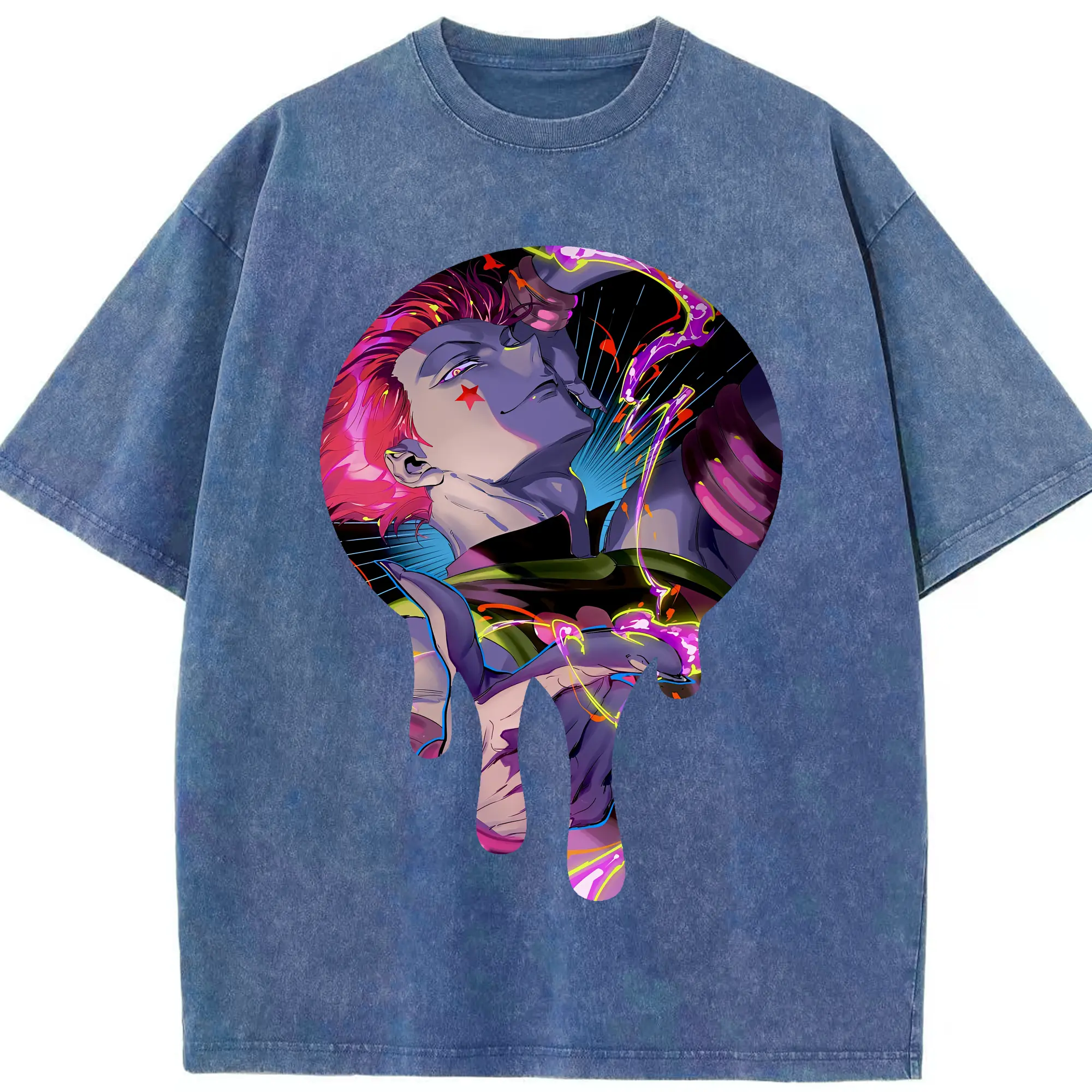 ハンター×ハンター グッズ ヒソカ=モロウ - 綿100% ヴィンテージ風 半袖Tシャツ ・ 背面プリント ・ 柔らか肌触り ・ 通気性 快適 ・ スポーツ カジュアル 外出用
