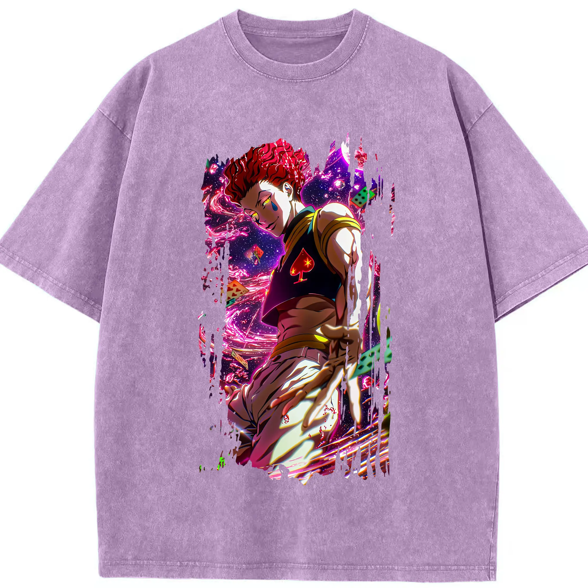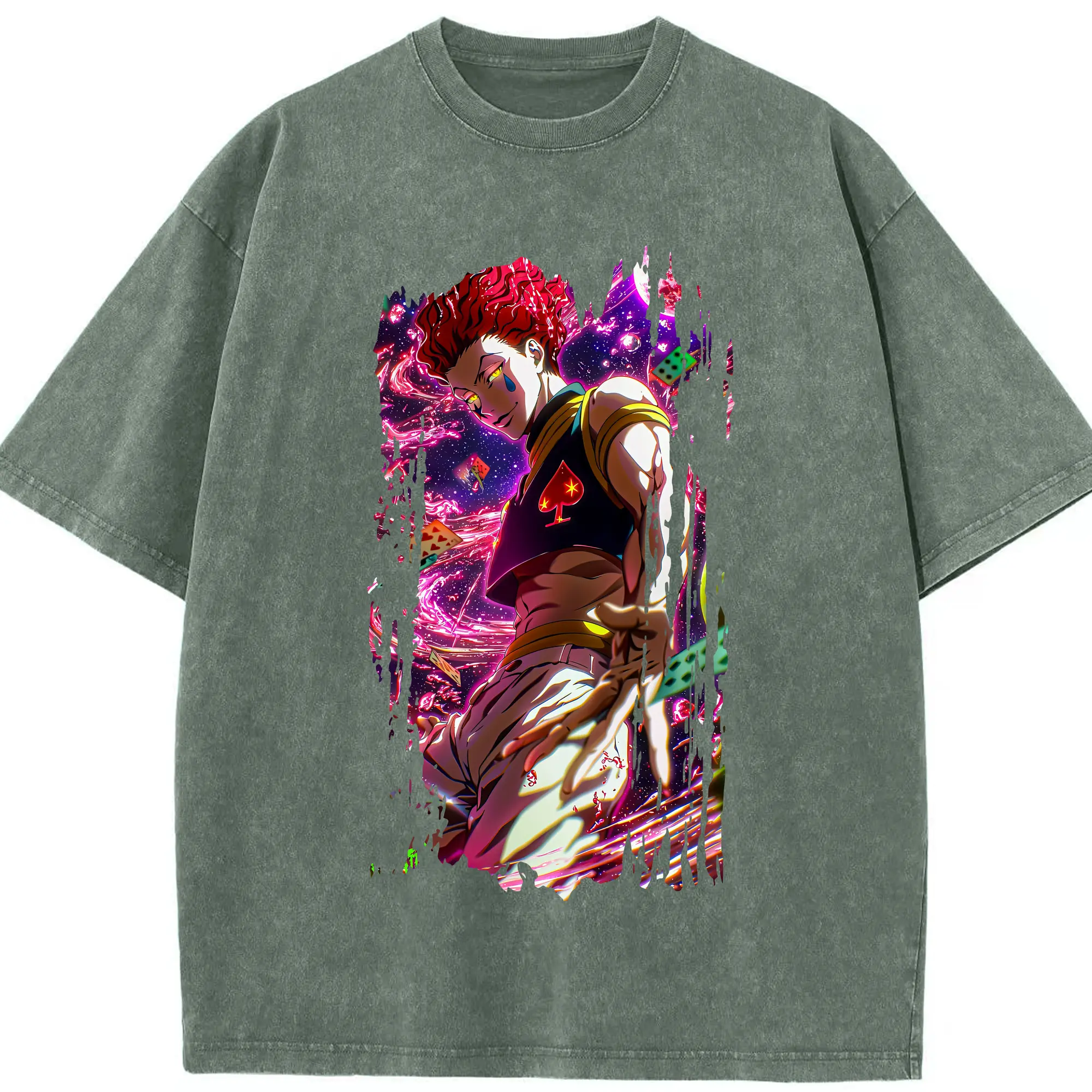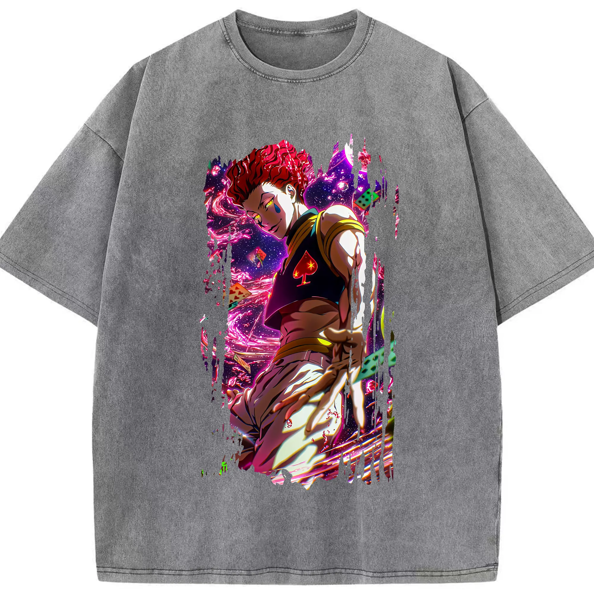 ハンター×ハンター グッズ ヒソカ=モロウ - 綿100% ヴィンテージ風 半袖Tシャツ ・ 背面プリント ・ 柔らか肌触り ・ 通気性 快適 ・ スポーツ カジュアル 外出用