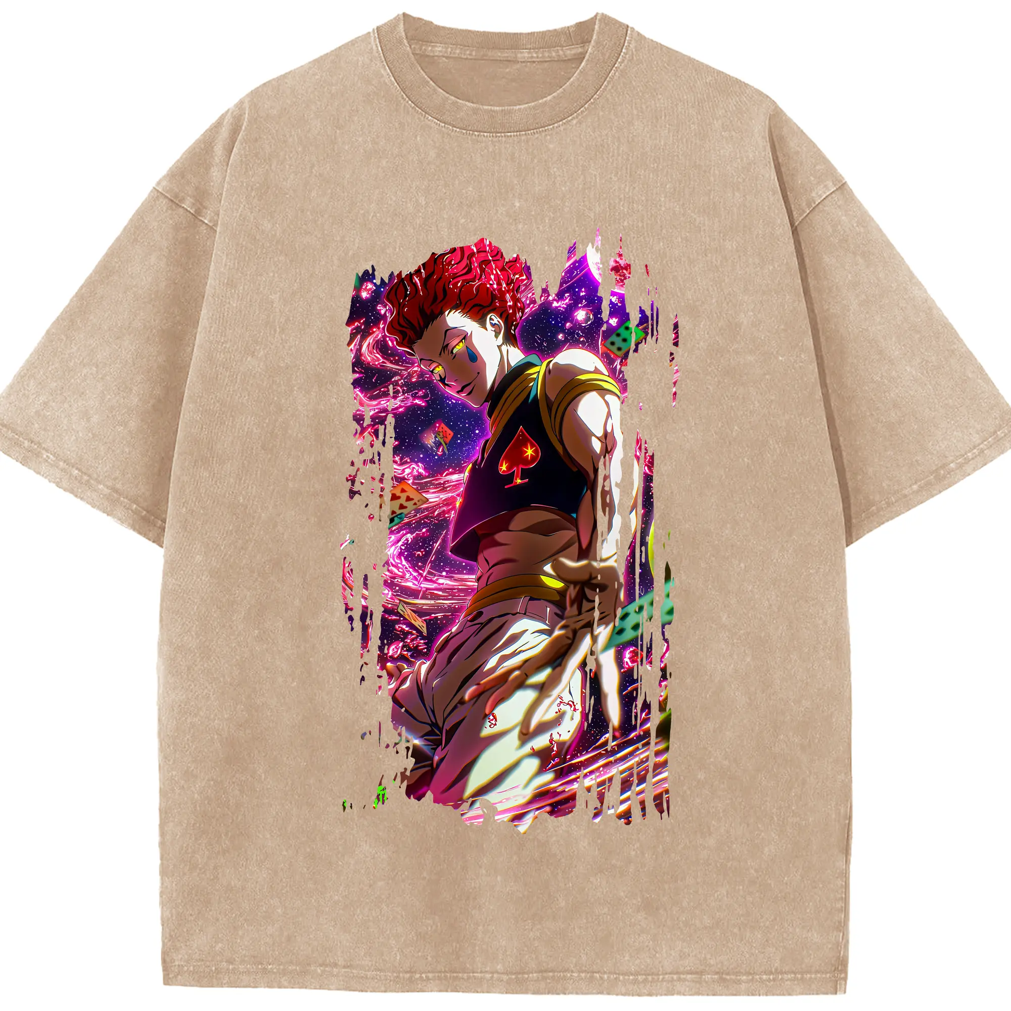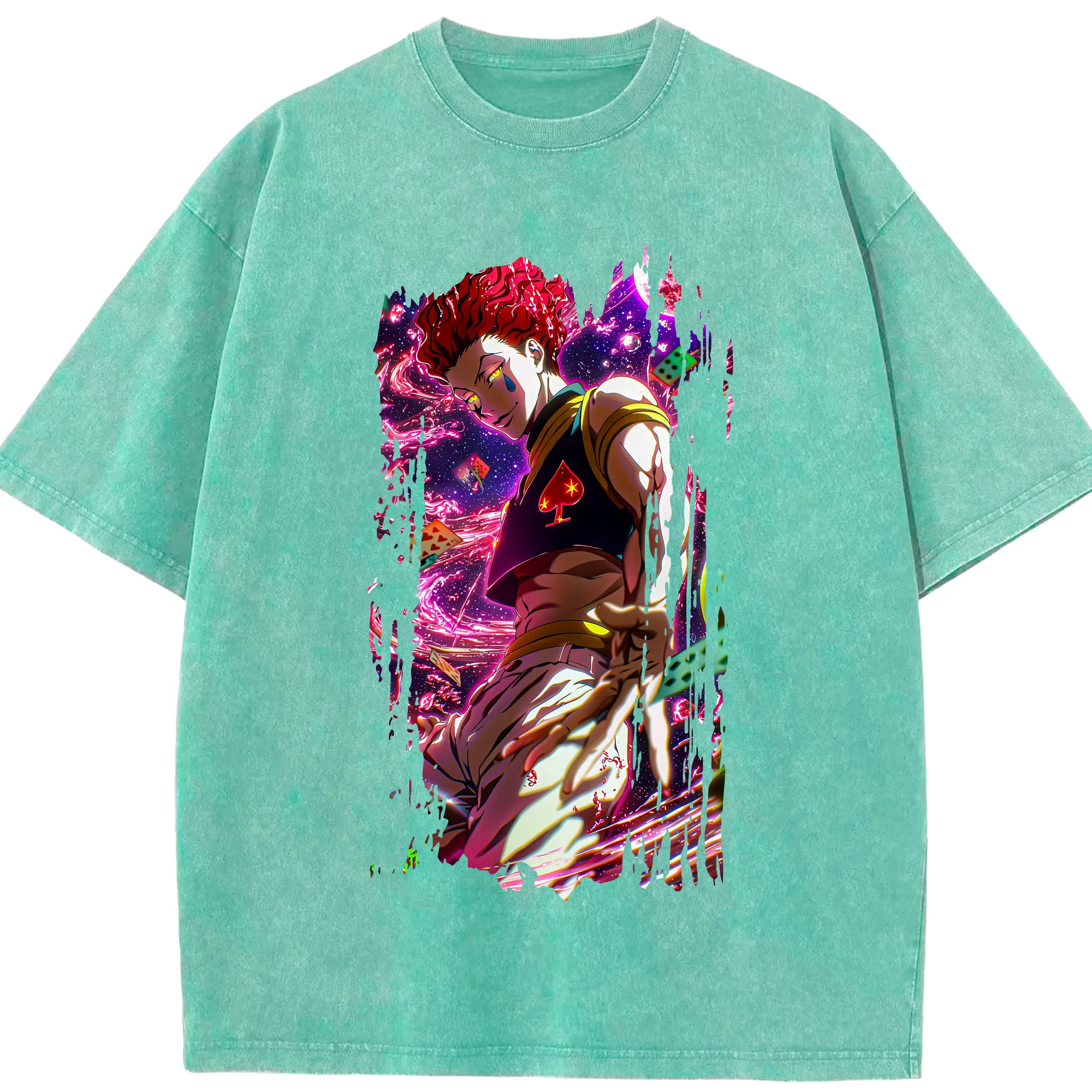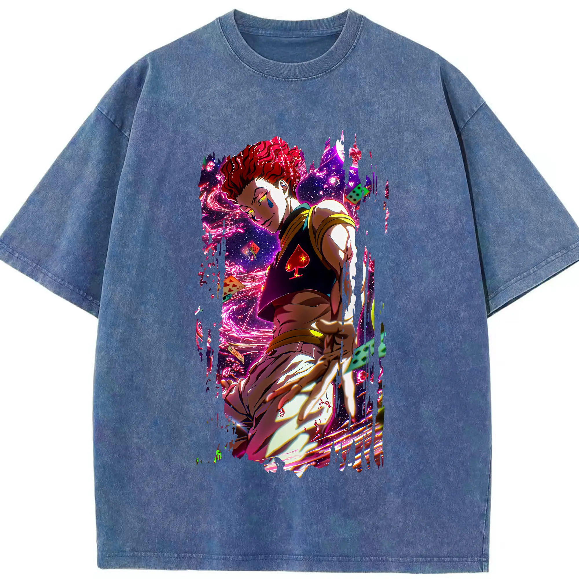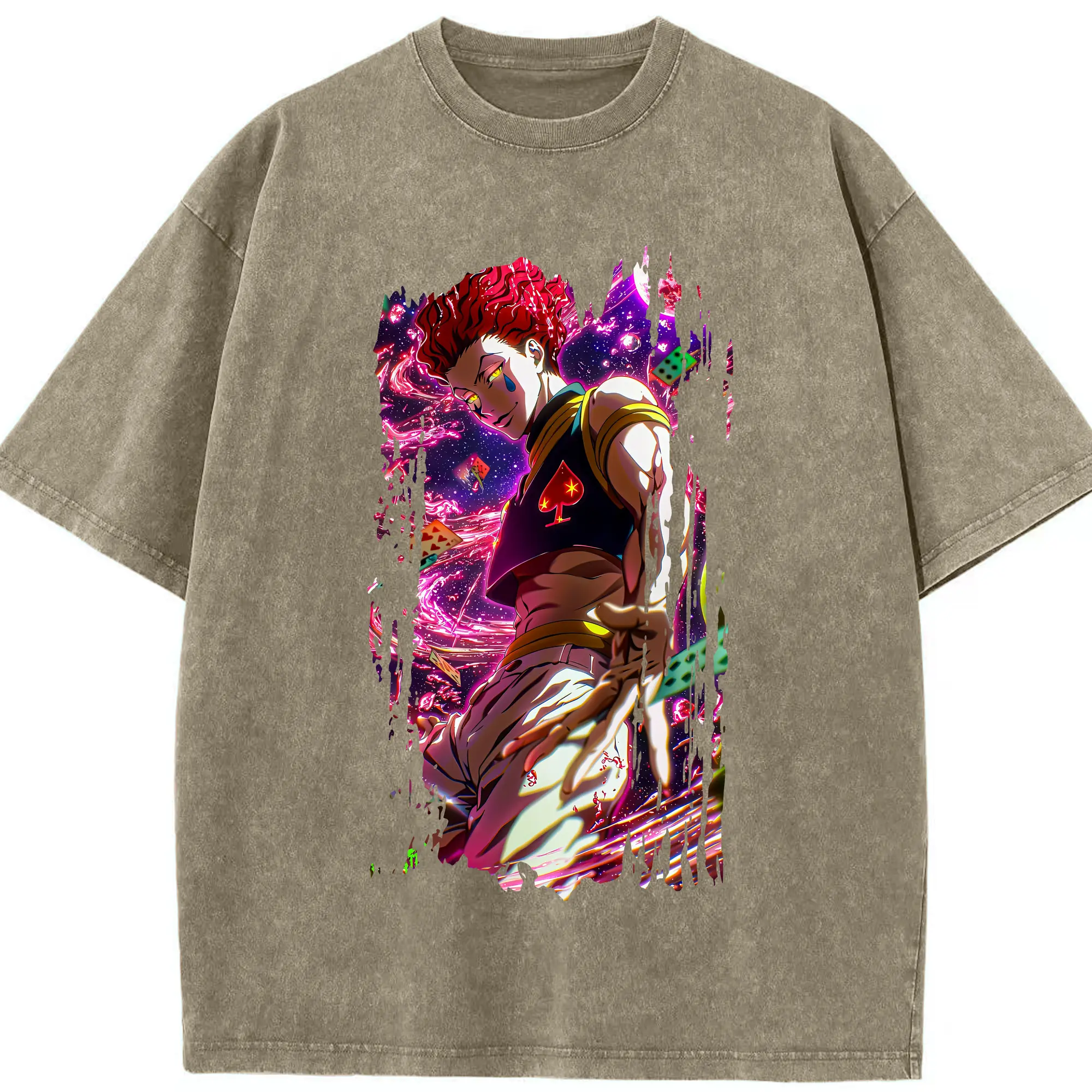 ハンター×ハンター グッズ ヒソカ=モロウ - 綿100% ヴィンテージ風 半袖Tシャツ ・ 背面プリント ・ 柔らか肌触り ・ 通気性 快適 ・ スポーツ カジュアル 外出用