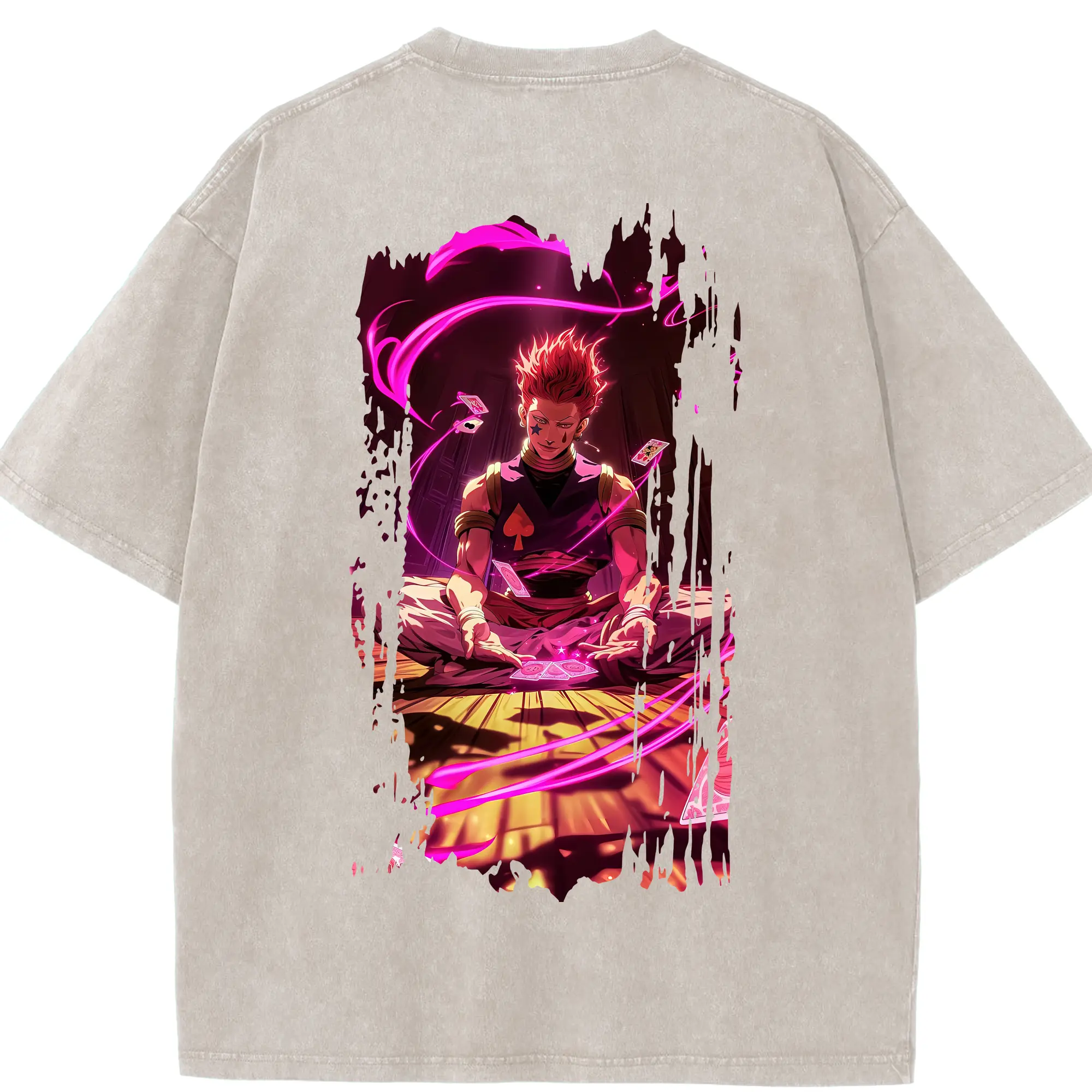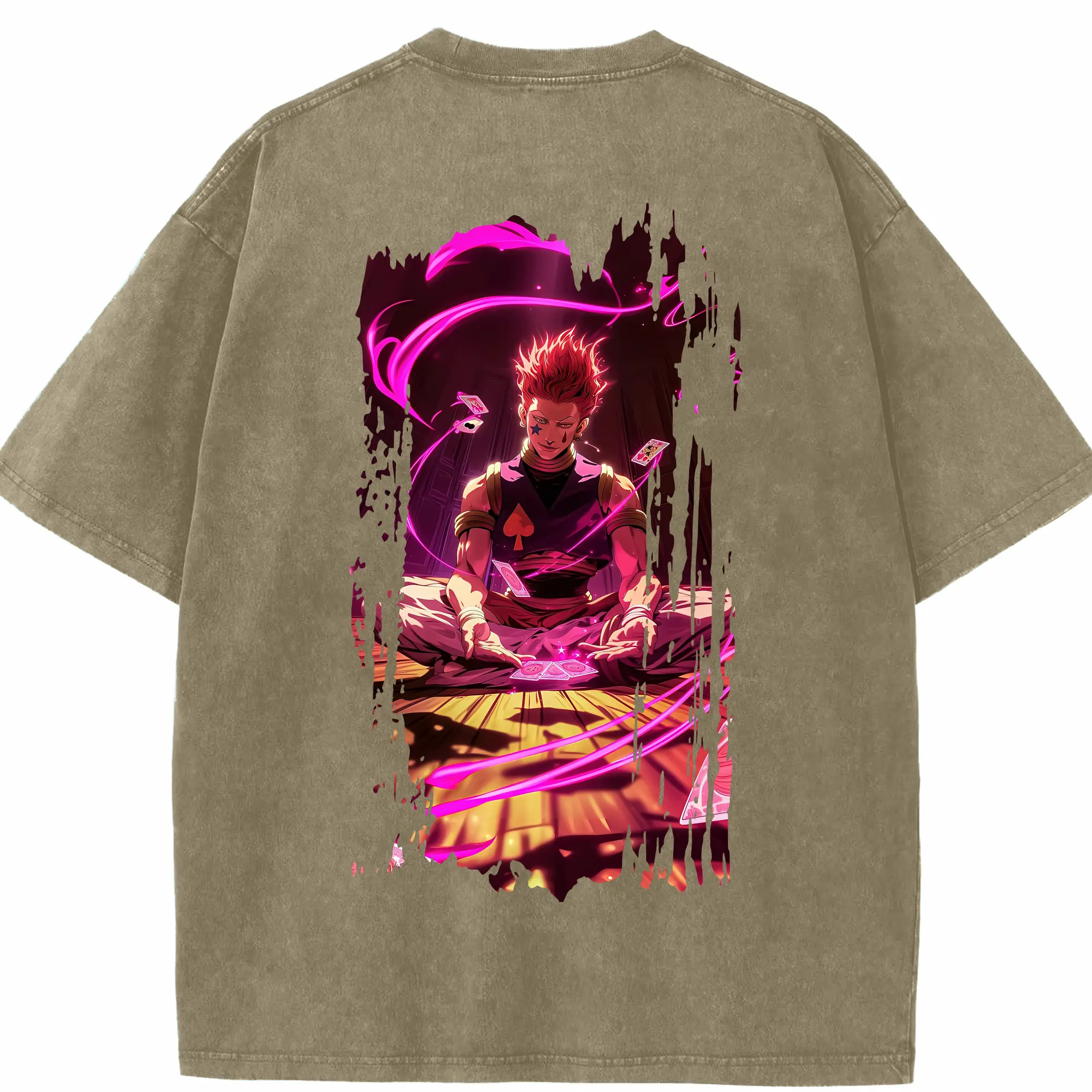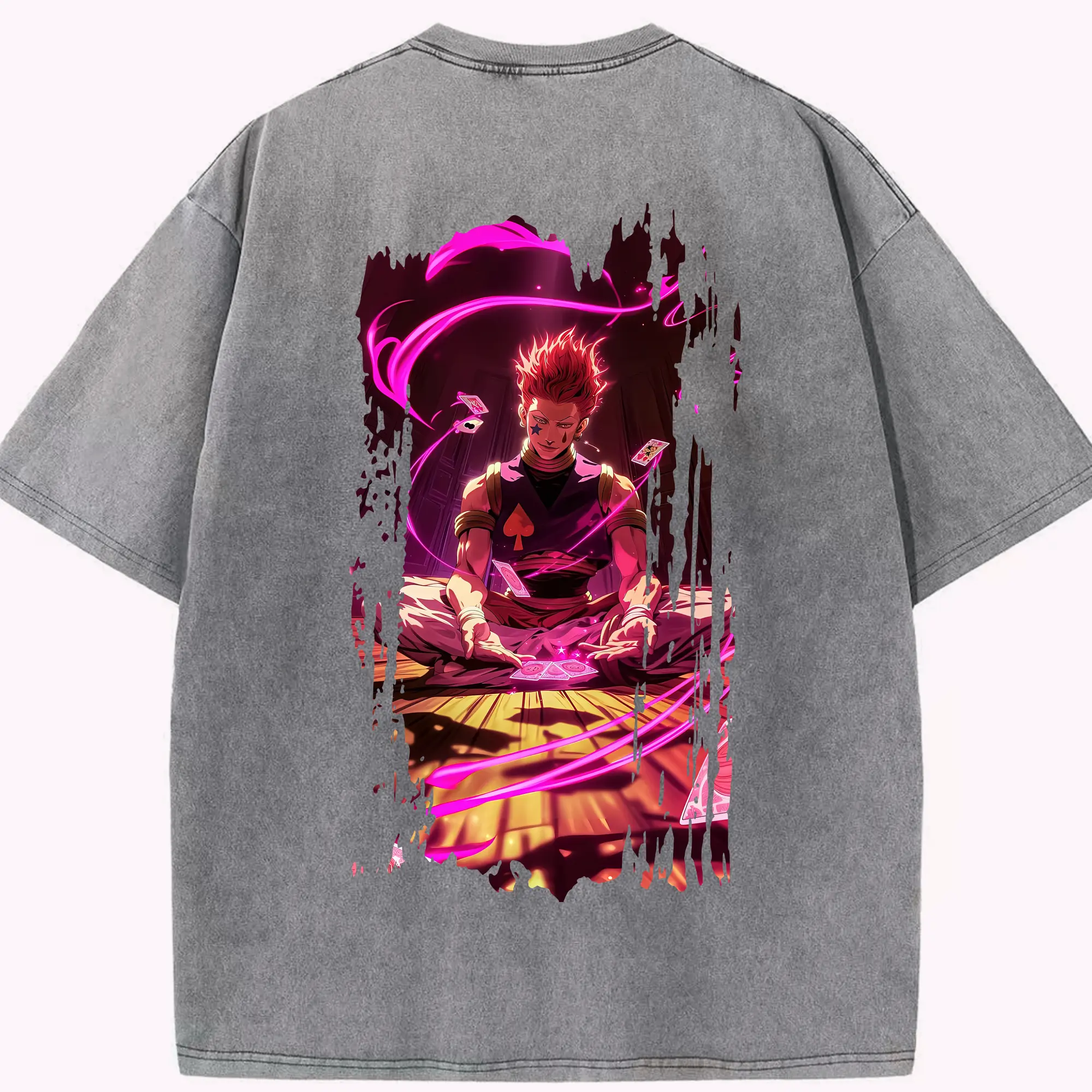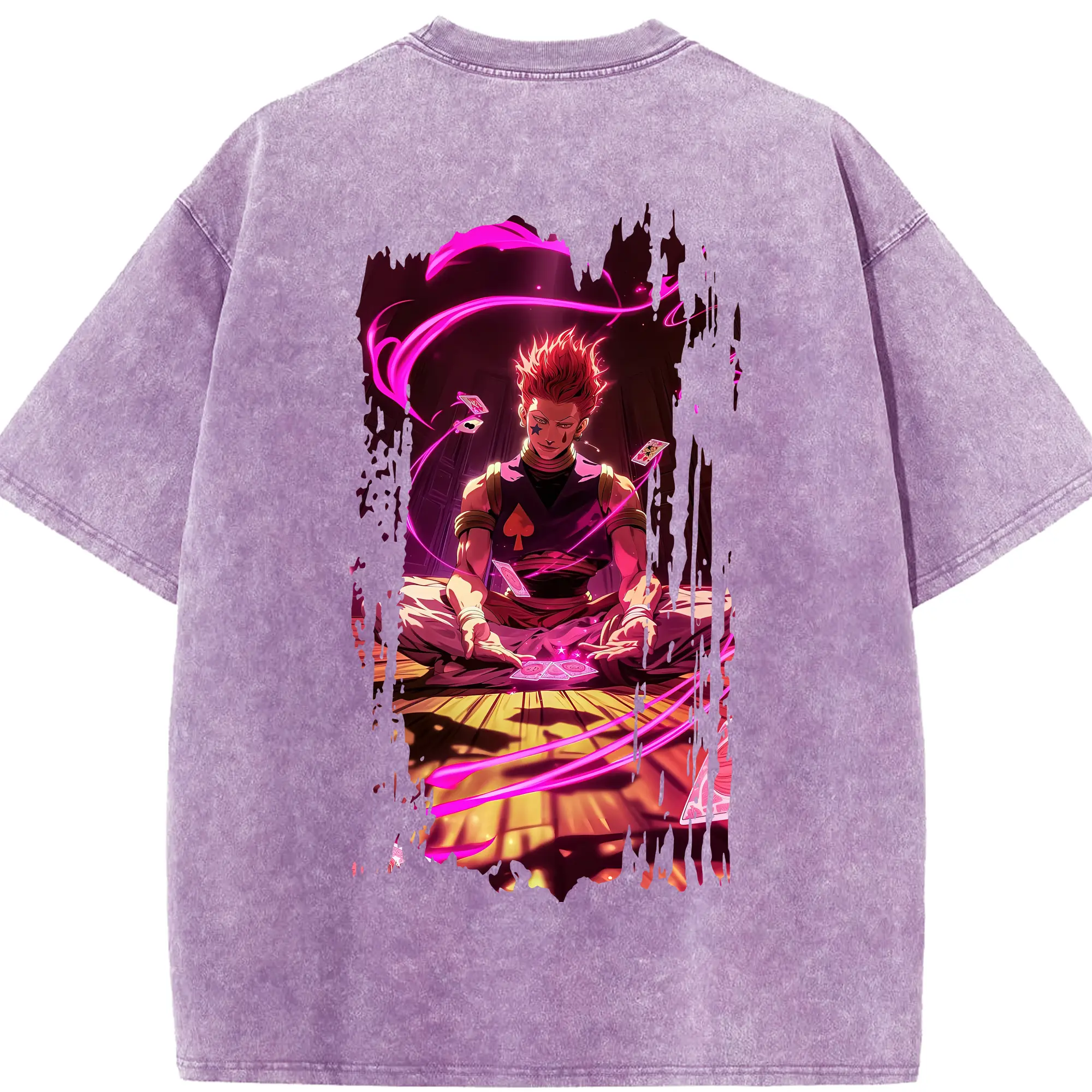 ハンター×ハンター グッズ ヒソカ=モロウ - 綿100% ヴィンテージ風 半袖Tシャツ ・ フロントプリント ・ 柔らか肌触り ・ 通気性 快適 ・ スポーツ カジュアル 外出用