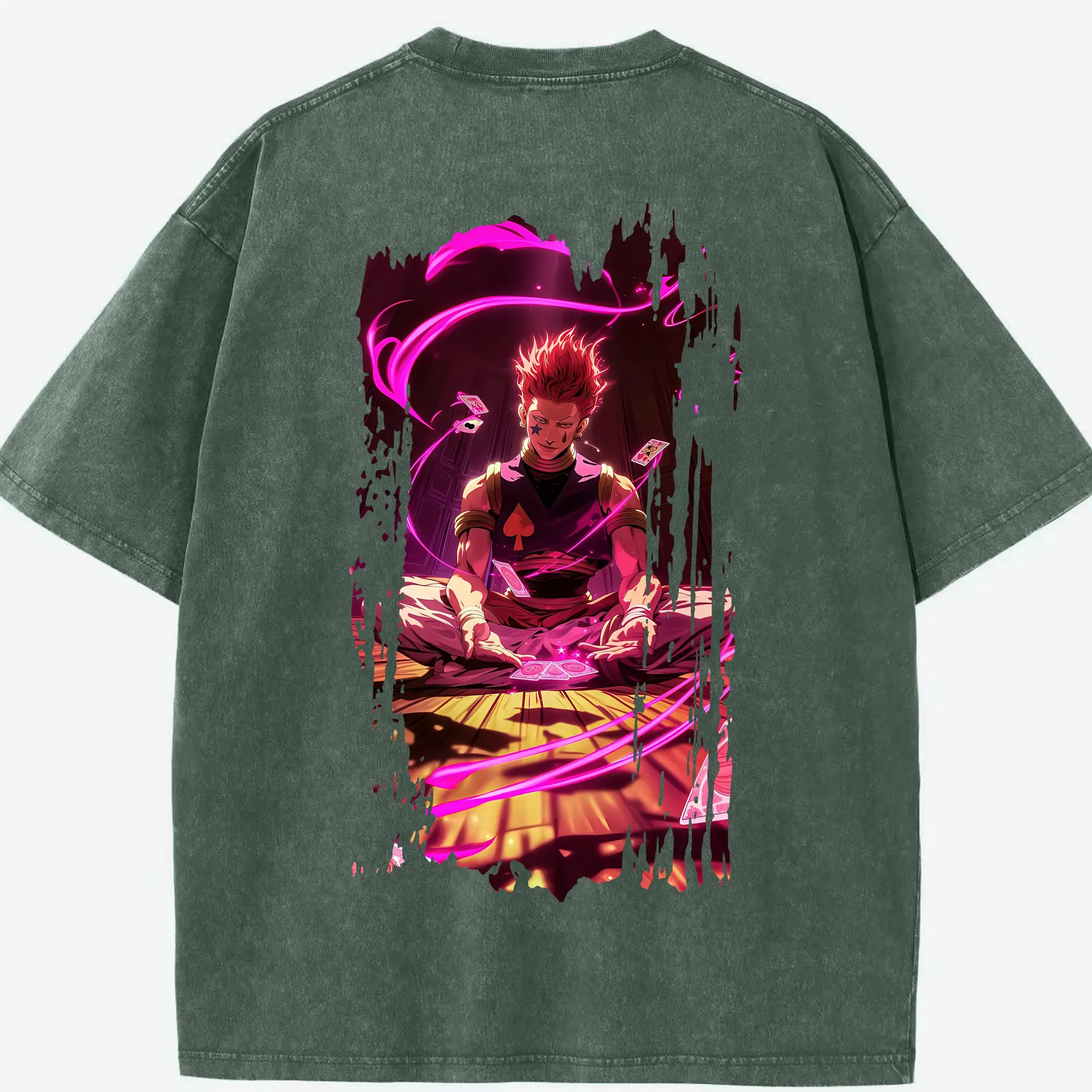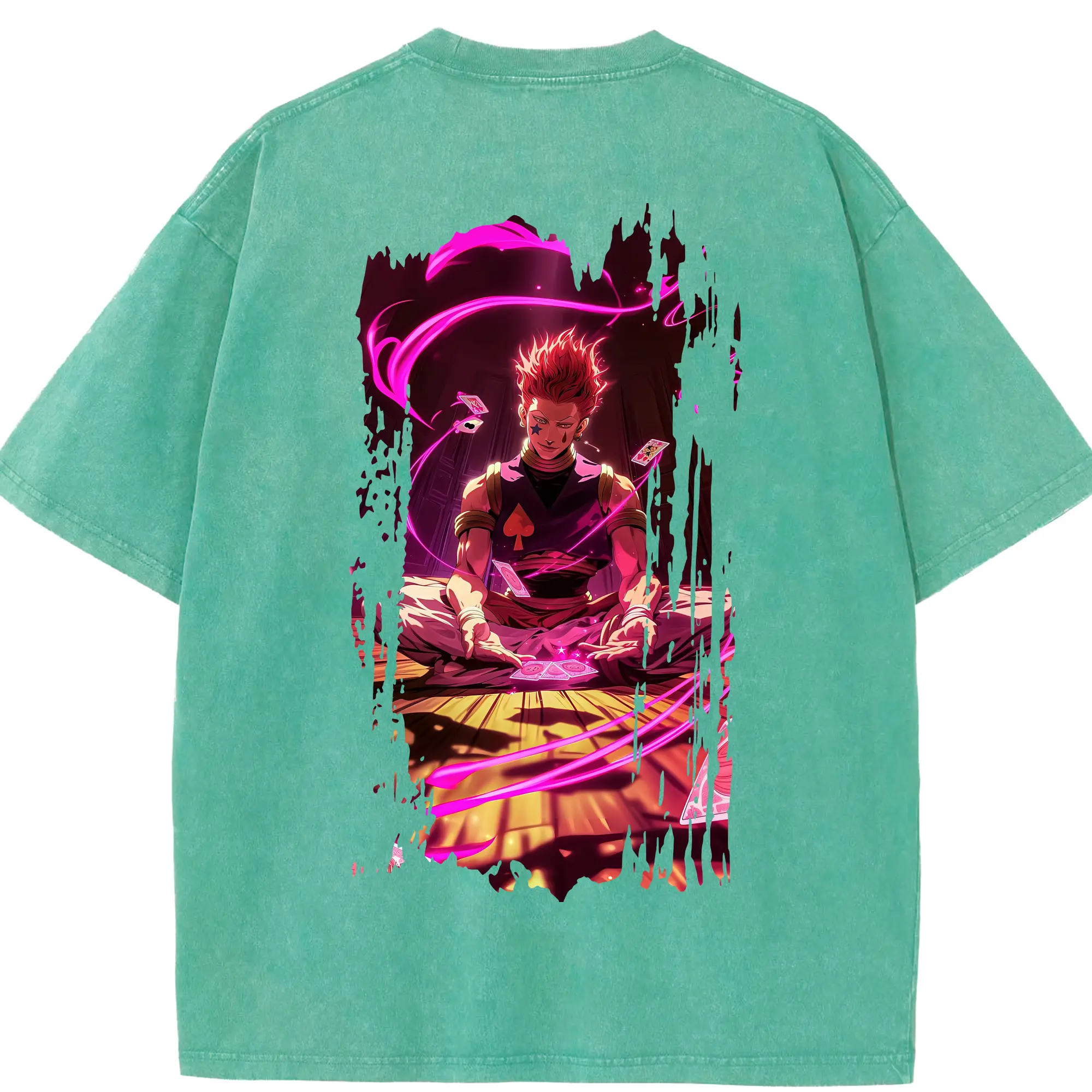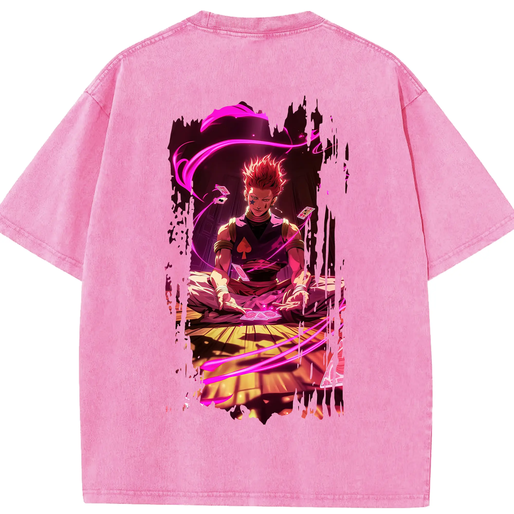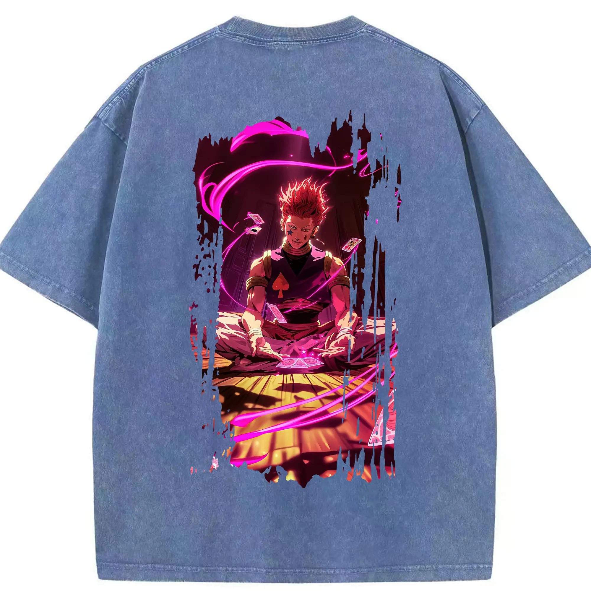 ハンター×ハンター グッズ ヒソカ=モロウ - 綿100% ヴィンテージ風 半袖Tシャツ ・ フロントプリント ・ 柔らか肌触り ・ 通気性 快適 ・ スポーツ カジュアル 外出用