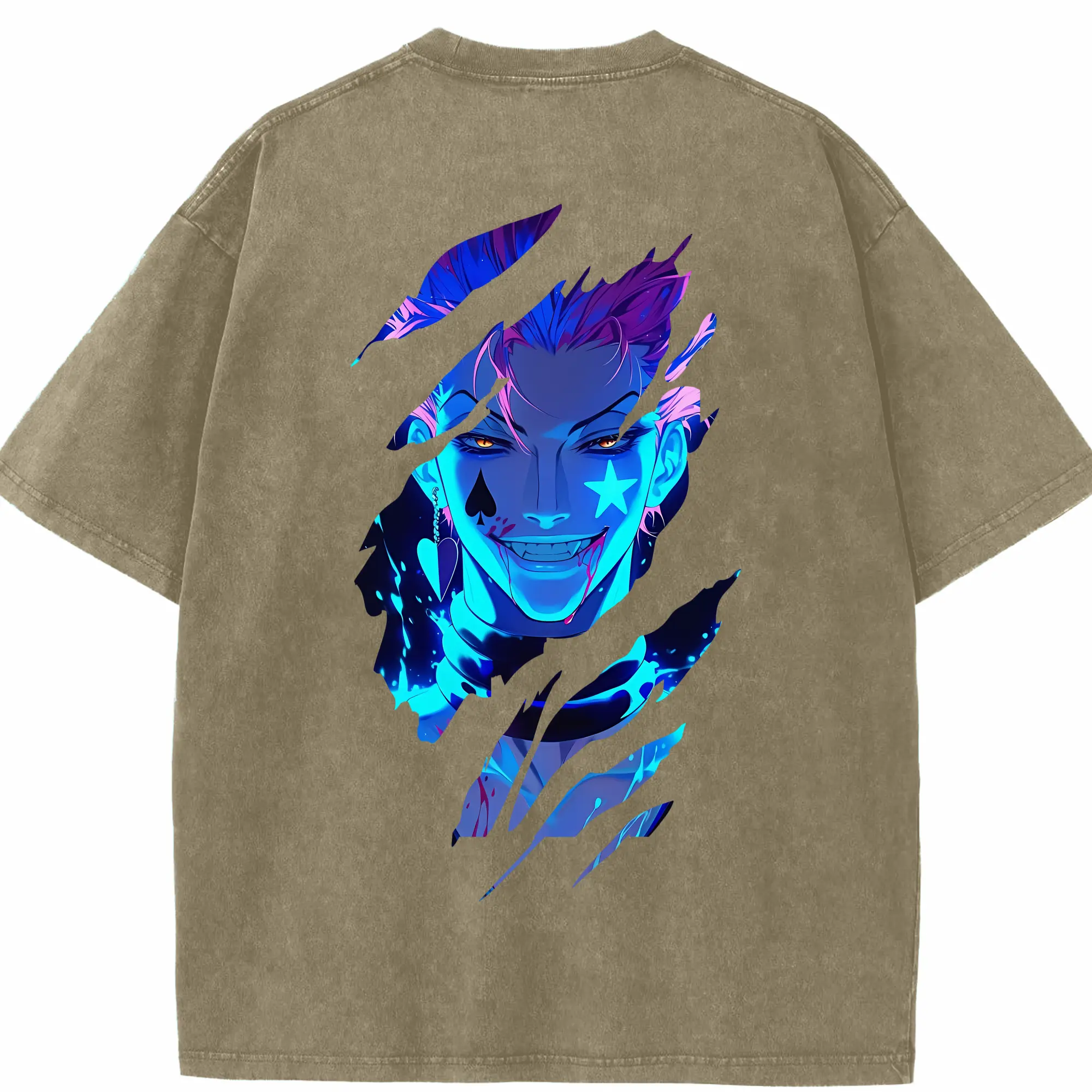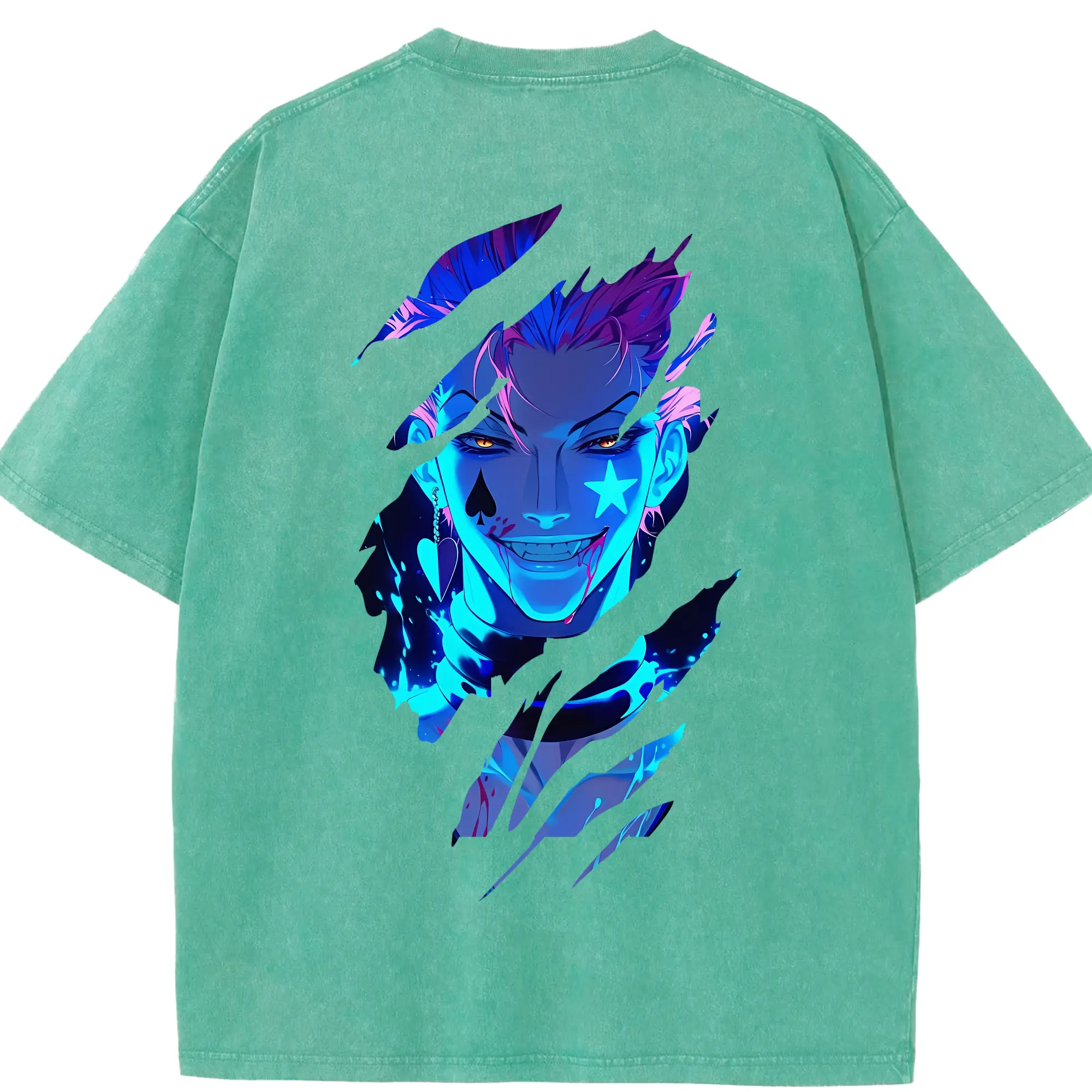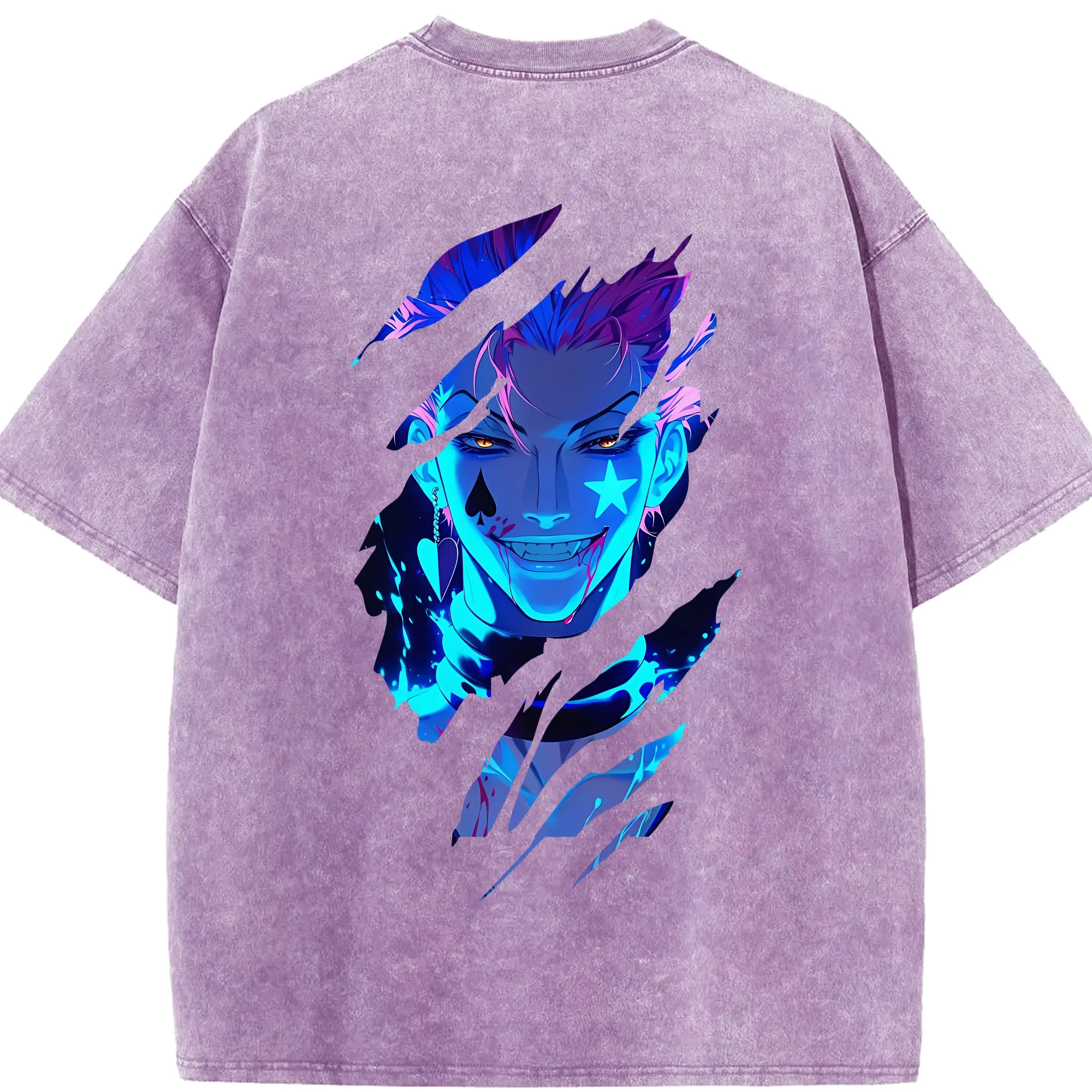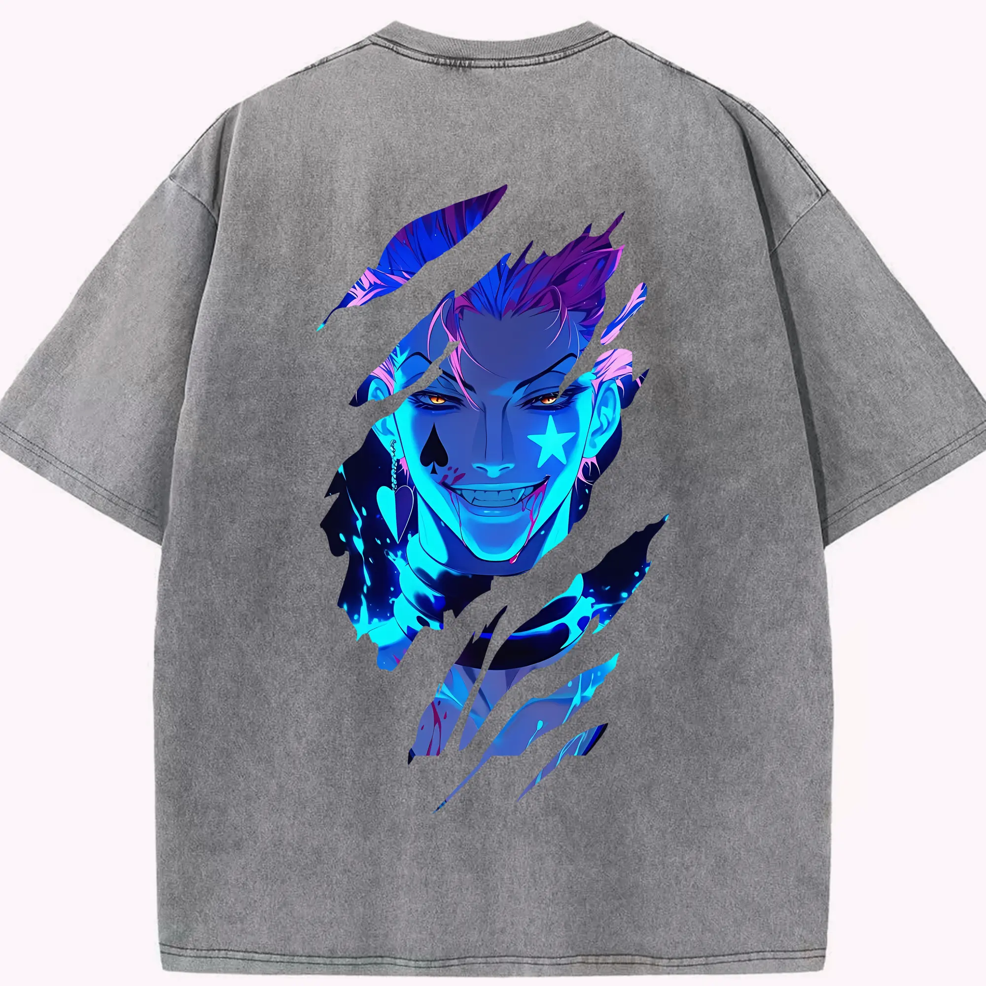 ハンター×ハンター グッズ ヒソカ=モロウ - 綿100% ヴィンテージ風 半袖Tシャツ ・ フロントプリント ・ 柔らか肌触り ・ 通気性 快適 ・ スポーツ カジュアル 外出用