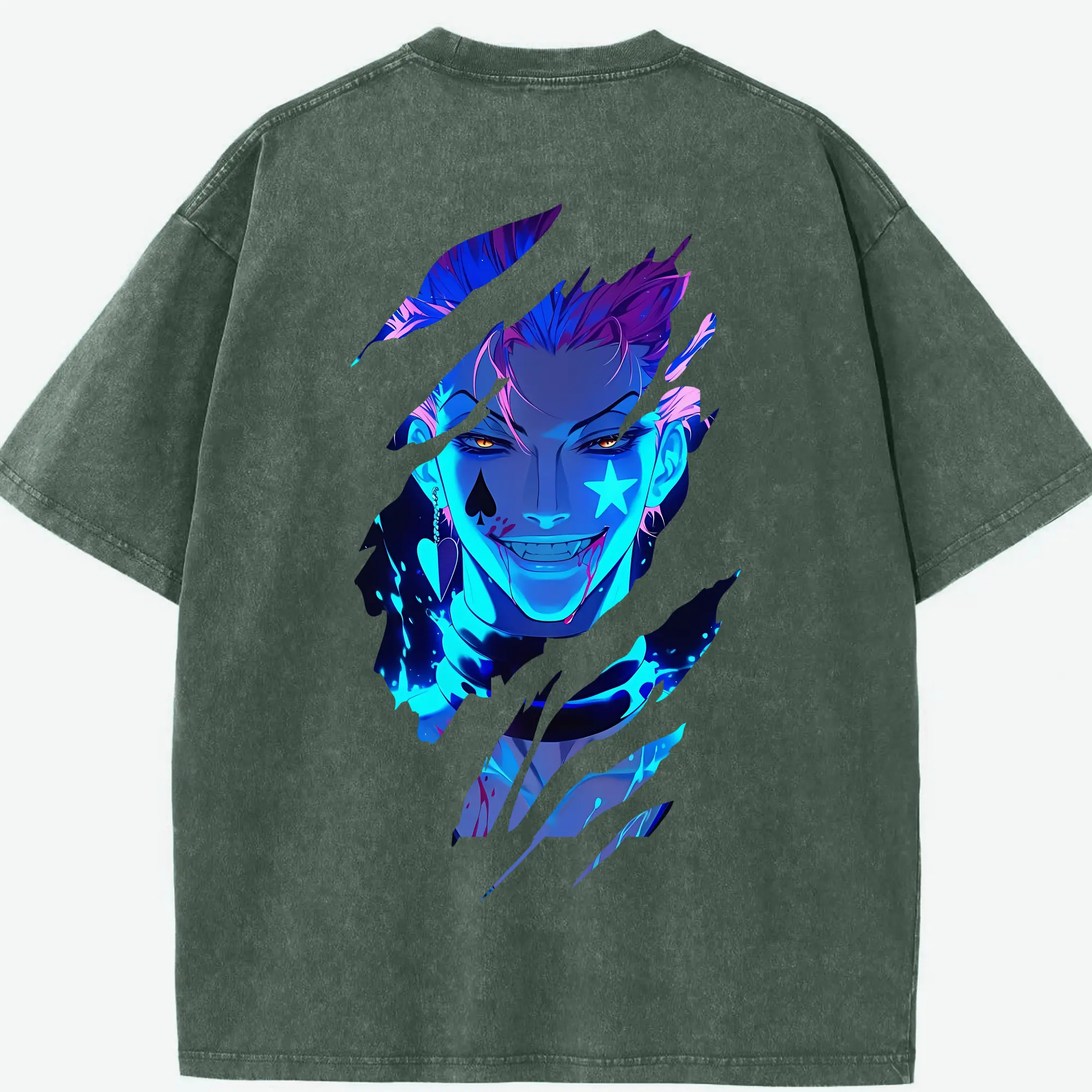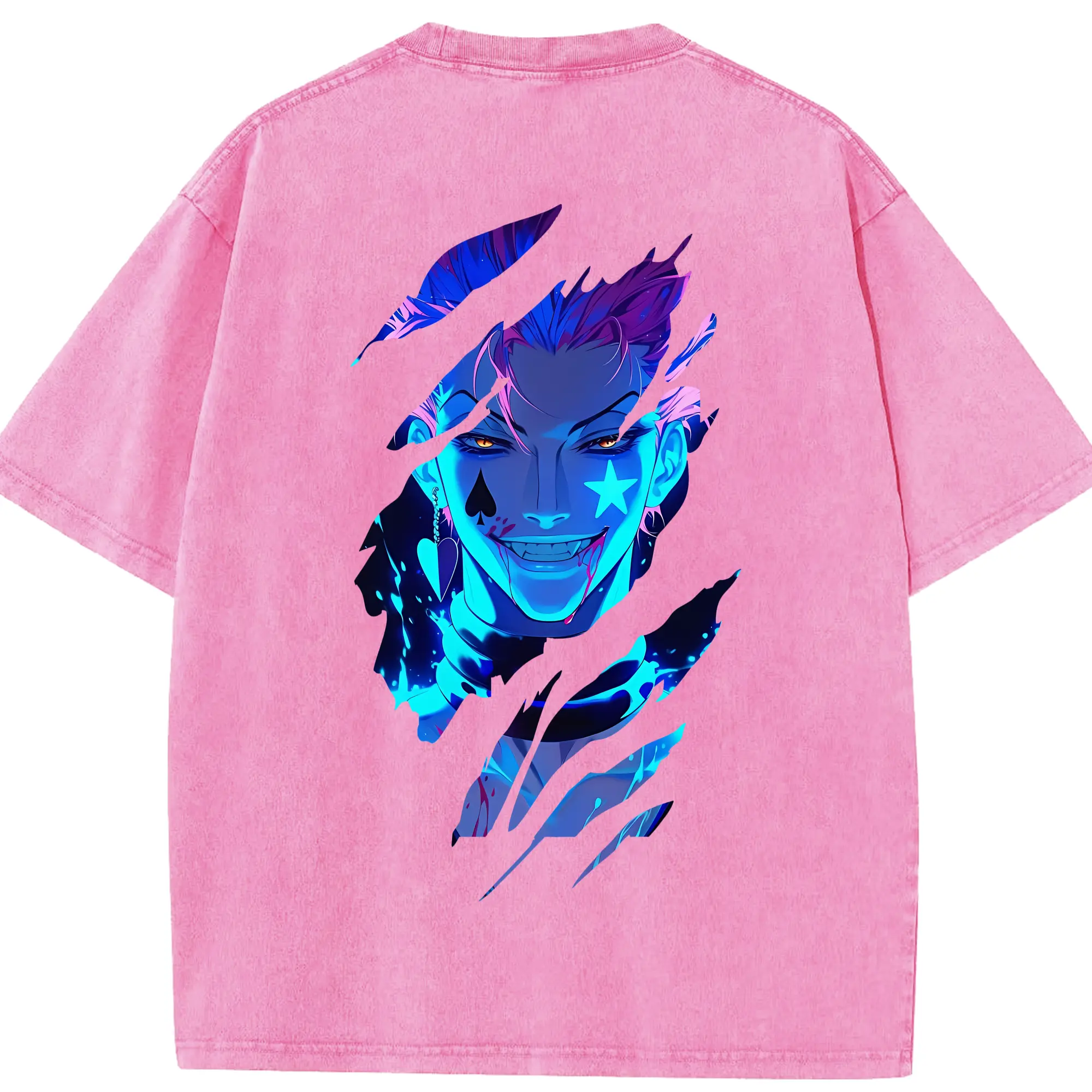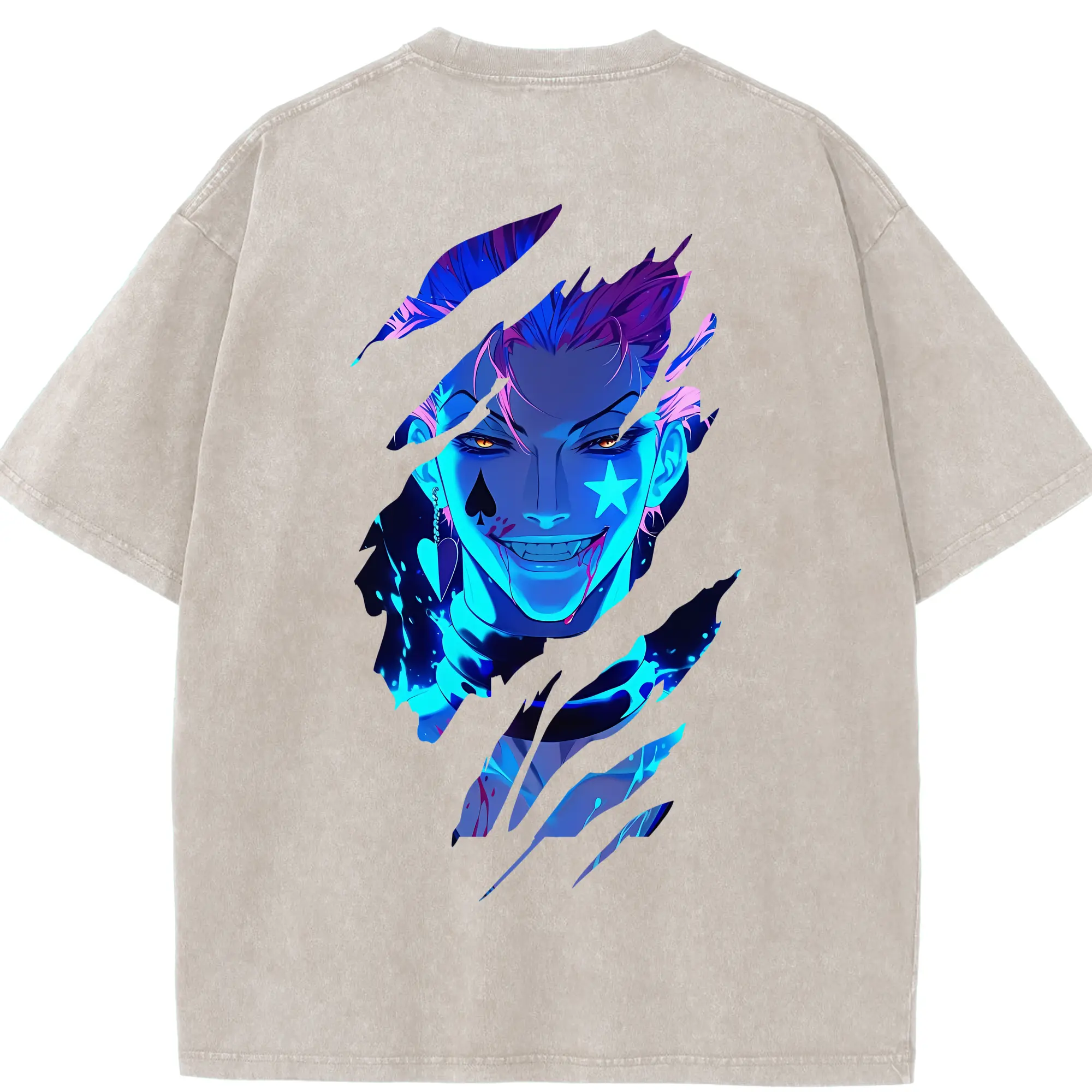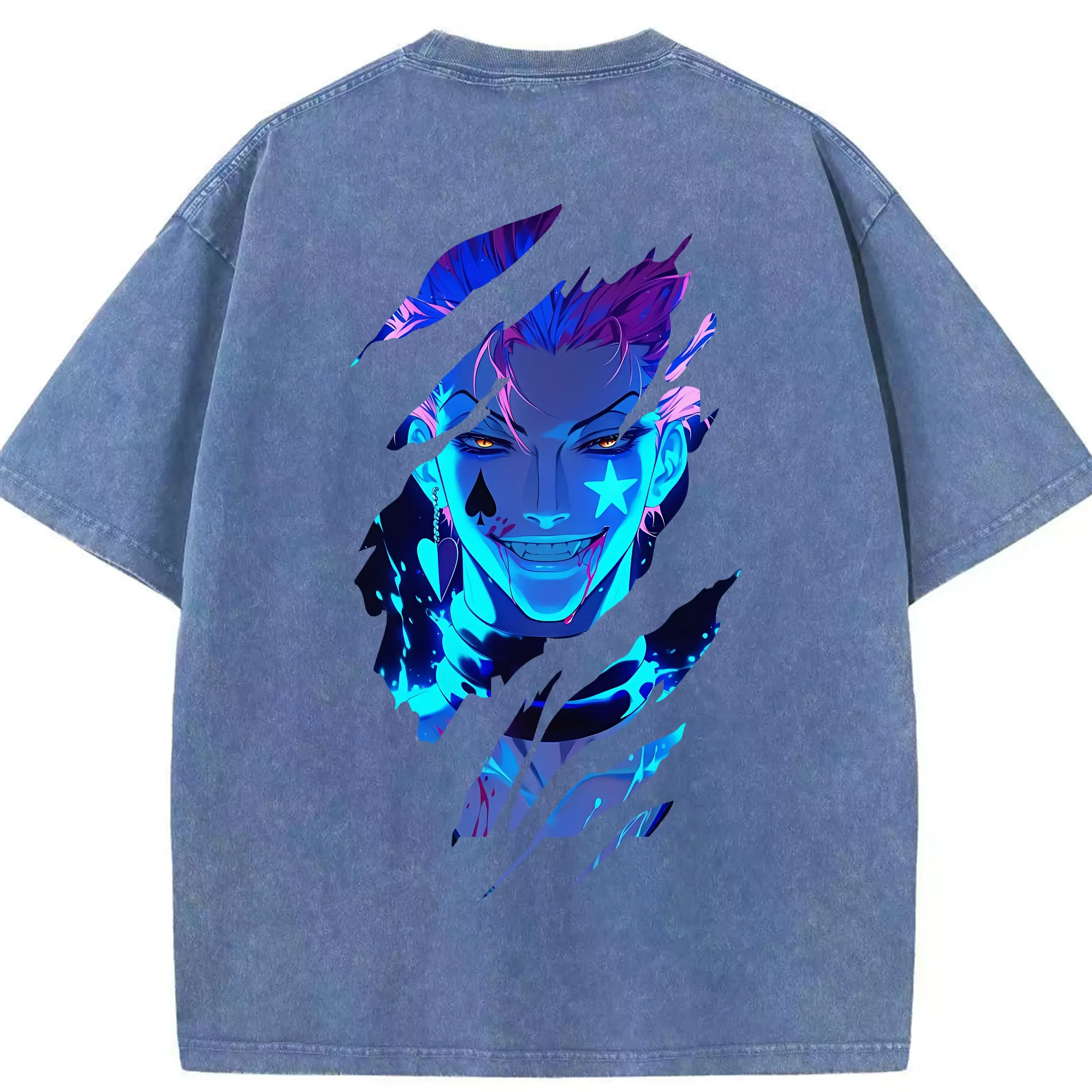 ハンター×ハンター グッズ ヒソカ=モロウ - 綿100% ヴィンテージ風 半袖Tシャツ ・ フロントプリント ・ 柔らか肌触り ・ 通気性 快適 ・ スポーツ カジュアル 外出用