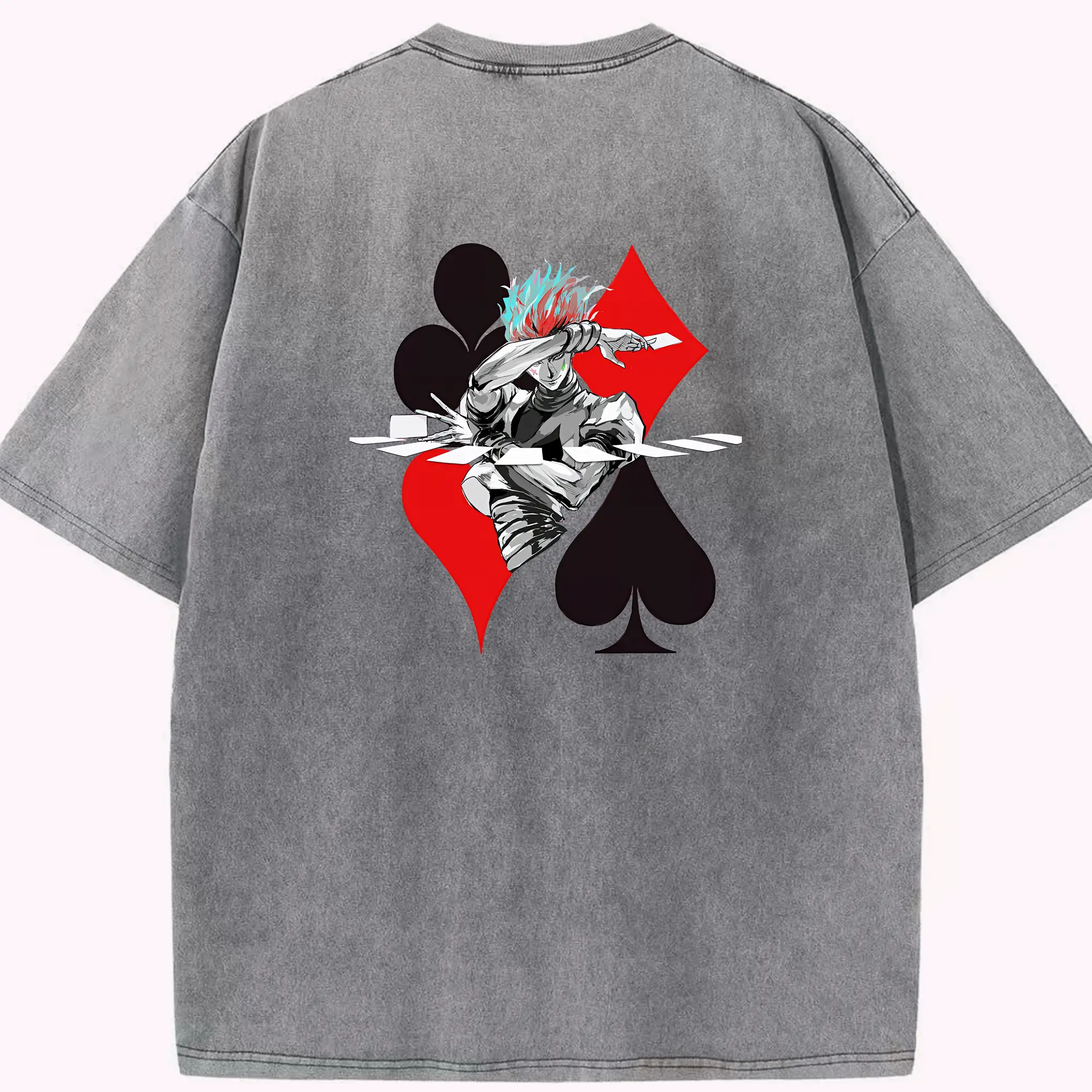ハンター×ハンター グッズ ヒソカ=モロウ - 綿100% ヴィンテージ風 半袖Tシャツ ・ フロントプリント ・ 柔らか肌触り ・ 通気性 快適 ・ スポーツ カジュアル 外出用