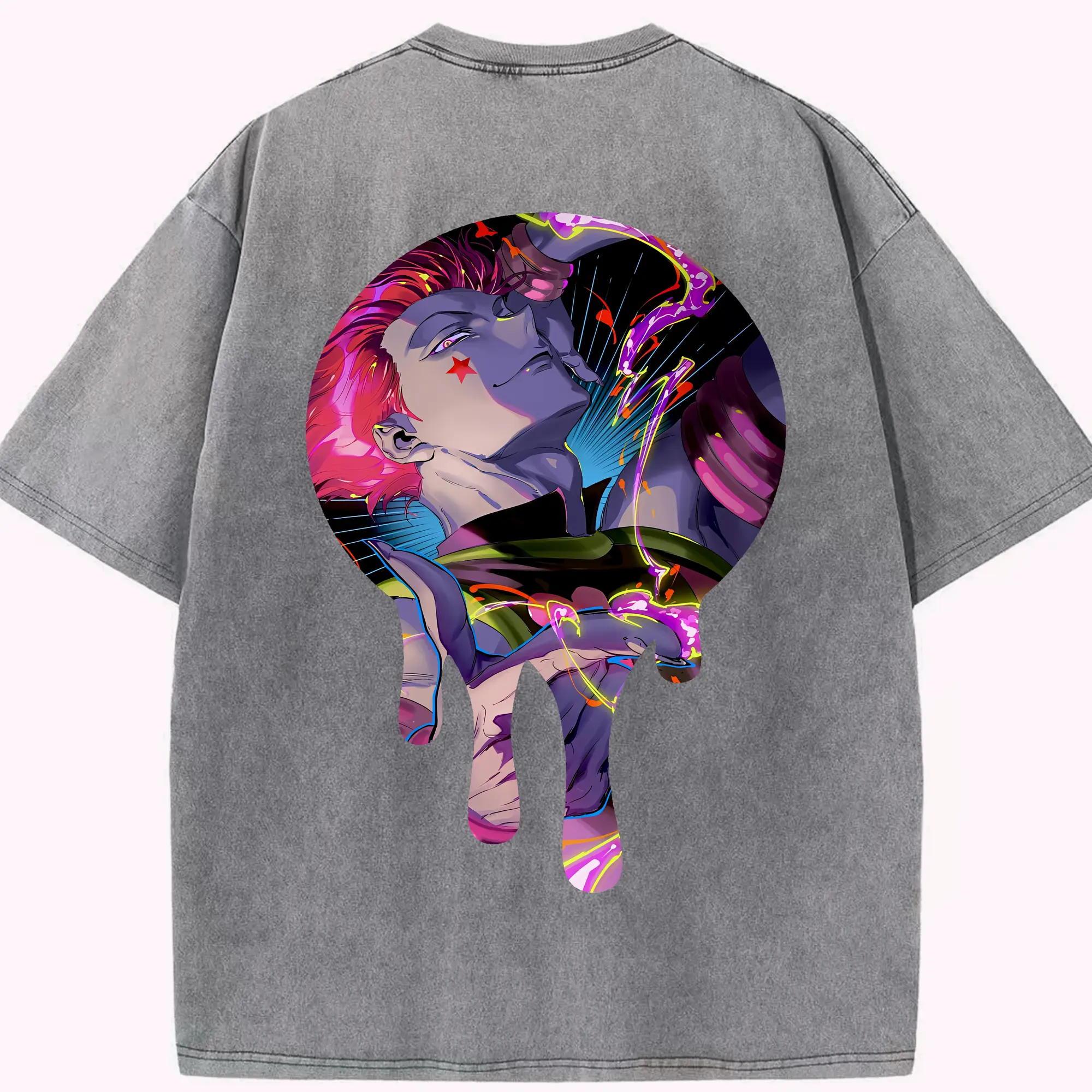 ハンター×ハンター グッズ ヒソカ=モロウ - 綿100% ヴィンテージ風 半袖Tシャツ ・ フロントプリント ・ 柔らか肌触り ・ 通気性 快適 ・ スポーツ カジュアル 外出用