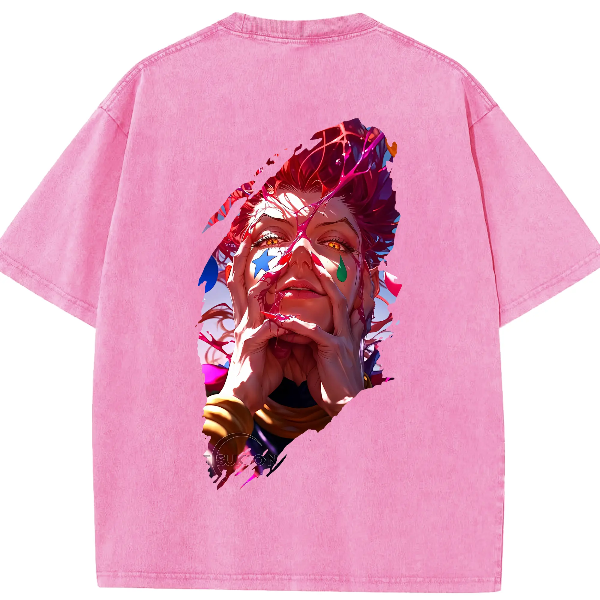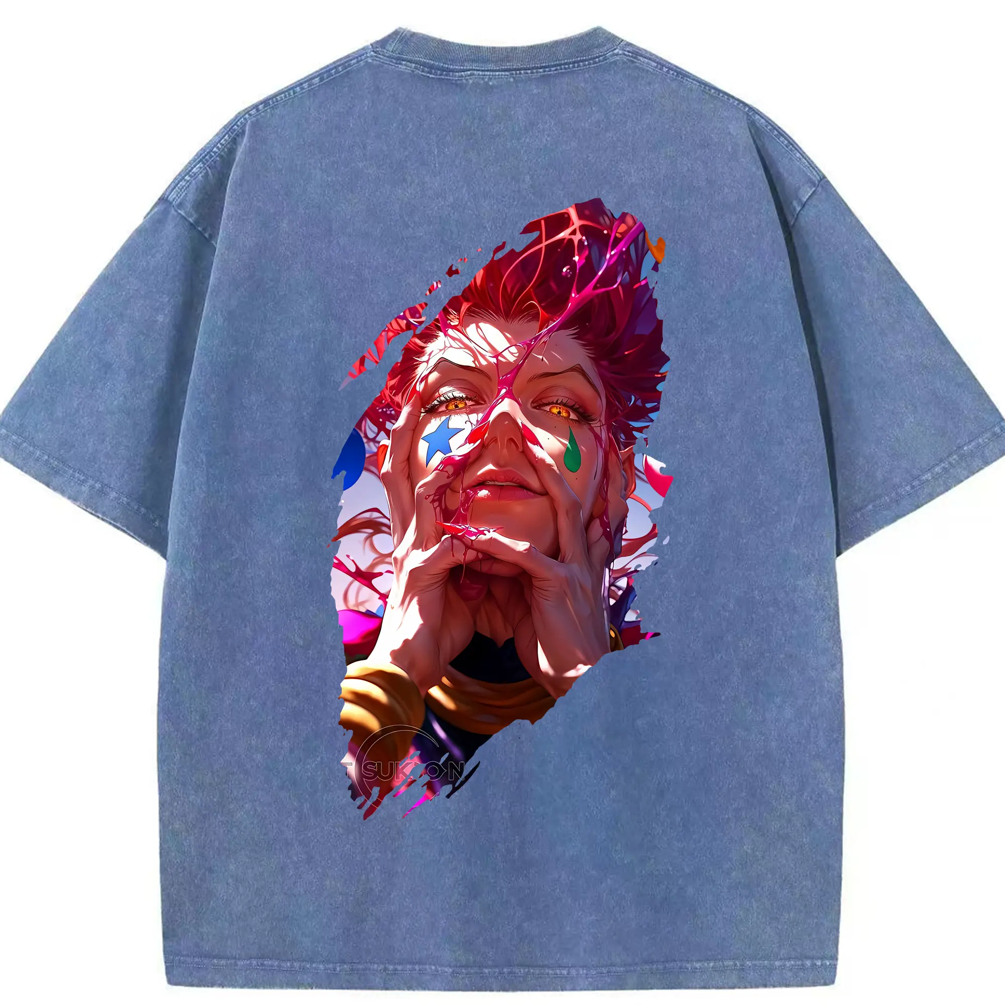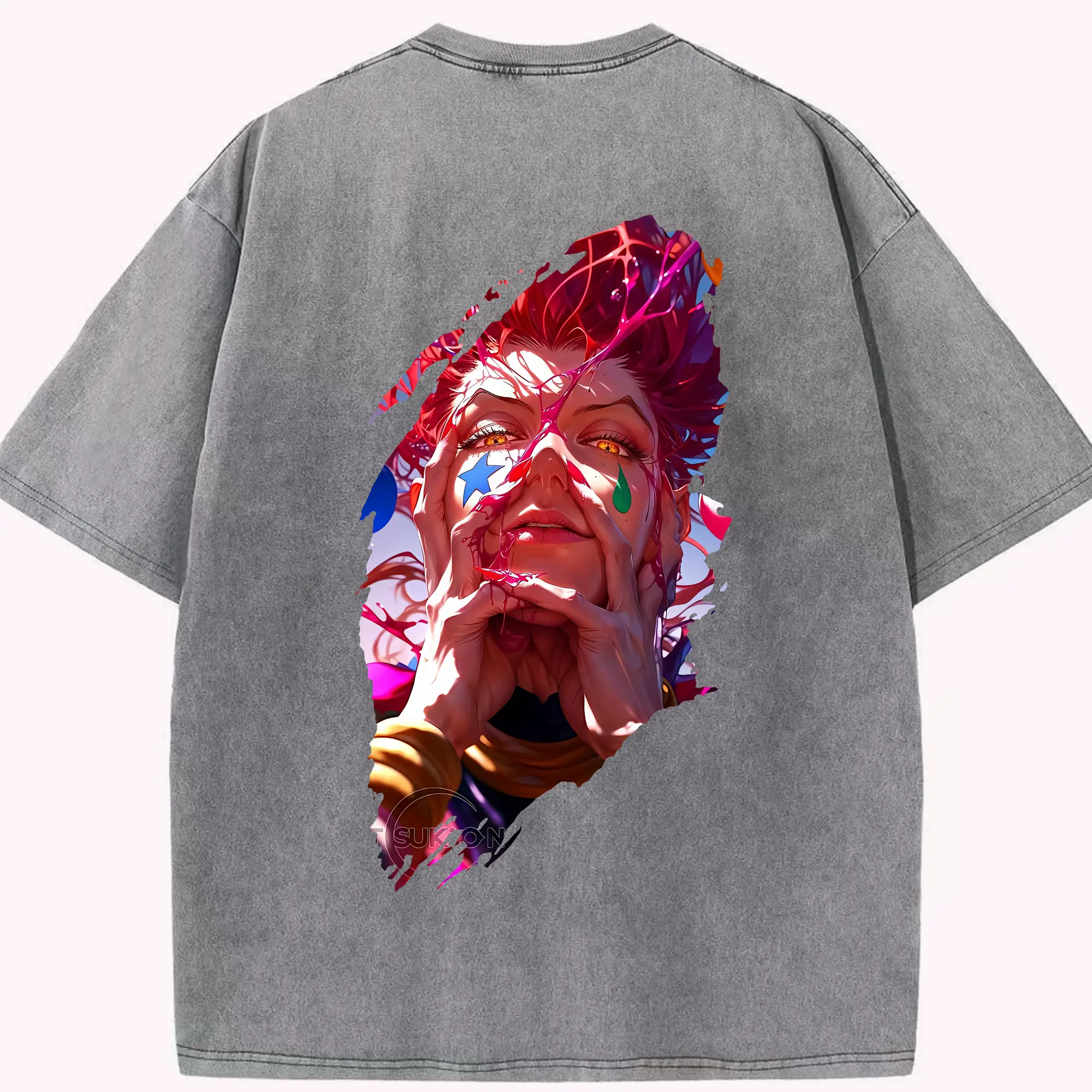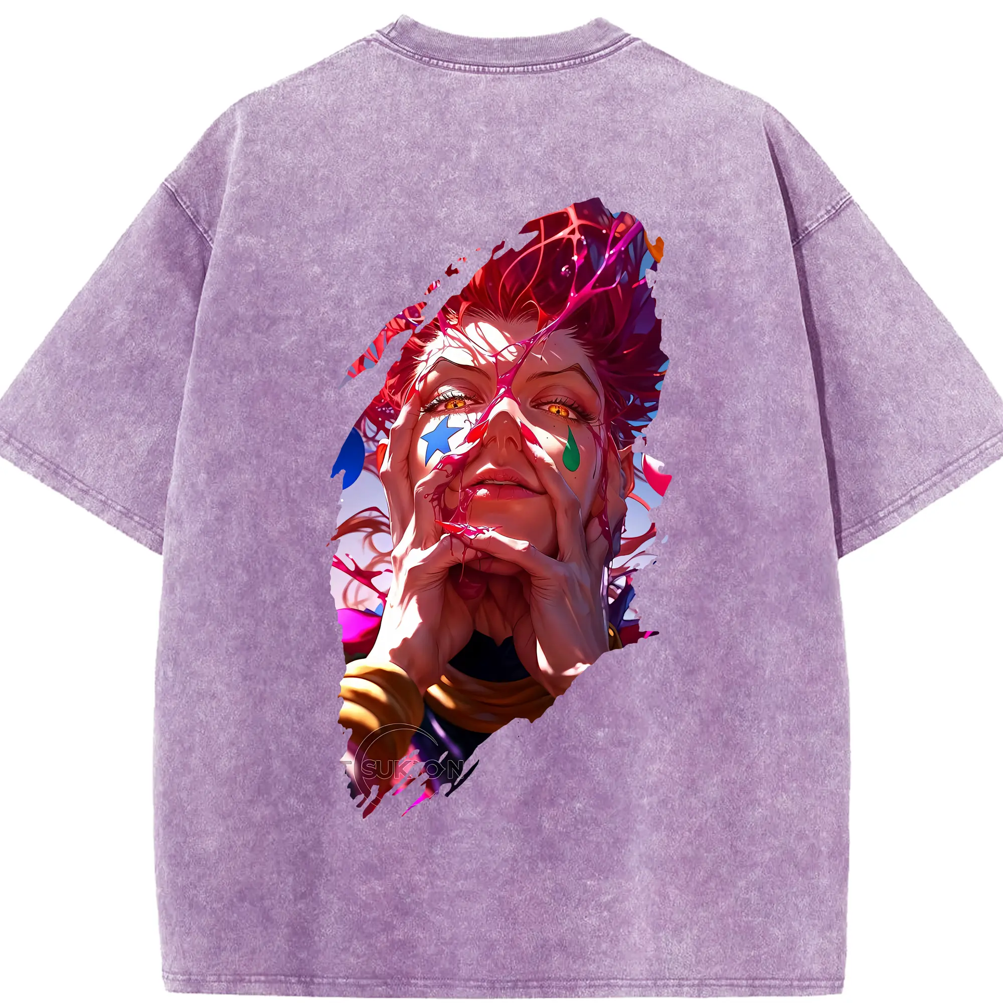 ハンター×ハンター グッズ ヒソカ=モロウ - 綿100% ヴィンテージ風 半袖Tシャツ ・ フロントプリント ・ 柔らか肌触り ・ 通気性 快適 ・ スポーツ カジュアル 外出用
