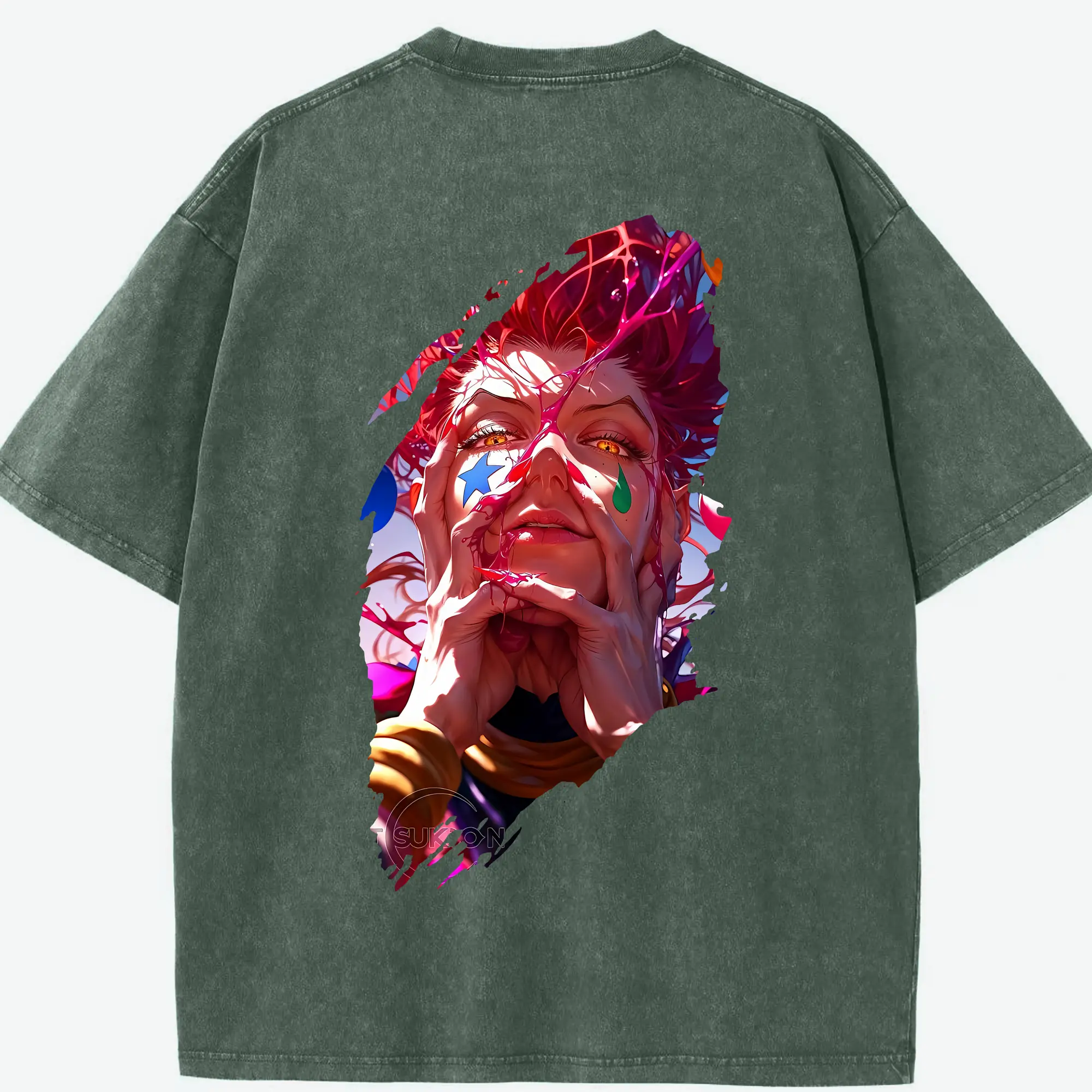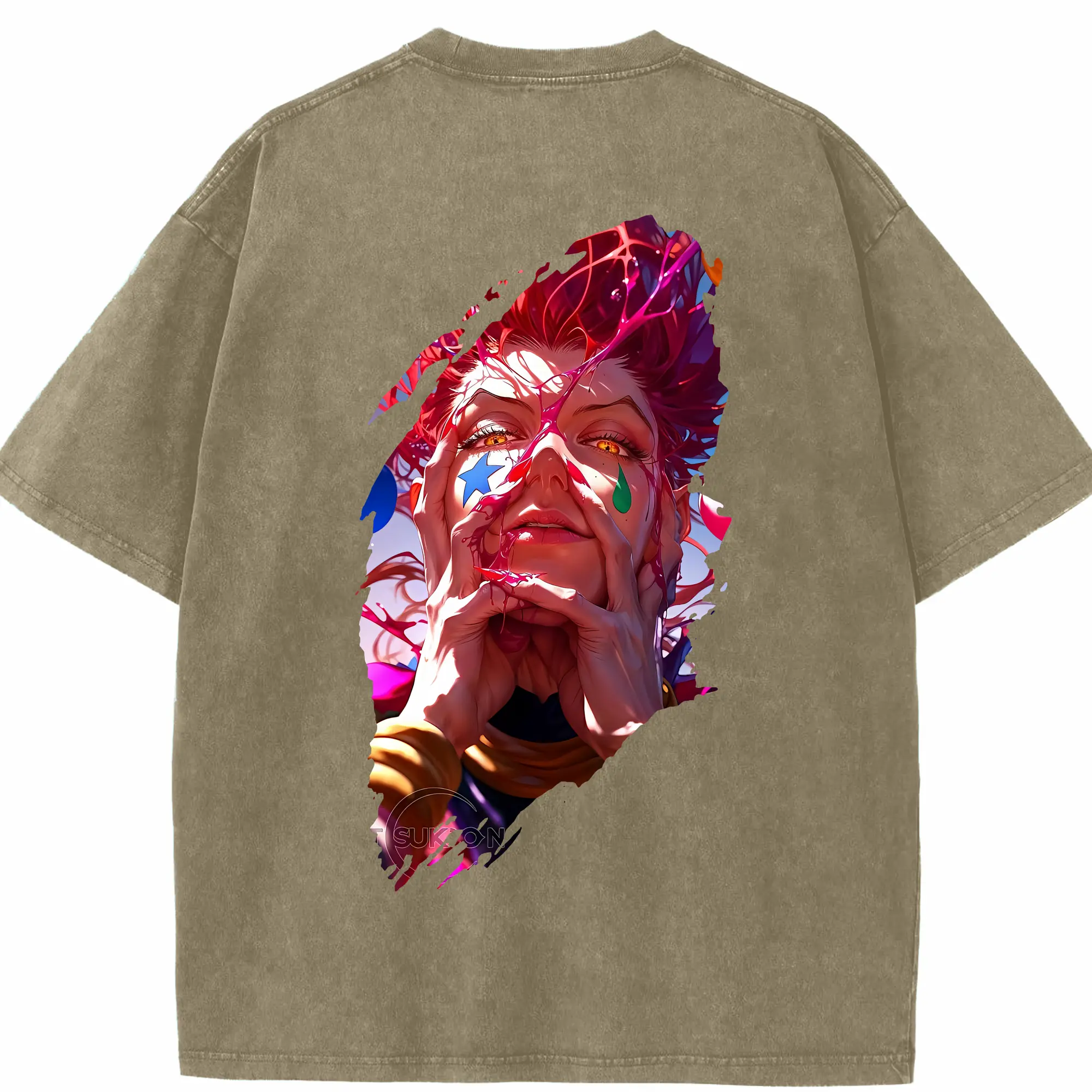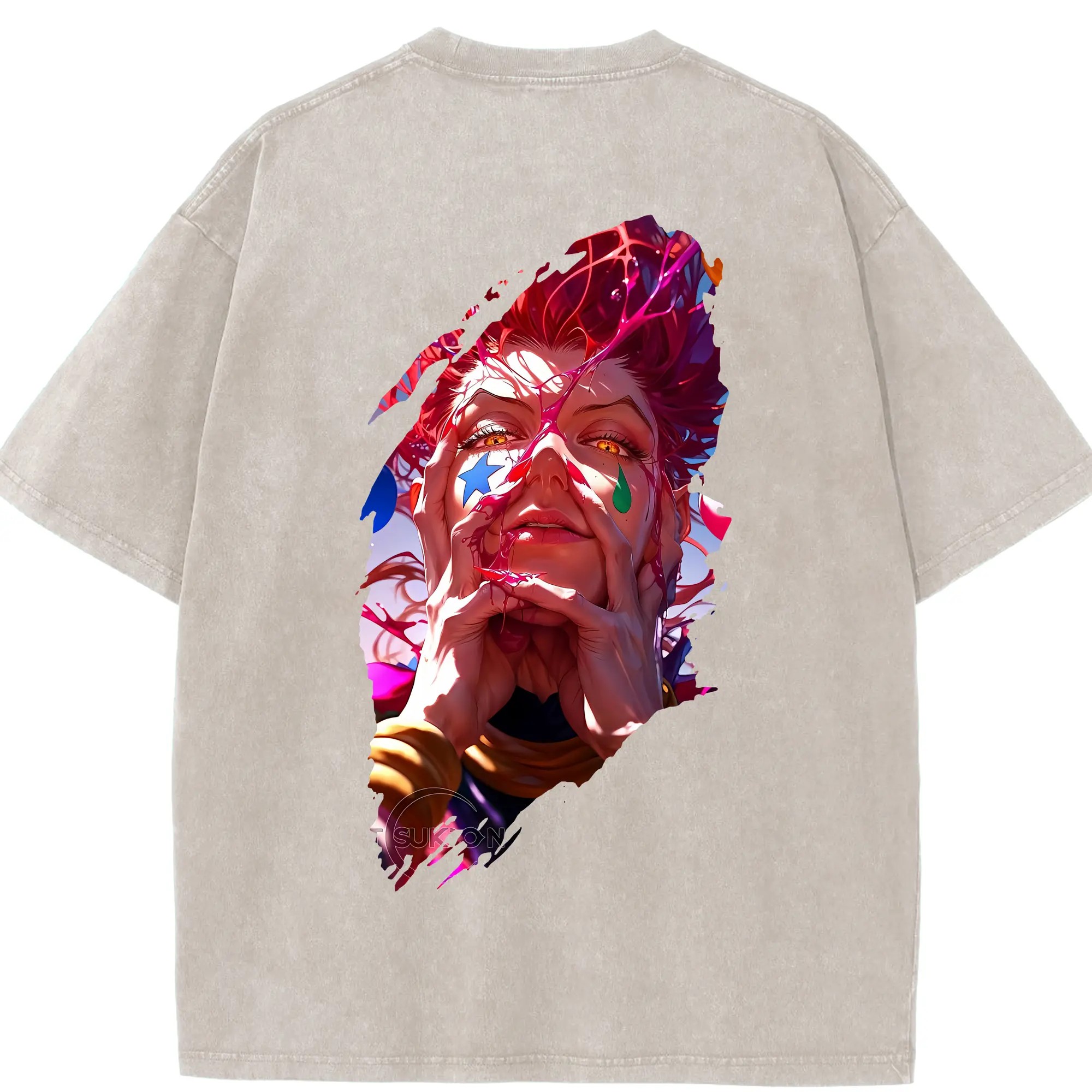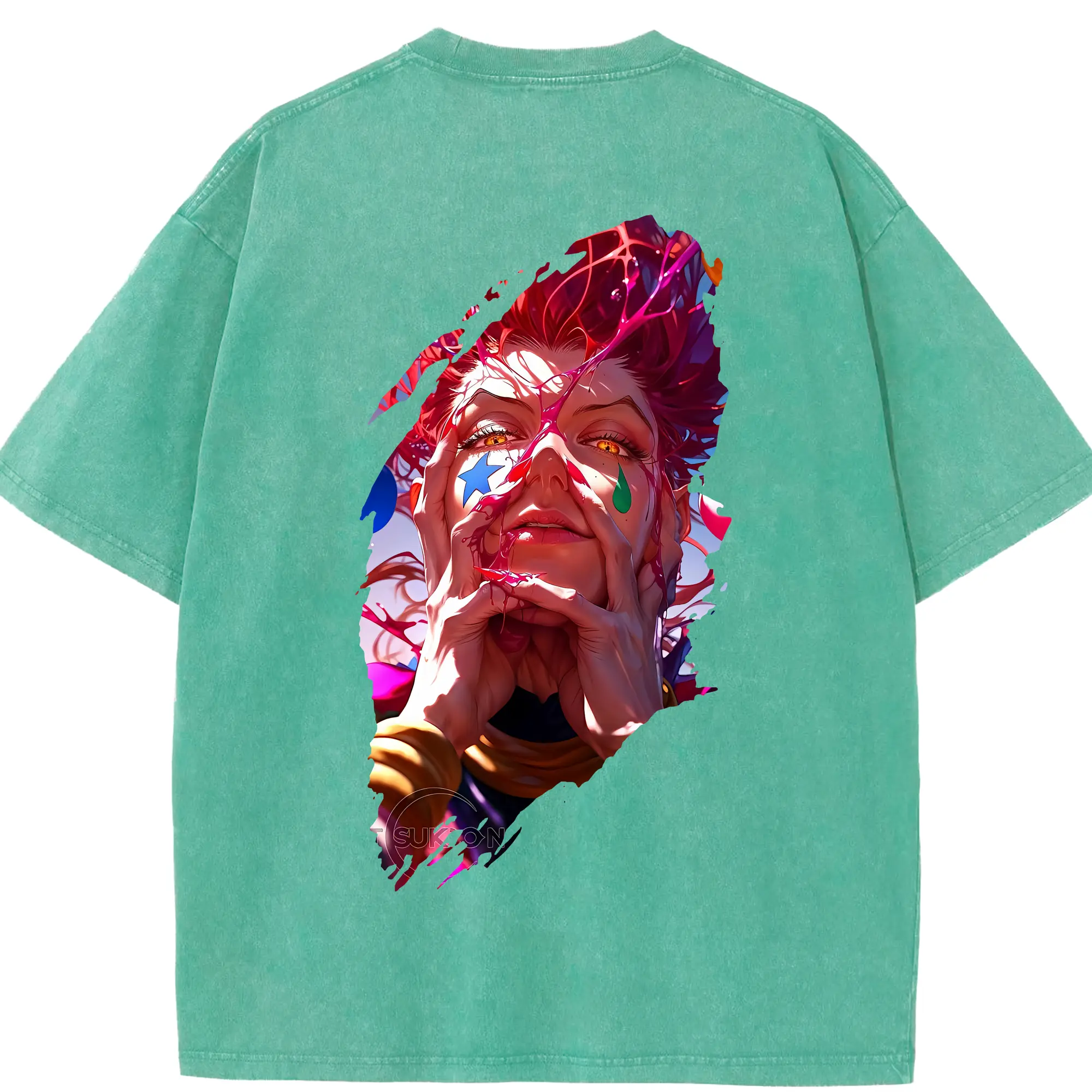 ハンター×ハンター グッズ ヒソカ=モロウ - 綿100% ヴィンテージ風 半袖Tシャツ ・ フロントプリント ・ 柔らか肌触り ・ 通気性 快適 ・ スポーツ カジュアル 外出用