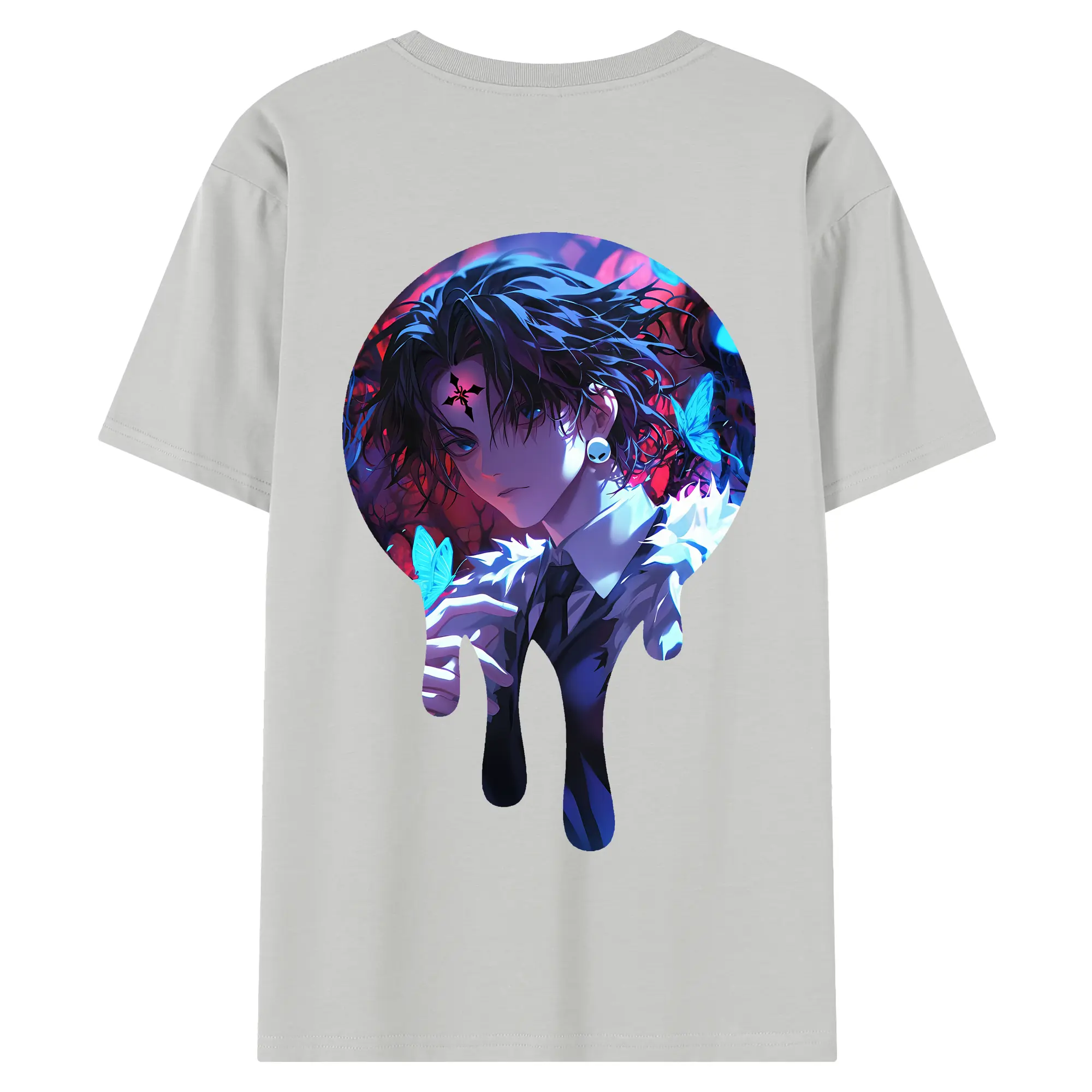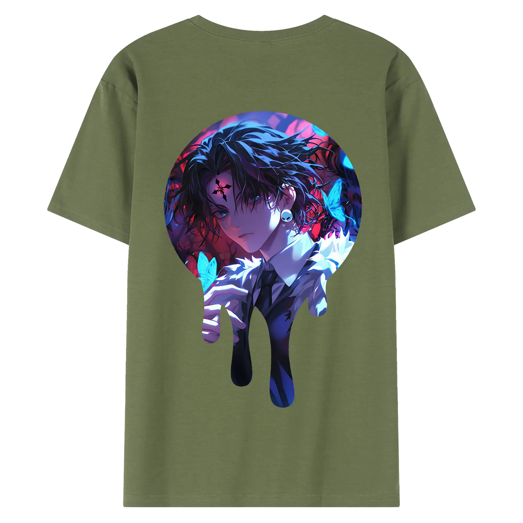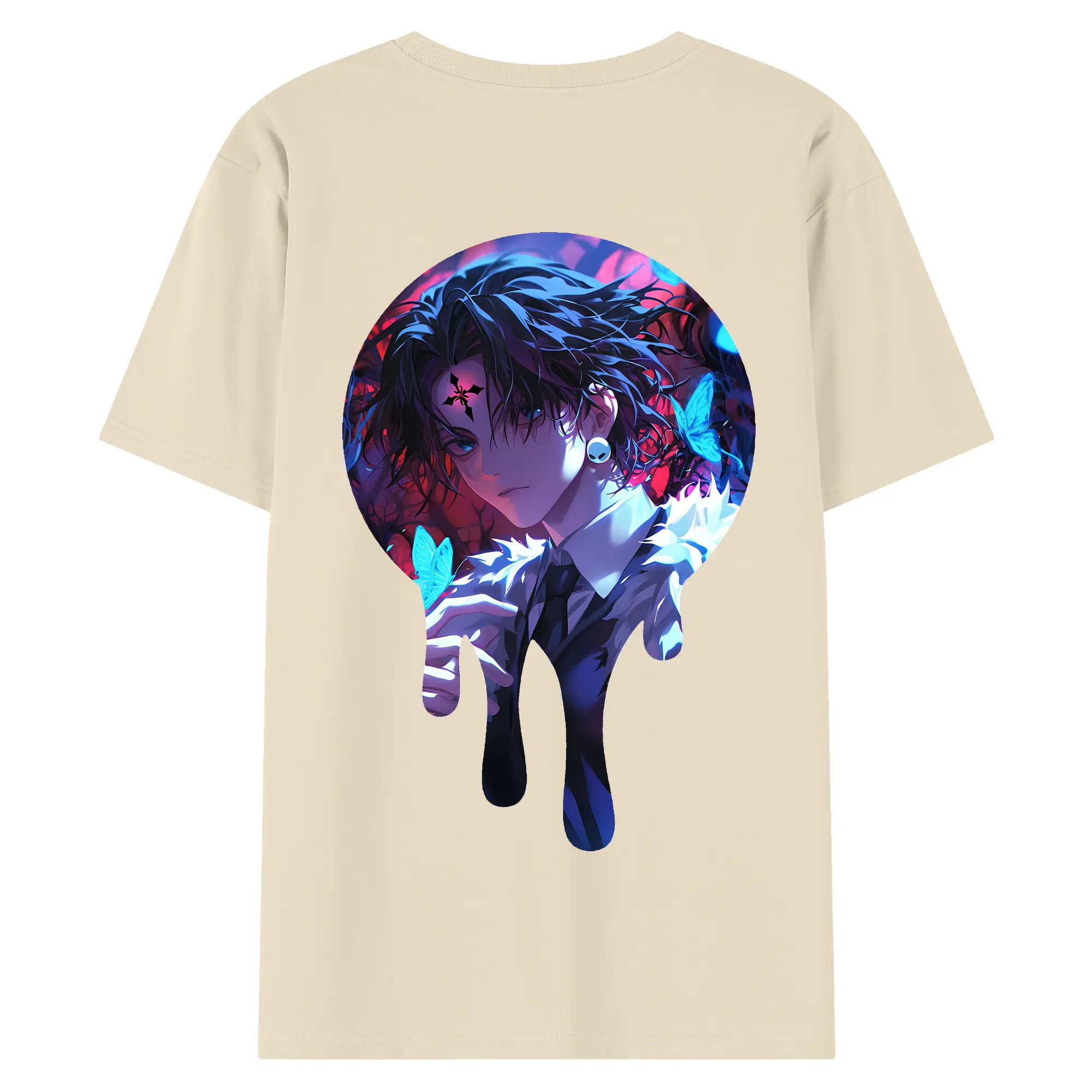 ハンター×ハンター グッズ クロロ=ルシルフル - 綿100% ヴィンテージ風 半袖Tシャツ ・ 背面プリント ・ 柔らか肌触り ・ 通気性 快適 ・ スポーツ カジュアル 外出用