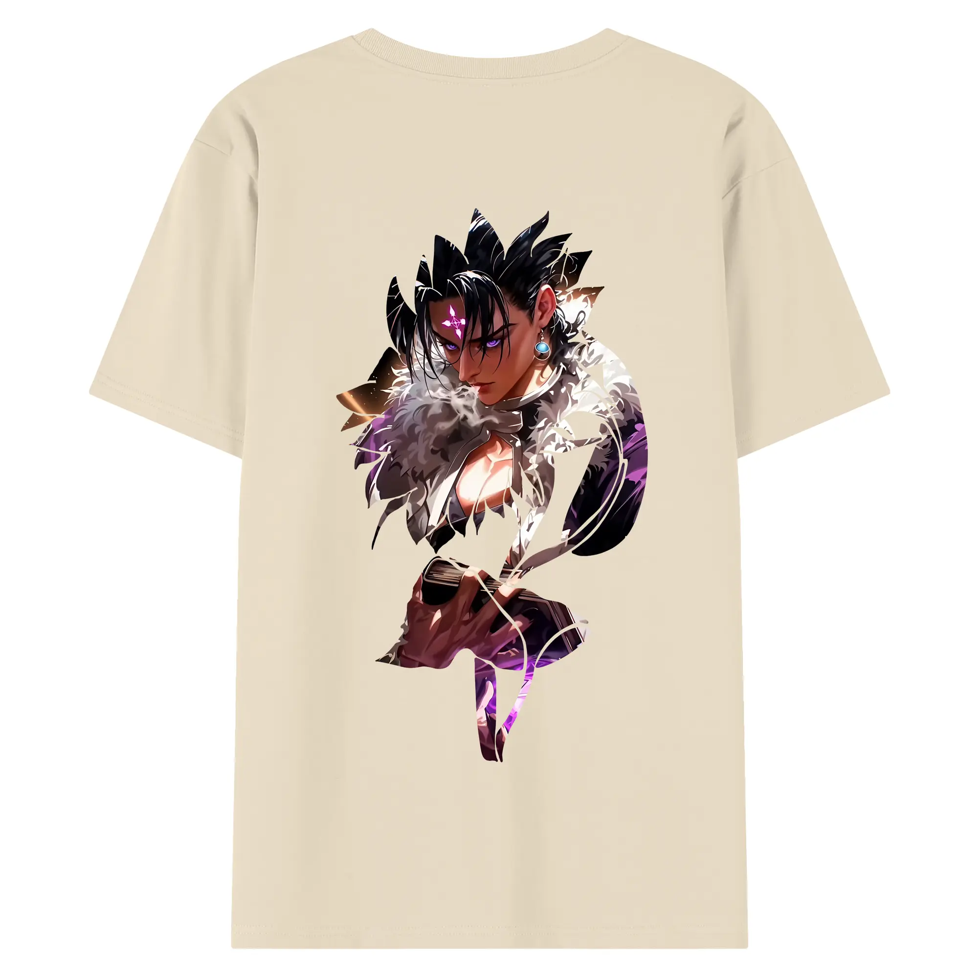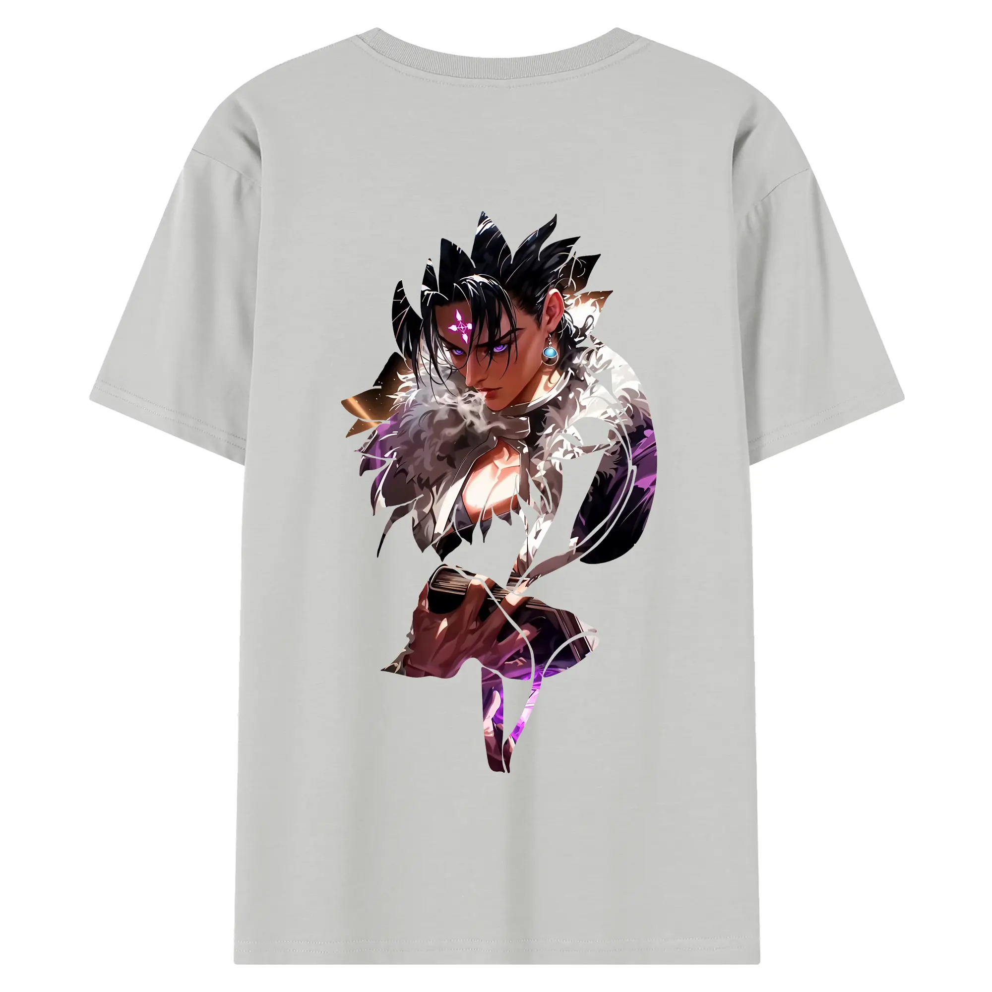 ハンター×ハンター グッズ クロロ=ルシルフル - 綿100% ヴィンテージ風 半袖Tシャツ ・ 背面プリント ・ 柔らか肌触り ・ 通気性 快適 ・ スポーツ カジュアル 外出用