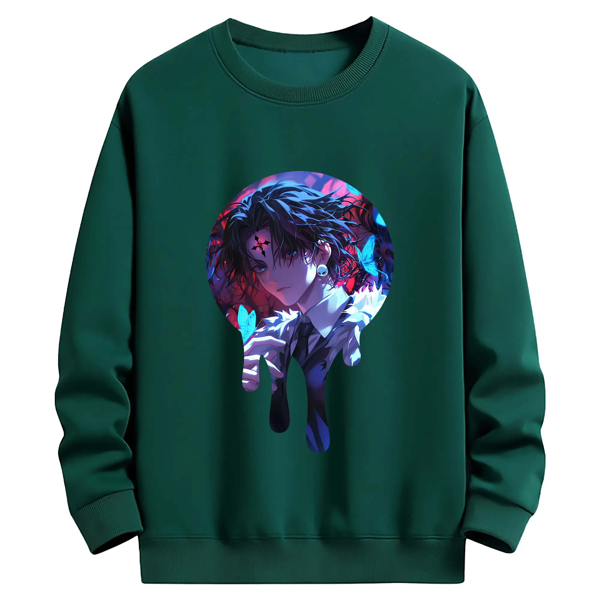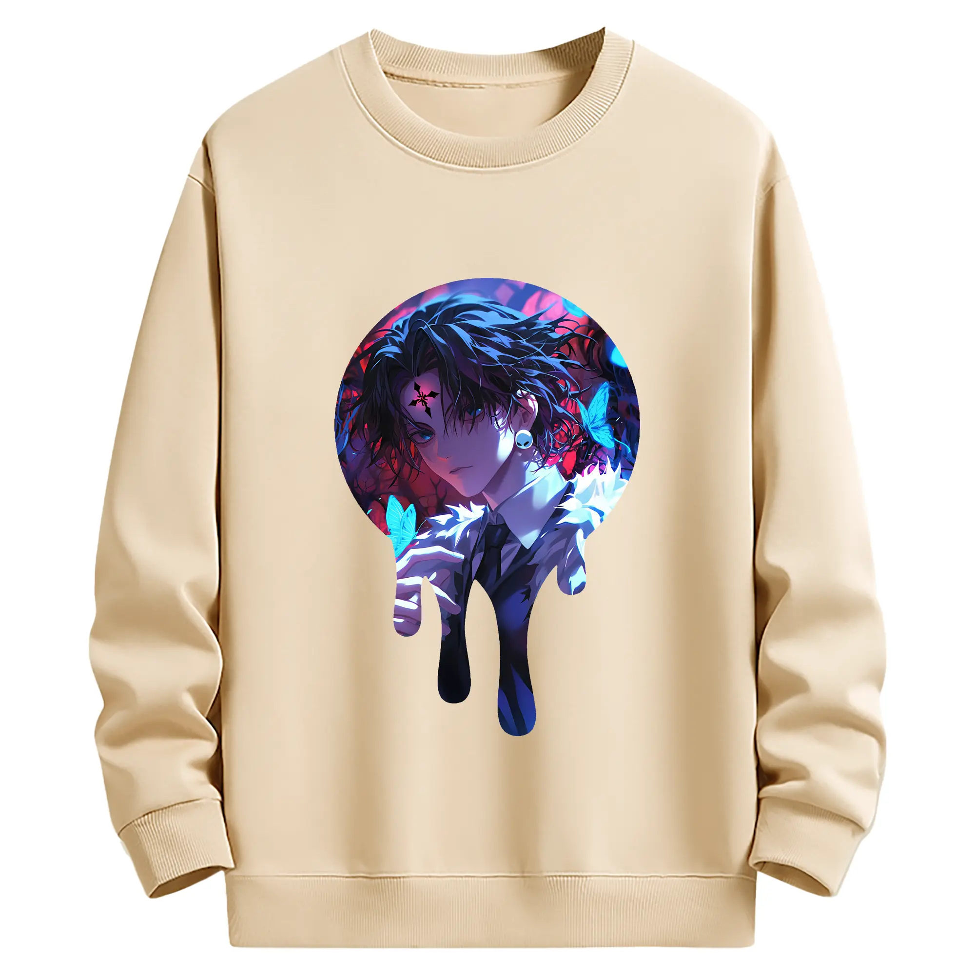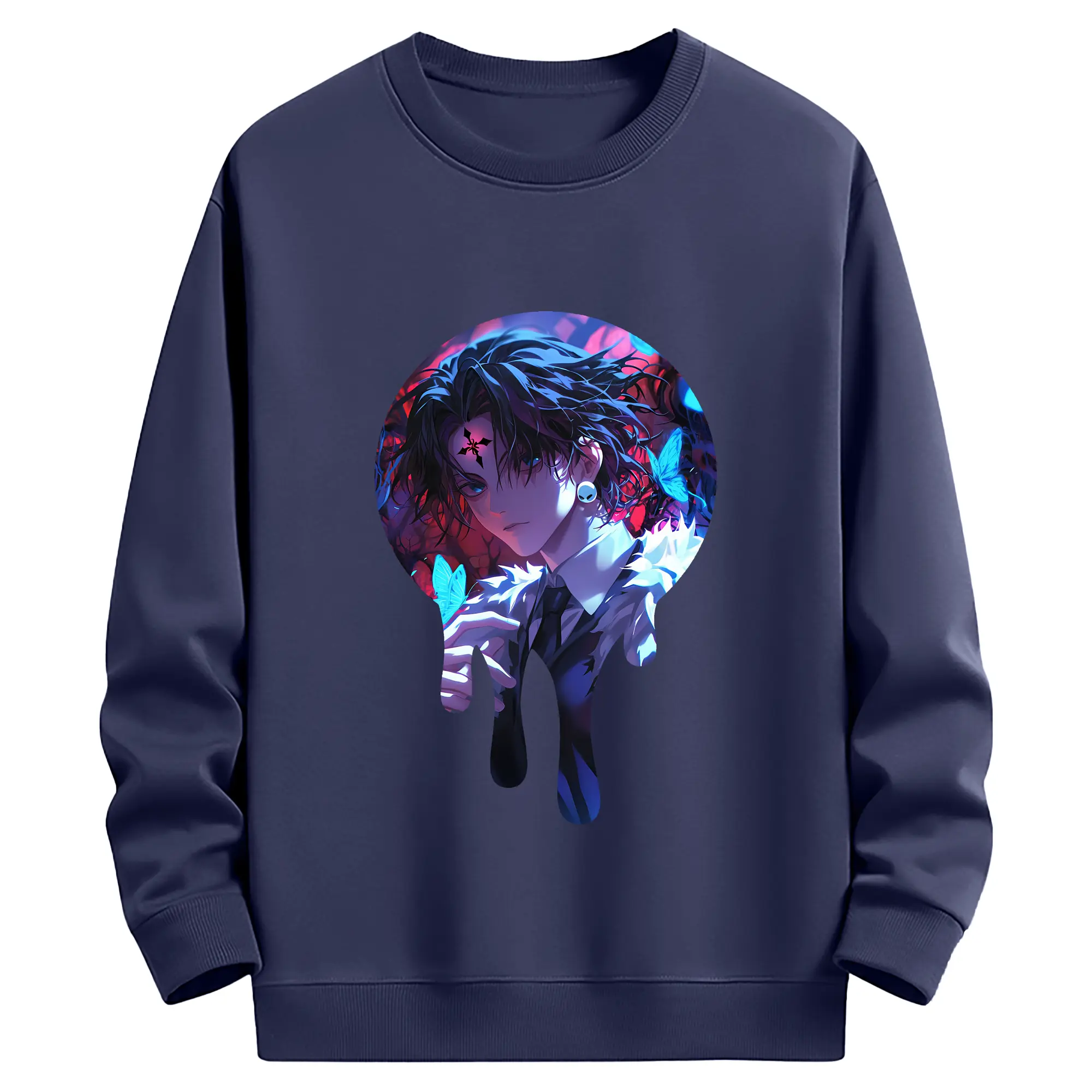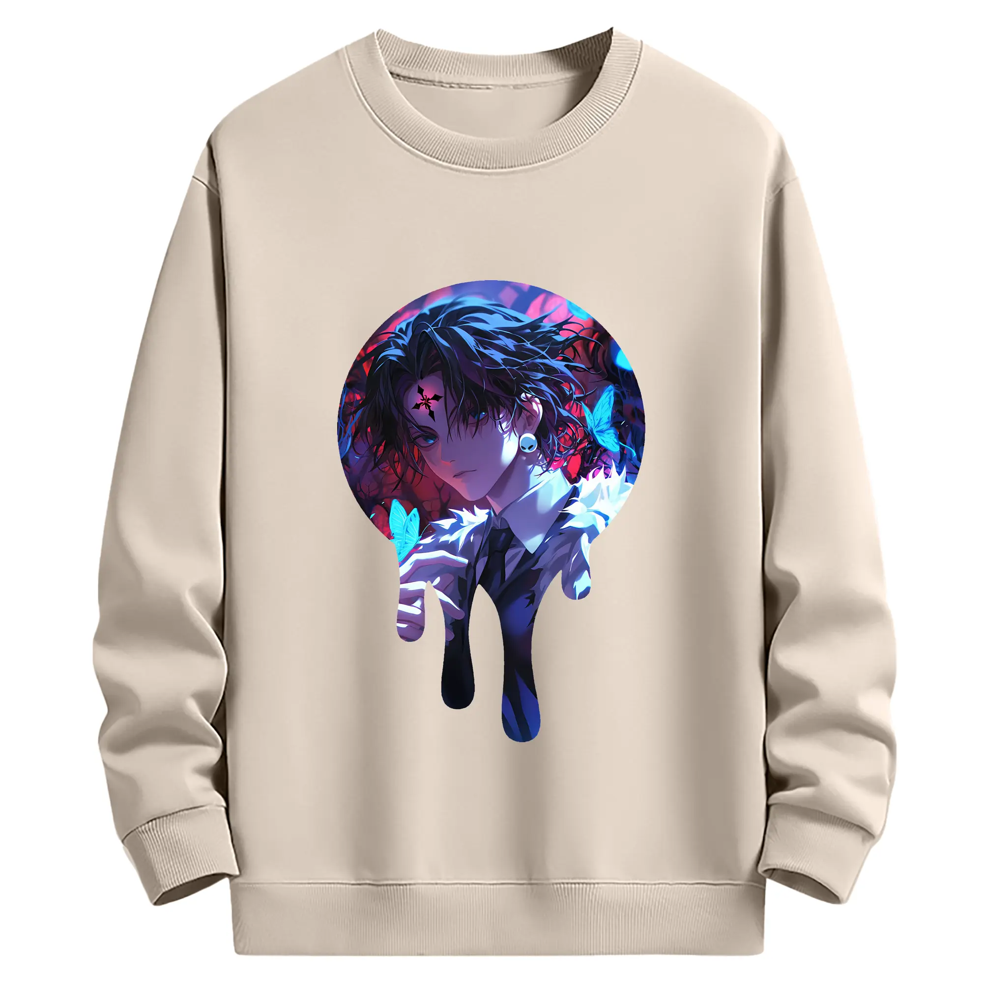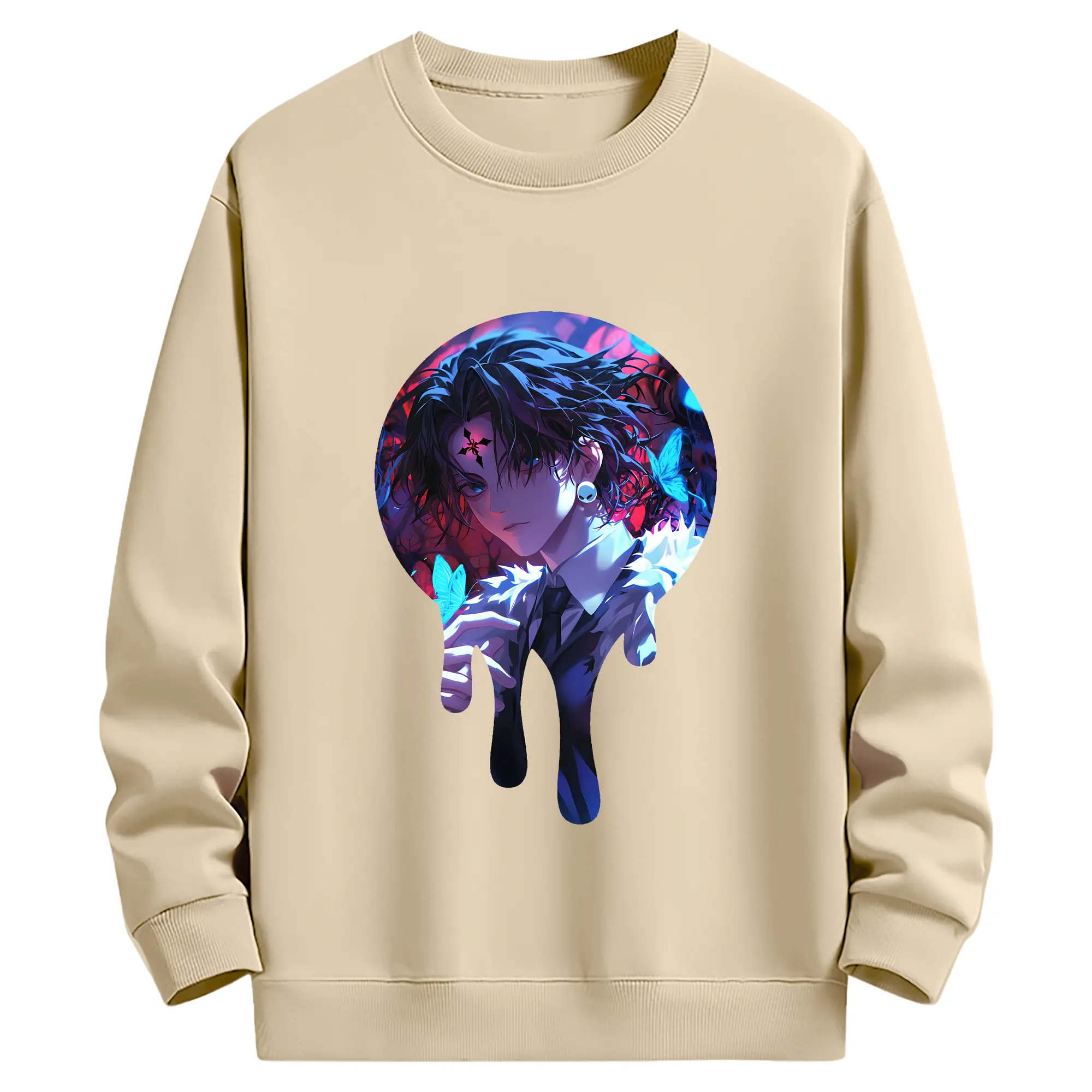 ハンター×ハンター グッズ クロロ=ルシルフル - 薄手 クルーネック スウェット 裏毛260g · ポリエステル 春秋向け カジュアル 男女兼用 · トレーナー デイリー スポーツ 散歩に最適