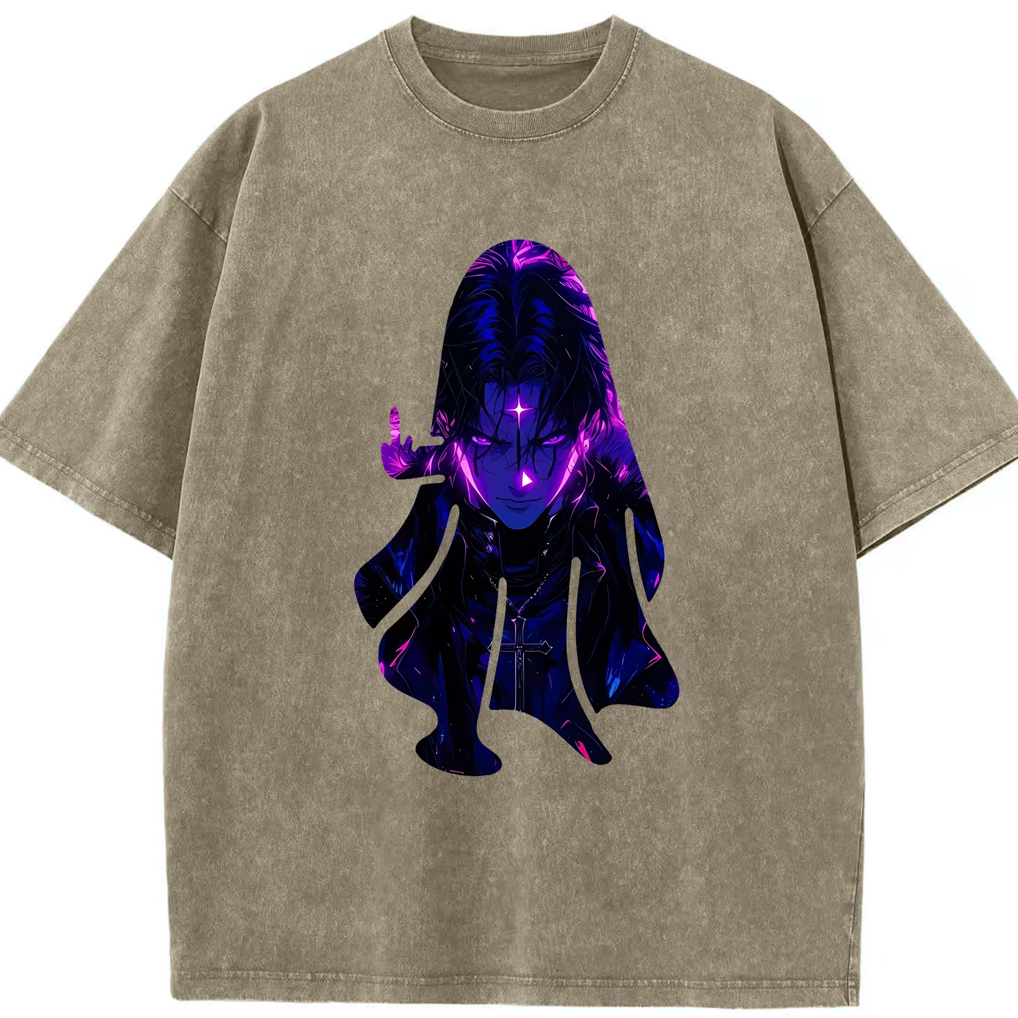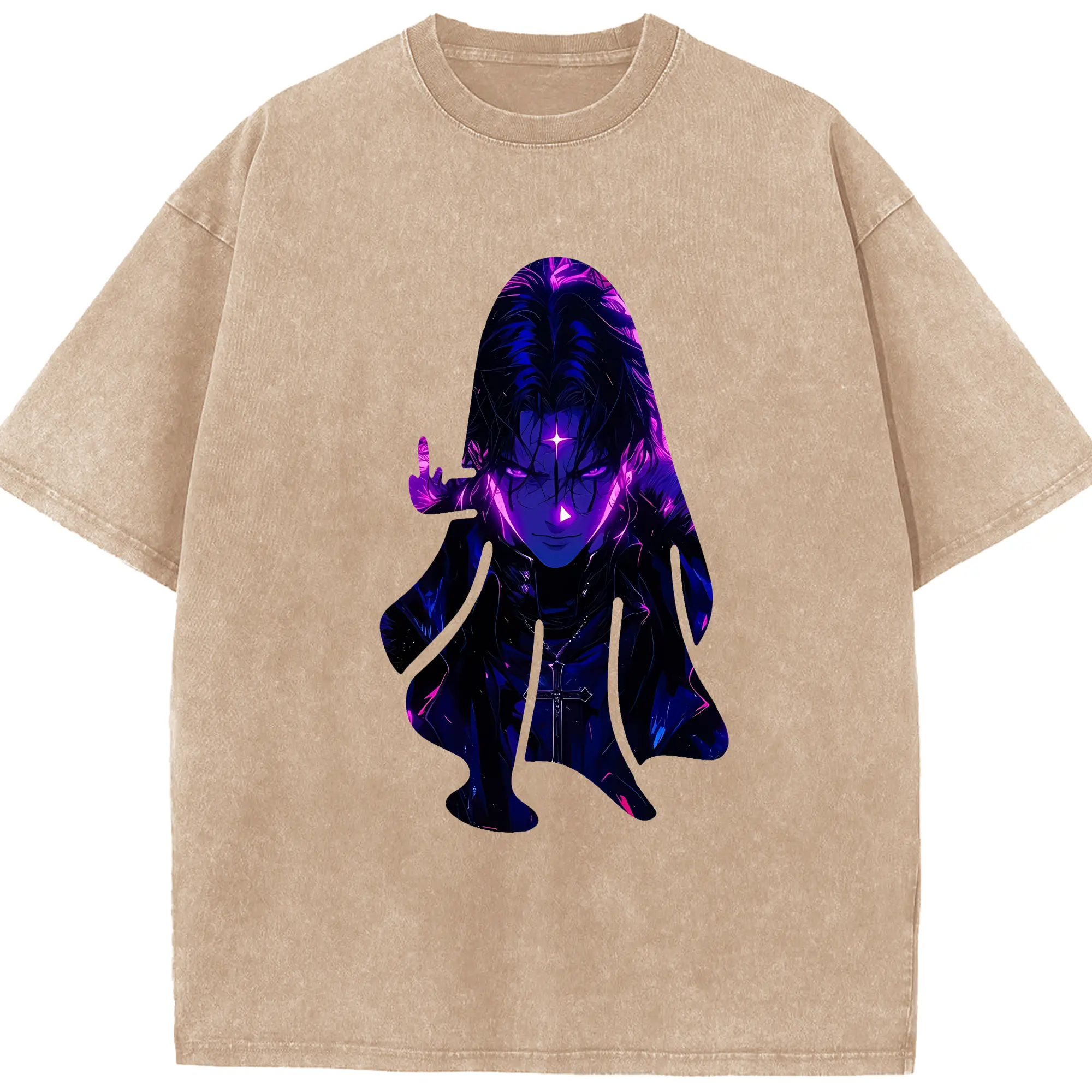 ハンター×ハンター グッズ クロロ=ルシルフル - 綿100% ヴィンテージ風 半袖Tシャツ ・ 背面プリント ・ 柔らか肌触り ・ 通気性 快適 ・ スポーツ カジュアル 外出用