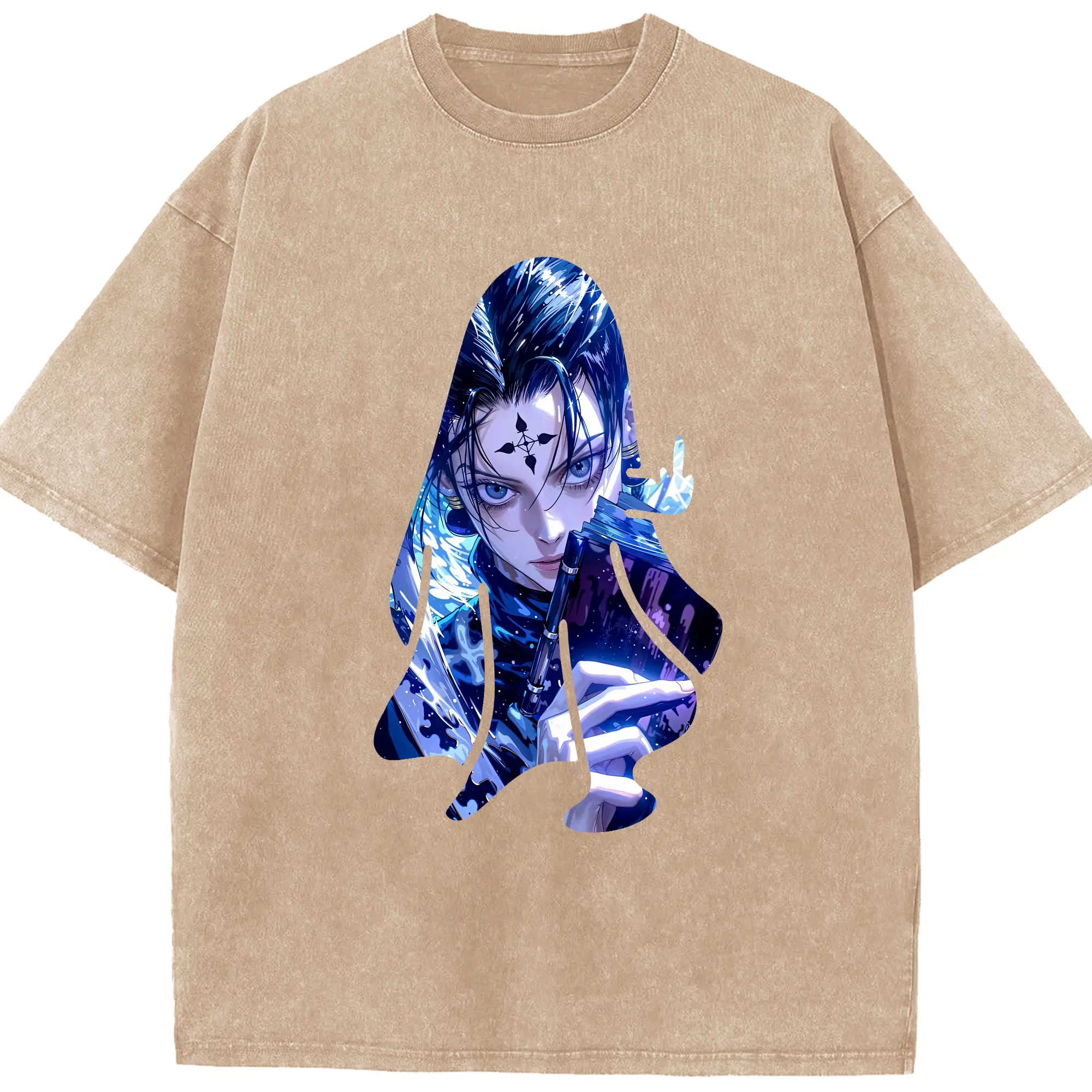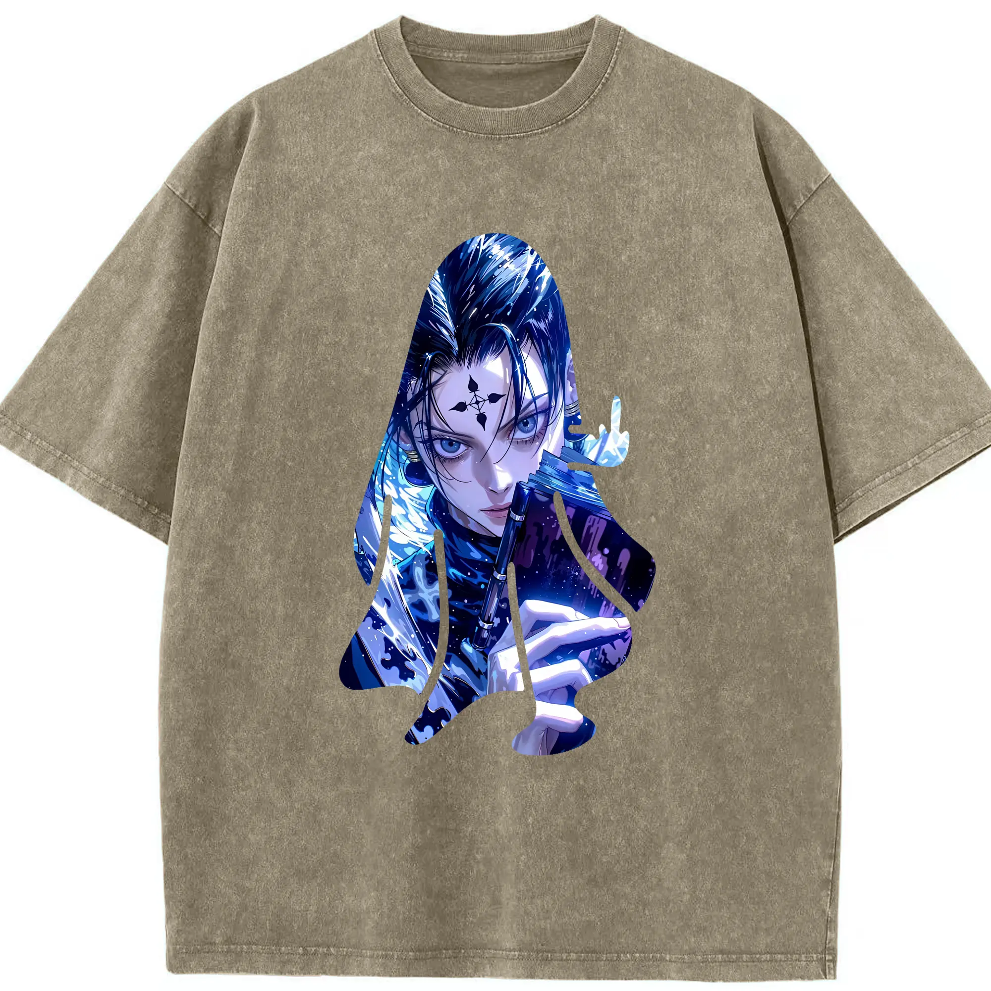 ハンター×ハンター グッズ クロロ=ルシルフル - 綿100% ヴィンテージ風 半袖Tシャツ ・ 背面プリント ・ 柔らか肌触り ・ 通気性 快適 ・ スポーツ カジュアル 外出用