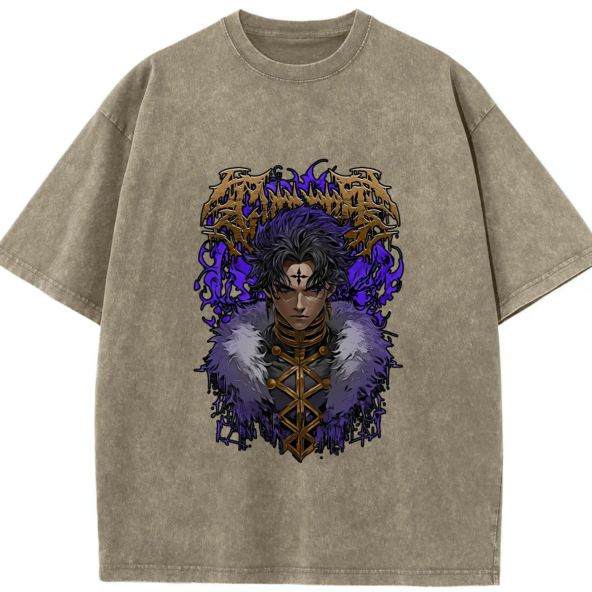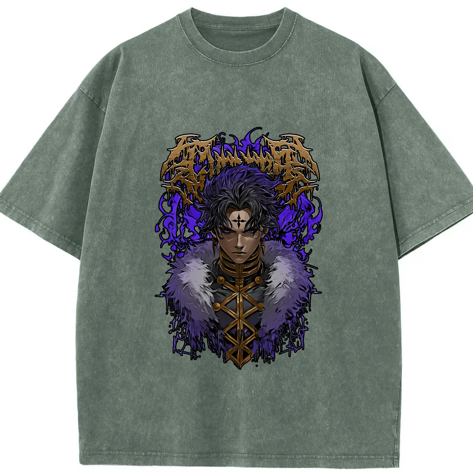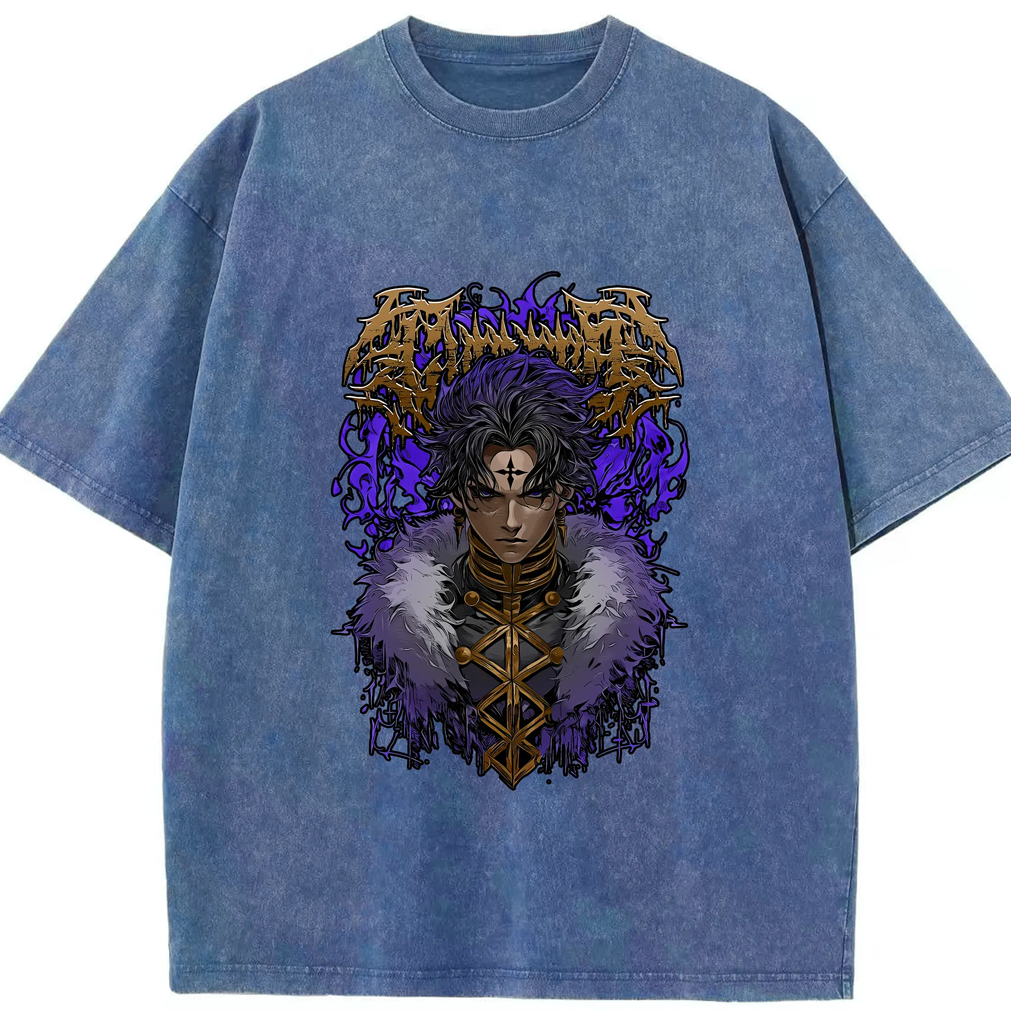 ハンター×ハンター グッズ クロロ=ルシルフル - 綿100% ヴィンテージ風 半袖Tシャツ ・ 背面プリント ・ 柔らか肌触り ・ 通気性 快適 ・ スポーツ カジュアル 外出用