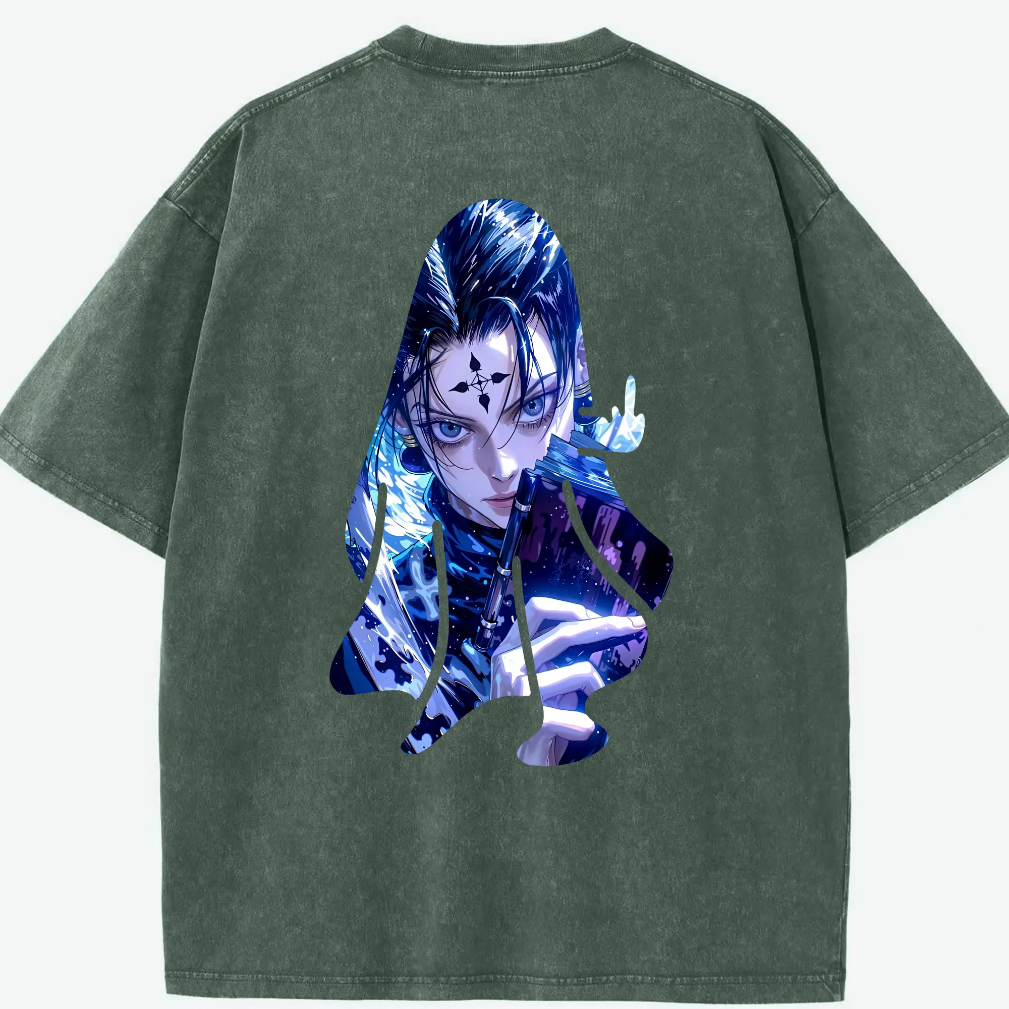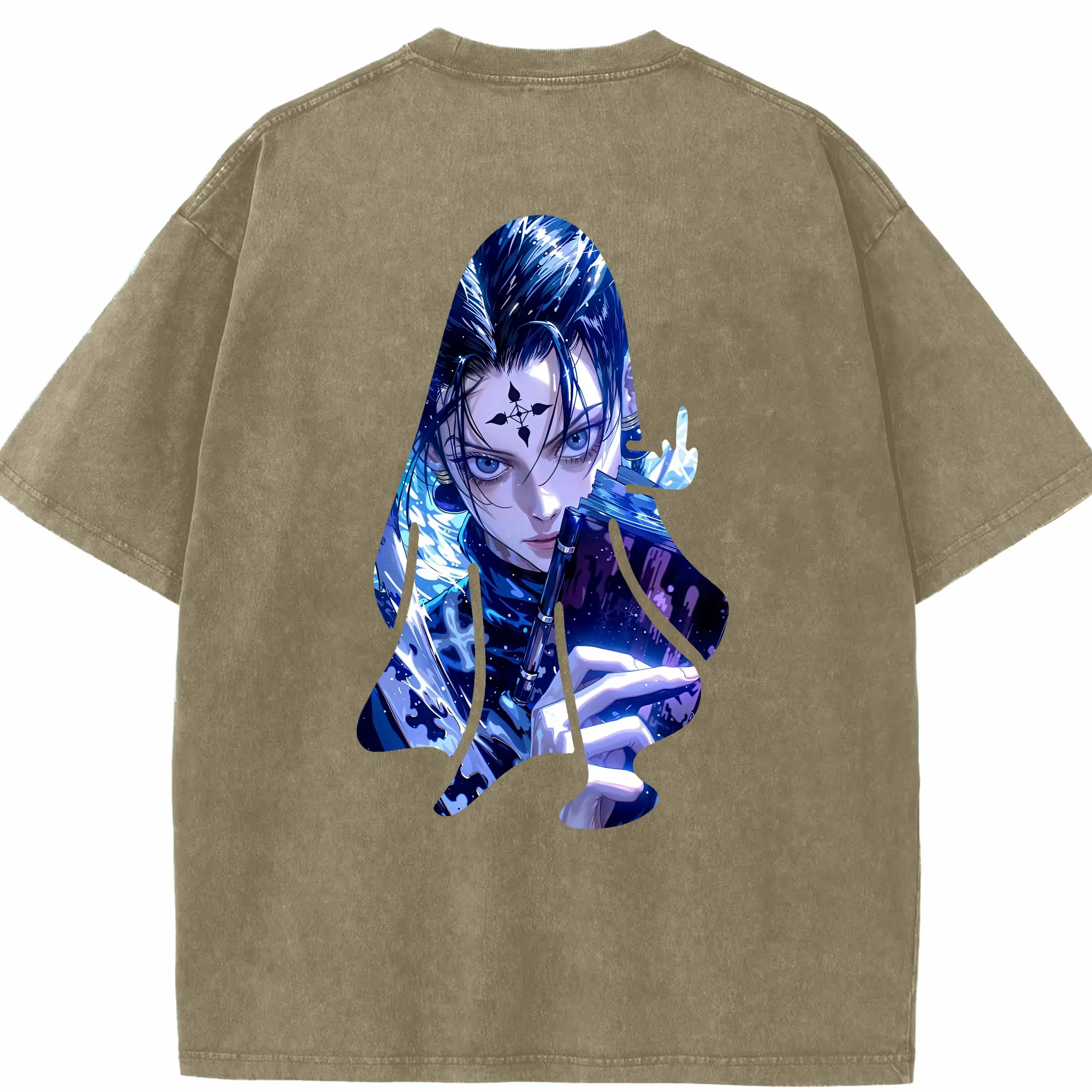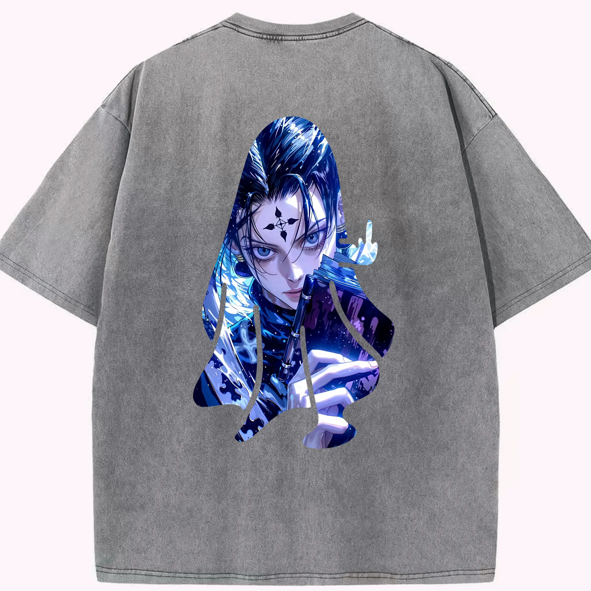 ハンター×ハンター グッズ クロロ=ルシルフル - 綿100% ヴィンテージ風 半袖Tシャツ ・ フロントプリント ・ 柔らか肌触り ・ 通気性 快適 ・ スポーツ カジュアル 外出用