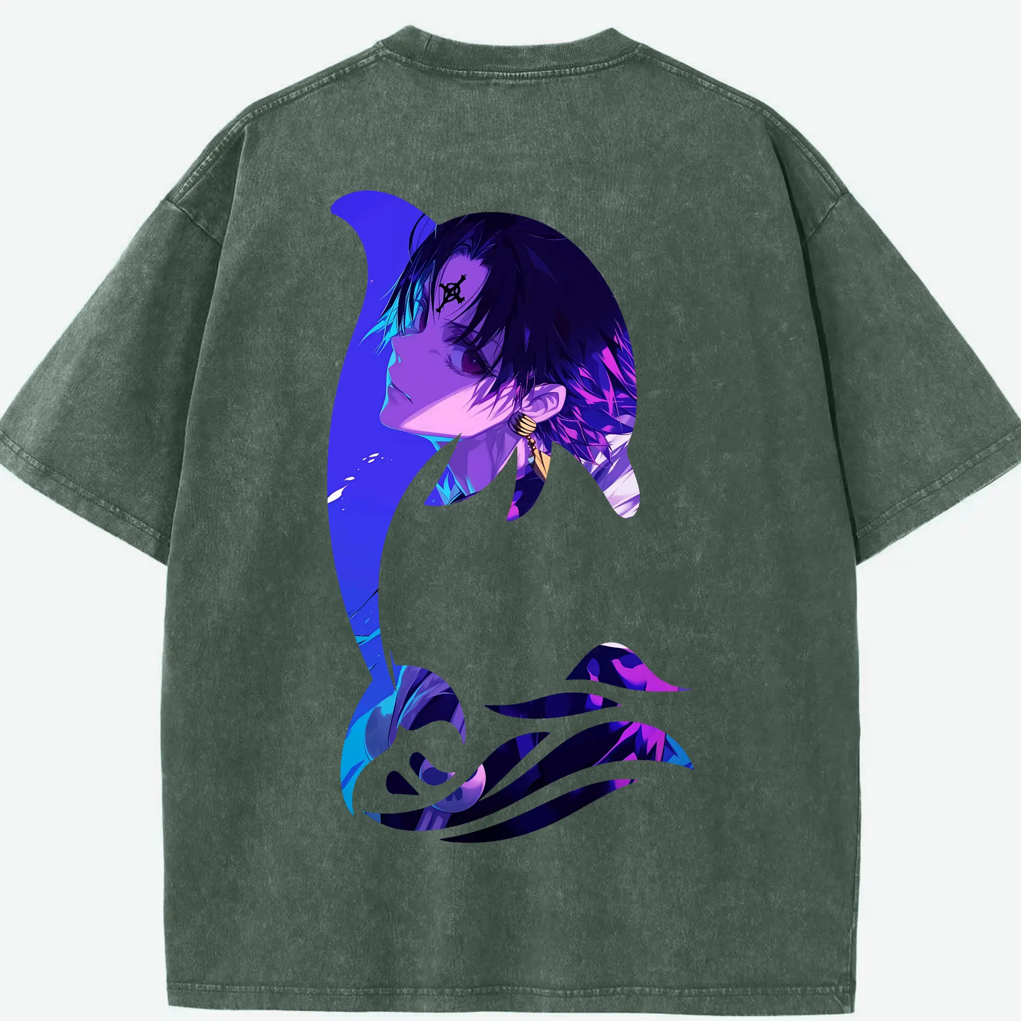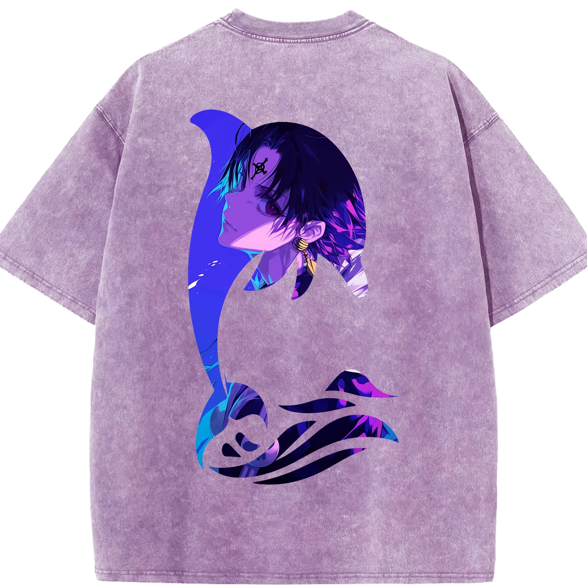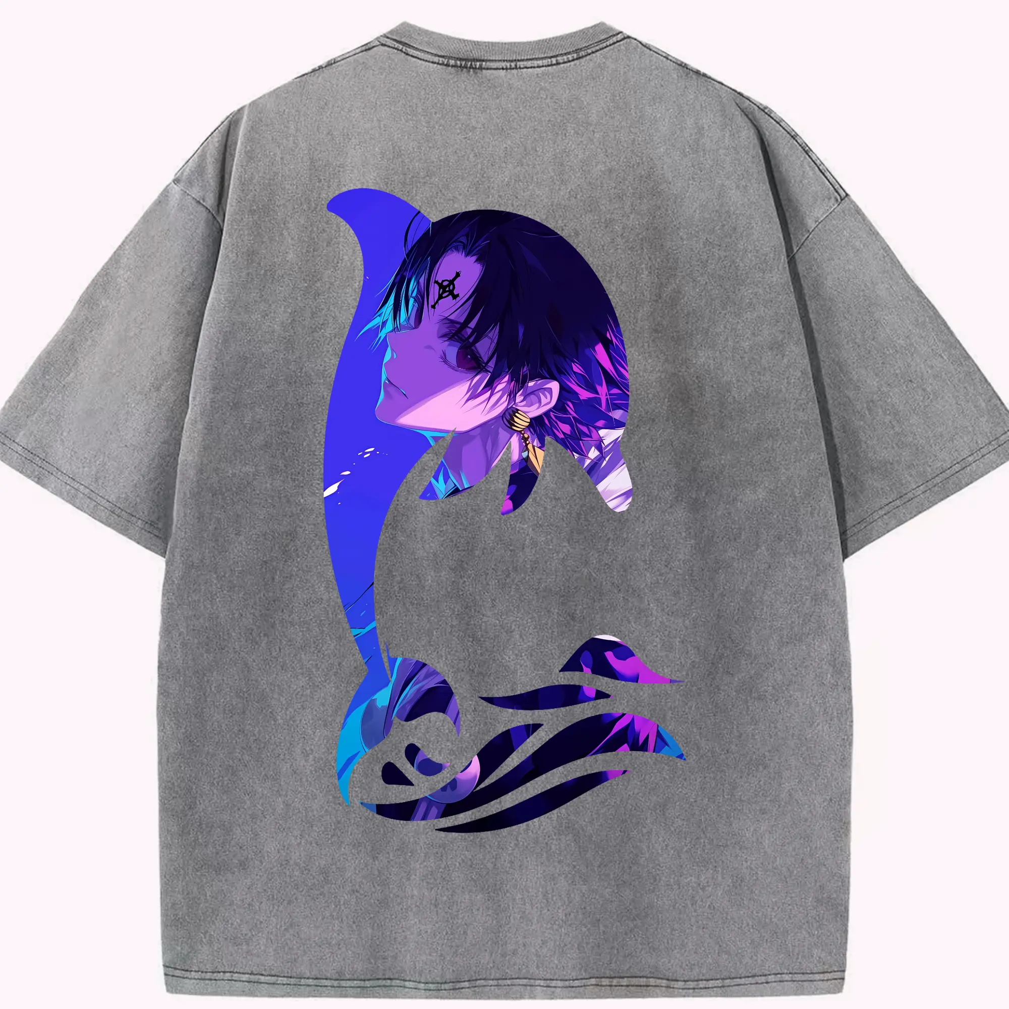 鬼滅の刃 グッズ,伊黒 小芭内 - 綿100% ヴィンテージ風 半袖Tシャツ ・ 背面プリント ・ 柔らか肌触り ・ 通気性 快適 ・ スポーツ カジュアル 外出用