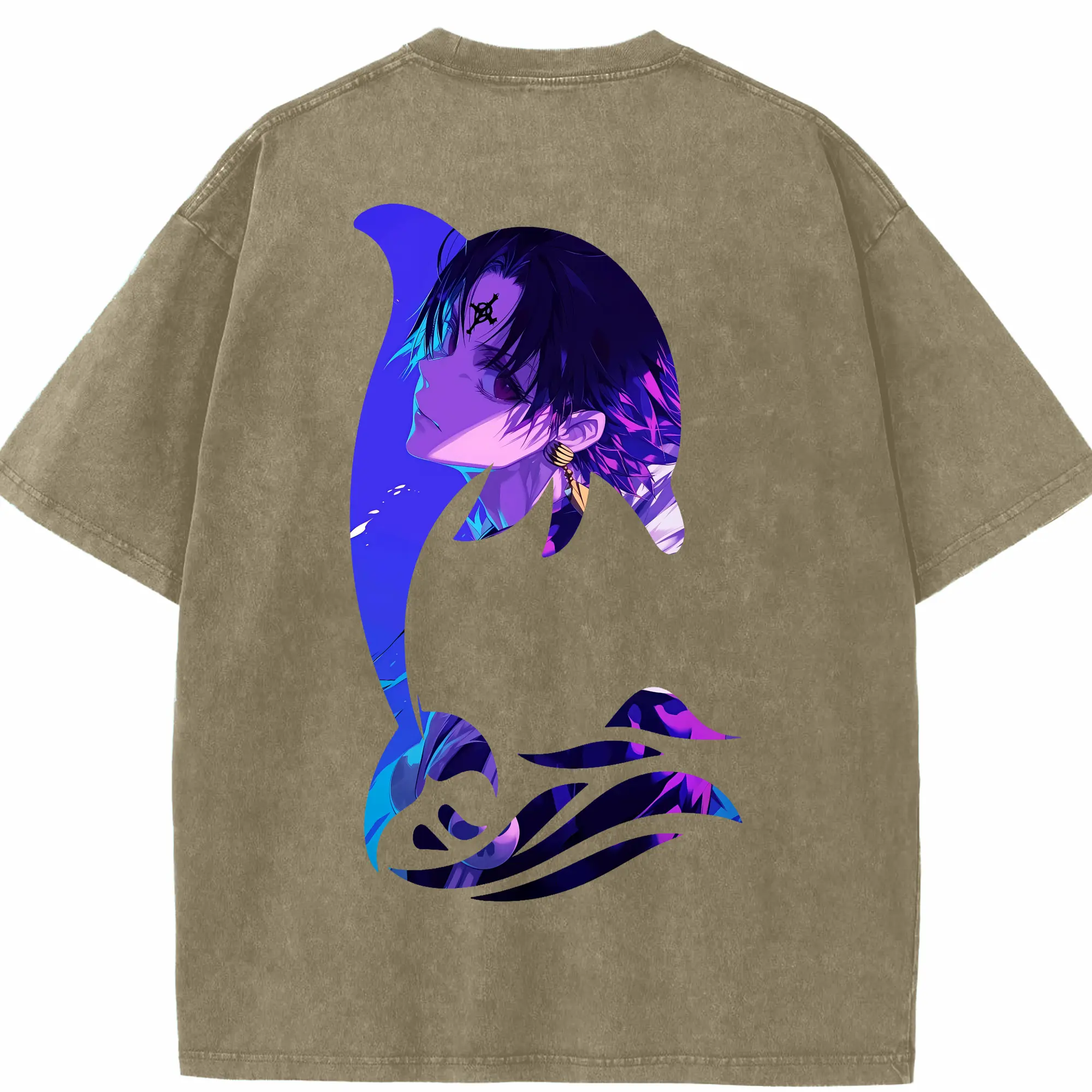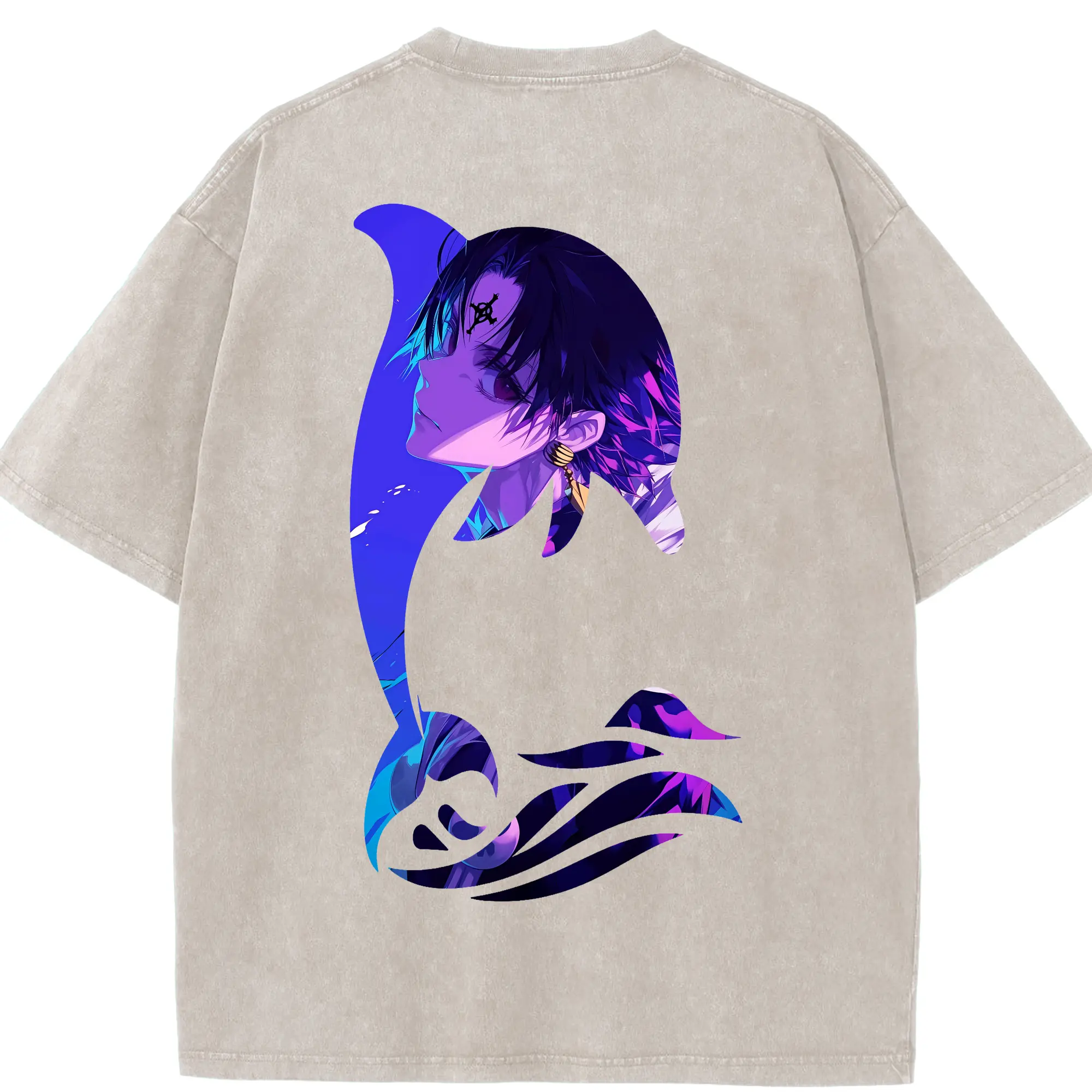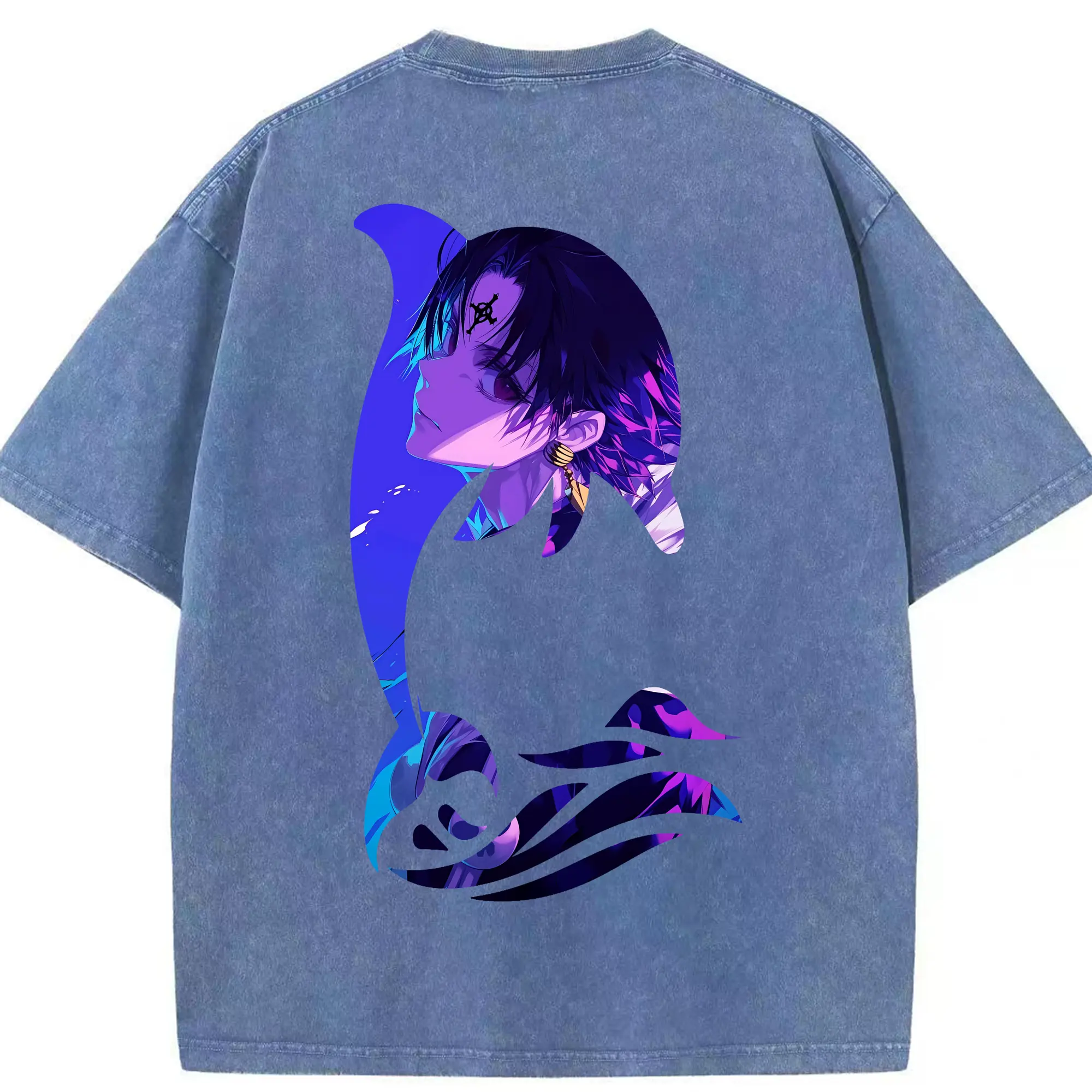 鬼滅の刃 グッズ,伊黒 小芭内 - 綿100% ヴィンテージ風 半袖Tシャツ ・ 背面プリント ・ 柔らか肌触り ・ 通気性 快適 ・ スポーツ カジュアル 外出用