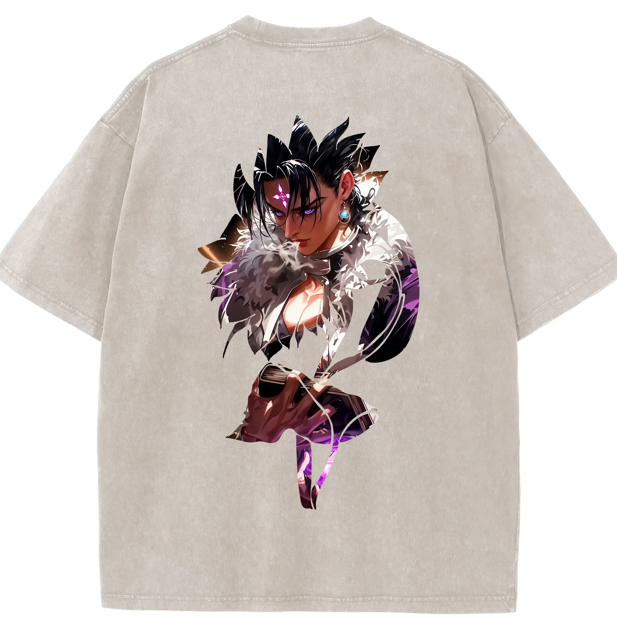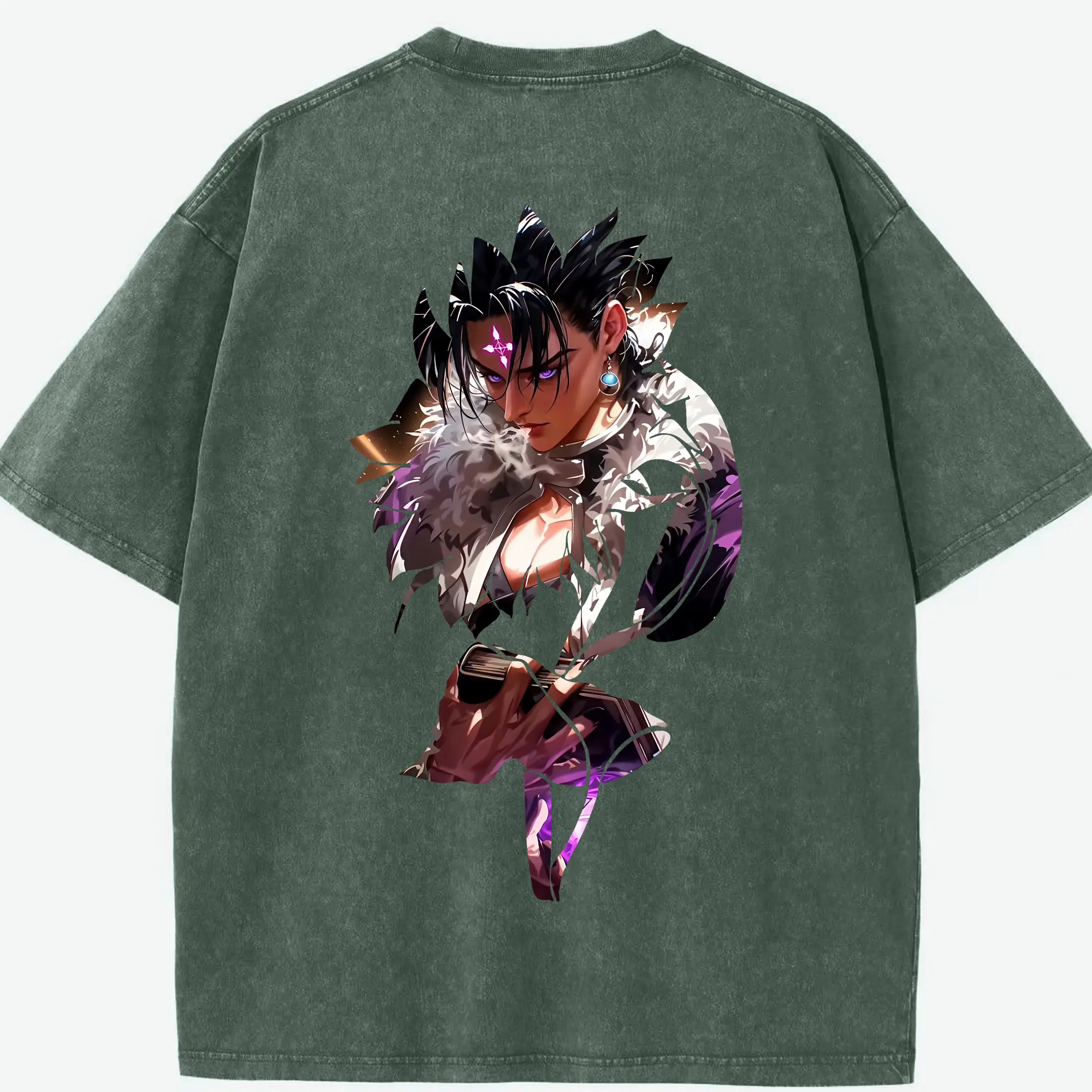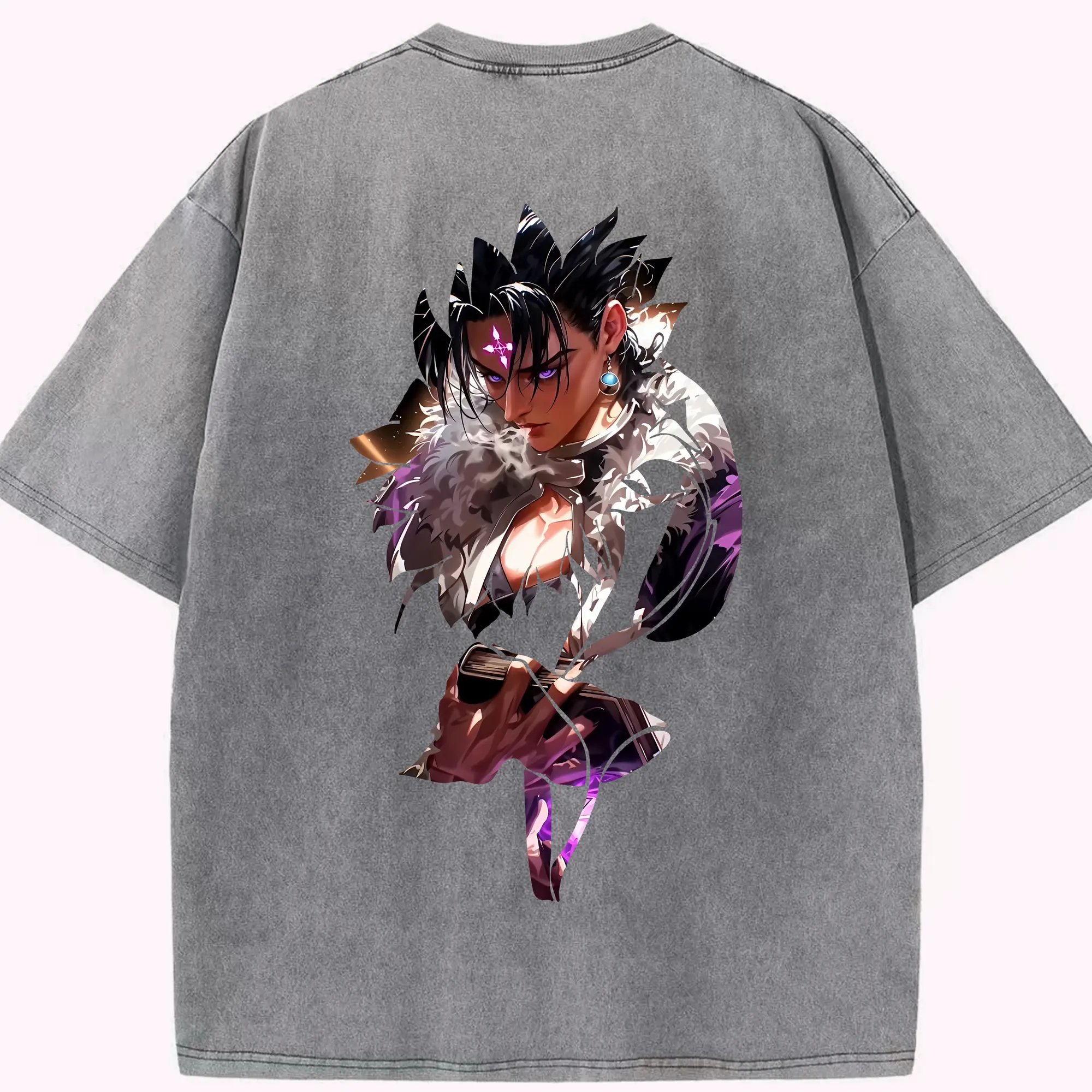 ハンター×ハンター グッズ クロロ=ルシルフル - 綿100% ヴィンテージ風 半袖Tシャツ ・ フロントプリント ・ 柔らか肌触り ・ 通気性 快適 ・ スポーツ カジュアル 外出用
