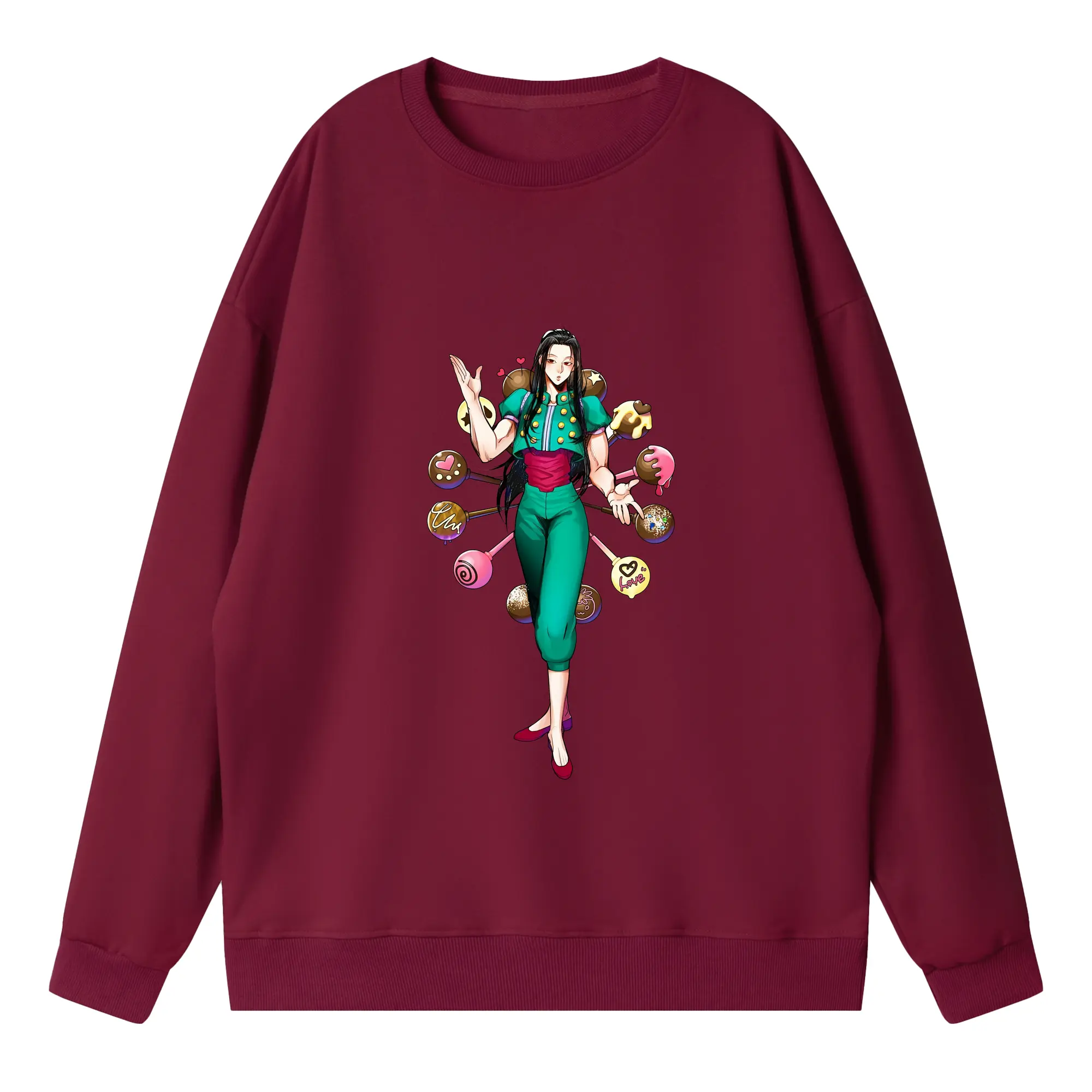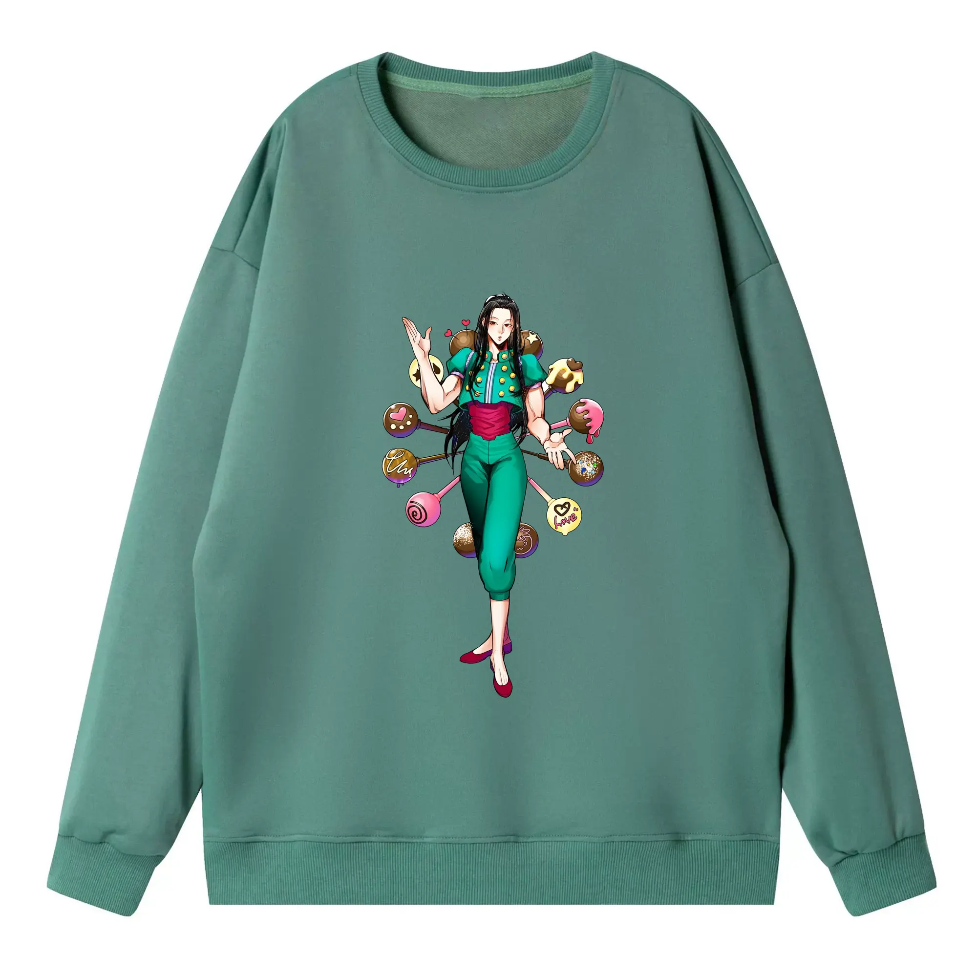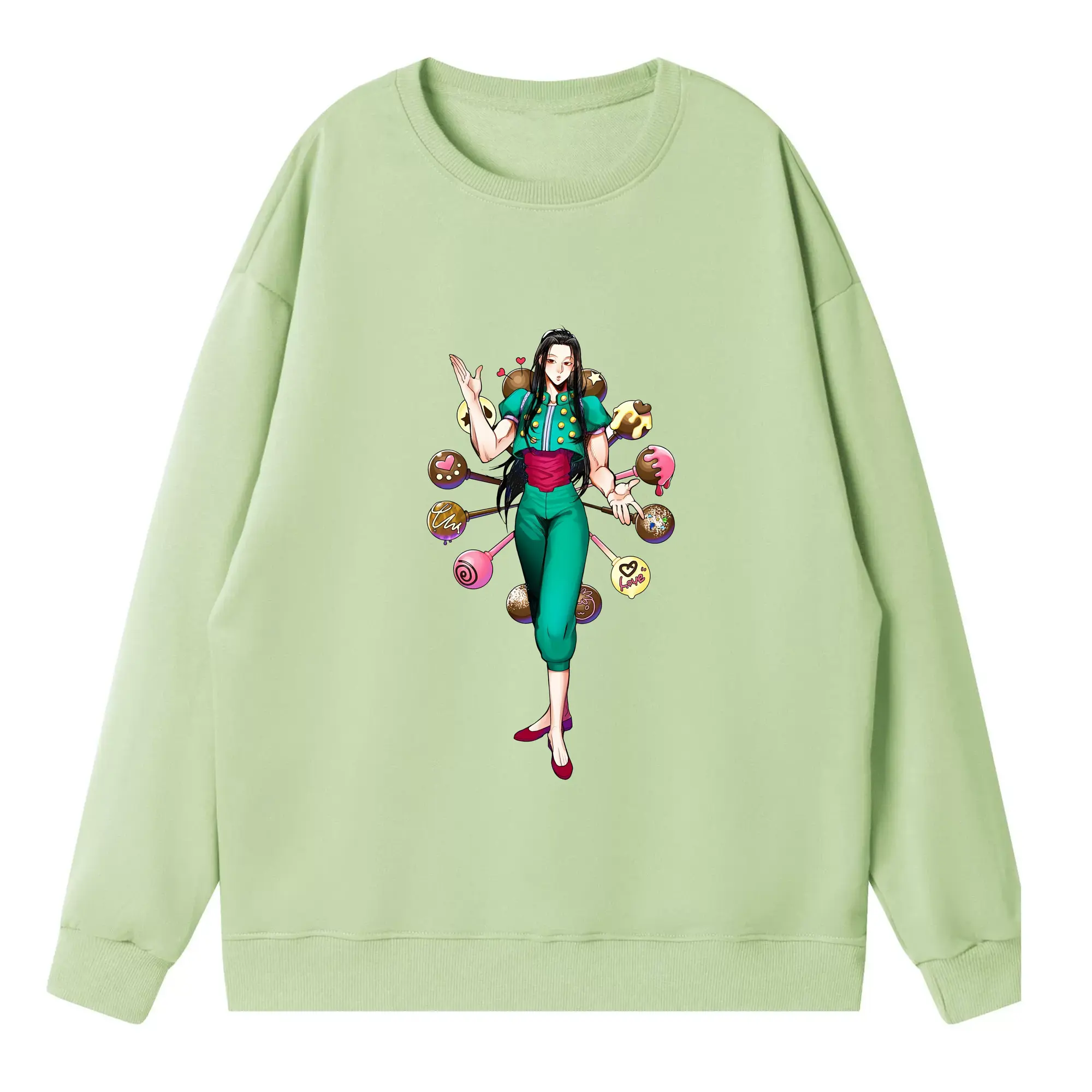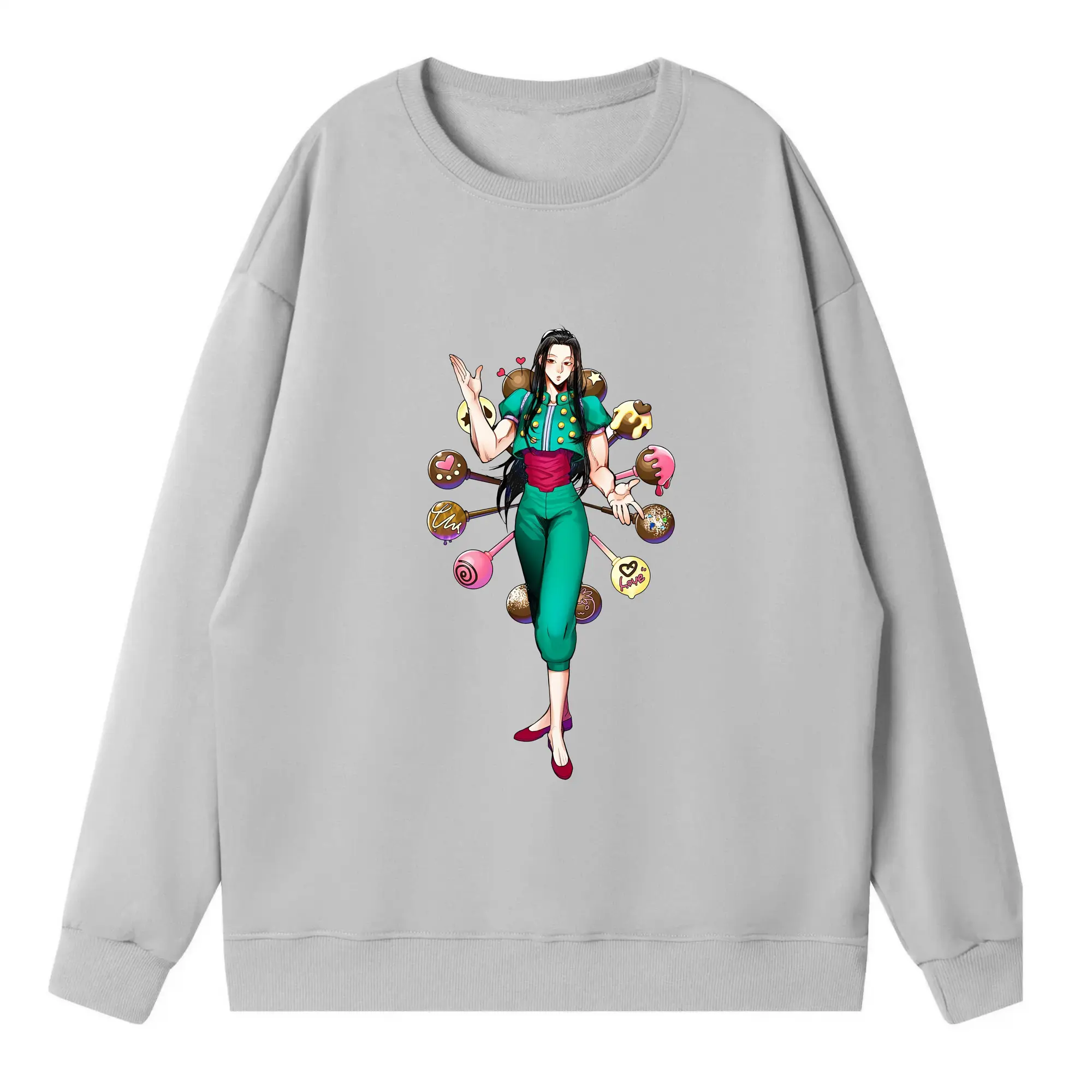ハンター×ハンター グッズ イルミ=ゾルディック - 高品質 クルーネック スウェット ・ コットン59% ポリエステル41% ・ ユニセックス 長袖 トレーナー ・ カジュアル デイリー スポーツ 散歩用