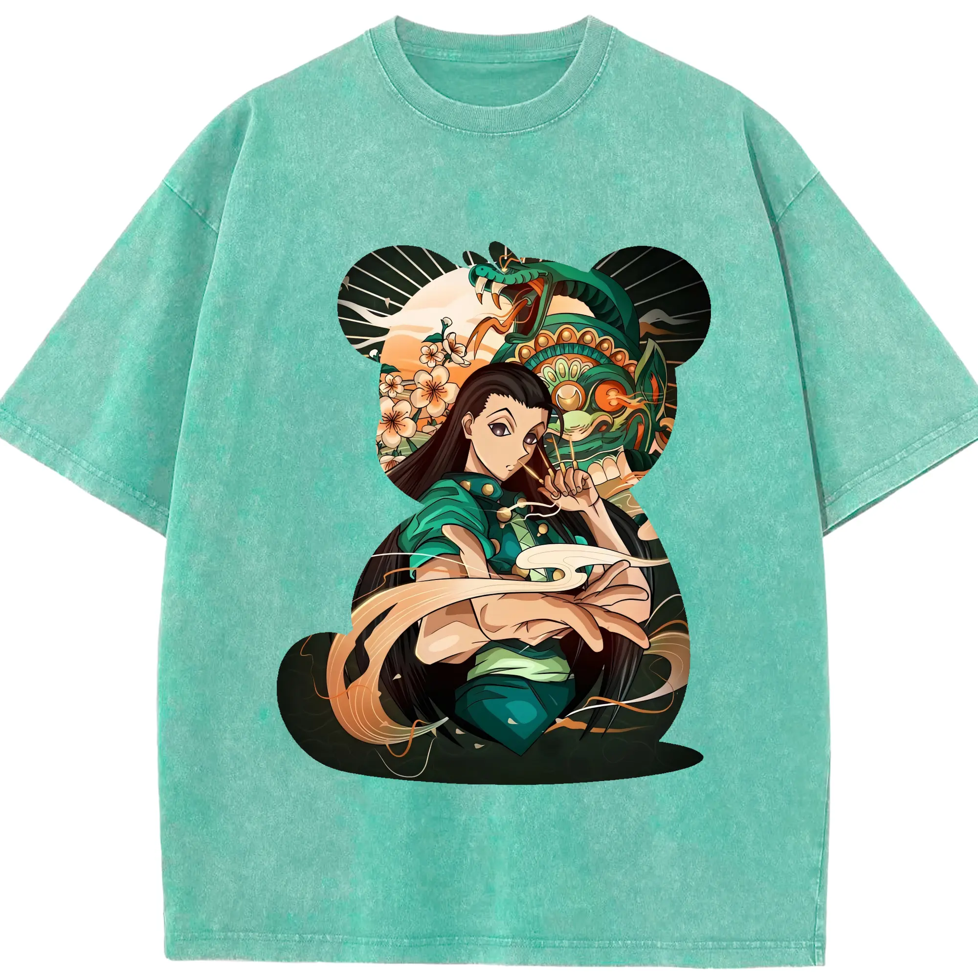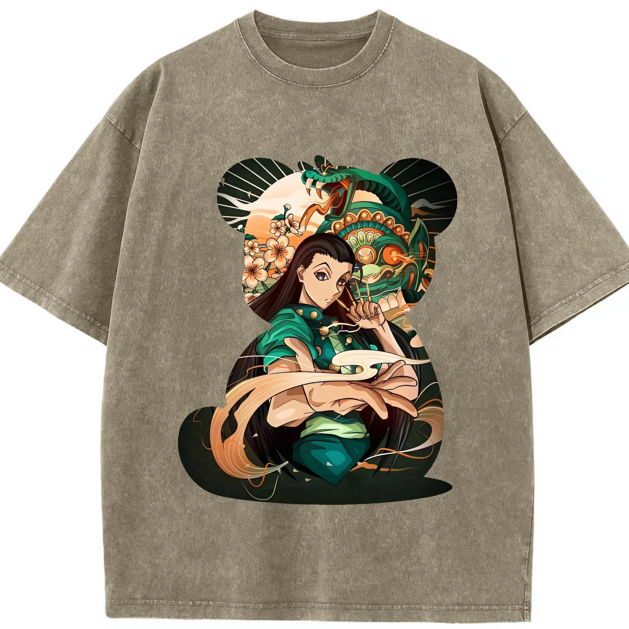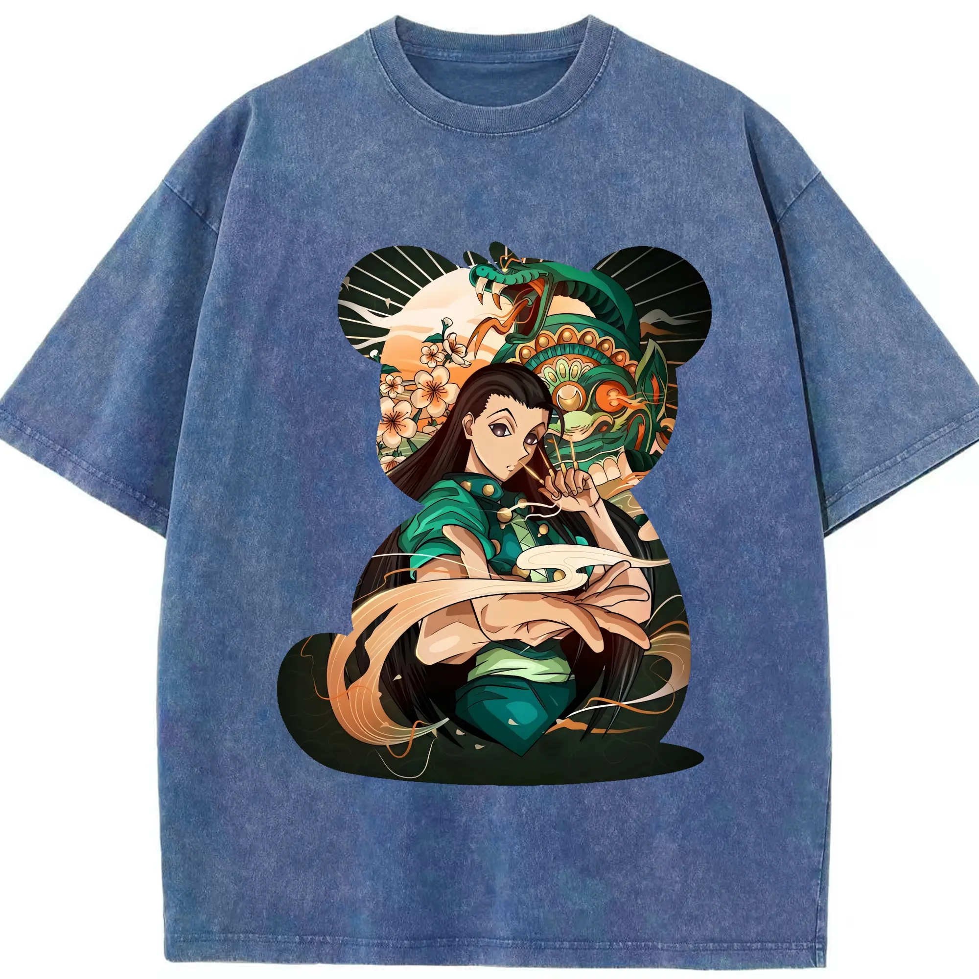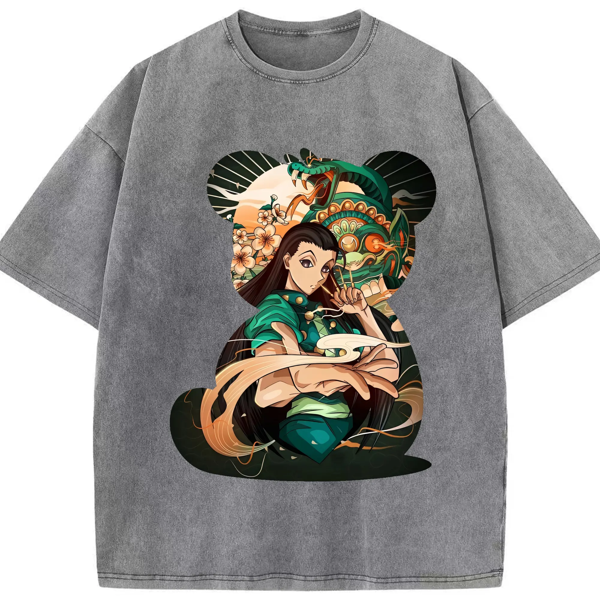 ハンター×ハンター グッズ イルミ=ゾルディック - 綿100% ヴィンテージ風 半袖Tシャツ ・ 背面プリント ・ 柔らか肌触り ・ 通気性 快適 ・ スポーツ カジュアル 外出用