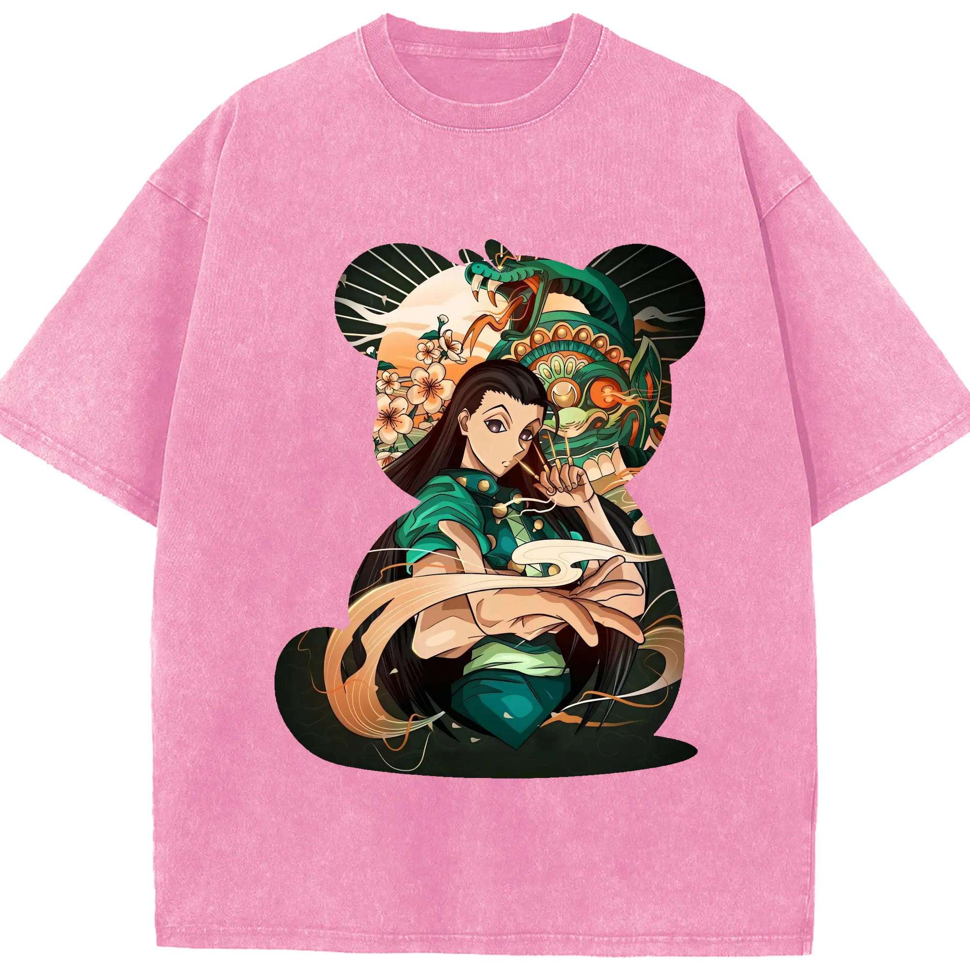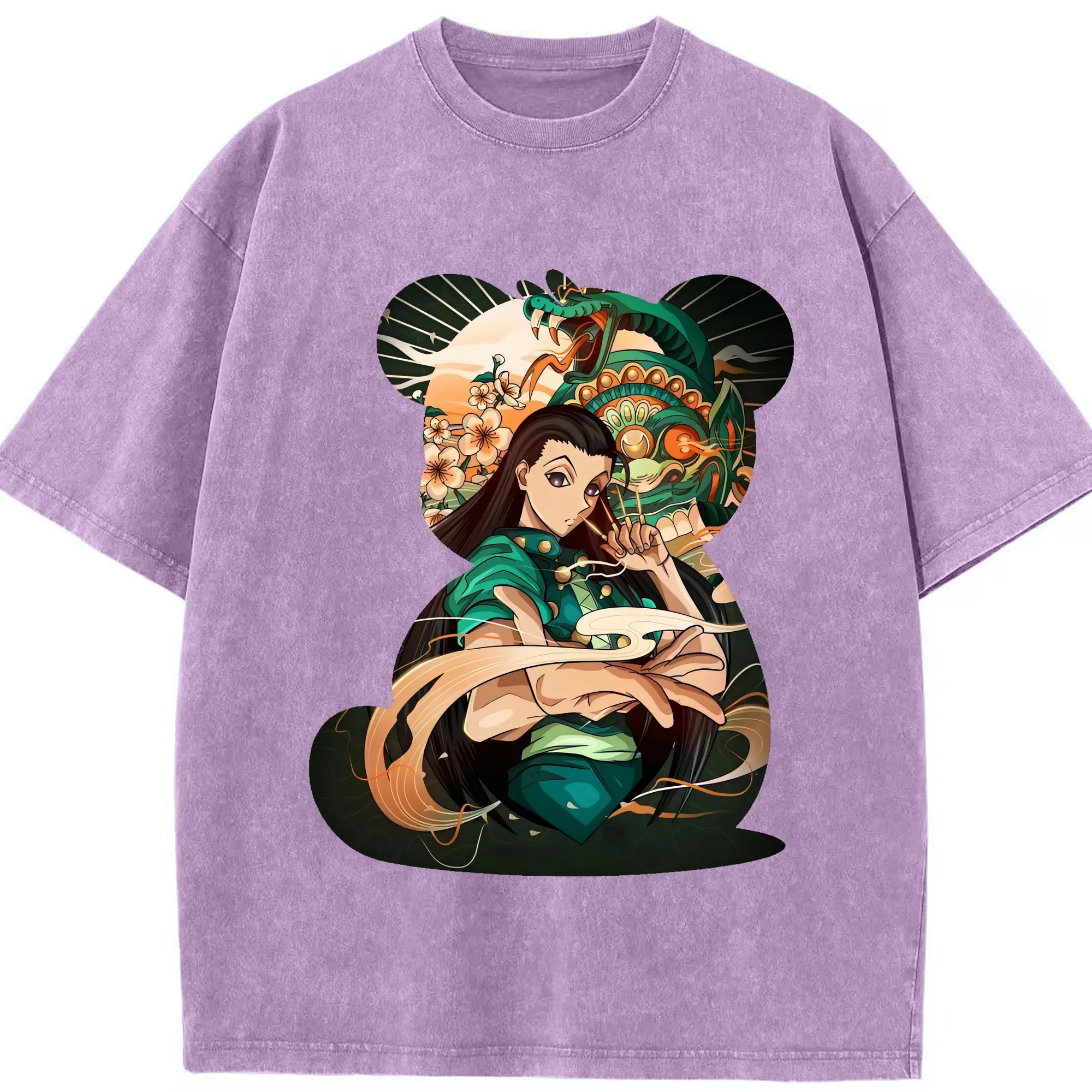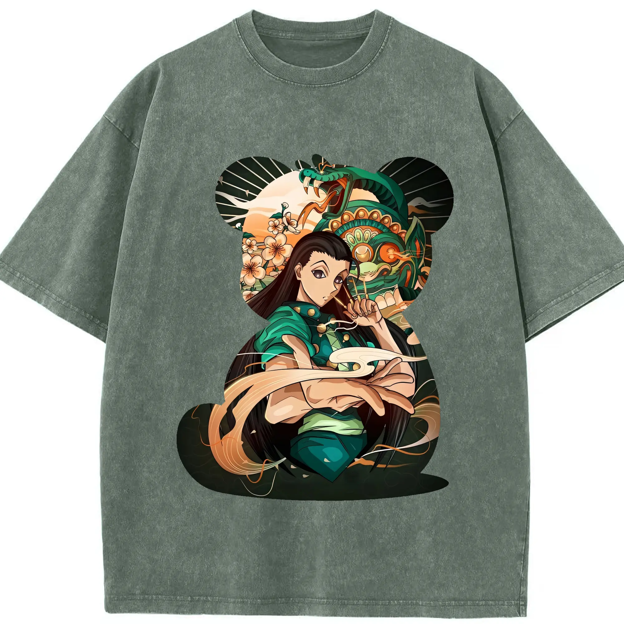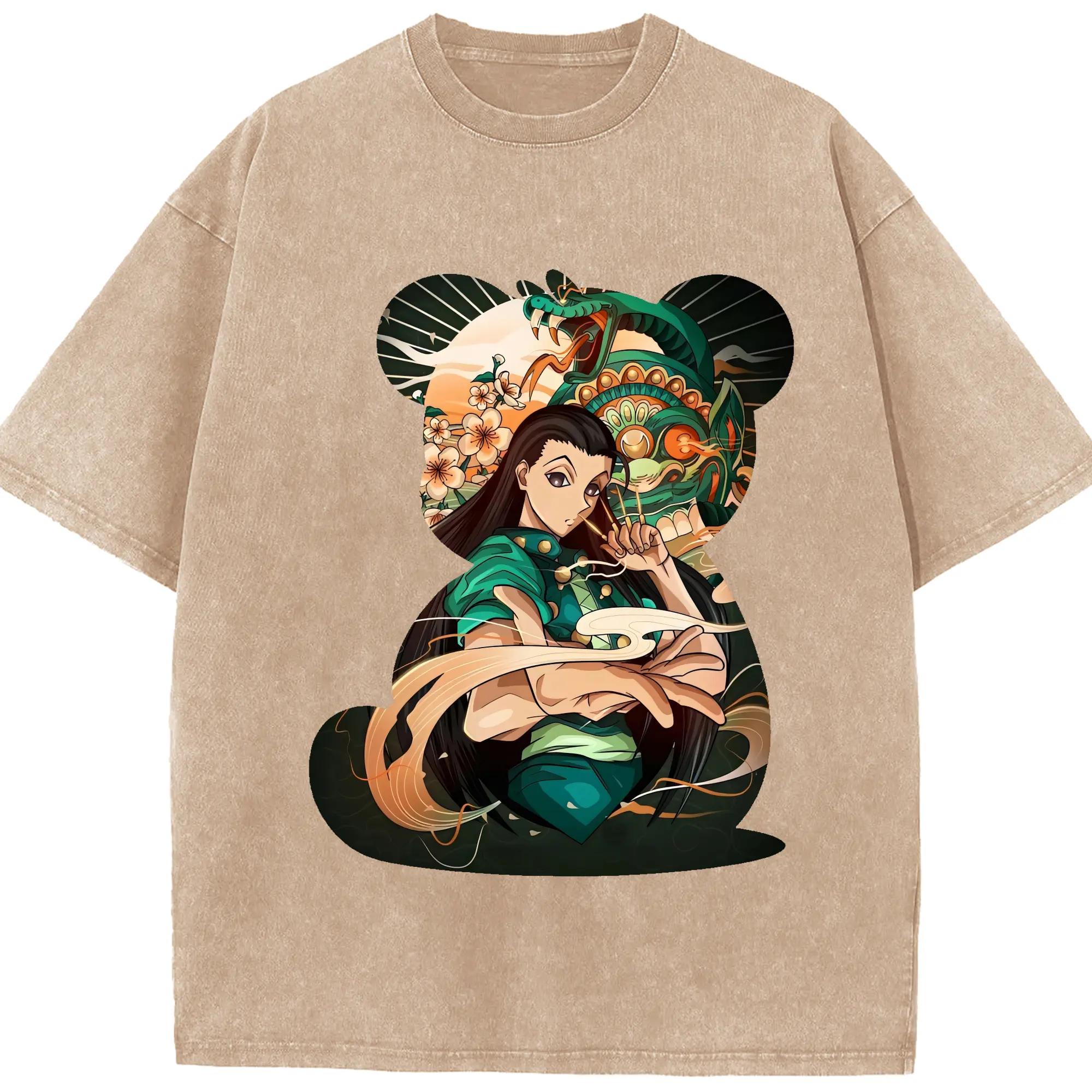 ハンター×ハンター グッズ イルミ=ゾルディック - 綿100% ヴィンテージ風 半袖Tシャツ ・ 背面プリント ・ 柔らか肌触り ・ 通気性 快適 ・ スポーツ カジュアル 外出用