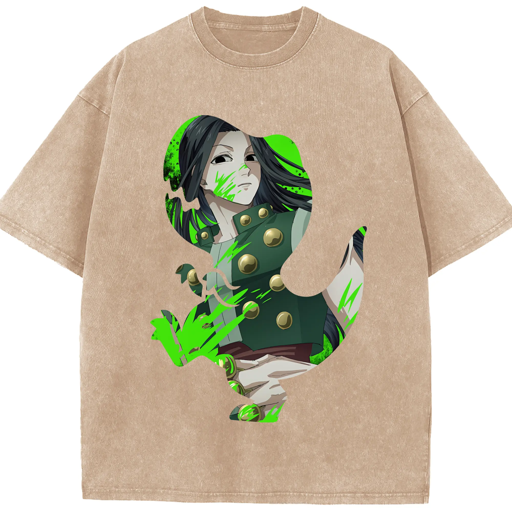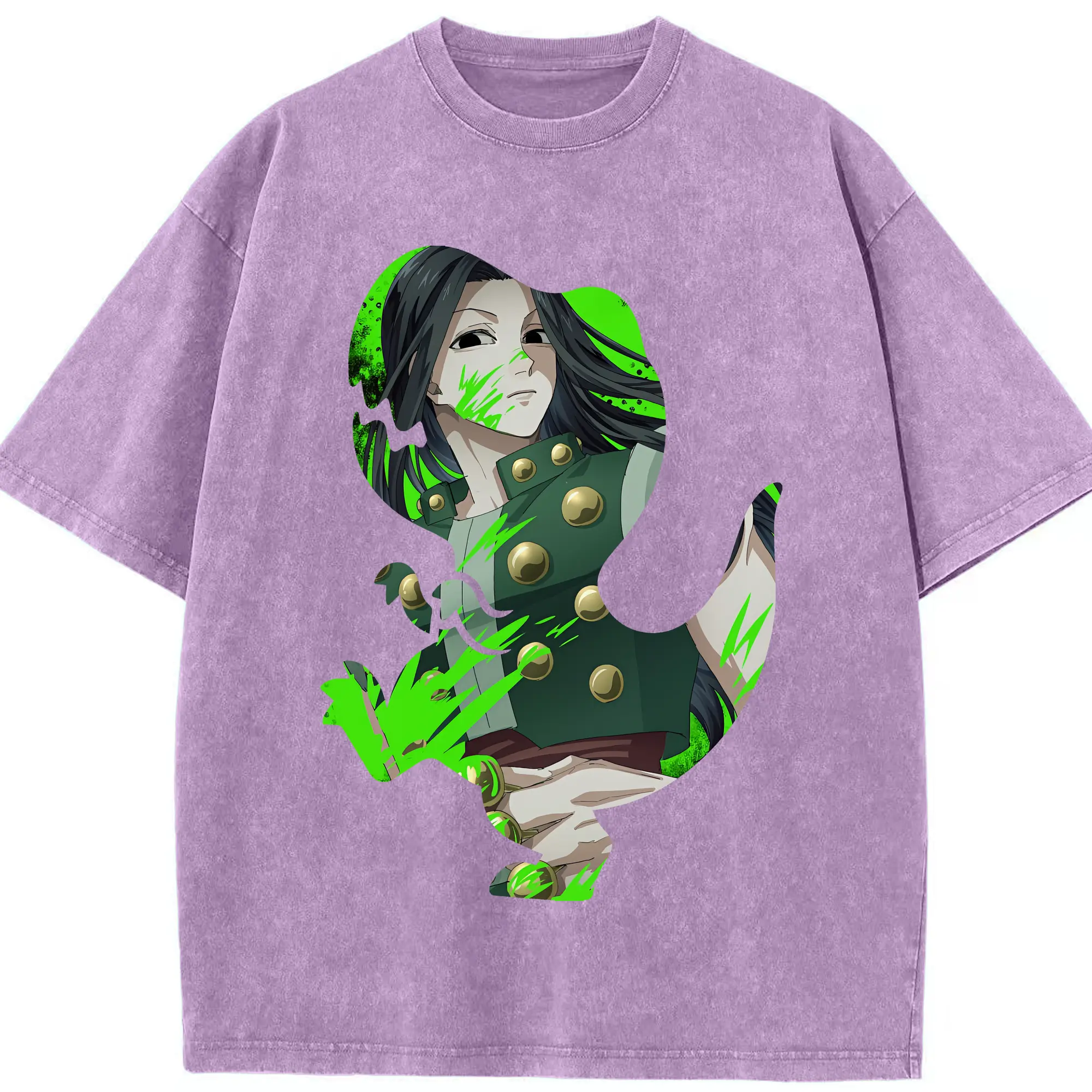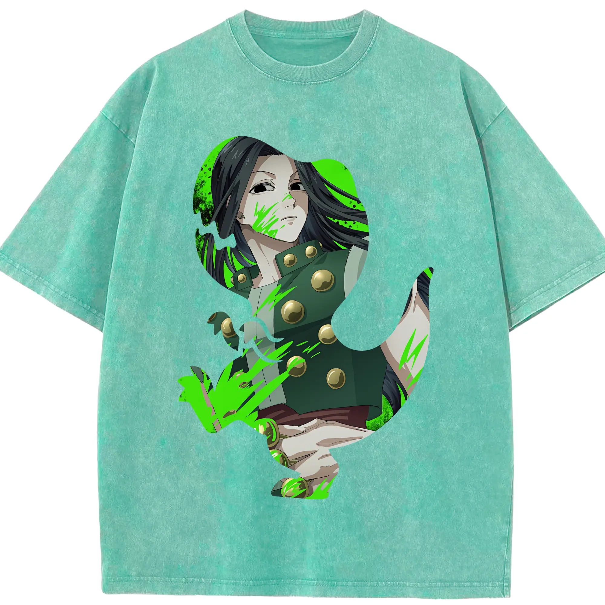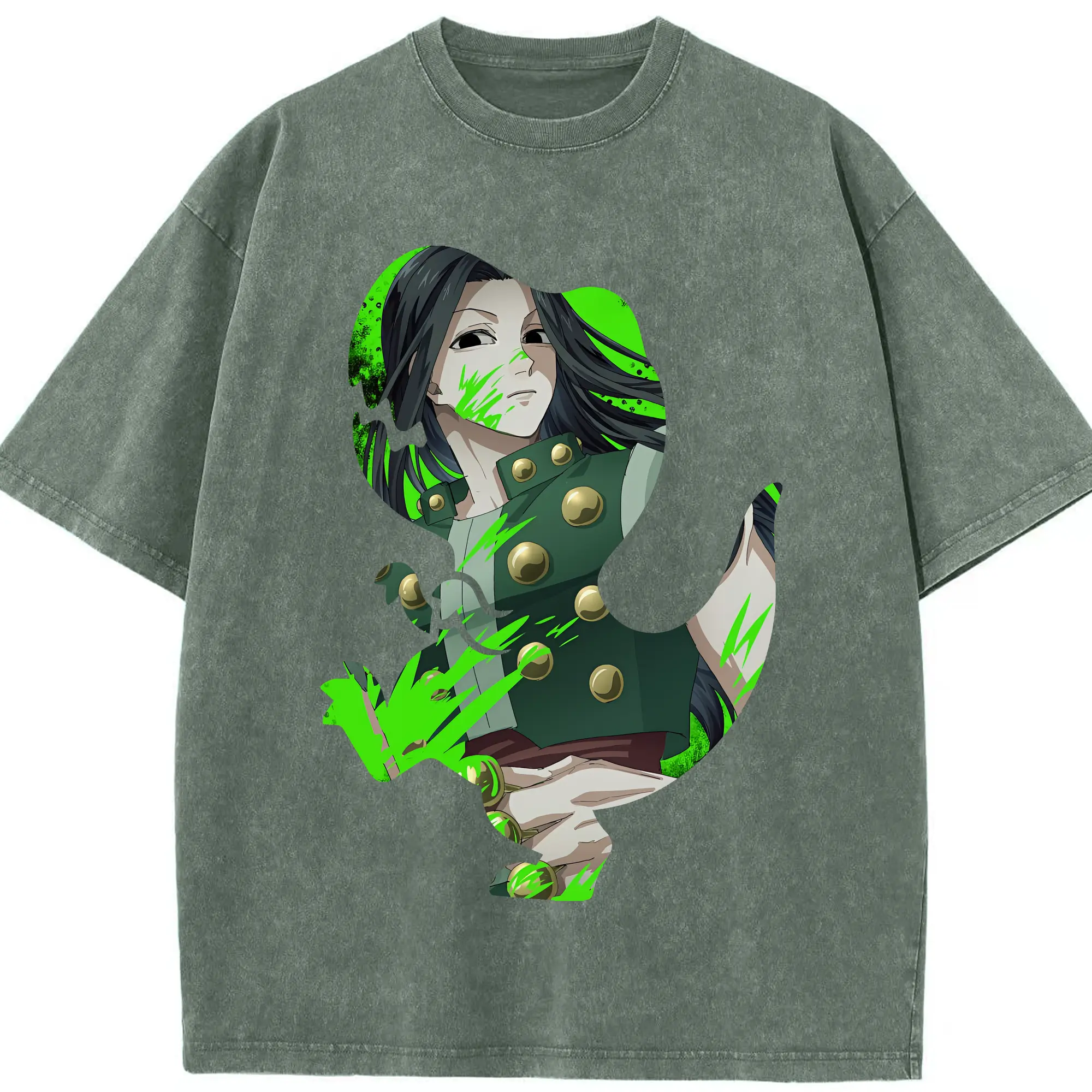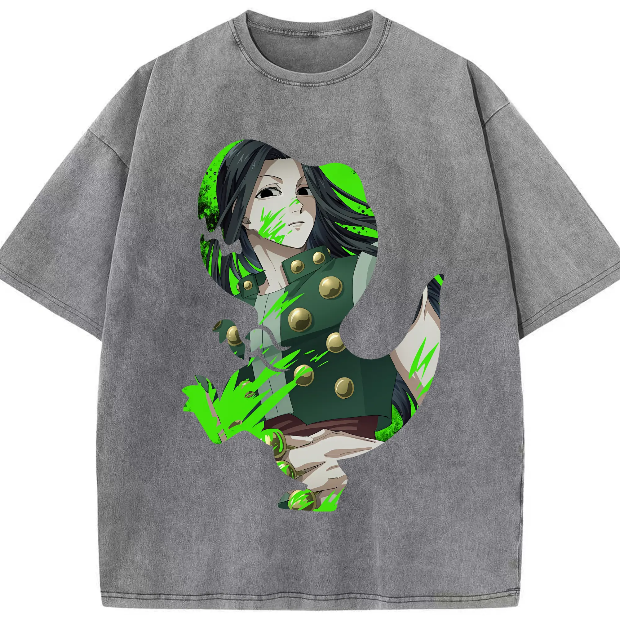 ハンター×ハンター グッズ イルミ=ゾルディック - 綿100% ヴィンテージ風 半袖Tシャツ ・ 背面プリント ・ 柔らか肌触り ・ 通気性 快適 ・ スポーツ カジュアル 外出用